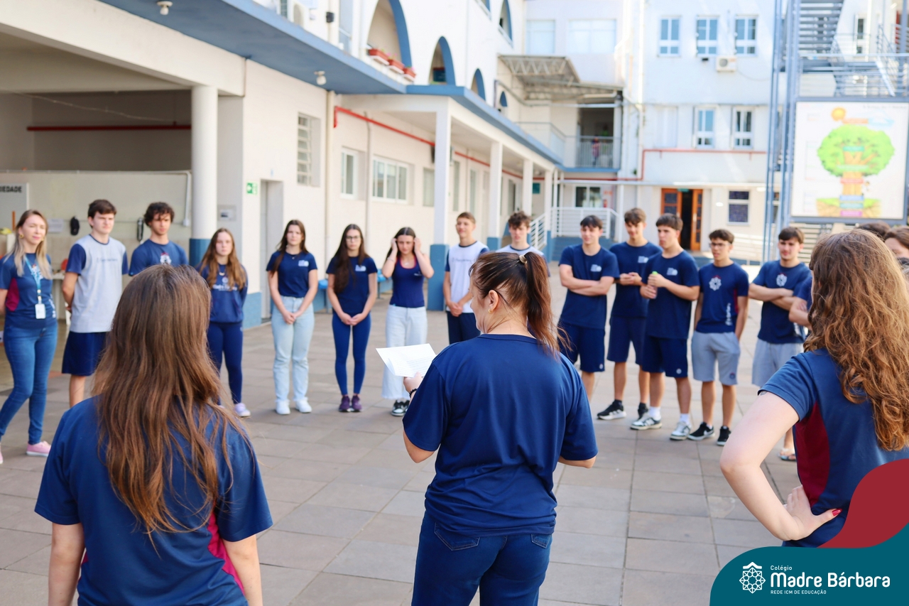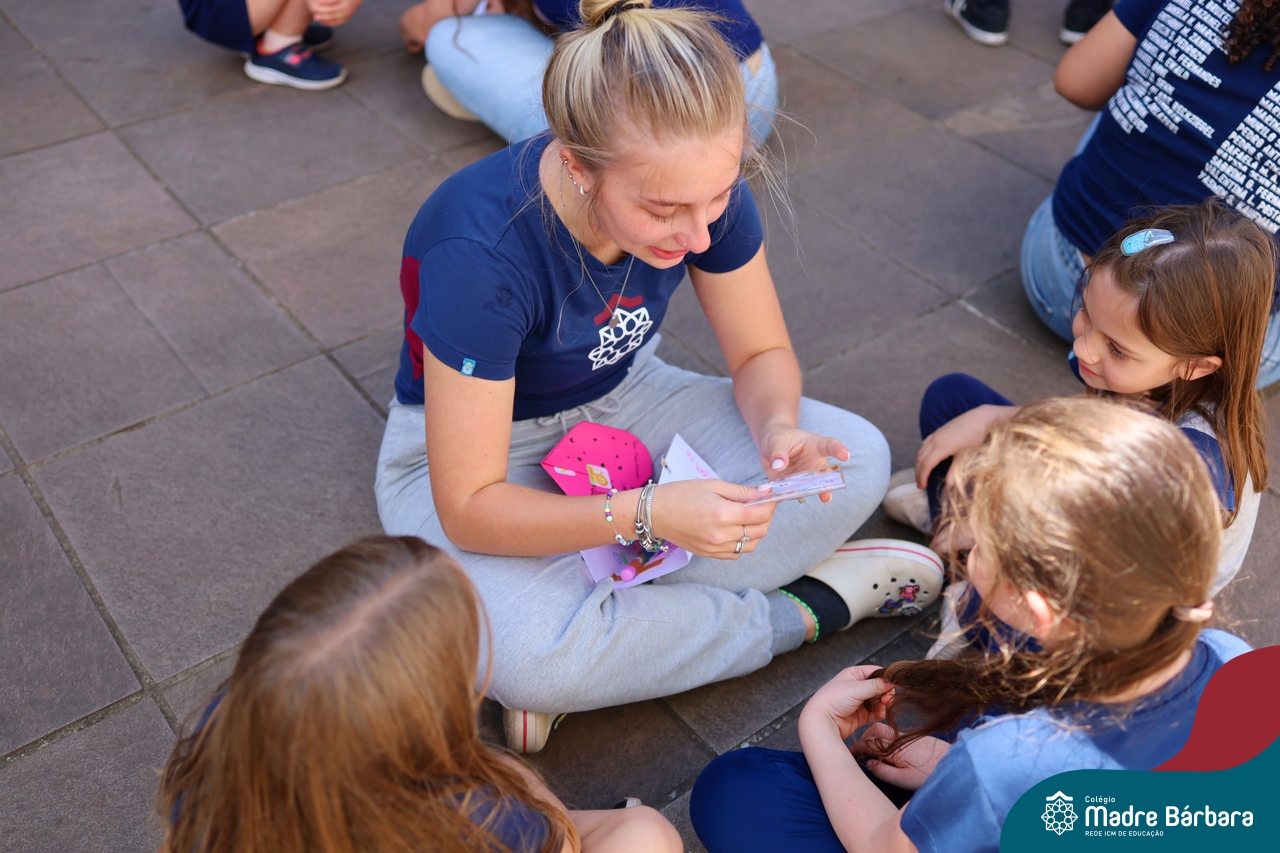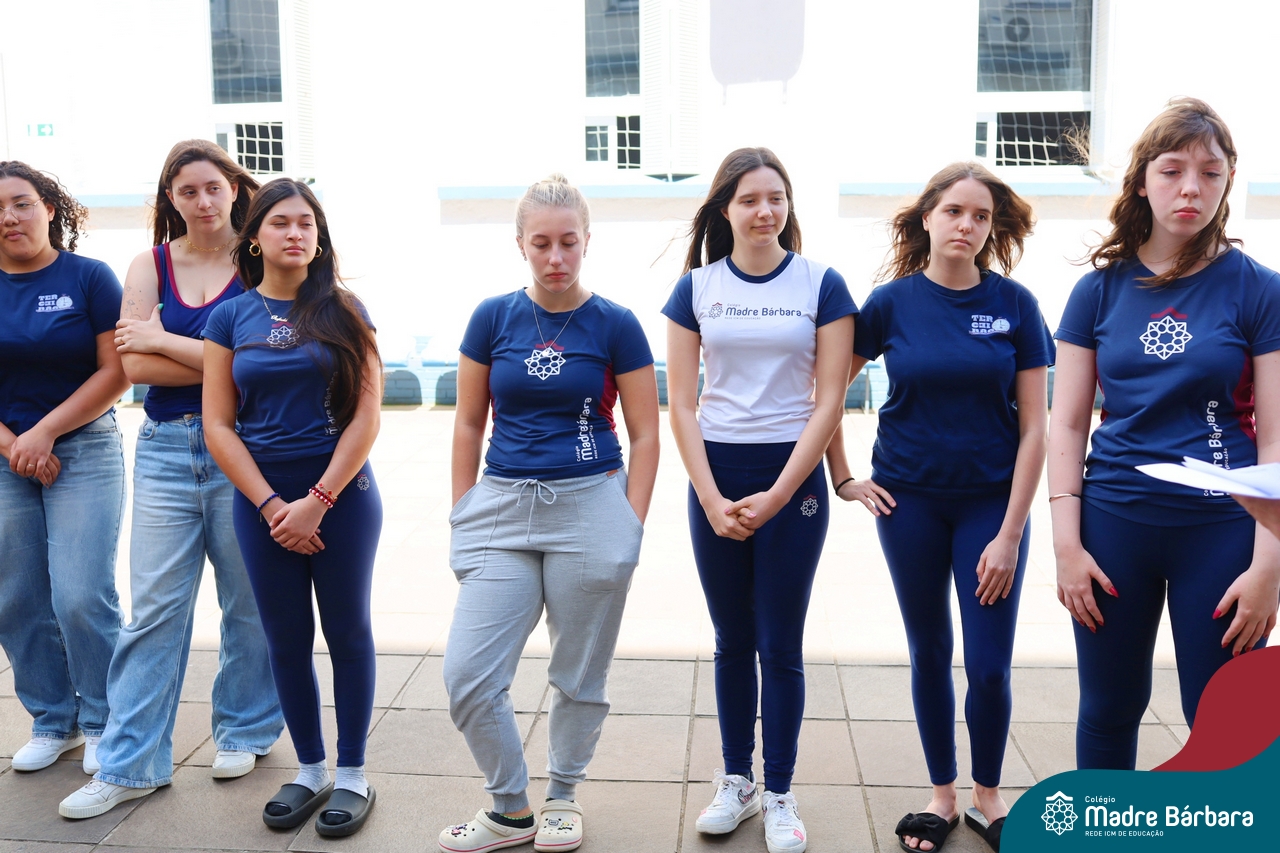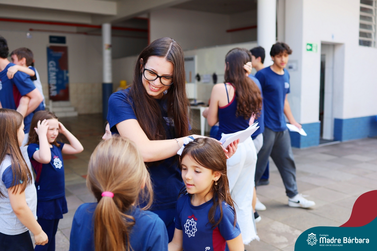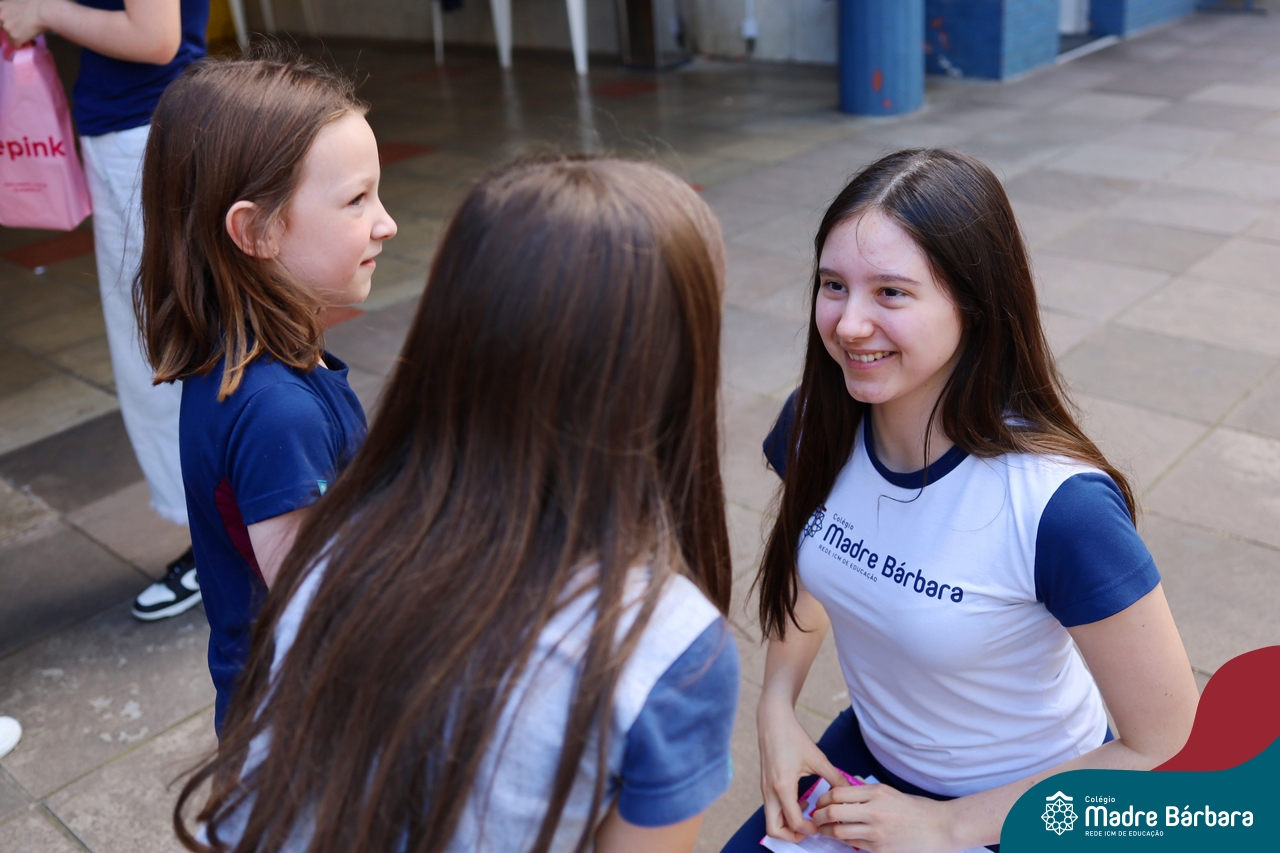 Nessa quarta-feira (05.11) os estudantes do Terceirão viveram um momento especial de acolhimento e preparação promovido pelo Serviço de Pastoral Escolar e pela Psicologia Escolar. Em clima de serenidade e esperança, partilharam palavras de carinho, conforto e fé, fortalecendo corações e mentes para os desafios do ENEM, prova que ocorre nos próximos finais de semana, dias 9 e 16. As crianças do Projeto Laços Afetivos, os afilhados, emocionaram a todos com uma linda homenagem musical, guiadas pela professora Tainá Dullius. Além do canto cheio de ternura, entregaram cartinhas repletas de boas energias, mimos, chocolates e canetas, acompanhados de gestos de incentivo e amor. O encontro também foi abençoado com a entrega de um terço, símbolo de proteção e luz, ofertado pela Pastoral e Psicologia, para acompanhar os estudantes durante as provas e em cada passo de sua caminhada. Também receberam sementes de girassol que simboliza o início de um caminho, o nascimento de sonhos e a capacidade de florescer mesmo diante dos desafios.