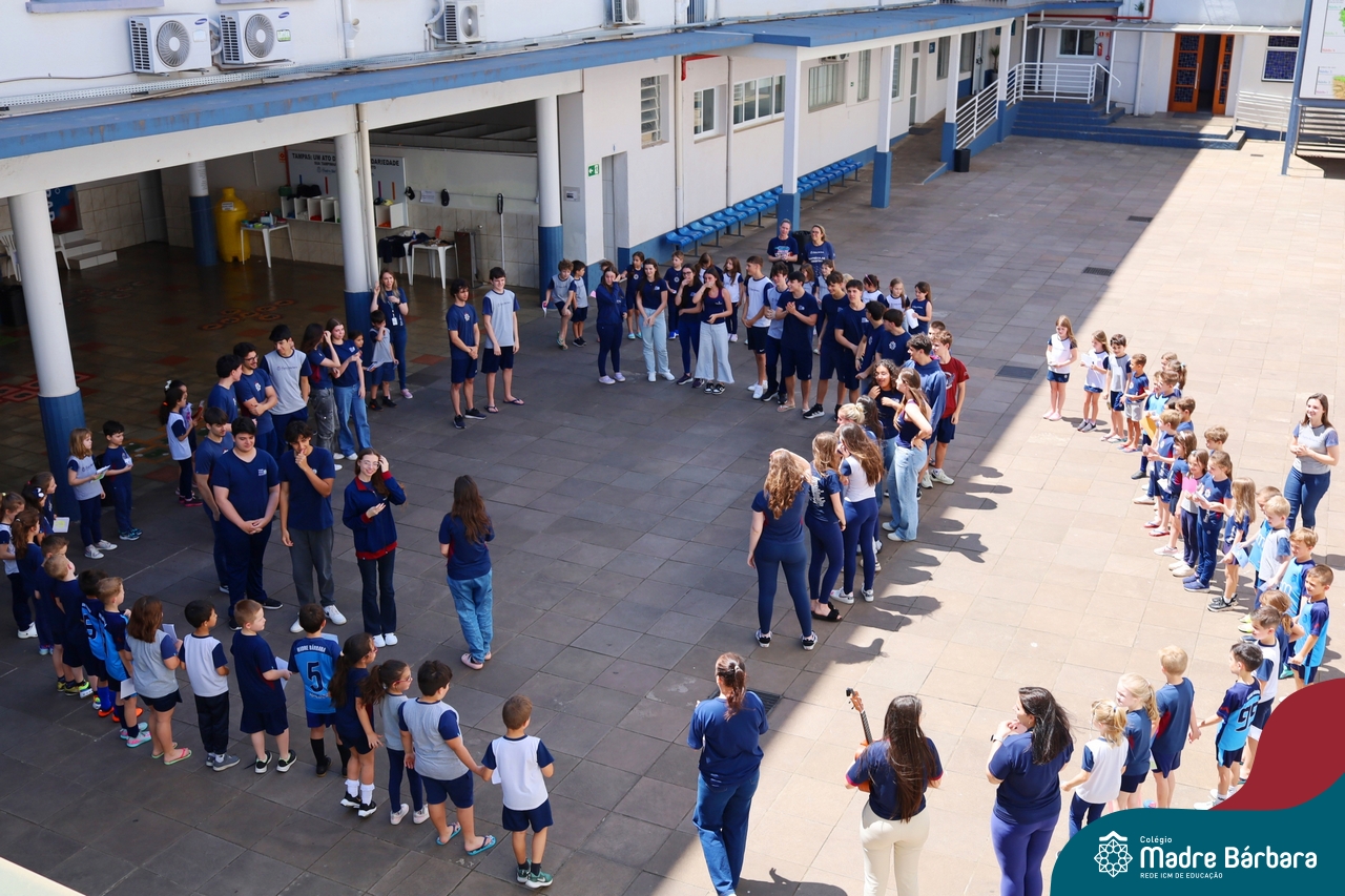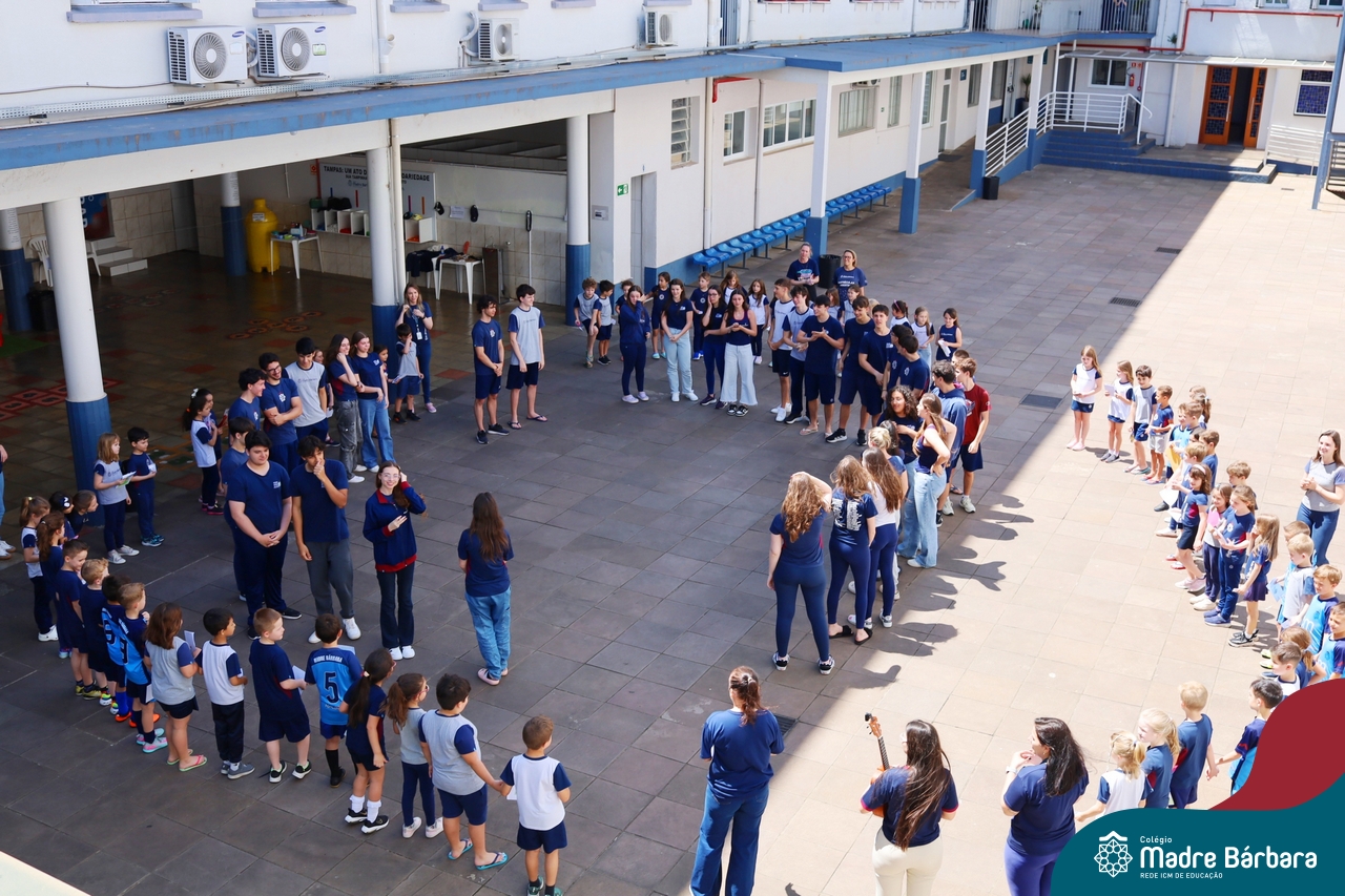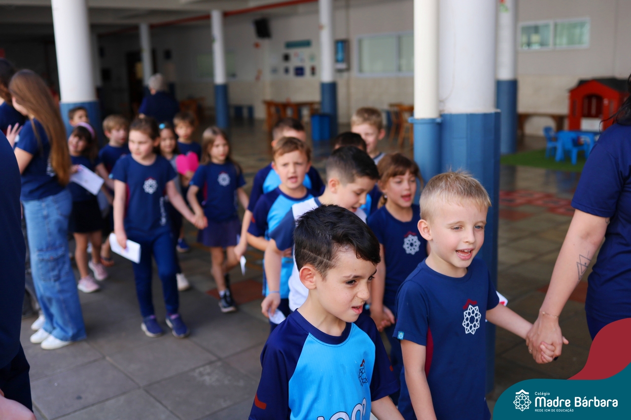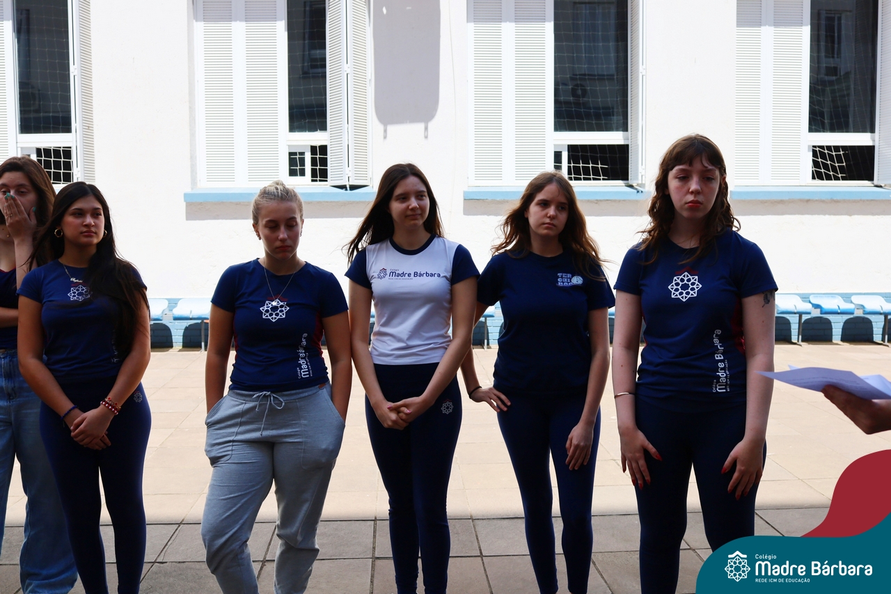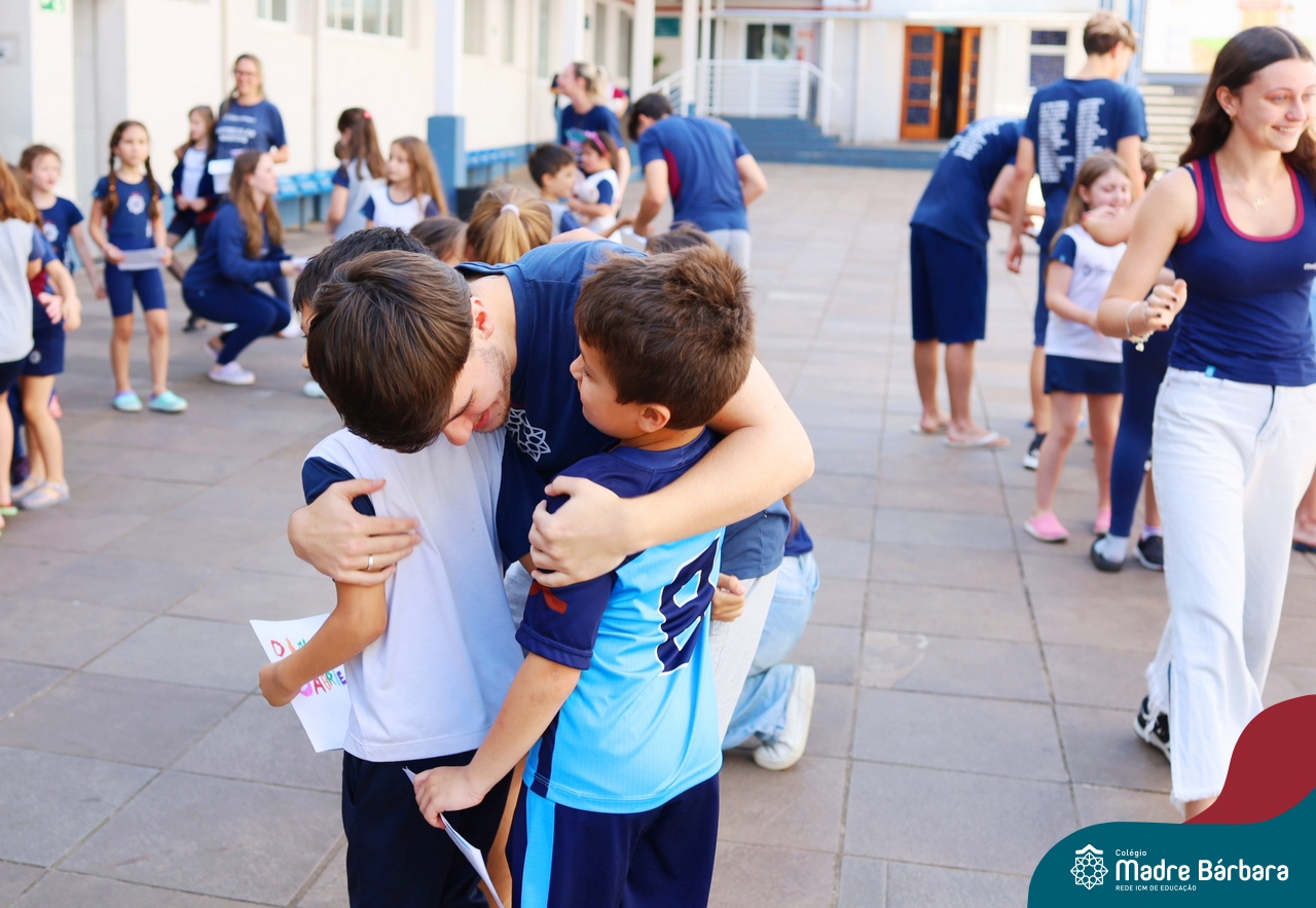 Nessa quarta-feira (05.11) os estudantes do Terceirão viveram um momento especial de acolhimento e preparação promovido pelo Serviço de Pastoral Escolar e pela Psicologia Escolar. Em clima de serenidade e esperança, partilharam palavras de carinho, conforto e fé, fortalecendo corações e mentes para os desafios do ENEM, prova que ocorre nos próximos finais de semana, dias 9 e 16. As crianças do Projeto Laços Afetivos, os afilhados, emocionaram a todos com uma linda homenagem musical, guiadas pela professora Tainá Dullius. Além do canto cheio de ternura, entregaram cartinhas repletas de boas energias, mimos, chocolates e canetas, acompanhados de gestos de incentivo e amor. O encontro também foi abençoado com a entrega de um terço, símbolo de proteção e luz, ofertado pela Pastoral e Psicologia, para acompanhar os estudantes durante as provas e em cada passo de sua caminhada. Também receberam sementes de girassol que simboliza o início de um caminho, o nascimento de sonhos e a capacidade de florescer mesmo diante dos desafios.