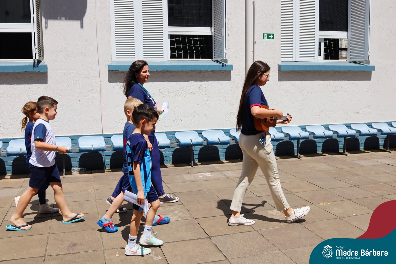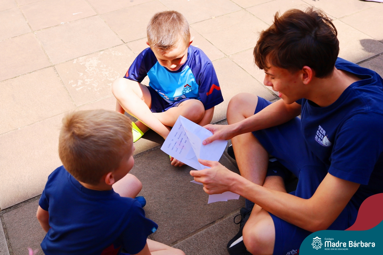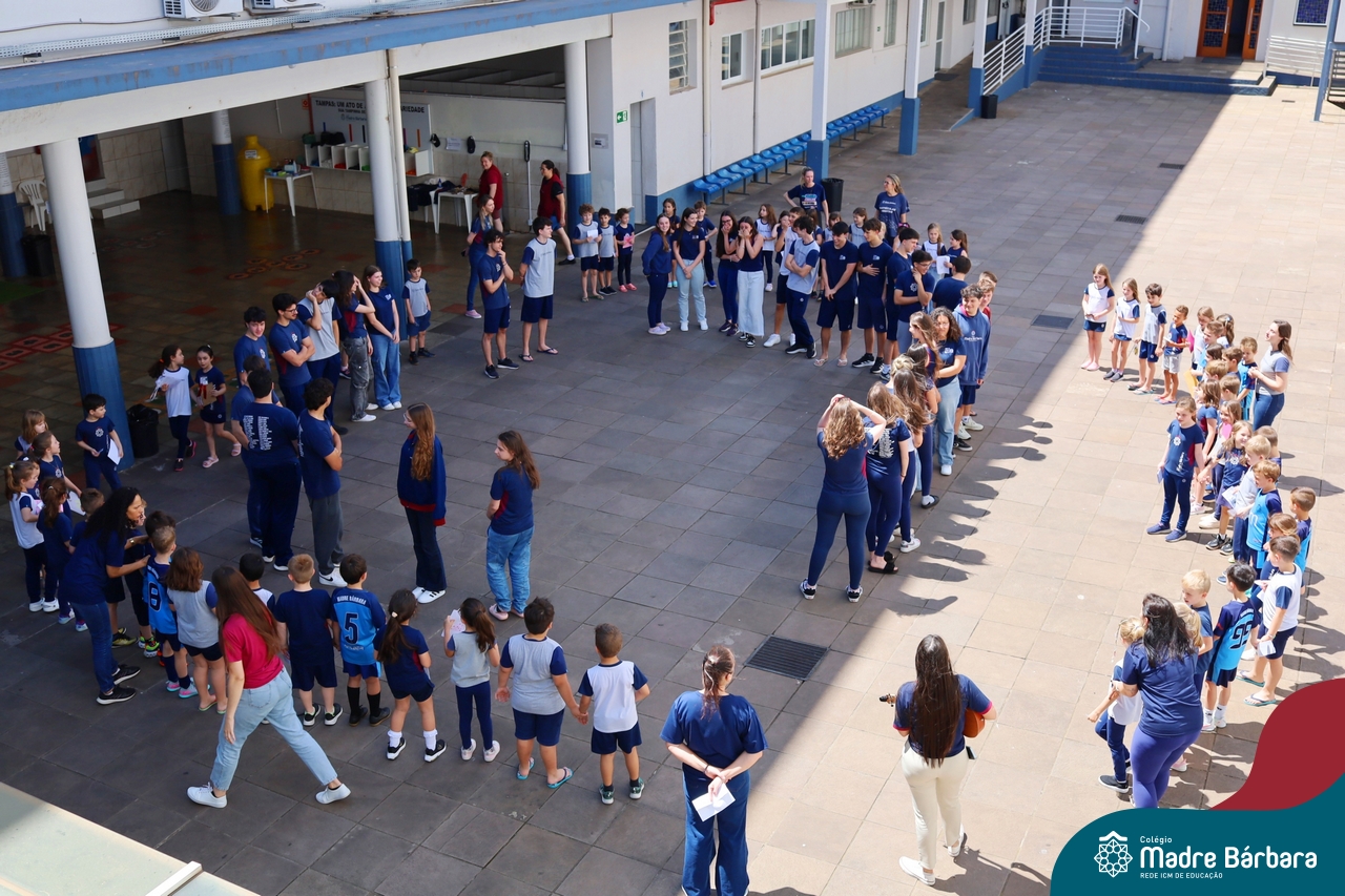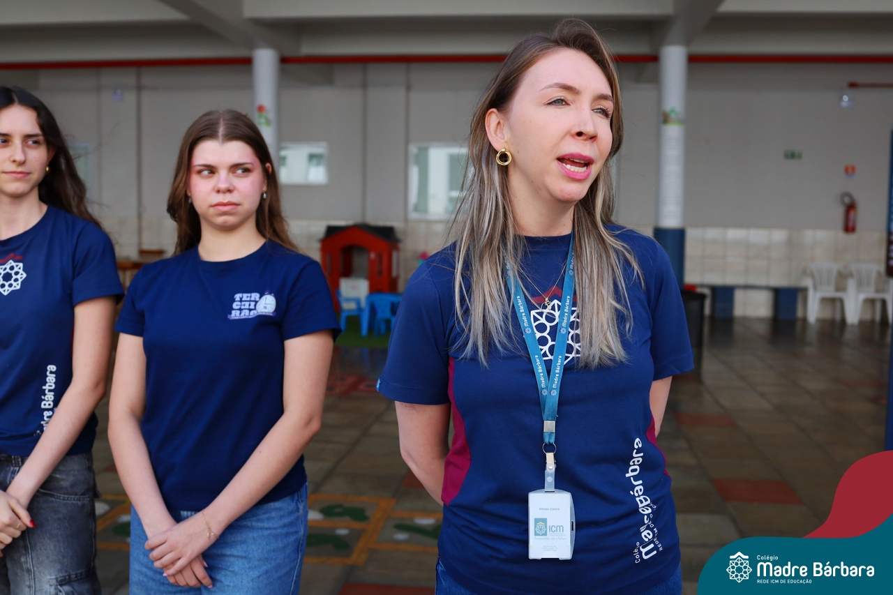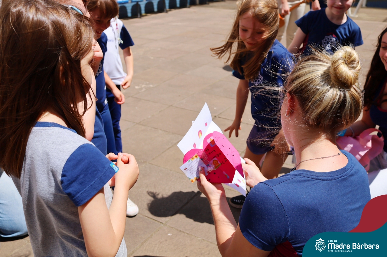 Nessa quarta-feira (05.11) os estudantes do Terceirão viveram um momento especial de acolhimento e preparação promovido pelo Serviço de Pastoral Escolar e pela Psicologia Escolar. Em clima de serenidade e esperança, partilharam palavras de carinho, conforto e fé, fortalecendo corações e mentes para os desafios do ENEM, prova que ocorre nos próximos finais de semana, dias 9 e 16. As crianças do Projeto Laços Afetivos, os afilhados, emocionaram a todos com uma linda homenagem musical, guiadas pela professora Tainá Dullius. Além do canto cheio de ternura, entregaram cartinhas repletas de boas energias, mimos, chocolates e canetas, acompanhados de gestos de incentivo e amor. O encontro também foi abençoado com a entrega de um terço, símbolo de proteção e luz, ofertado pela Pastoral e Psicologia, para acompanhar os estudantes durante as provas e em cada passo de sua caminhada. Também receberam sementes de girassol que simboliza o início de um caminho, o nascimento de sonhos e a capacidade de florescer mesmo diante dos desafios.