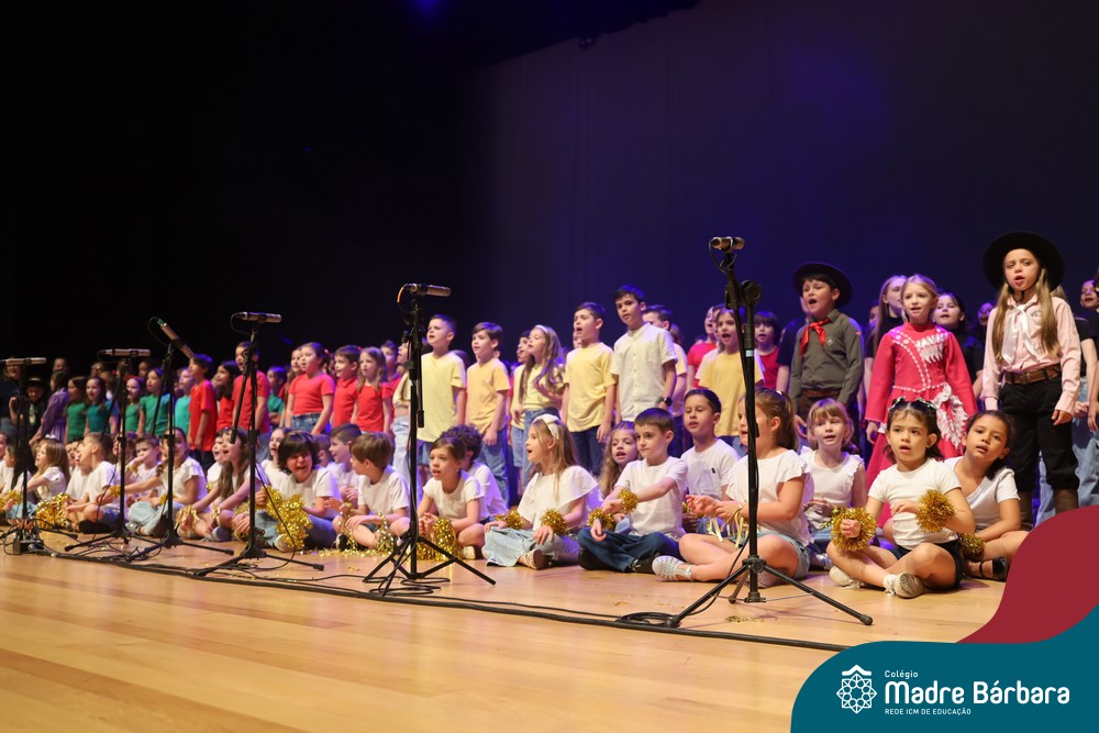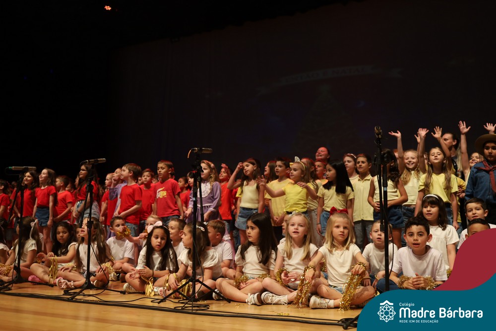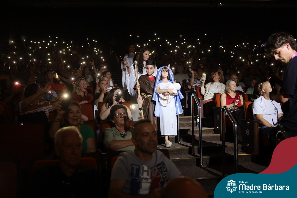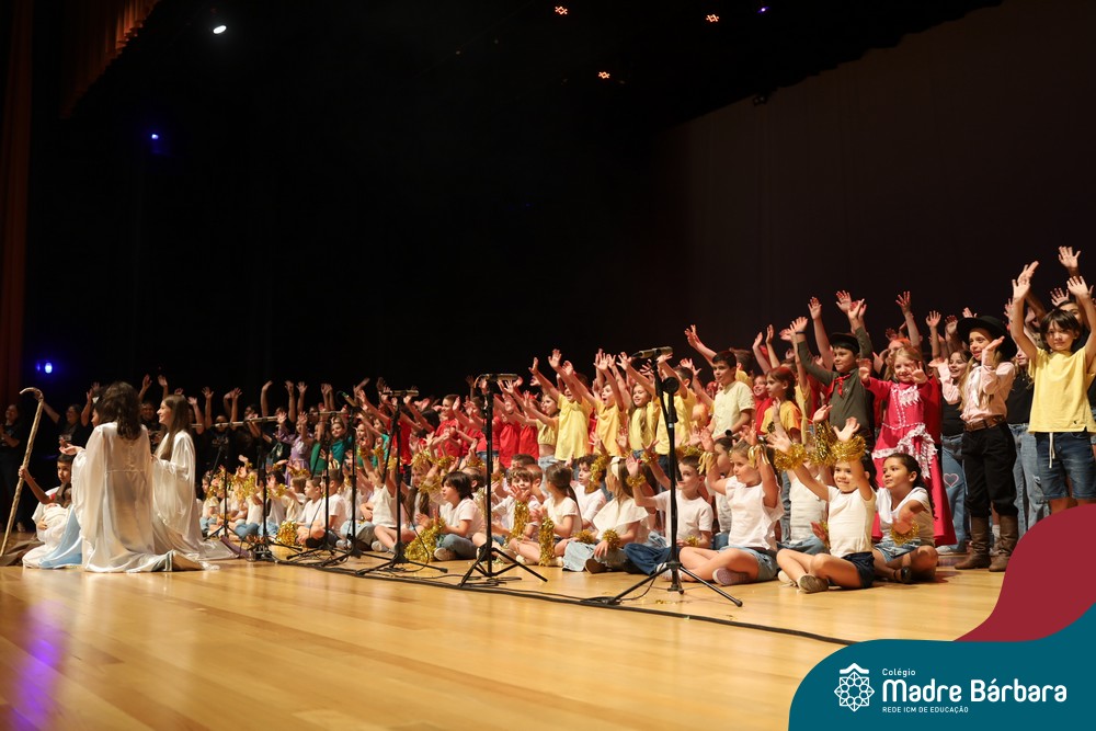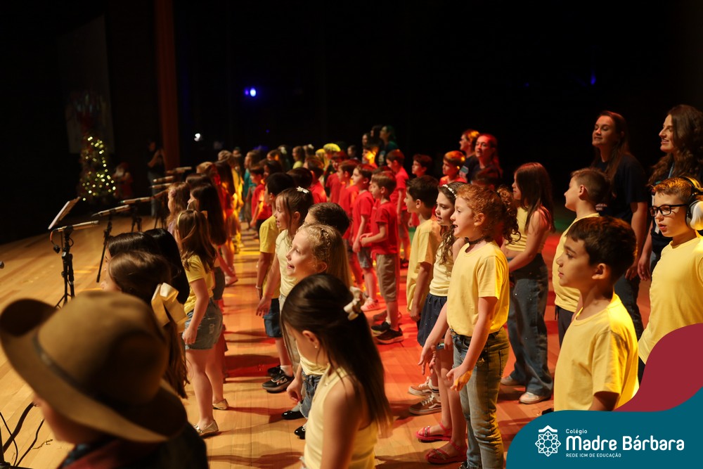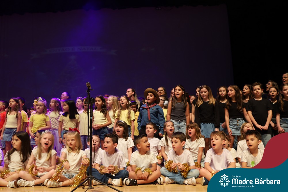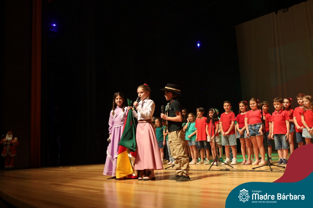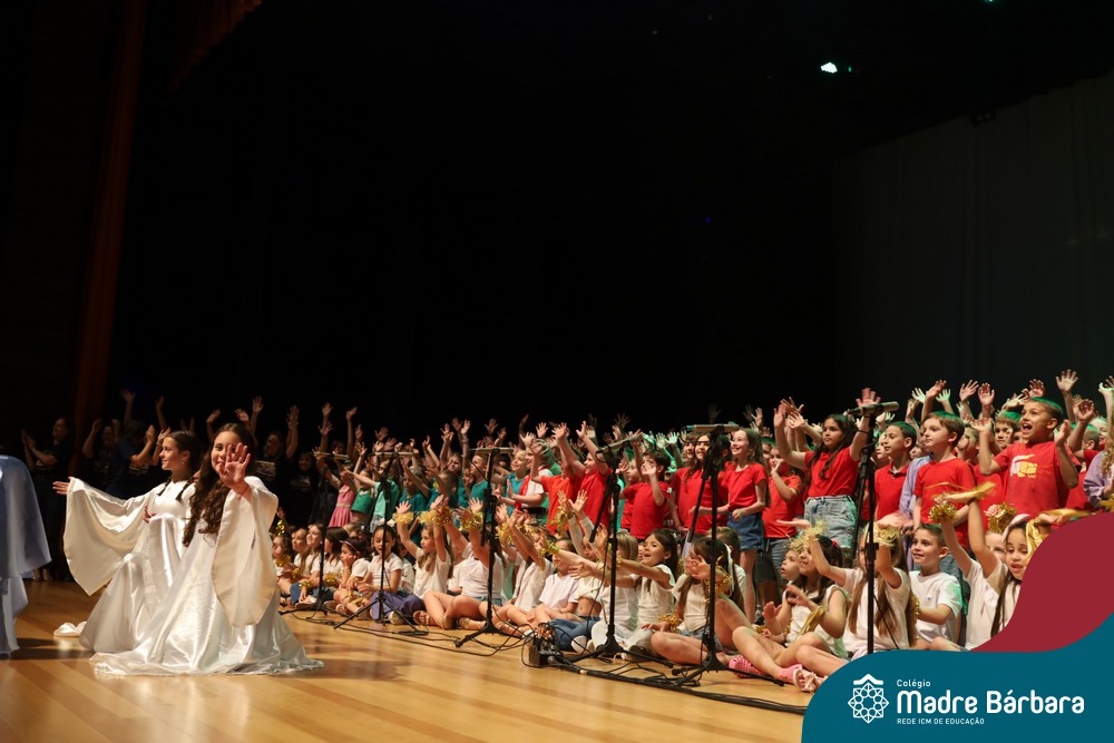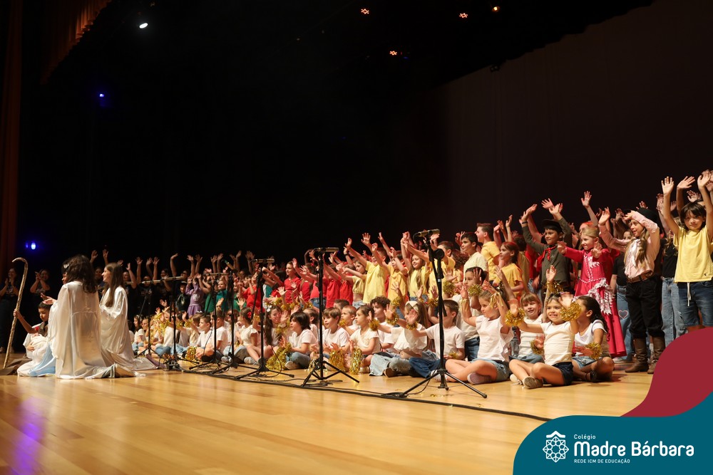 Na noite de quarta-feira, 3 de dezembro, o Teatro da Univates foi palco de um espetáculo encantador: a apresentação dos Anos Iniciais do Colégio Madre Bárbara, com a temática “Cantata de Natal – O Presente Perdido”. Dividido em dois momentos, o evento reuniu as turmas do 1º ao 5º ano dos turnos da manhã e da tarde, que brilharam com talento, sensibilidade e uma qualidade artística que emocionou todos os presentes. Interpretando, cantando, tocando e dançando músicas populares brasileiras, representando diversas localidades do Brasil, as crianças deram um show de conhecimento e celebraram com alegria a riqueza da nossa cultura.