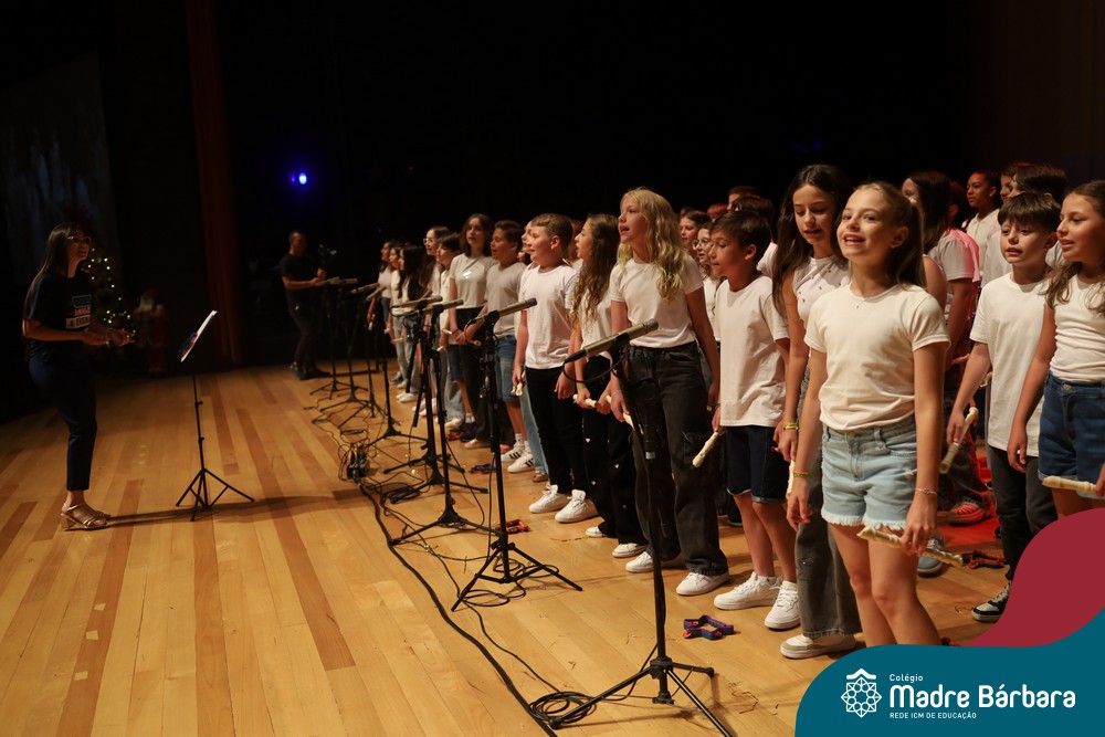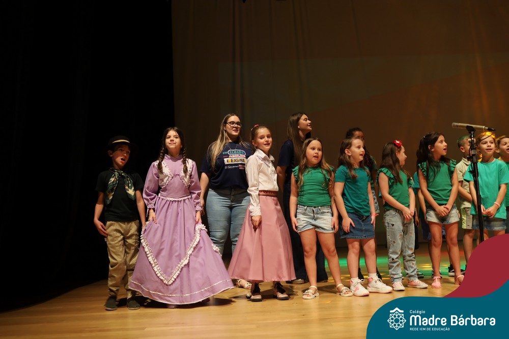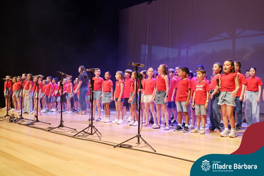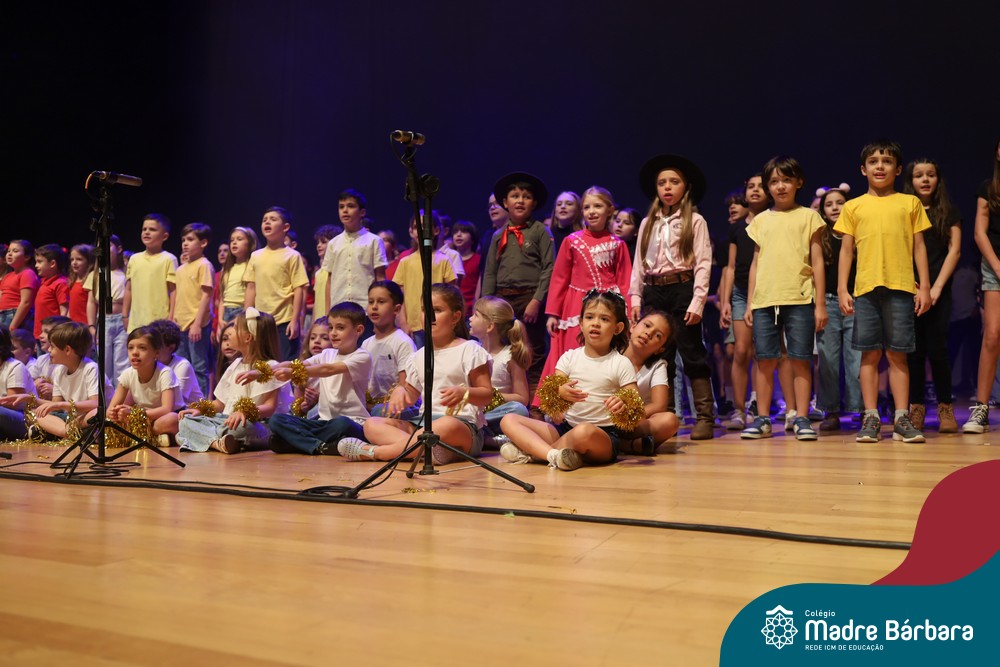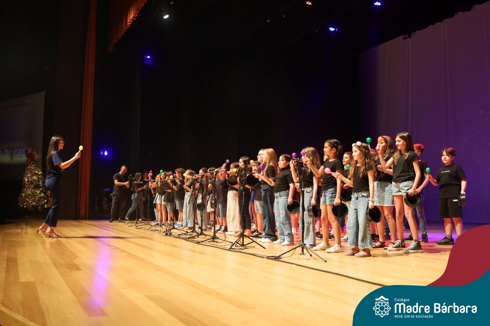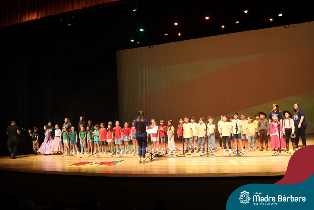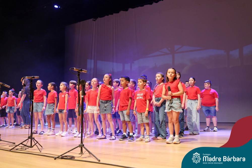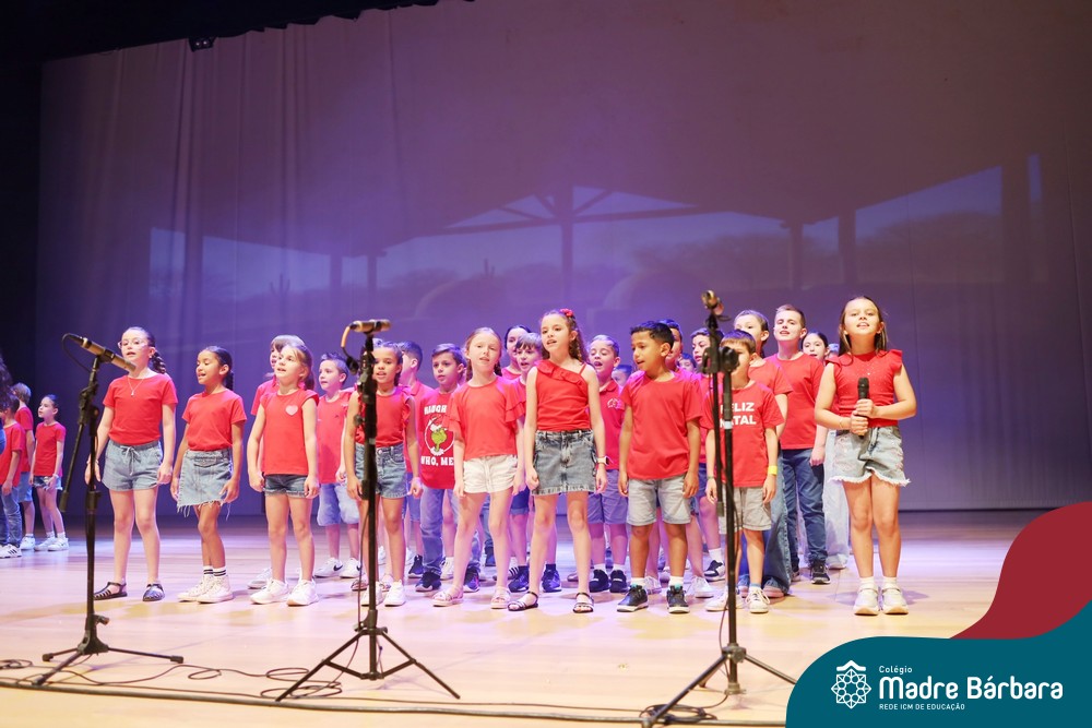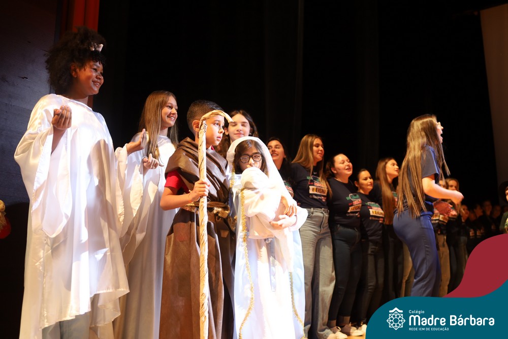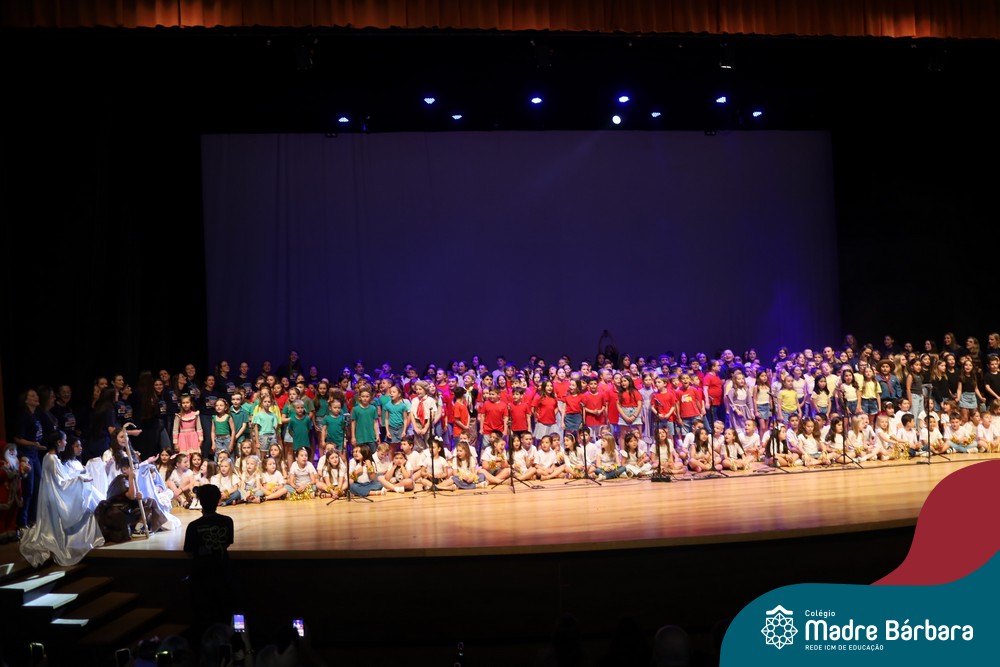 Na noite de quarta-feira, 3 de dezembro, o Teatro da Univates foi palco de um espetáculo encantador: a apresentação dos Anos Iniciais do Colégio Madre Bárbara, com a temática “Cantata de Natal – O Presente Perdido”. Dividido em dois momentos, o evento reuniu as turmas do 1º ao 5º ano dos turnos da manhã e da tarde, que brilharam com talento, sensibilidade e uma qualidade artística que emocionou todos os presentes. Interpretando, cantando, tocando e dançando músicas populares brasileiras, representando diversas localidades do Brasil, as crianças deram um show de conhecimento e celebraram com alegria a riqueza da nossa cultura.