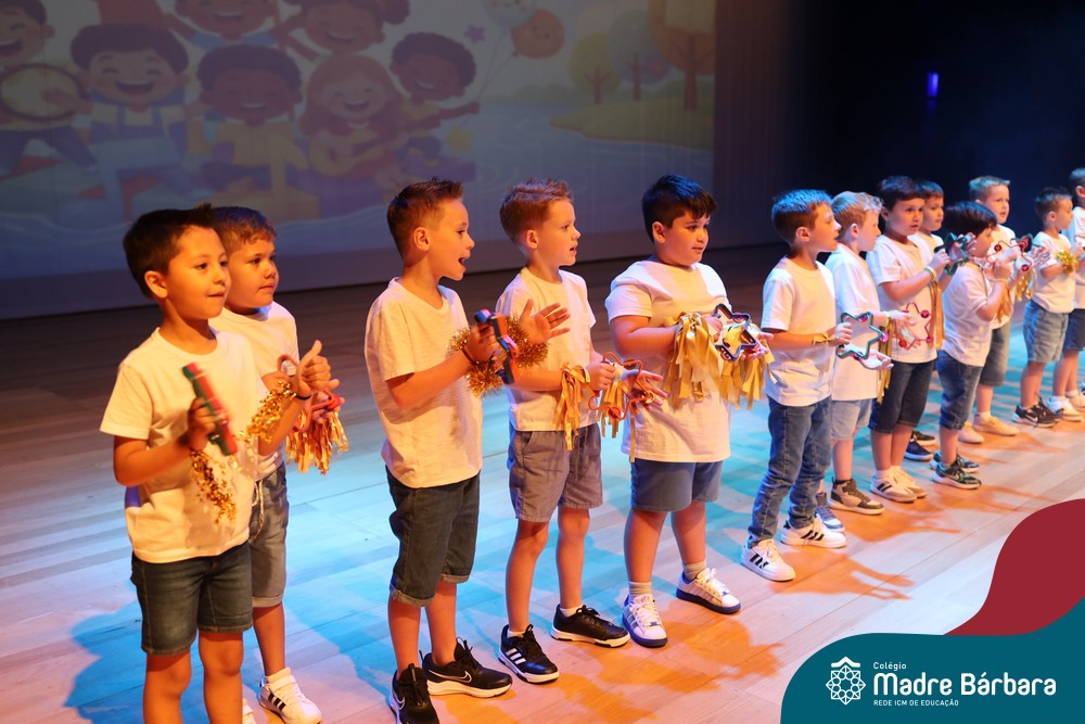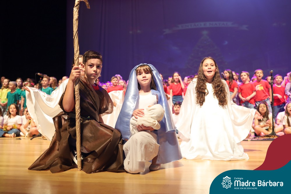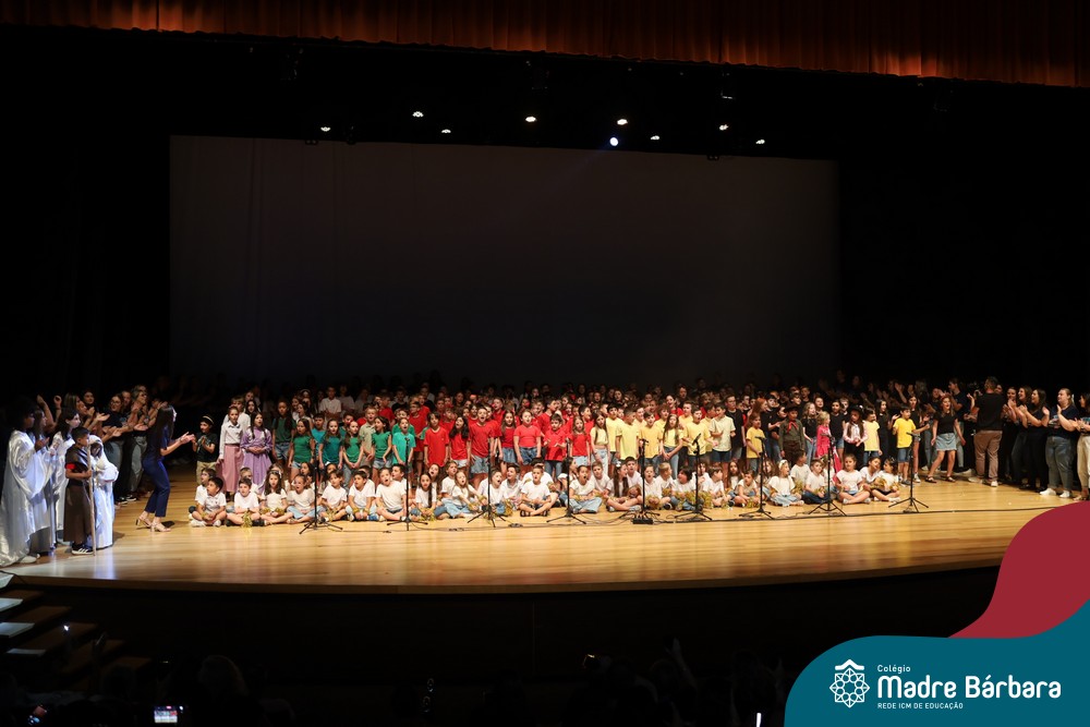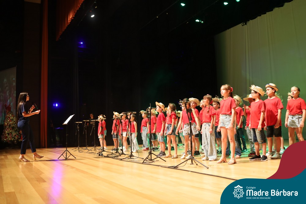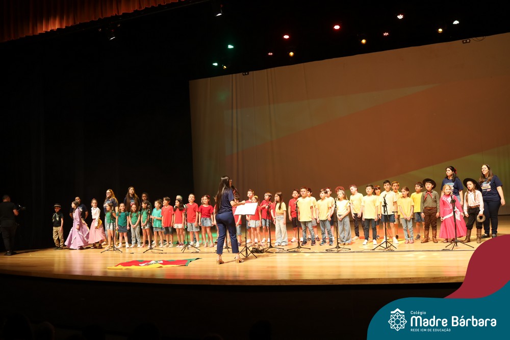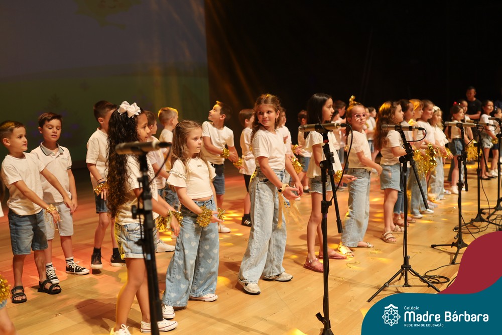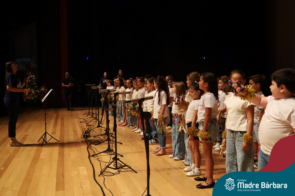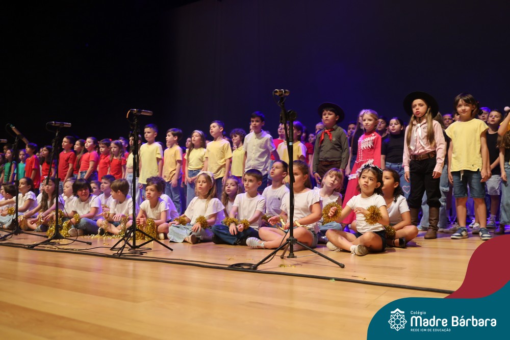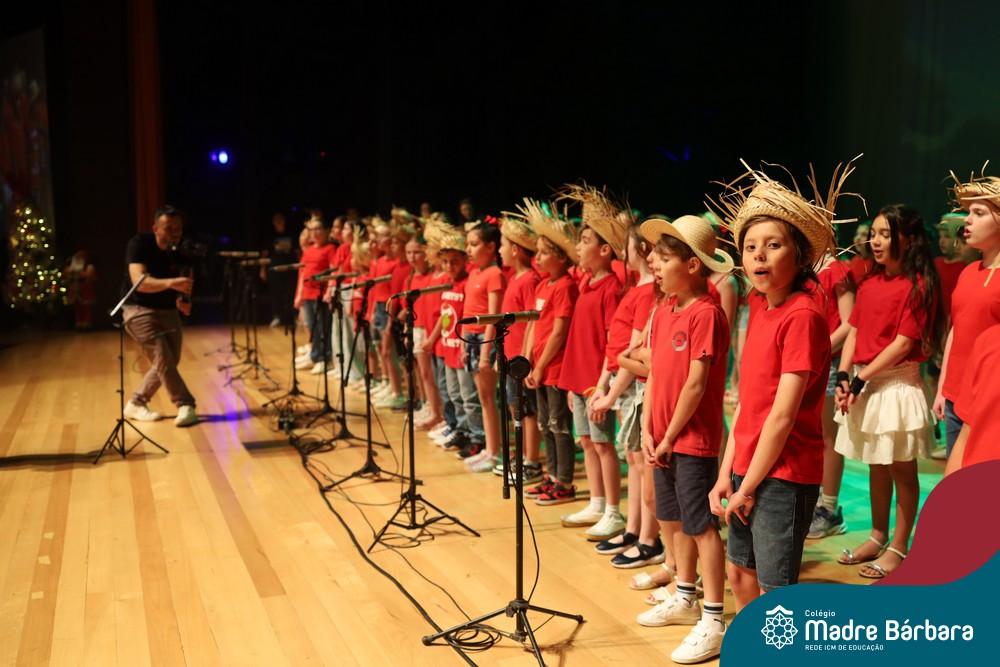 Na noite de quarta-feira, 3 de dezembro, o Teatro da Univates foi palco de um espetáculo encantador: a apresentação dos Anos Iniciais do Colégio Madre Bárbara, com a temática “Cantata de Natal – O Presente Perdido”. Dividido em dois momentos, o evento reuniu as turmas do 1º ao 5º ano dos turnos da manhã e da tarde, que brilharam com talento, sensibilidade e uma qualidade artística que emocionou todos os presentes. Interpretando, cantando, tocando e dançando músicas populares brasileiras, representando diversas localidades do Brasil, as crianças deram um show de conhecimento e celebraram com alegria a riqueza da nossa cultura.