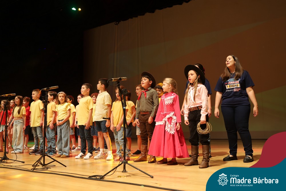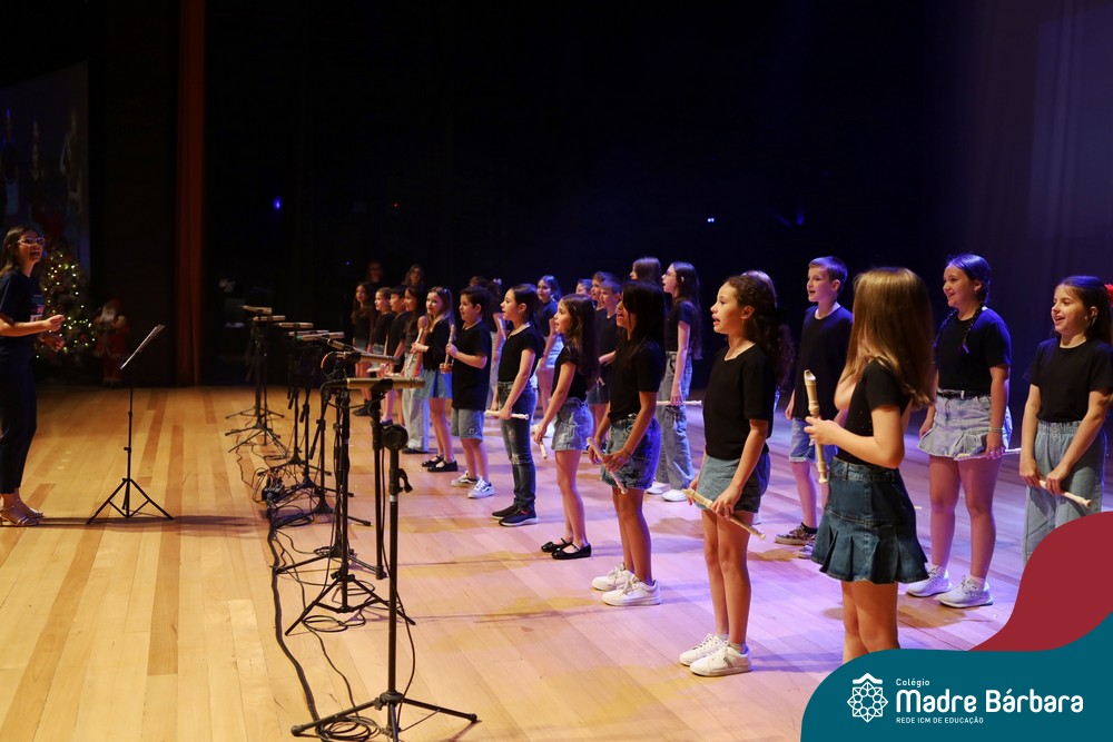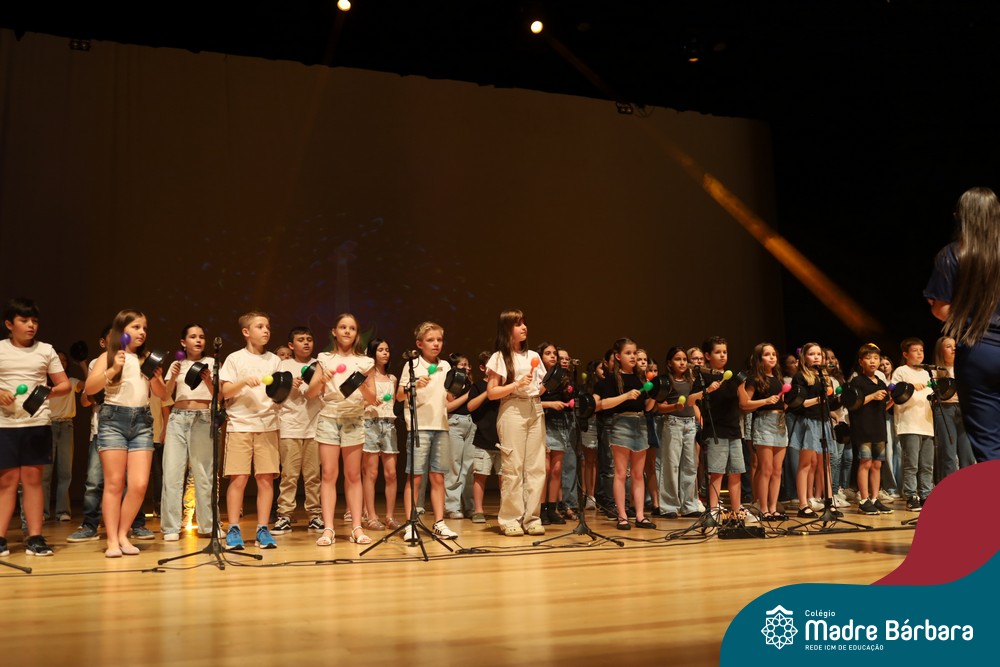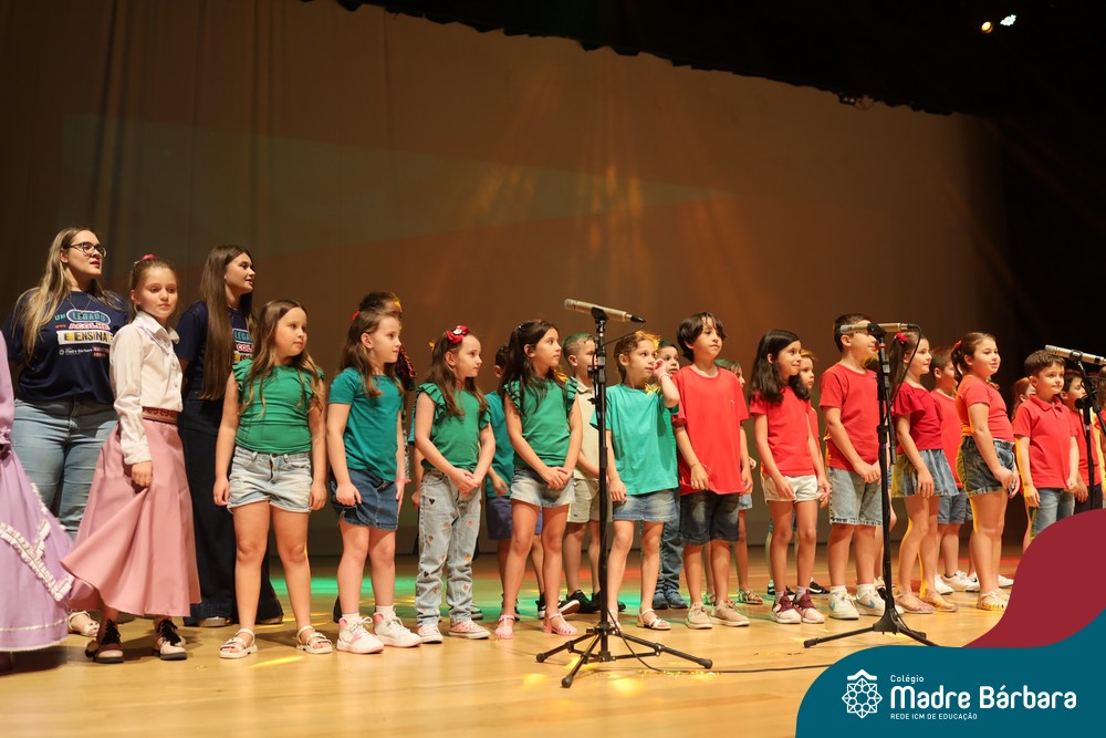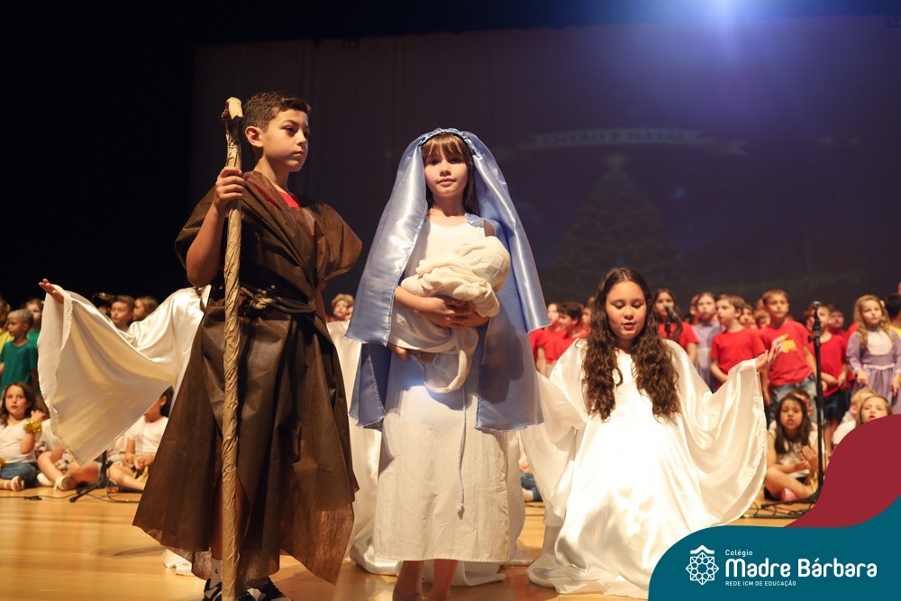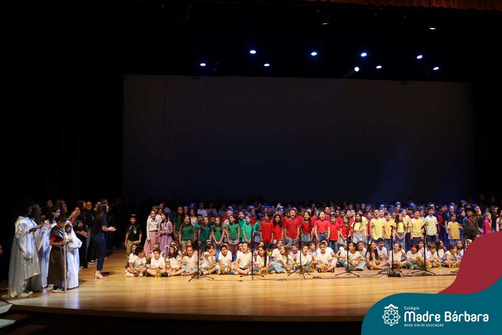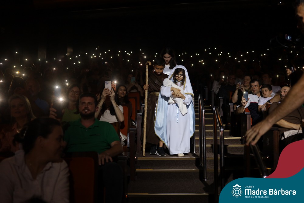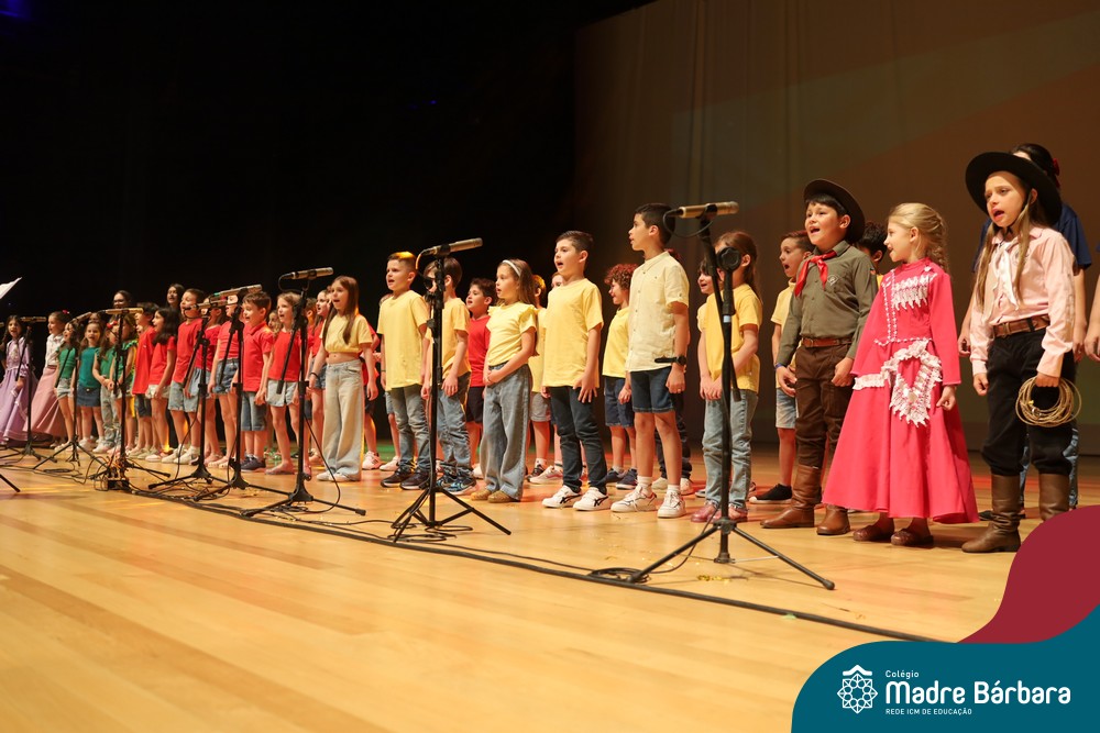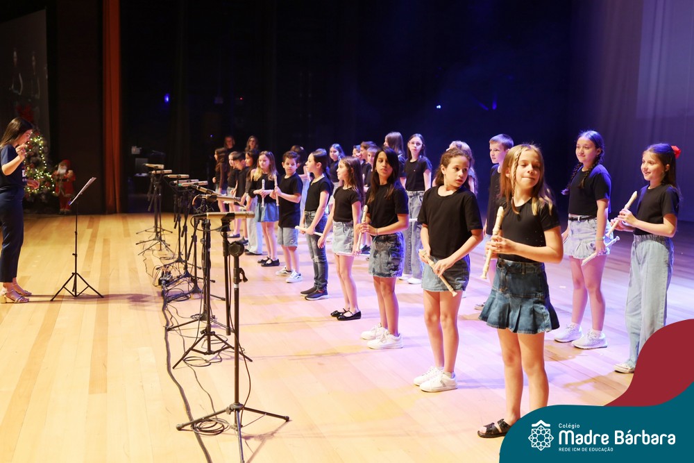Na noite de quarta-feira, 3 de dezembro, o Teatro da Univates foi palco de um espetáculo encantador: a apresentação dos Anos Iniciais do Colégio Madre Bárbara, com a temática “Cantata de Natal – O Presente Perdido”. Dividido em dois momentos, o evento reuniu as turmas do 1º ao 5º ano dos turnos da manhã e da tarde, que brilharam com talento, sensibilidade e uma qualidade artística que emocionou todos os presentes. Interpretando, cantando, tocando e dançando músicas populares brasileiras, representando diversas localidades do Brasil, as crianças deram um show de conhecimento e celebraram com alegria a riqueza da nossa cultura.