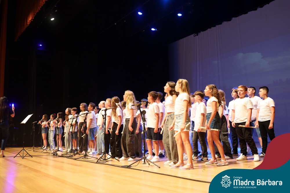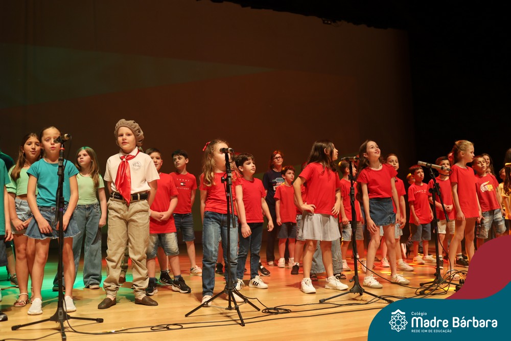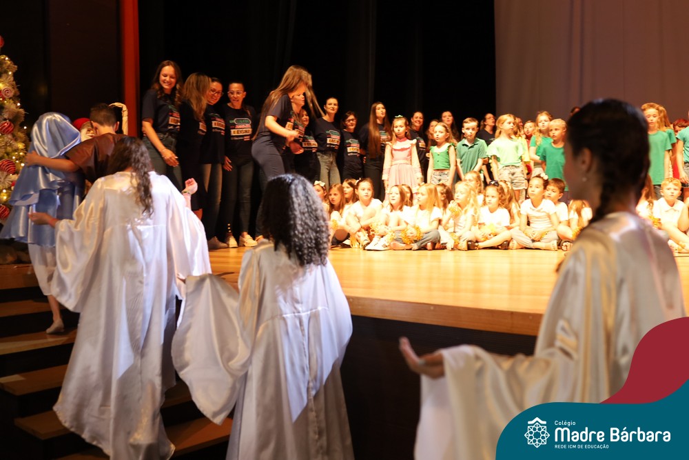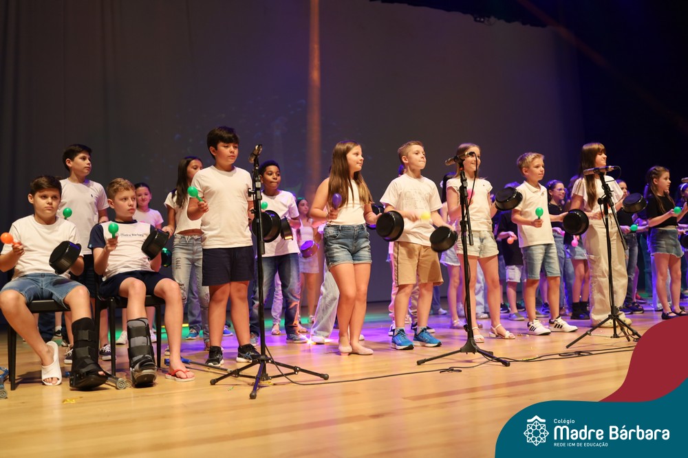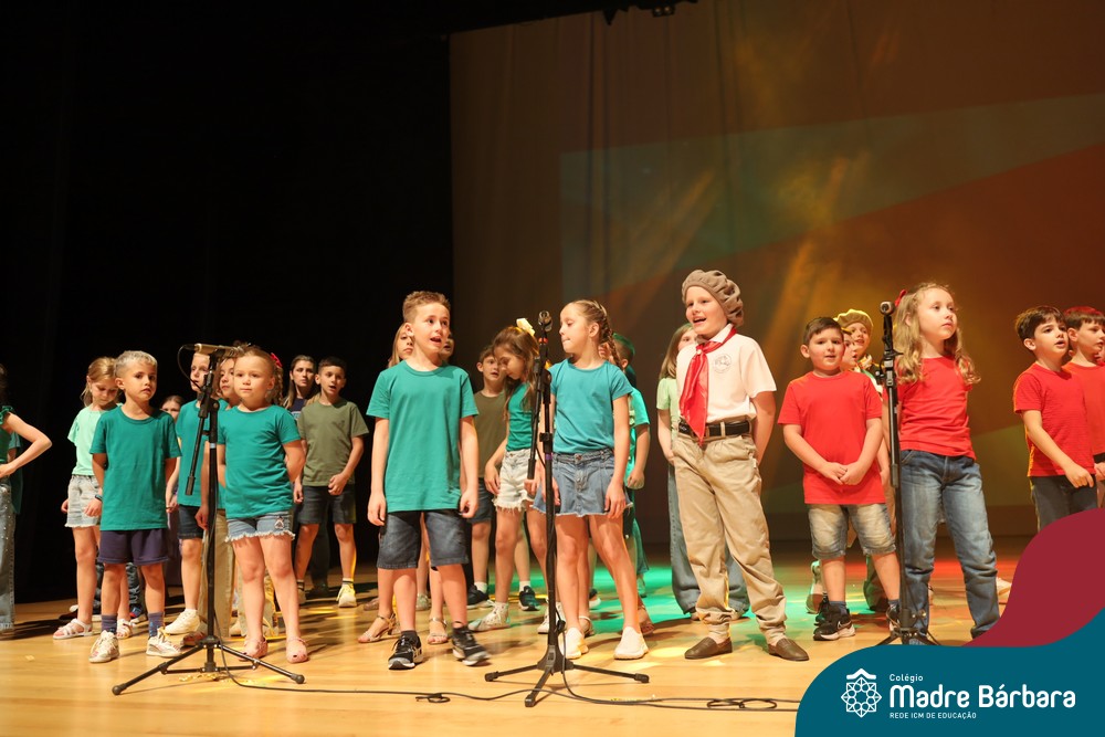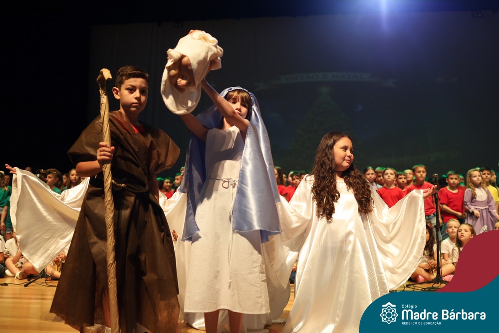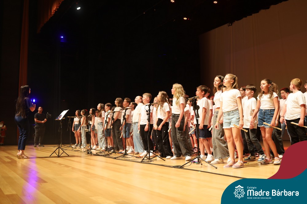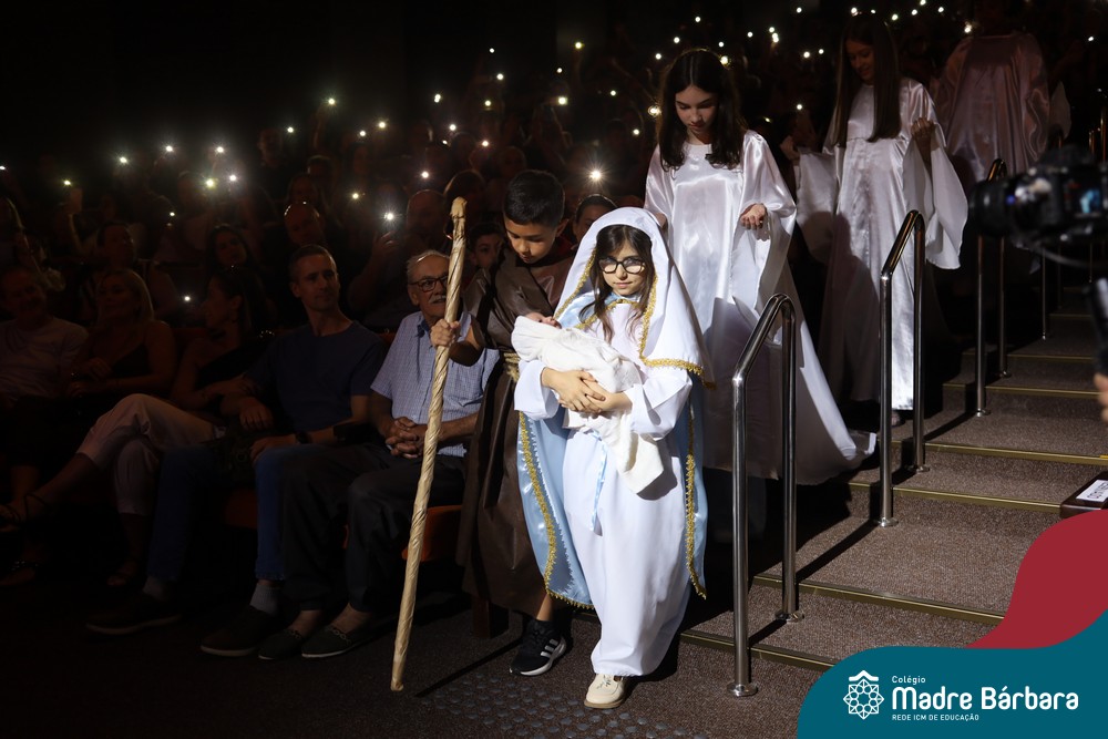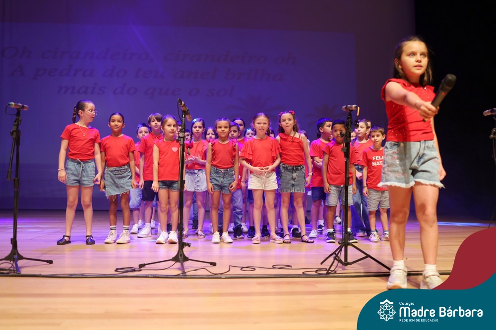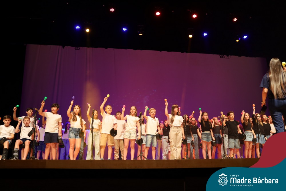 Na noite de quarta-feira, 3 de dezembro, o Teatro da Univates foi palco de um espetáculo encantador: a apresentação dos Anos Iniciais do Colégio Madre Bárbara, com a temática “Cantata de Natal – O Presente Perdido”. Dividido em dois momentos, o evento reuniu as turmas do 1º ao 5º ano dos turnos da manhã e da tarde, que brilharam com talento, sensibilidade e uma qualidade artística que emocionou todos os presentes. Interpretando, cantando, tocando e dançando músicas populares brasileiras, representando diversas localidades do Brasil, as crianças deram um show de conhecimento e celebraram com alegria a riqueza da nossa cultura.