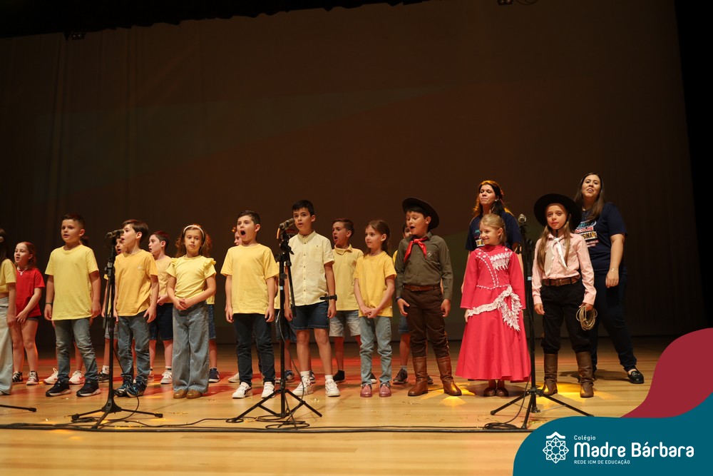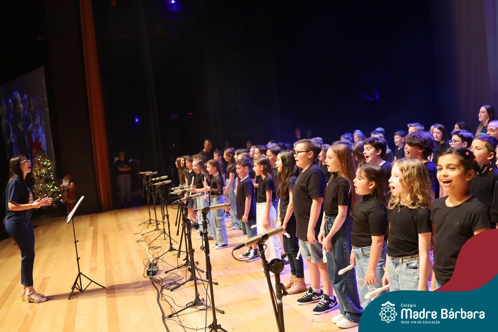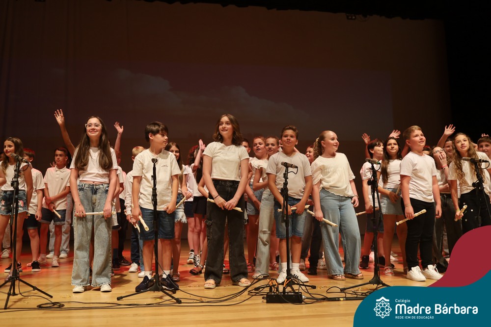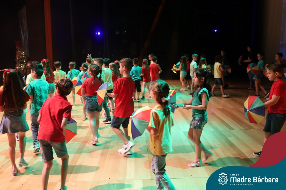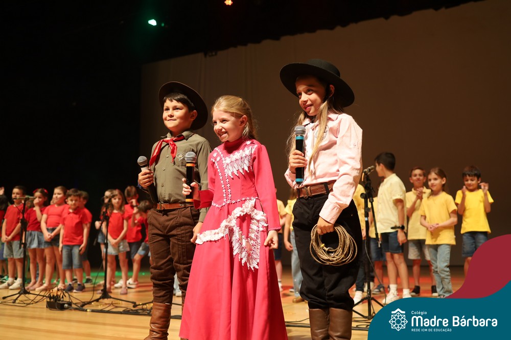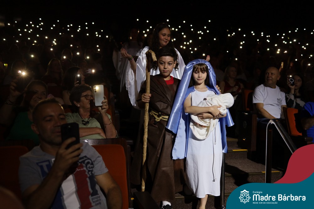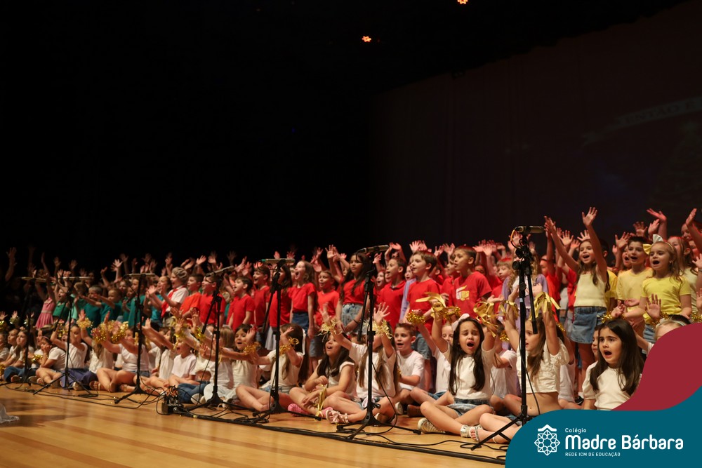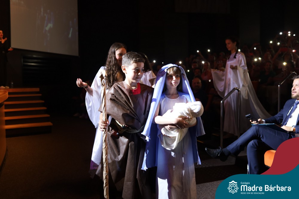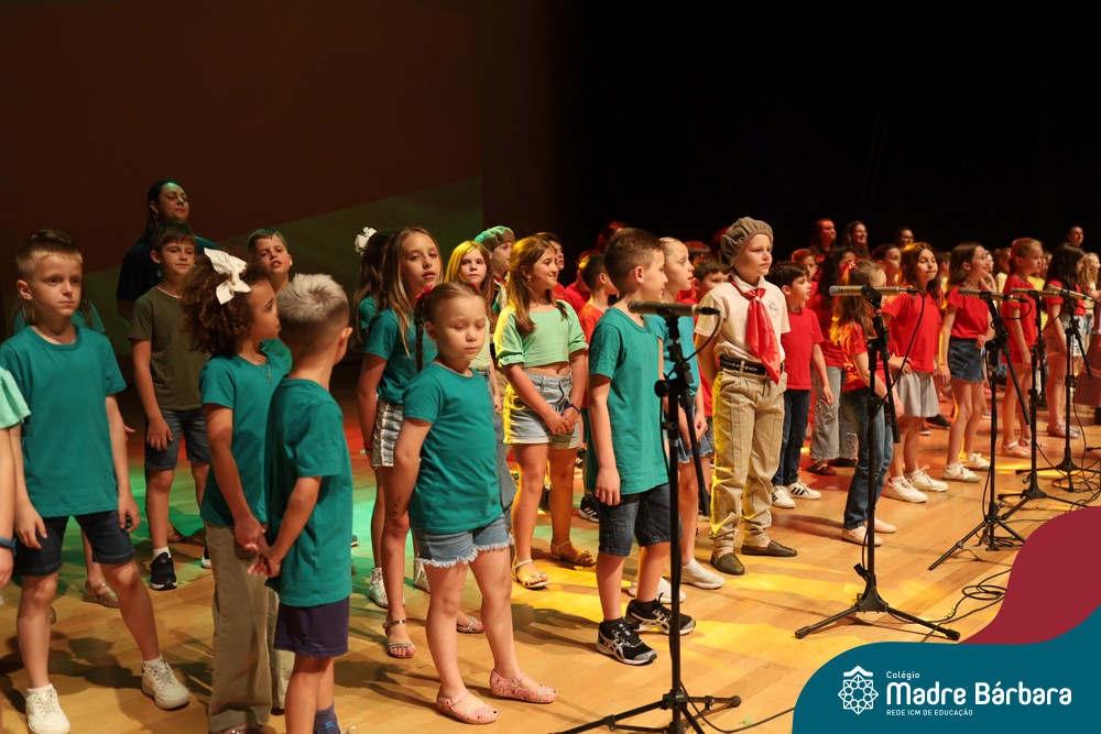 Na noite de quarta-feira, 3 de dezembro, o Teatro da Univates foi palco de um espetáculo encantador: a apresentação dos Anos Iniciais do Colégio Madre Bárbara, com a temática “Cantata de Natal – O Presente Perdido”. Dividido em dois momentos, o evento reuniu as turmas do 1º ao 5º ano dos turnos da manhã e da tarde, que brilharam com talento, sensibilidade e uma qualidade artística que emocionou todos os presentes. Interpretando, cantando, tocando e dançando músicas populares brasileiras, representando diversas localidades do Brasil, as crianças deram um show de conhecimento e celebraram com alegria a riqueza da nossa cultura.