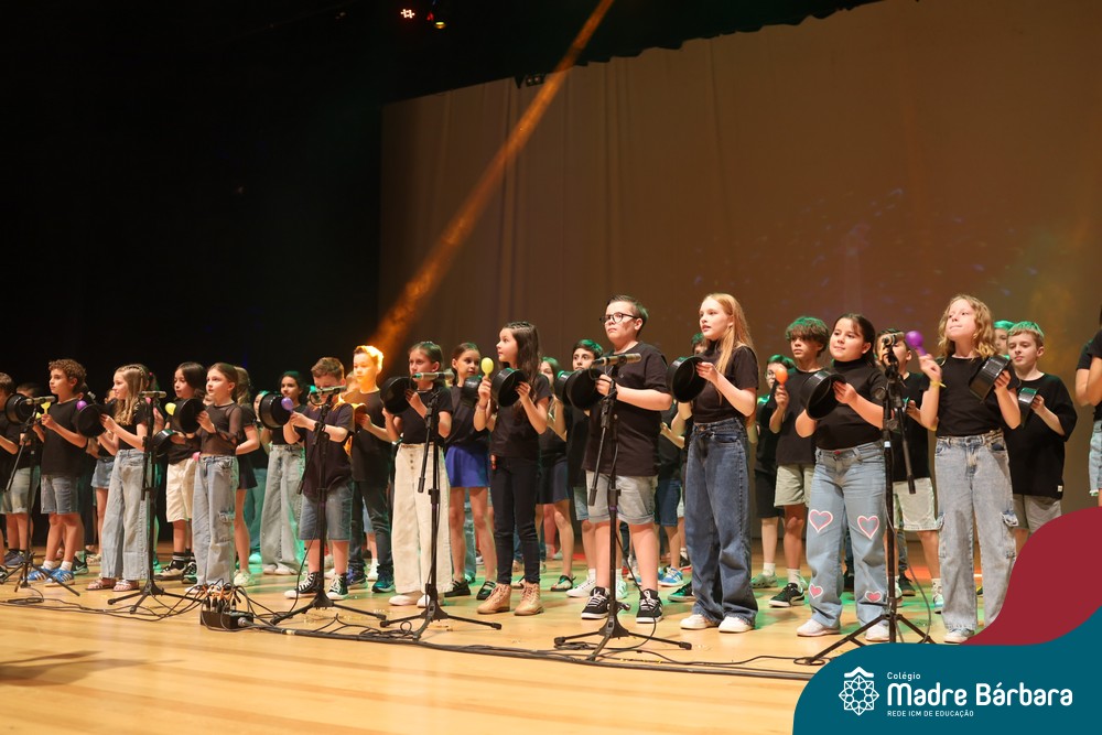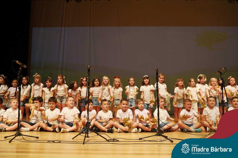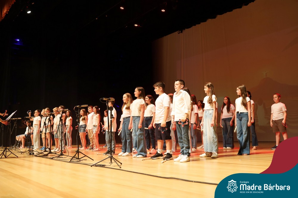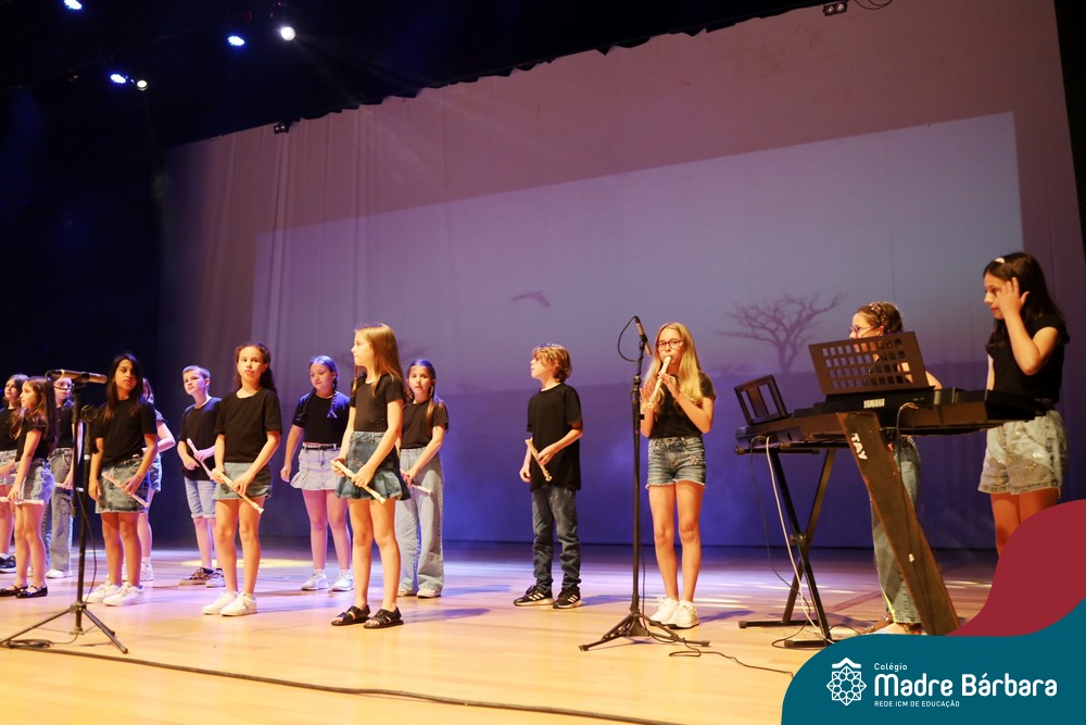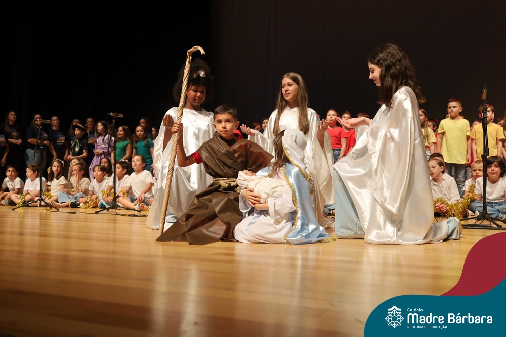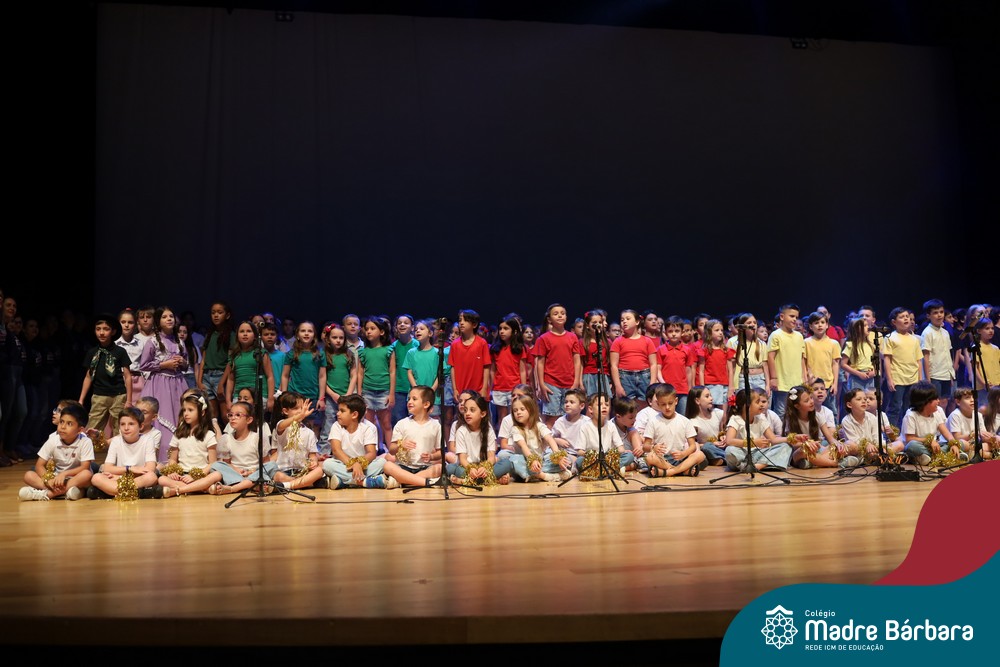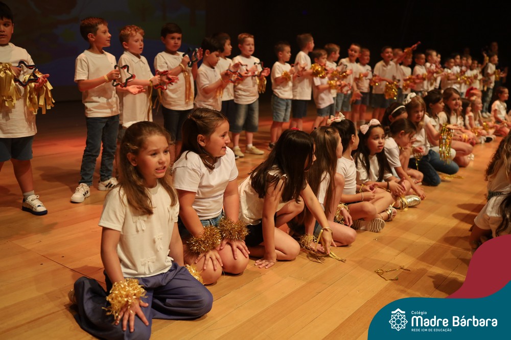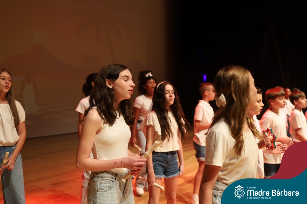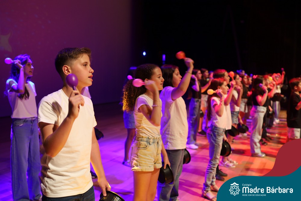 Na noite de quarta-feira, 3 de dezembro, o Teatro da Univates foi palco de um espetáculo encantador: a apresentação dos Anos Iniciais do Colégio Madre Bárbara, com a temática “Cantata de Natal – O Presente Perdido”. Dividido em dois momentos, o evento reuniu as turmas do 1º ao 5º ano dos turnos da manhã e da tarde, que brilharam com talento, sensibilidade e uma qualidade artística que emocionou todos os presentes. Interpretando, cantando, tocando e dançando músicas populares brasileiras, representando diversas localidades do Brasil, as crianças deram um show de conhecimento e celebraram com alegria a riqueza da nossa cultura.