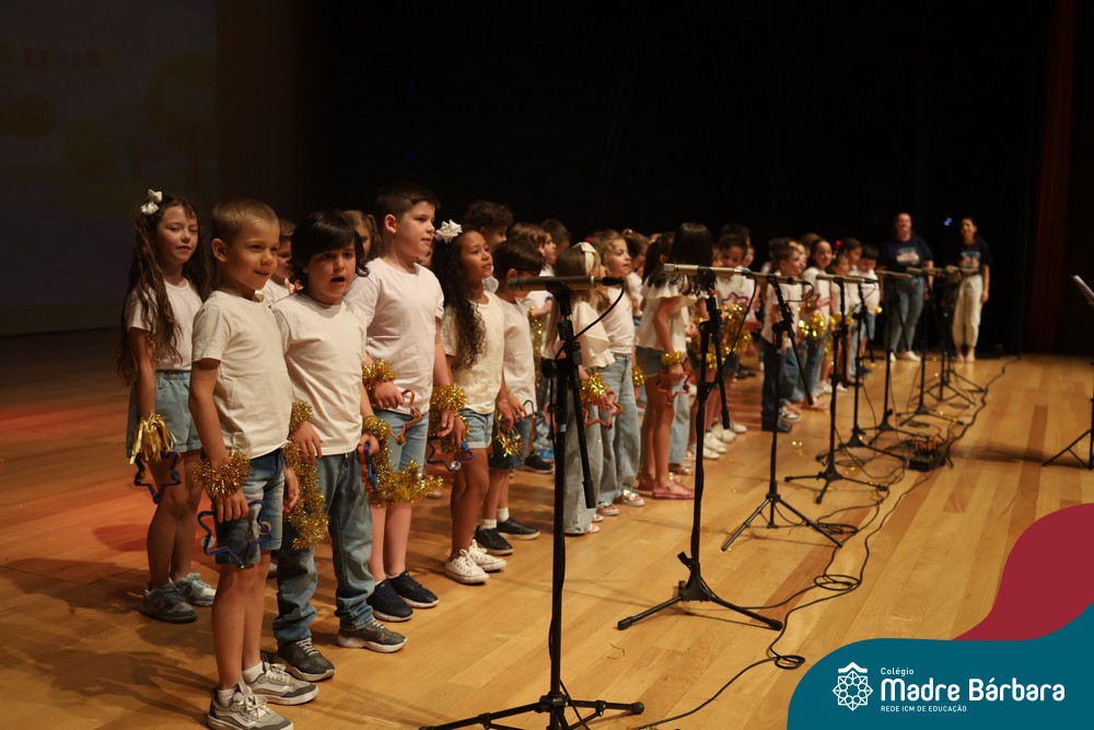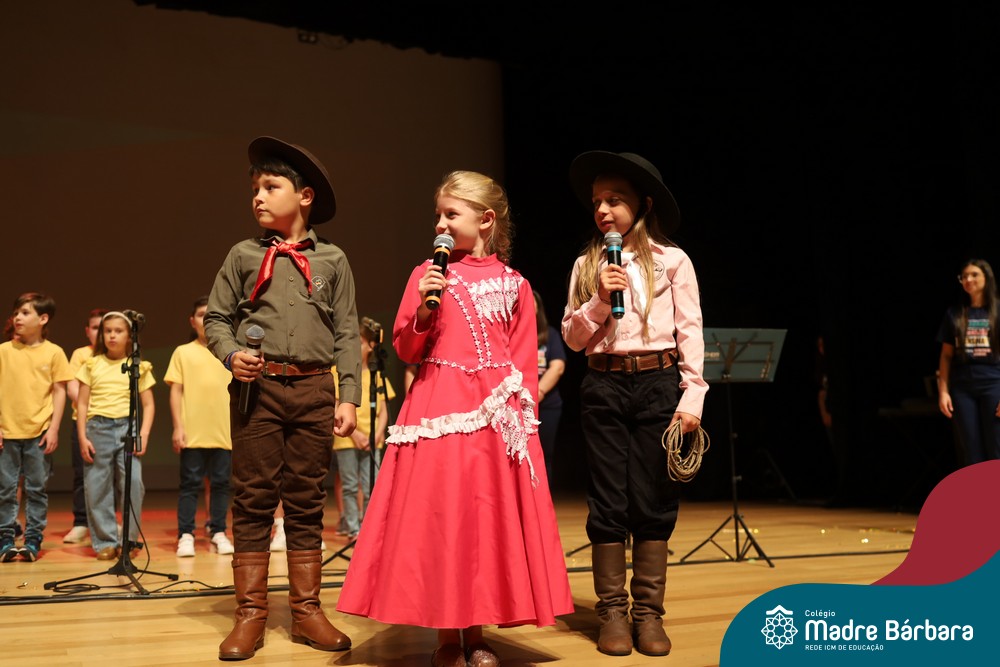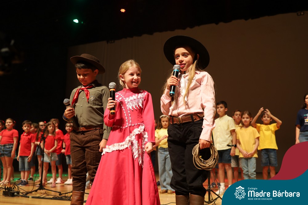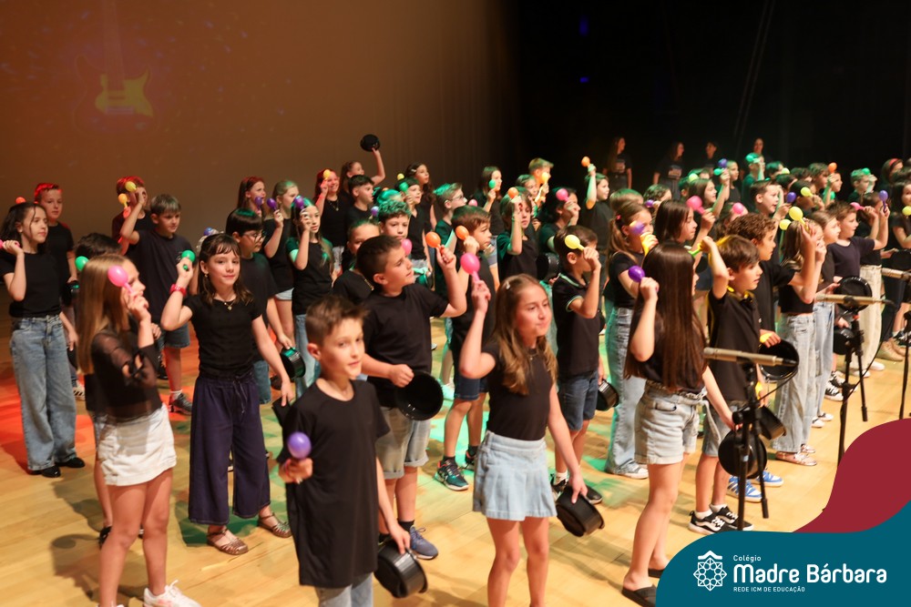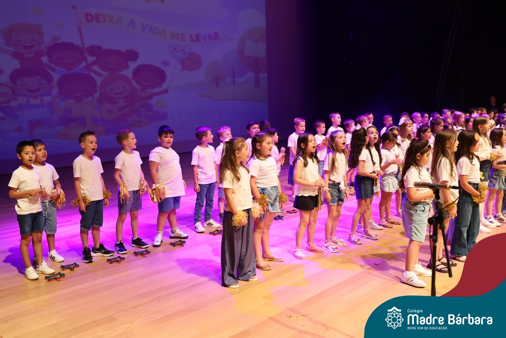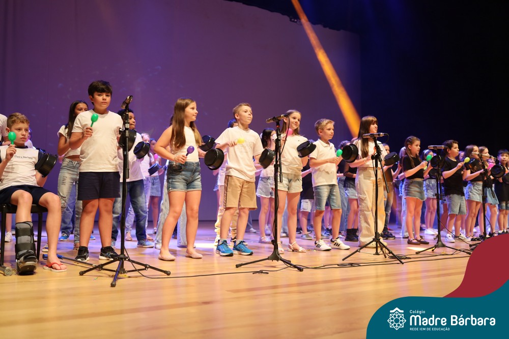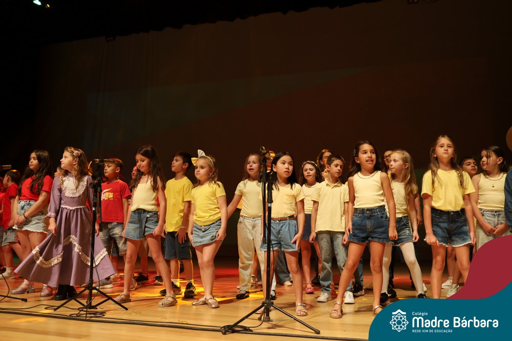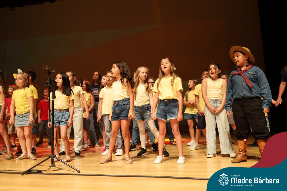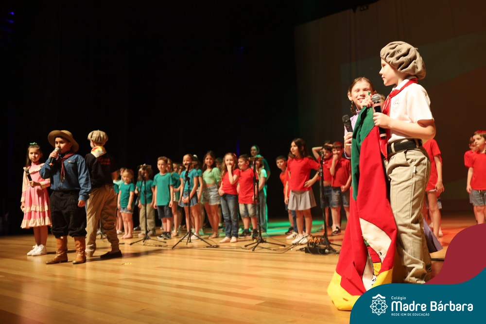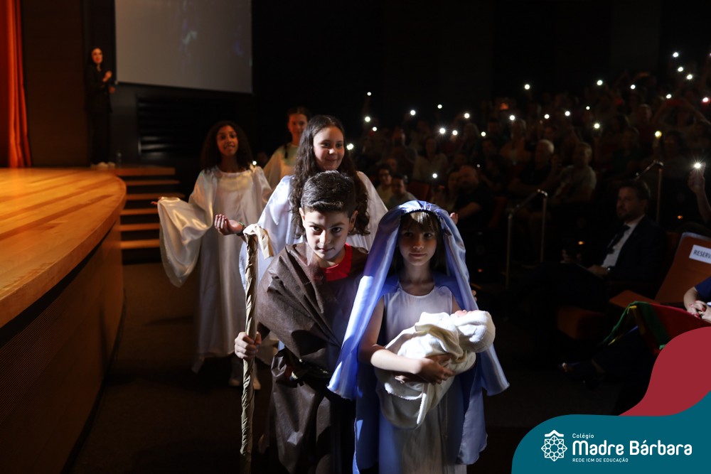Na noite de quarta-feira, 3 de dezembro, o Teatro da Univates foi palco de um espetáculo encantador: a apresentação dos Anos Iniciais do Colégio Madre Bárbara, com a temática “Cantata de Natal – O Presente Perdido”. Dividido em dois momentos, o evento reuniu as turmas do 1º ao 5º ano dos turnos da manhã e da tarde, que brilharam com talento, sensibilidade e uma qualidade artística que emocionou todos os presentes. Interpretando, cantando, tocando e dançando músicas populares brasileiras, representando diversas localidades do Brasil, as crianças deram um show de conhecimento e celebraram com alegria a riqueza da nossa cultura.