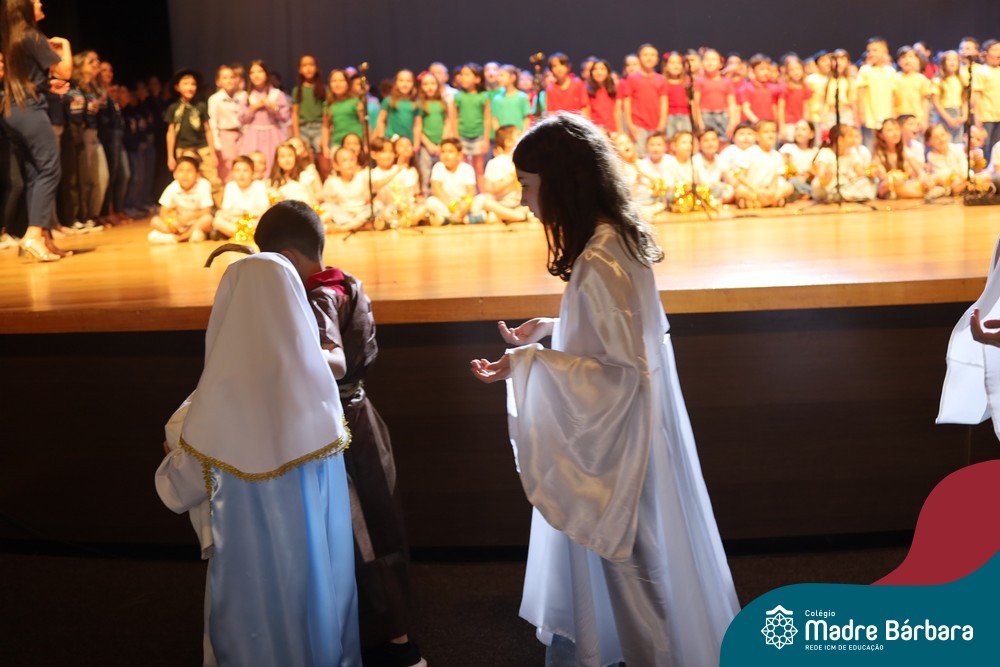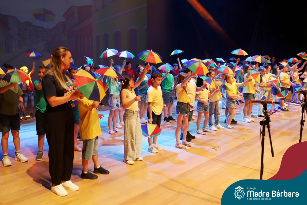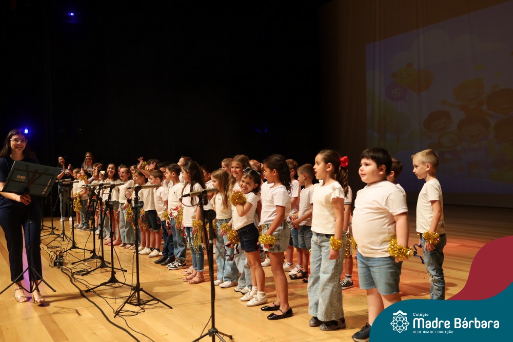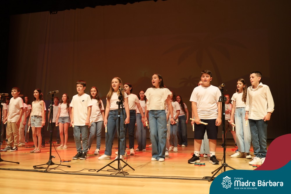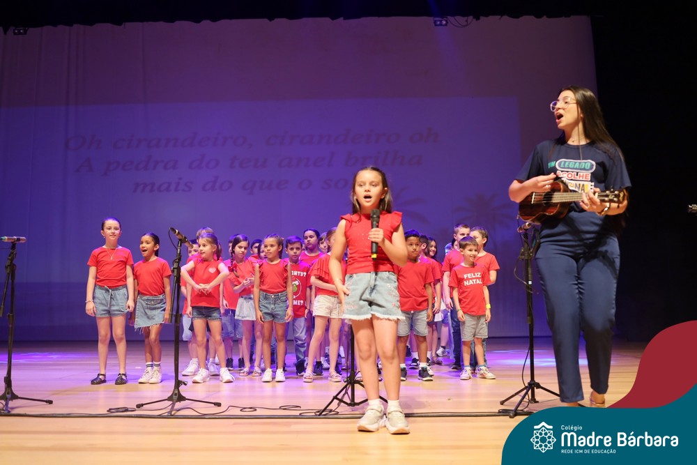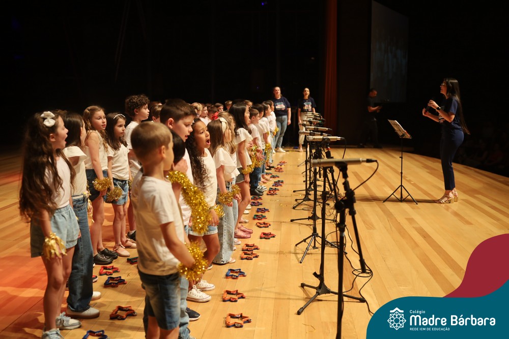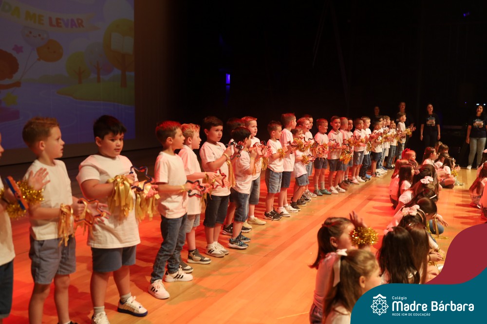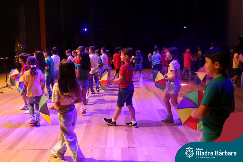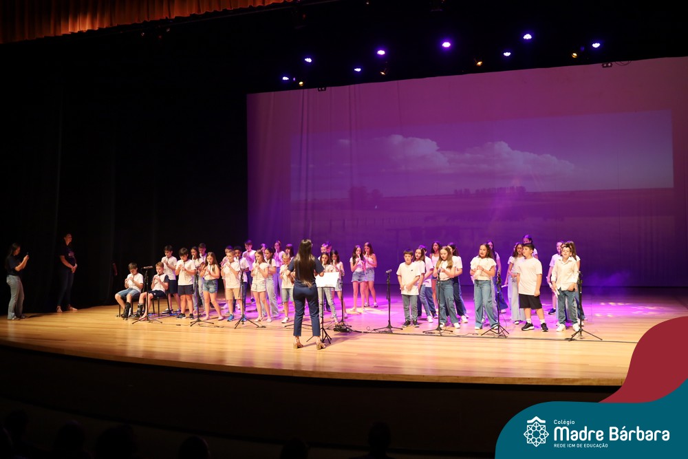 Na noite de quarta-feira, 3 de dezembro, o Teatro da Univates foi palco de um espetáculo encantador: a apresentação dos Anos Iniciais do Colégio Madre Bárbara, com a temática “Cantata de Natal – O Presente Perdido”. Dividido em dois momentos, o evento reuniu as turmas do 1º ao 5º ano dos turnos da manhã e da tarde, que brilharam com talento, sensibilidade e uma qualidade artística que emocionou todos os presentes. Interpretando, cantando, tocando e dançando músicas populares brasileiras, representando diversas localidades do Brasil, as crianças deram um show de conhecimento e celebraram com alegria a riqueza da nossa cultura.
