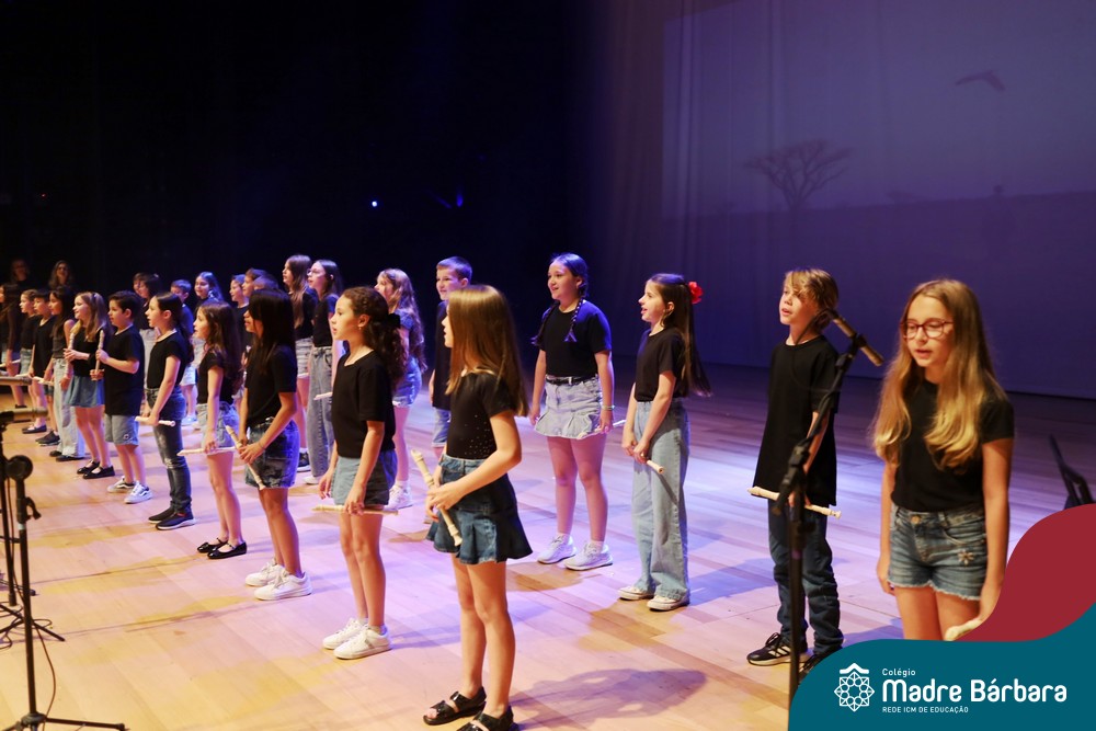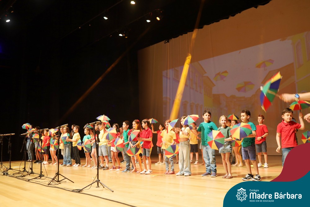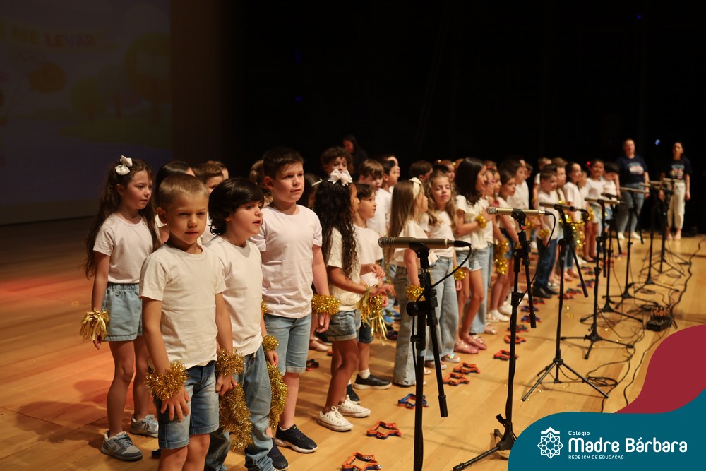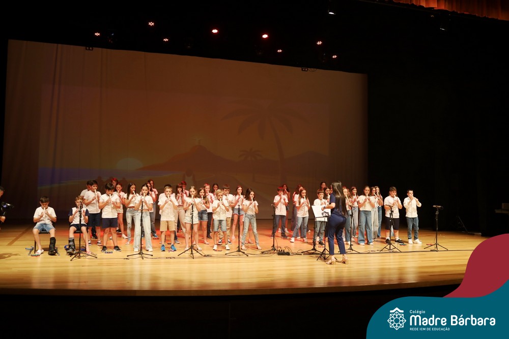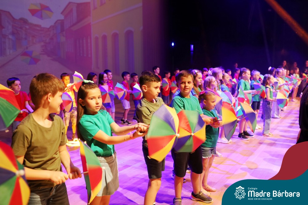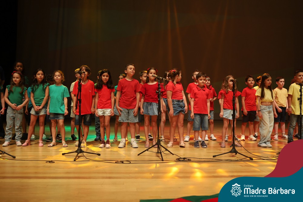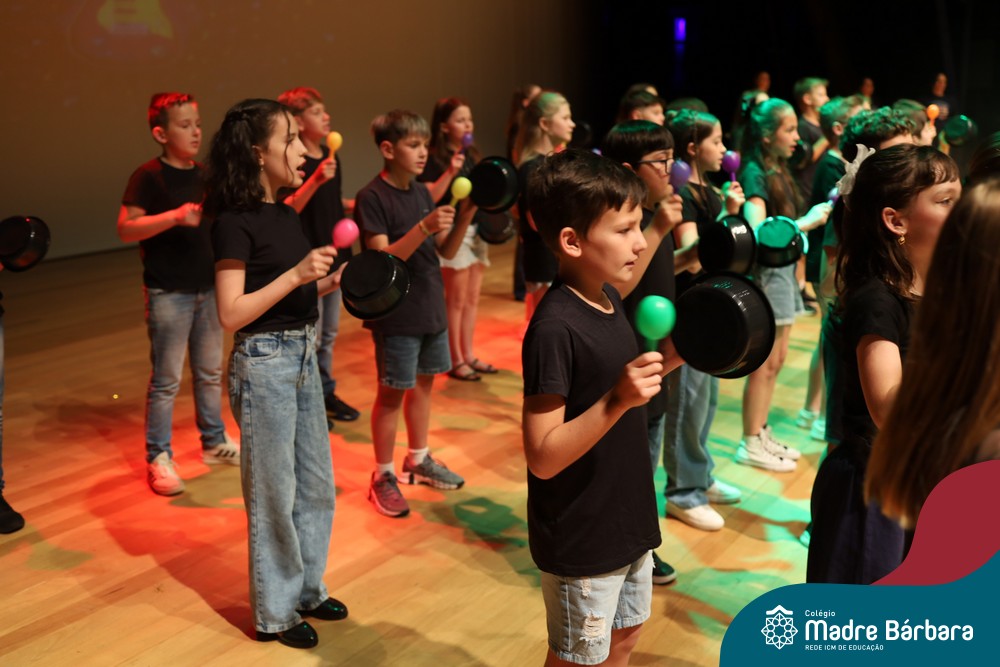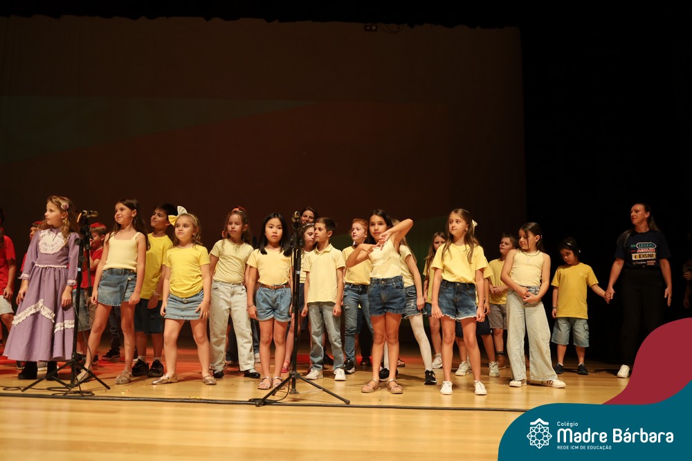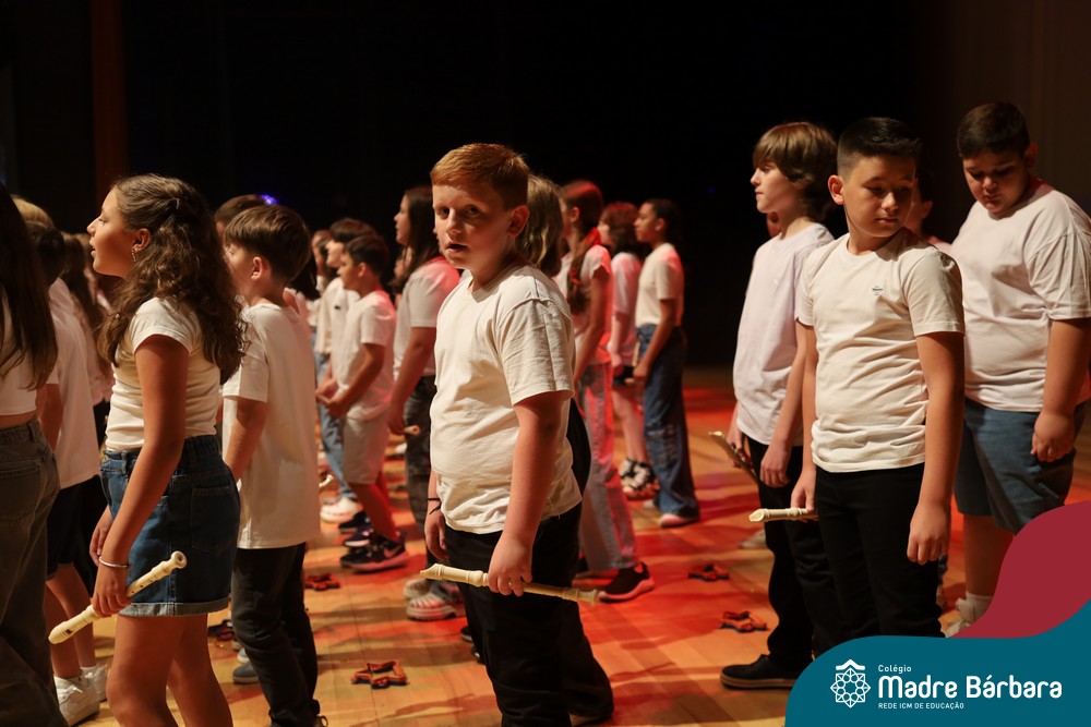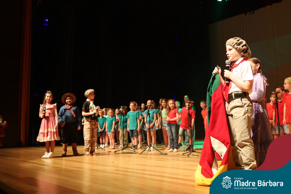Na noite de quarta-feira, 3 de dezembro, o Teatro da Univates foi palco de um espetáculo encantador: a apresentação dos Anos Iniciais do Colégio Madre Bárbara, com a temática “Cantata de Natal – O Presente Perdido”. Dividido em dois momentos, o evento reuniu as turmas do 1º ao 5º ano dos turnos da manhã e da tarde, que brilharam com talento, sensibilidade e uma qualidade artística que emocionou todos os presentes. Interpretando, cantando, tocando e dançando músicas populares brasileiras, representando diversas localidades do Brasil, as crianças deram um show de conhecimento e celebraram com alegria a riqueza da nossa cultura.