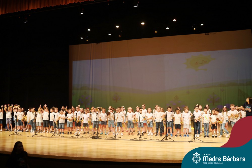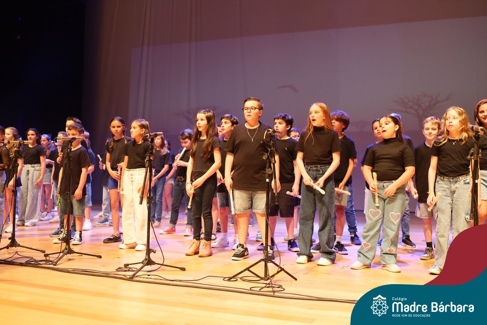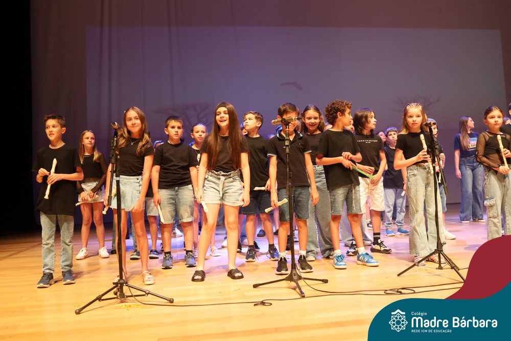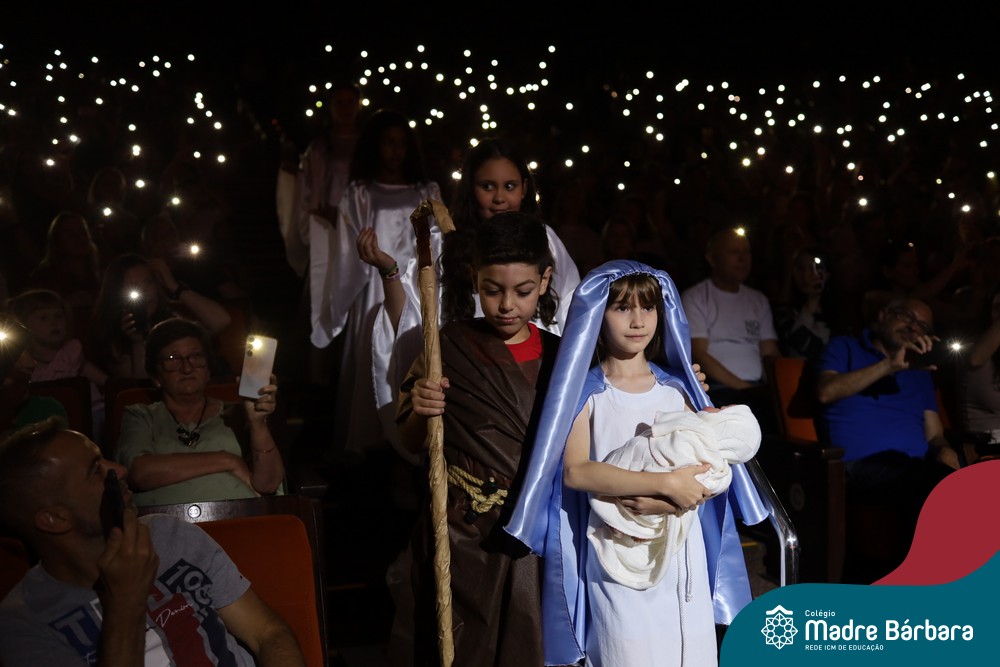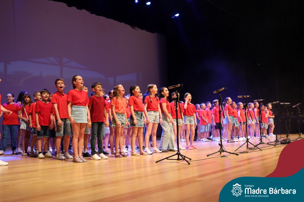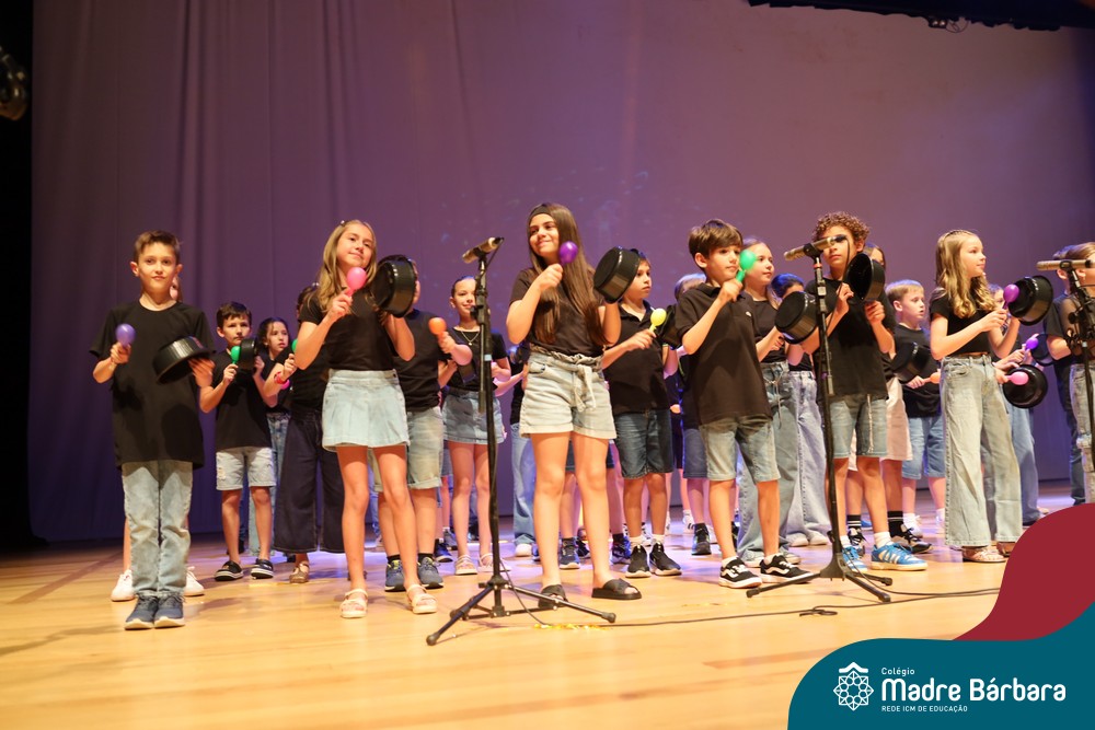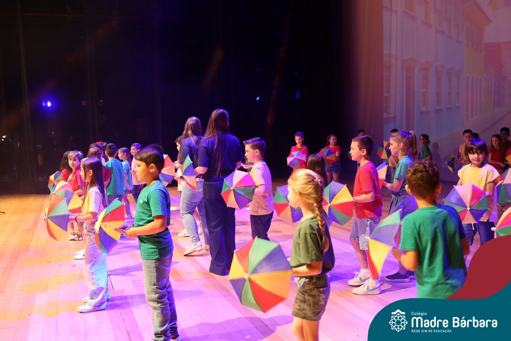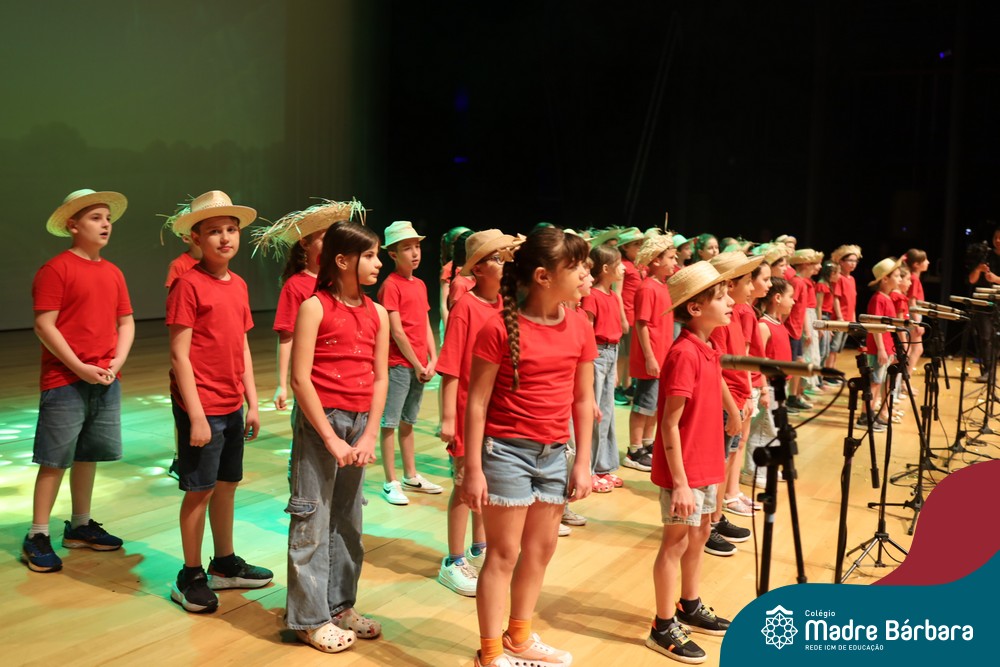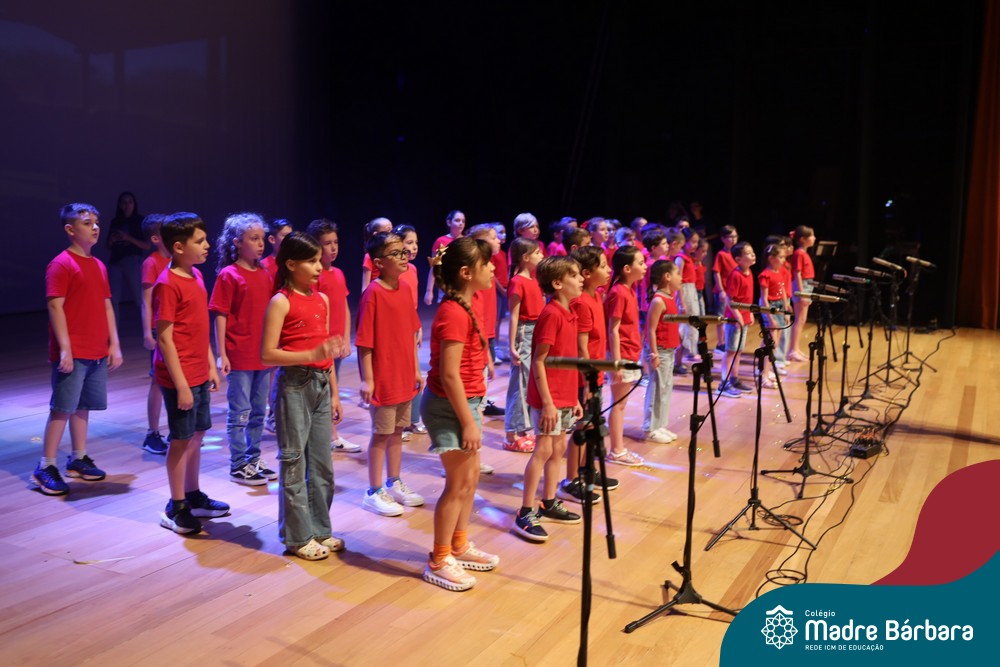 Na noite de quarta-feira, 3 de dezembro, o Teatro da Univates foi palco de um espetáculo encantador: a apresentação dos Anos Iniciais do Colégio Madre Bárbara, com a temática “Cantata de Natal – O Presente Perdido”. Dividido em dois momentos, o evento reuniu as turmas do 1º ao 5º ano dos turnos da manhã e da tarde, que brilharam com talento, sensibilidade e uma qualidade artística que emocionou todos os presentes. Interpretando, cantando, tocando e dançando músicas populares brasileiras, representando diversas localidades do Brasil, as crianças deram um show de conhecimento e celebraram com alegria a riqueza da nossa cultura.