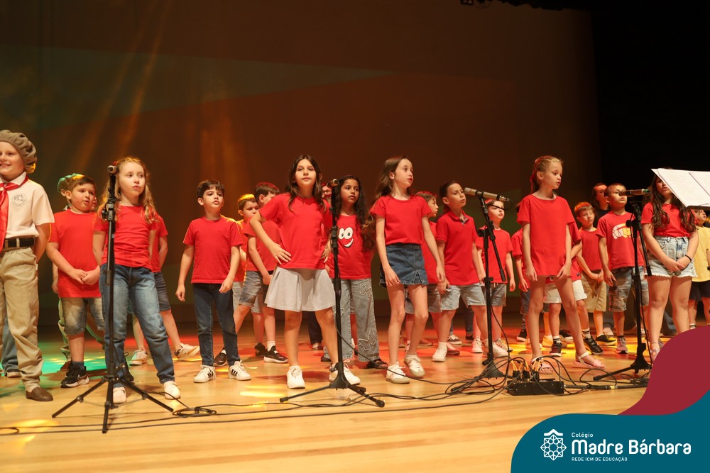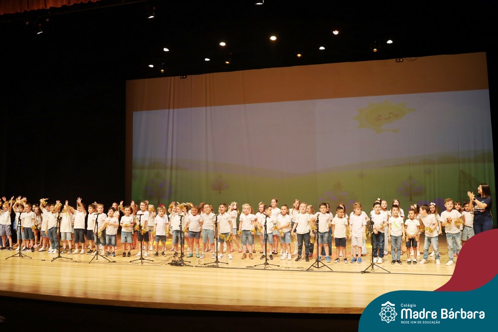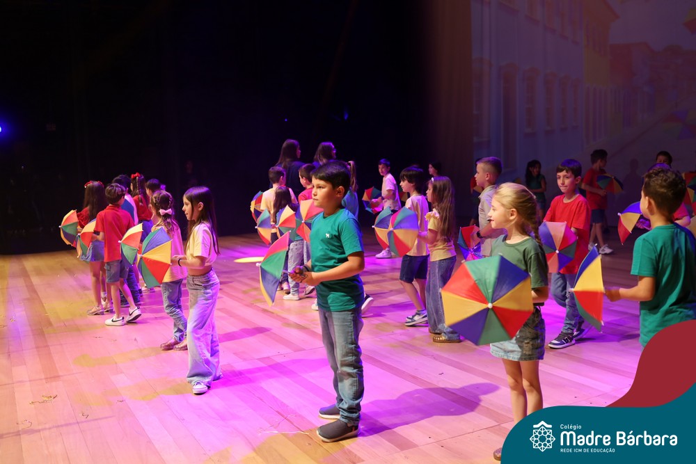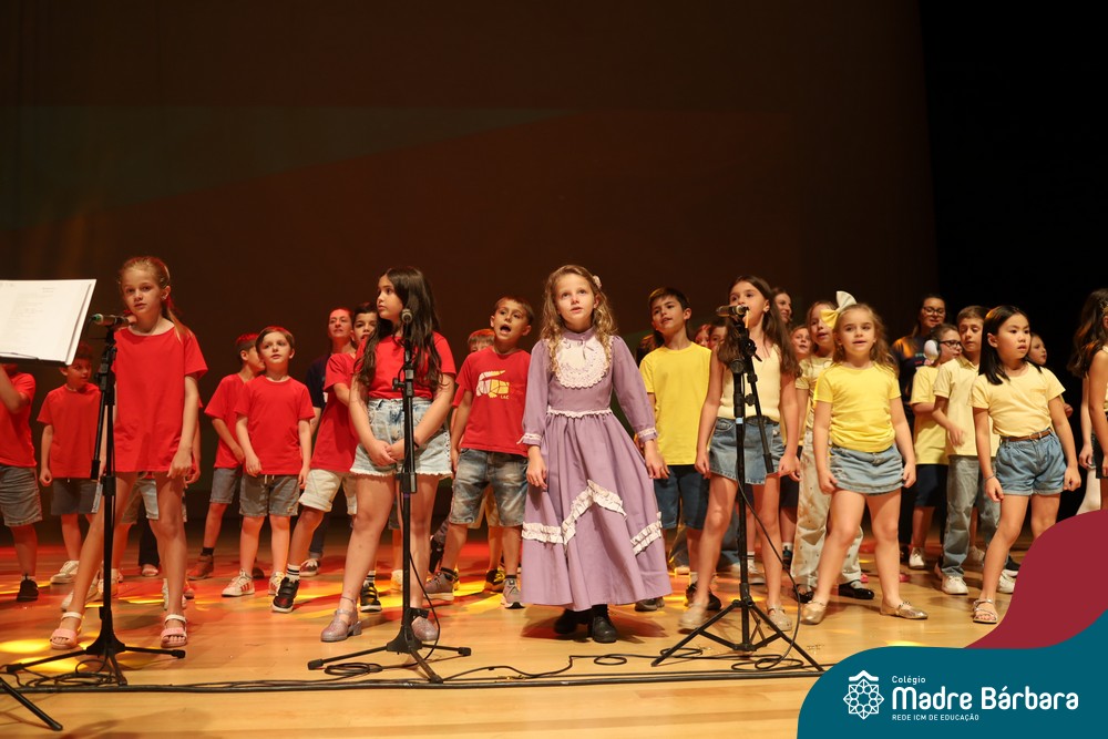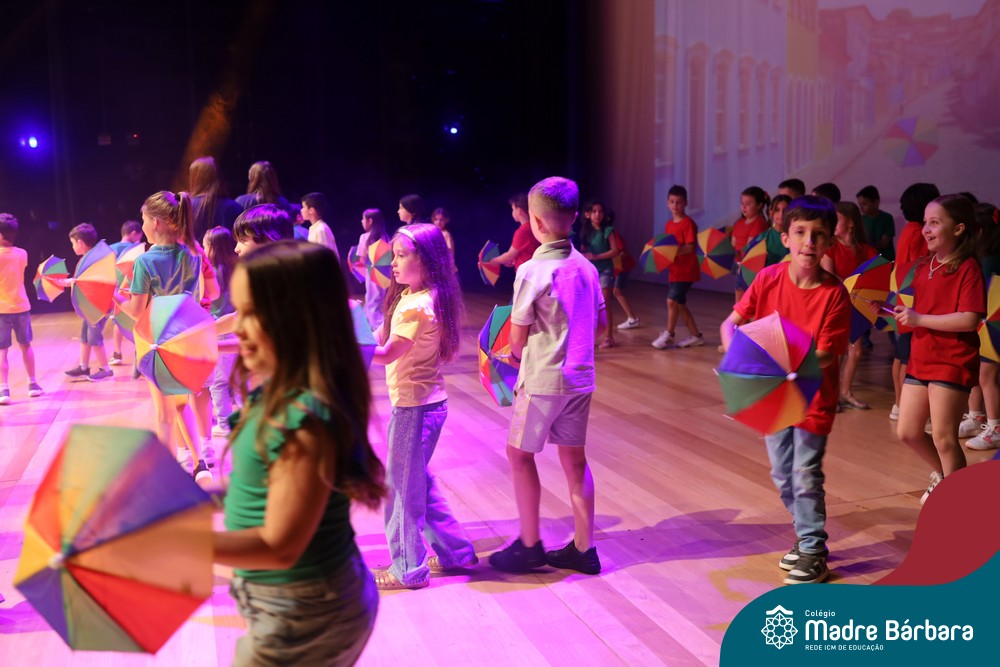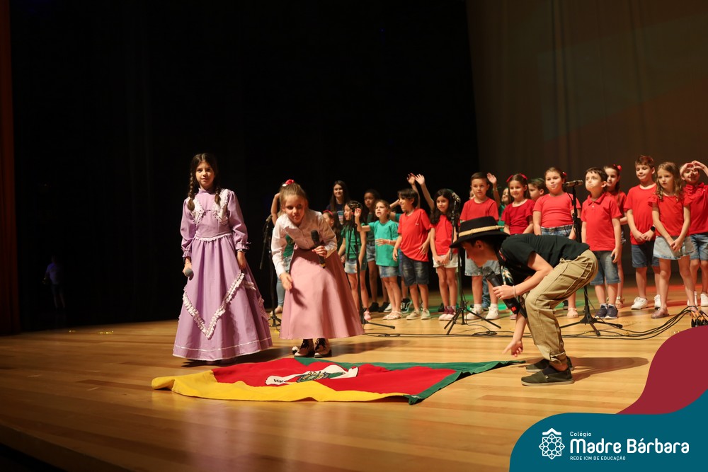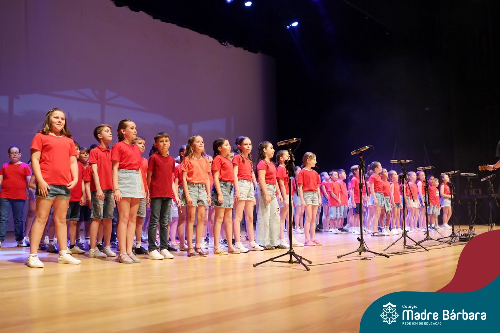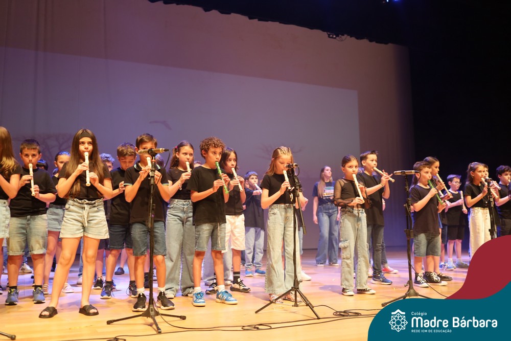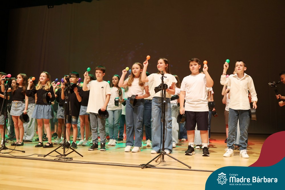 Na noite de quarta-feira, 3 de dezembro, o Teatro da Univates foi palco de um espetáculo encantador: a apresentação dos Anos Iniciais do Colégio Madre Bárbara, com a temática “Cantata de Natal – O Presente Perdido”. Dividido em dois momentos, o evento reuniu as turmas do 1º ao 5º ano dos turnos da manhã e da tarde, que brilharam com talento, sensibilidade e uma qualidade artística que emocionou todos os presentes. Interpretando, cantando, tocando e dançando músicas populares brasileiras, representando diversas localidades do Brasil, as crianças deram um show de conhecimento e celebraram com alegria a riqueza da nossa cultura.