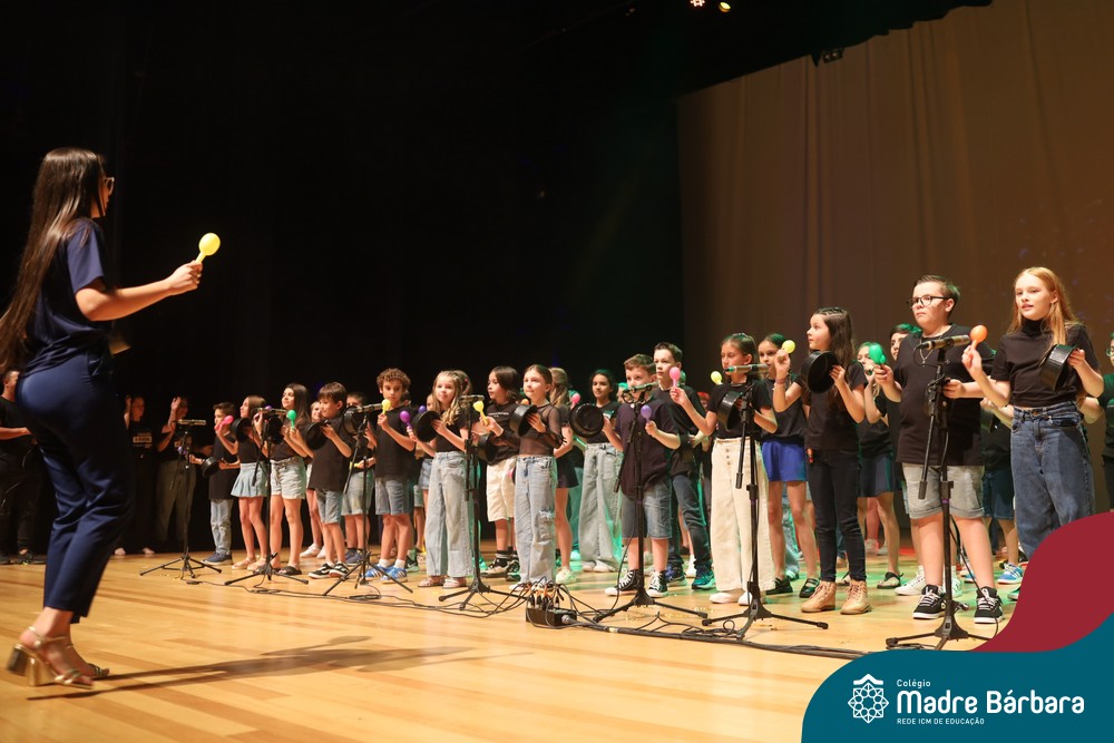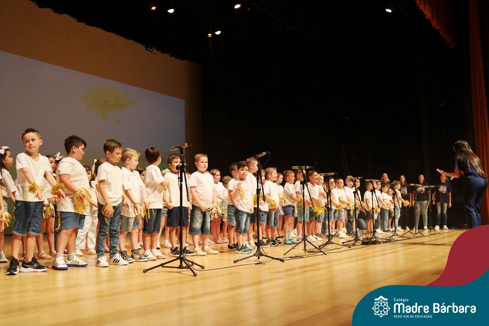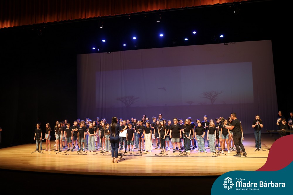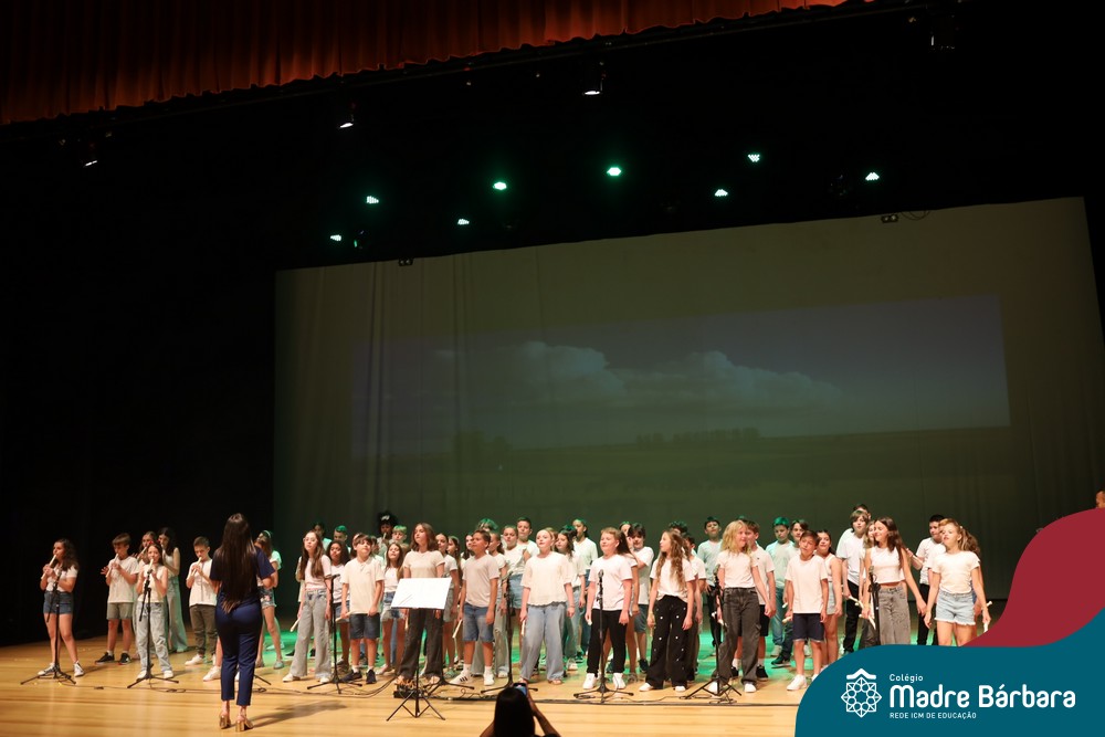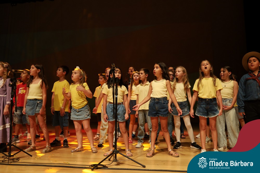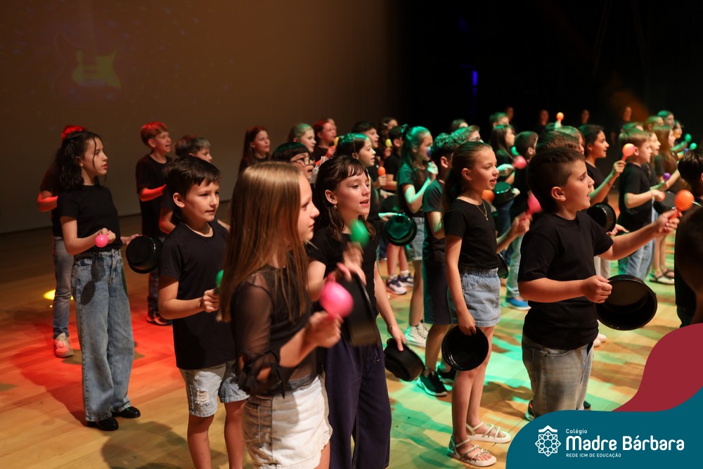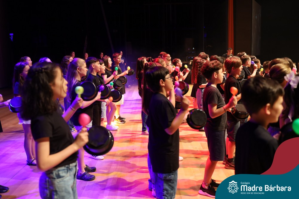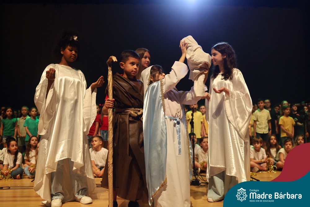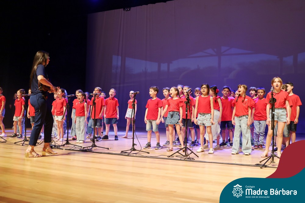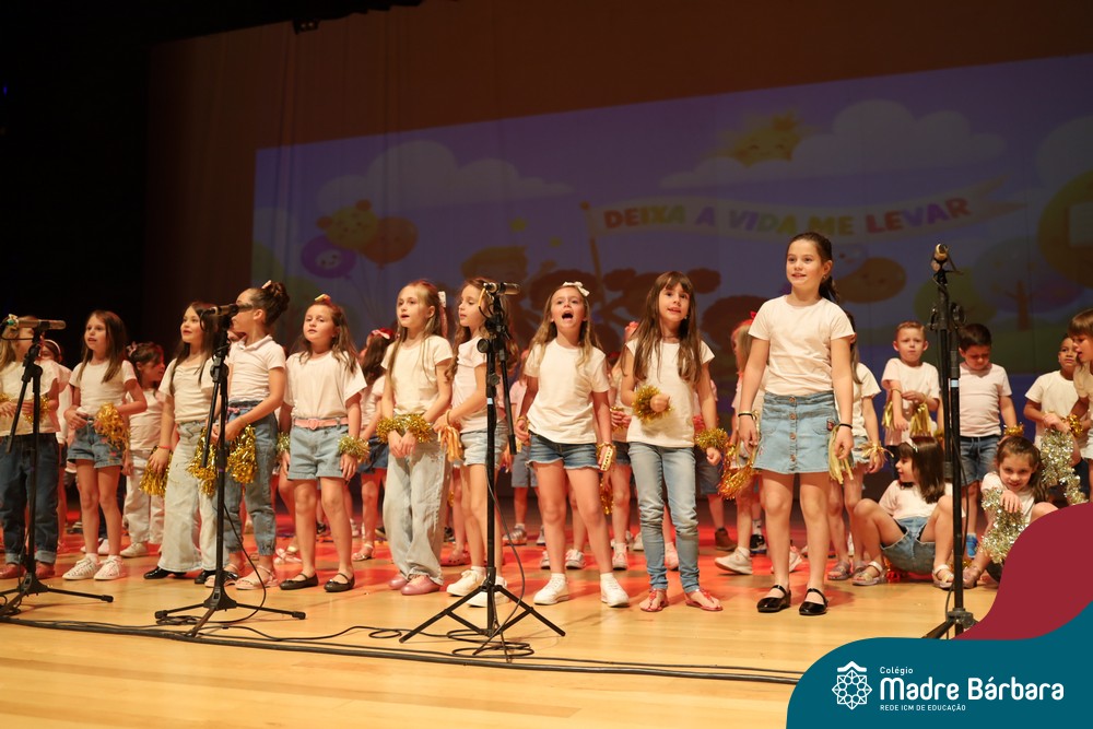 Na noite de quarta-feira, 3 de dezembro, o Teatro da Univates foi palco de um espetáculo encantador: a apresentação dos Anos Iniciais do Colégio Madre Bárbara, com a temática “Cantata de Natal – O Presente Perdido”. Dividido em dois momentos, o evento reuniu as turmas do 1º ao 5º ano dos turnos da manhã e da tarde, que brilharam com talento, sensibilidade e uma qualidade artística que emocionou todos os presentes. Interpretando, cantando, tocando e dançando músicas populares brasileiras, representando diversas localidades do Brasil, as crianças deram um show de conhecimento e celebraram com alegria a riqueza da nossa cultura.