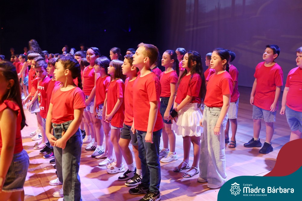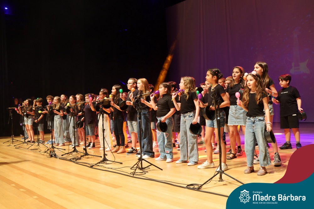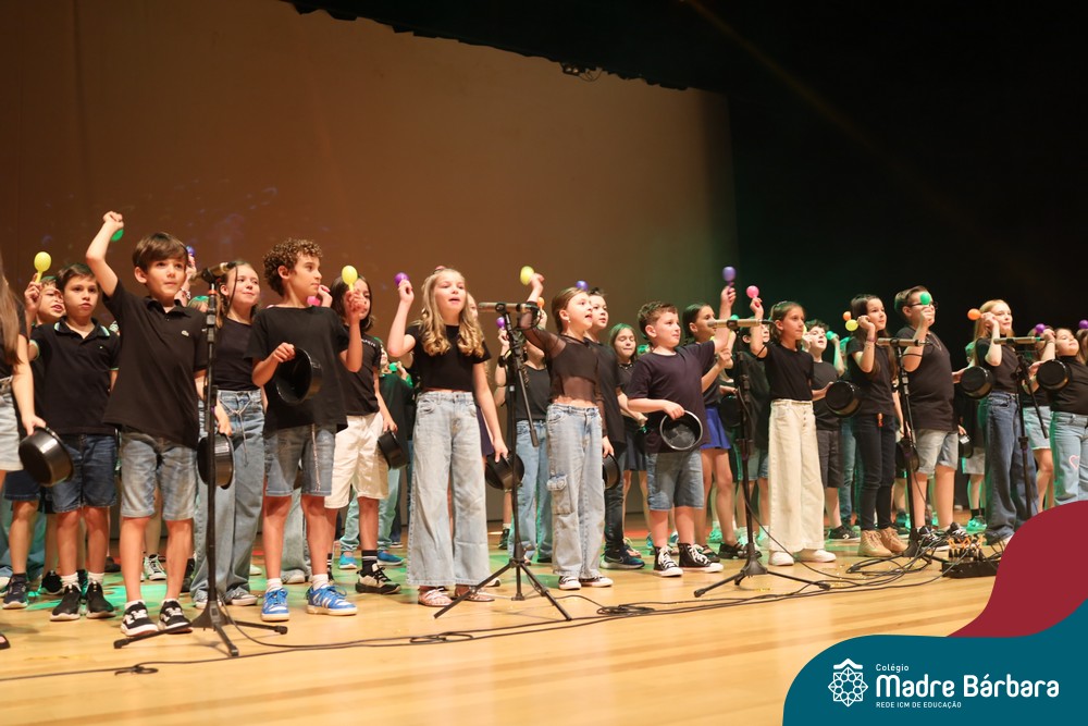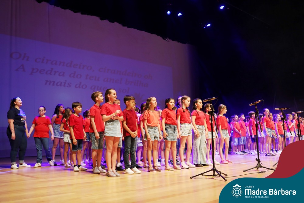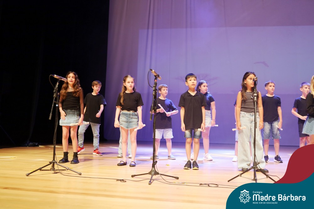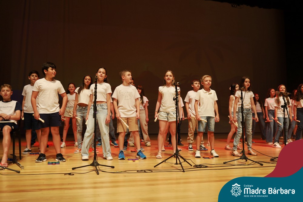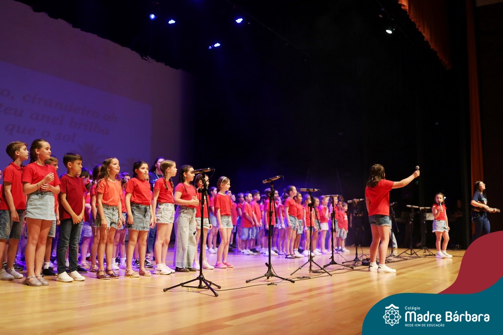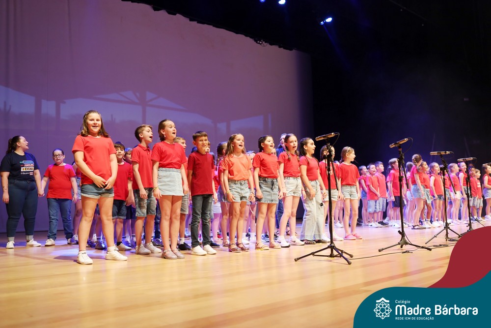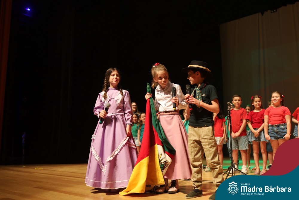 Na noite de quarta-feira, 3 de dezembro, o Teatro da Univates foi palco de um espetáculo encantador: a apresentação dos Anos Iniciais do Colégio Madre Bárbara, com a temática “Cantata de Natal – O Presente Perdido”. Dividido em dois momentos, o evento reuniu as turmas do 1º ao 5º ano dos turnos da manhã e da tarde, que brilharam com talento, sensibilidade e uma qualidade artística que emocionou todos os presentes. Interpretando, cantando, tocando e dançando músicas populares brasileiras, representando diversas localidades do Brasil, as crianças deram um show de conhecimento e celebraram com alegria a riqueza da nossa cultura.