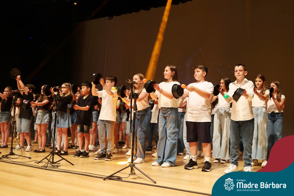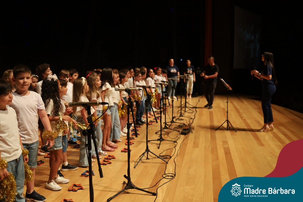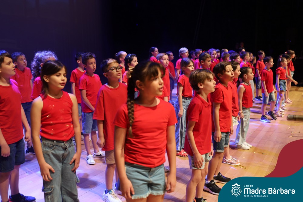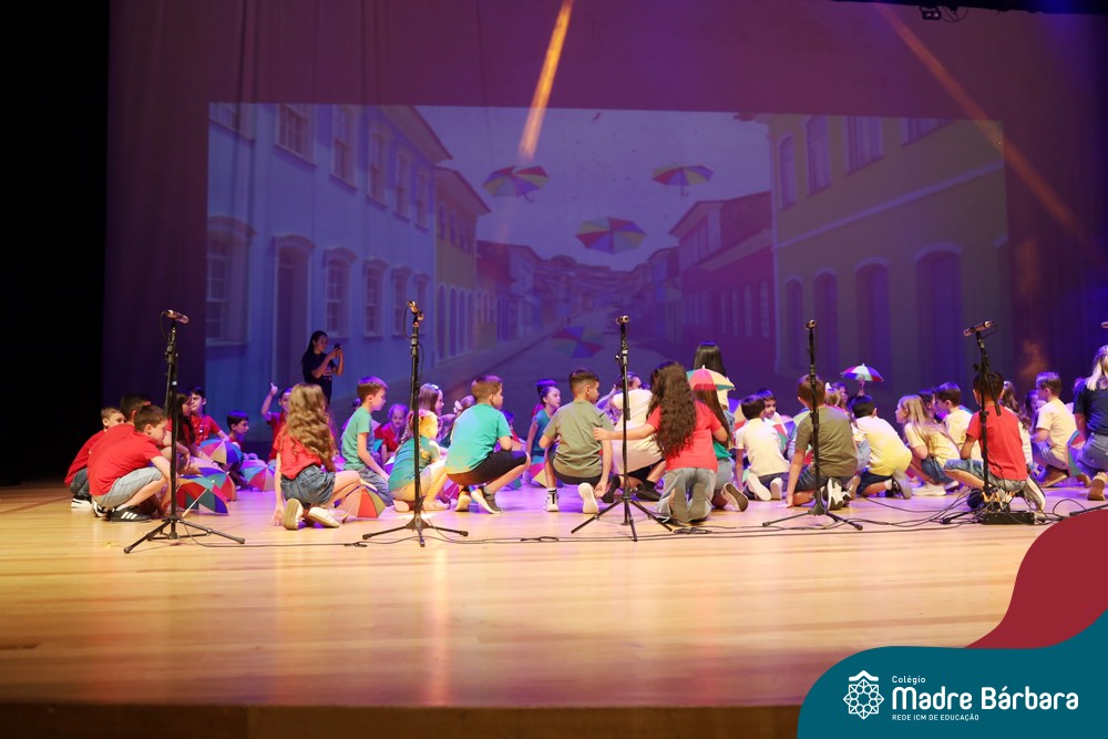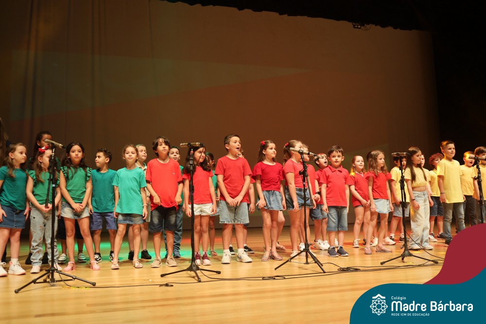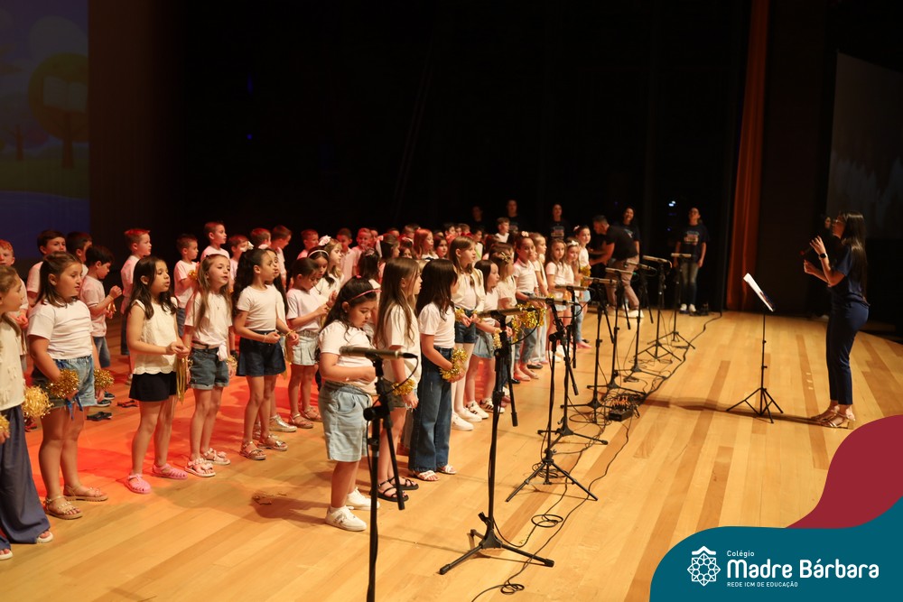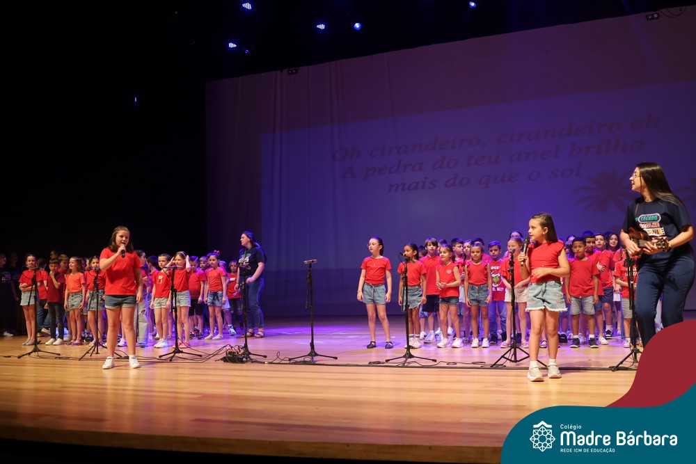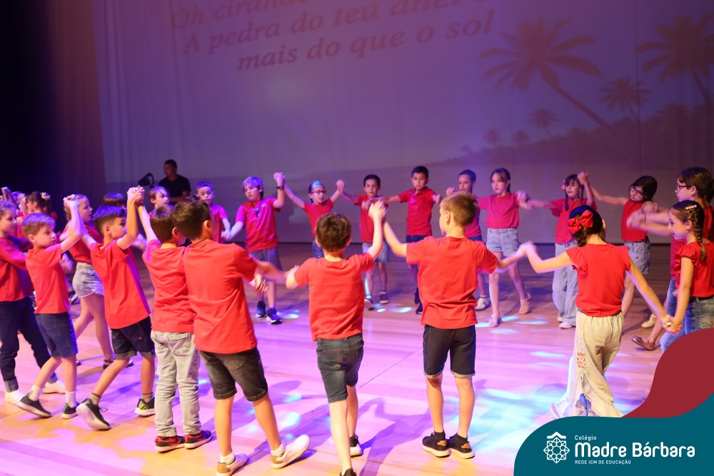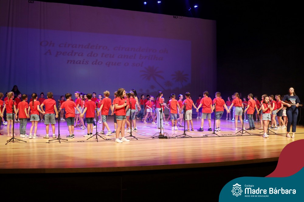 Na noite de quarta-feira, 3 de dezembro, o Teatro da Univates foi palco de um espetáculo encantador: a apresentação dos Anos Iniciais do Colégio Madre Bárbara, com a temática “Cantata de Natal – O Presente Perdido”. Dividido em dois momentos, o evento reuniu as turmas do 1º ao 5º ano dos turnos da manhã e da tarde, que brilharam com talento, sensibilidade e uma qualidade artística que emocionou todos os presentes. Interpretando, cantando, tocando e dançando músicas populares brasileiras, representando diversas localidades do Brasil, as crianças deram um show de conhecimento e celebraram com alegria a riqueza da nossa cultura.