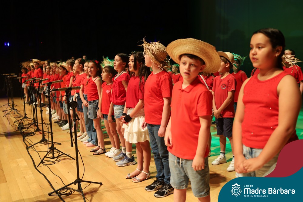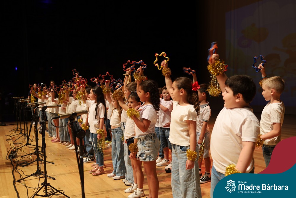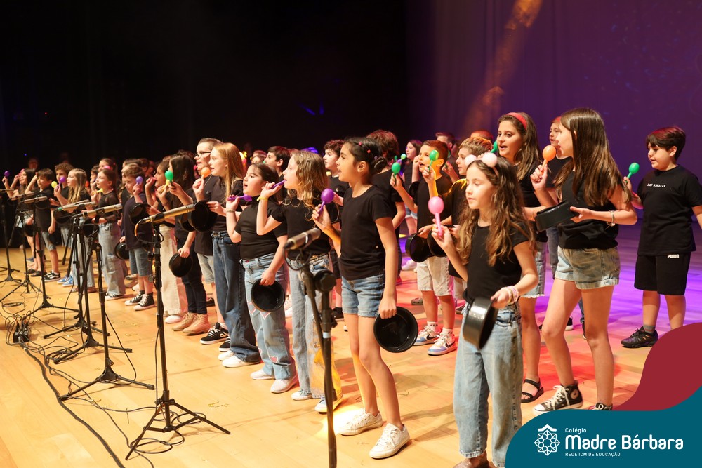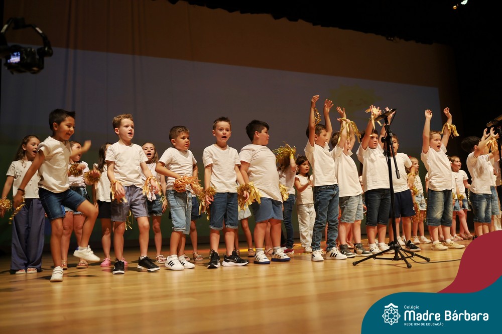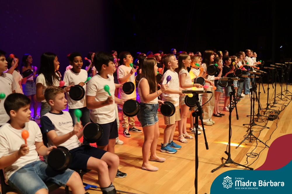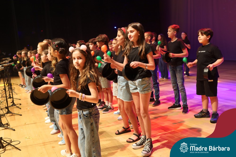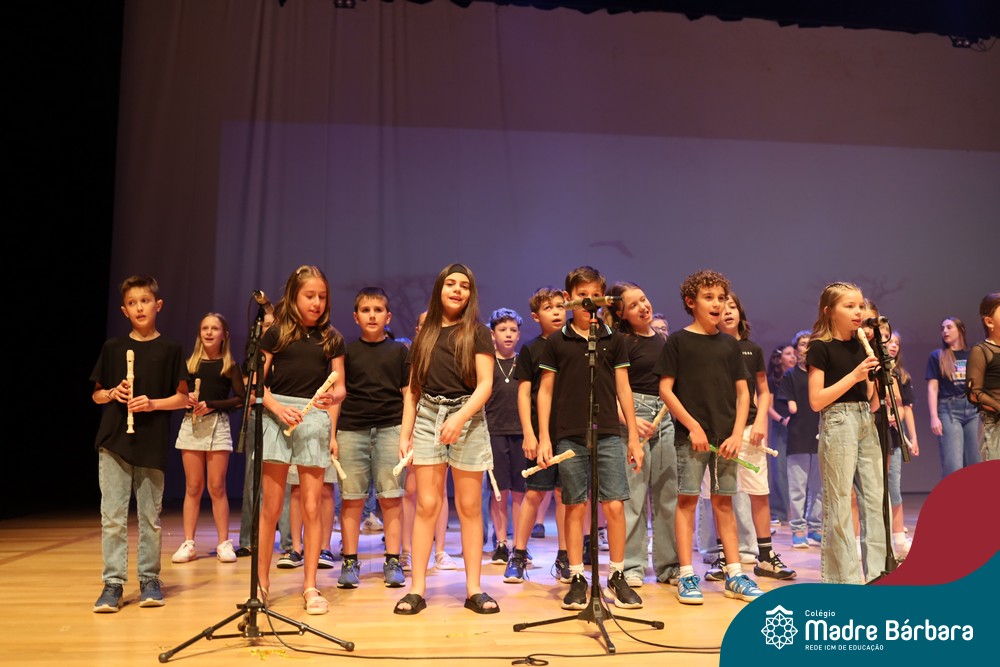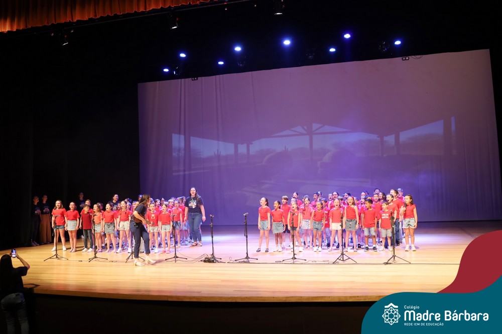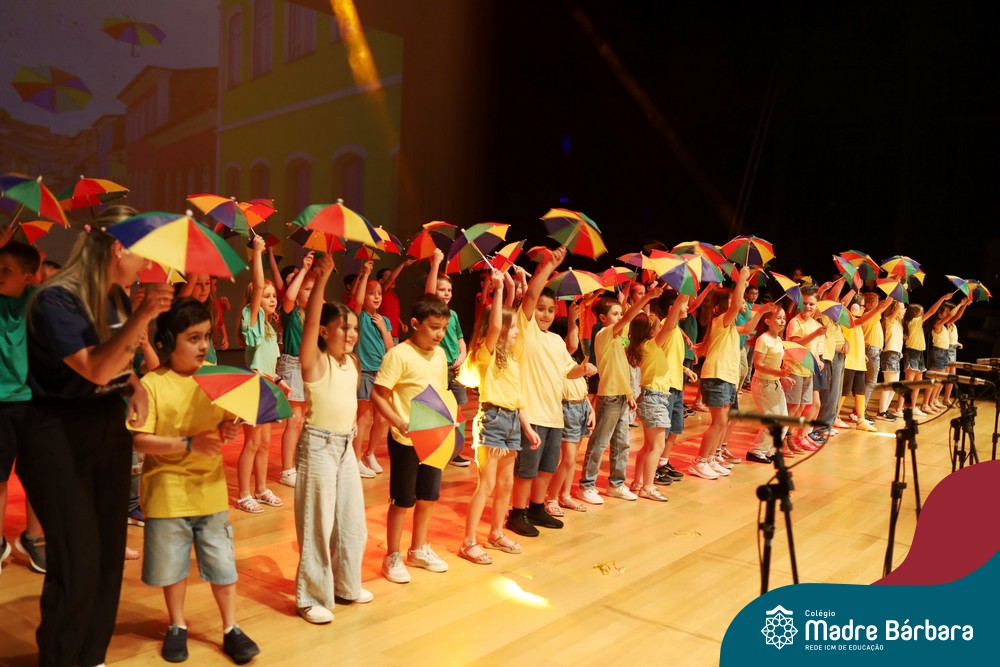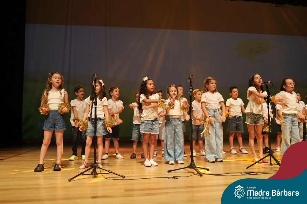 Na noite de quarta-feira, 3 de dezembro, o Teatro da Univates foi palco de um espetáculo encantador: a apresentação dos Anos Iniciais do Colégio Madre Bárbara, com a temática “Cantata de Natal – O Presente Perdido”. Dividido em dois momentos, o evento reuniu as turmas do 1º ao 5º ano dos turnos da manhã e da tarde, que brilharam com talento, sensibilidade e uma qualidade artística que emocionou todos os presentes. Interpretando, cantando, tocando e dançando músicas populares brasileiras, representando diversas localidades do Brasil, as crianças deram um show de conhecimento e celebraram com alegria a riqueza da nossa cultura.