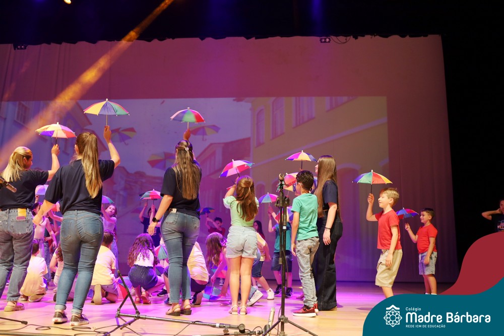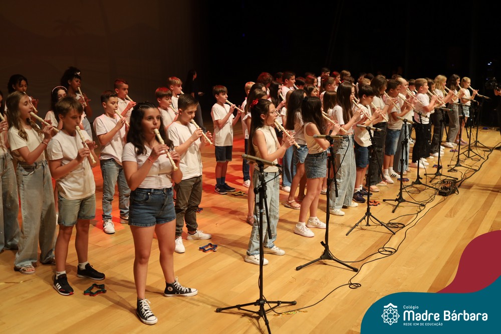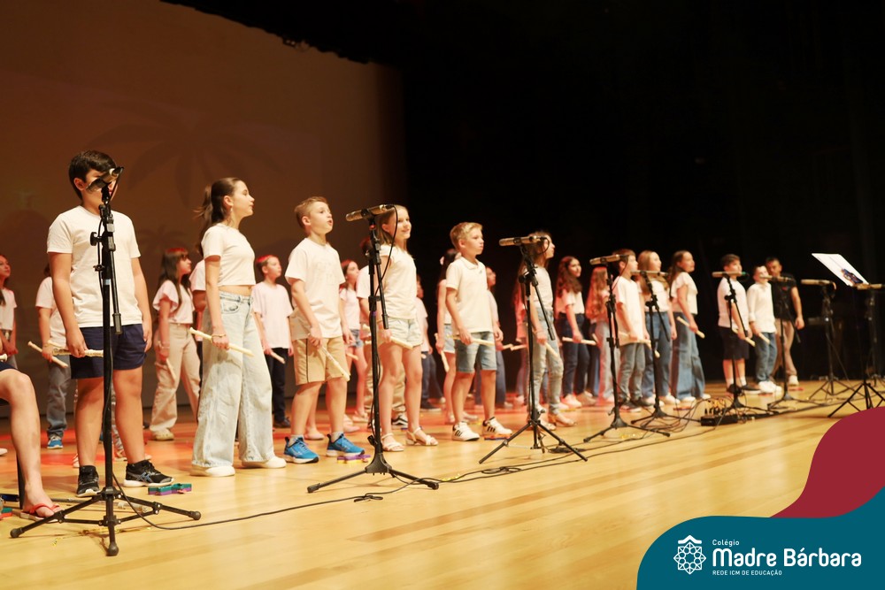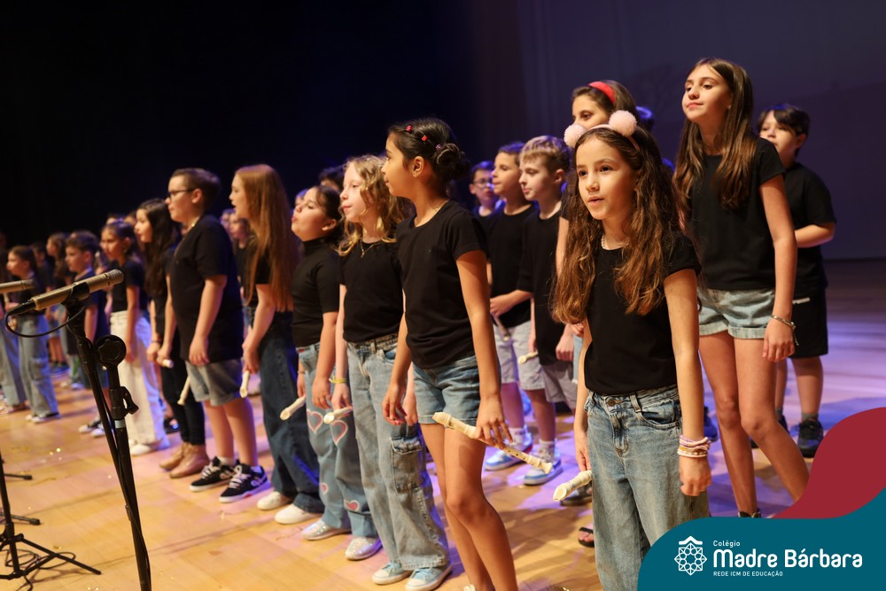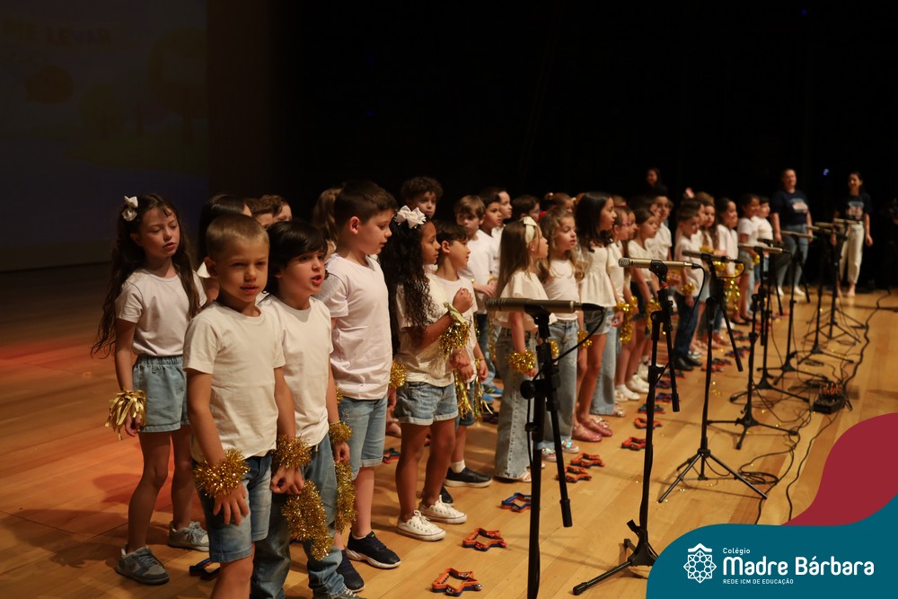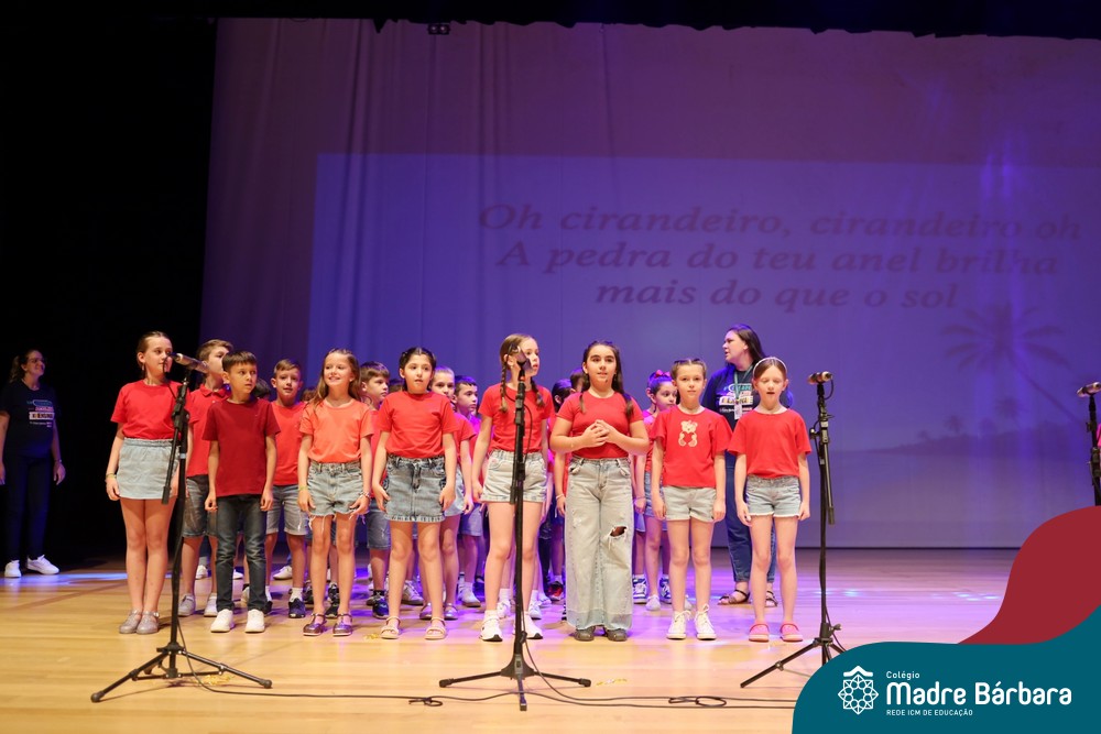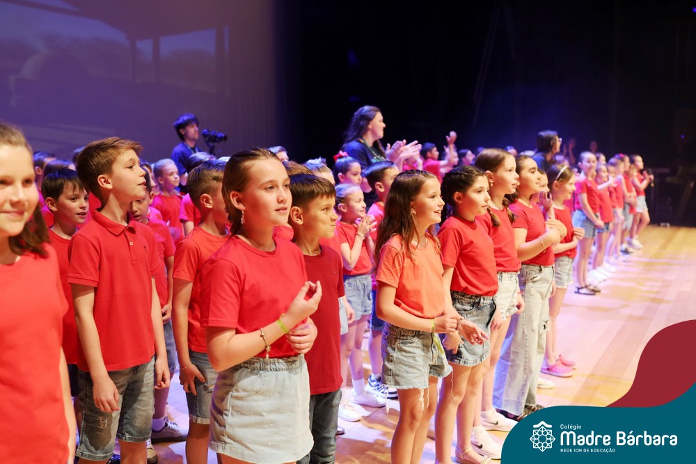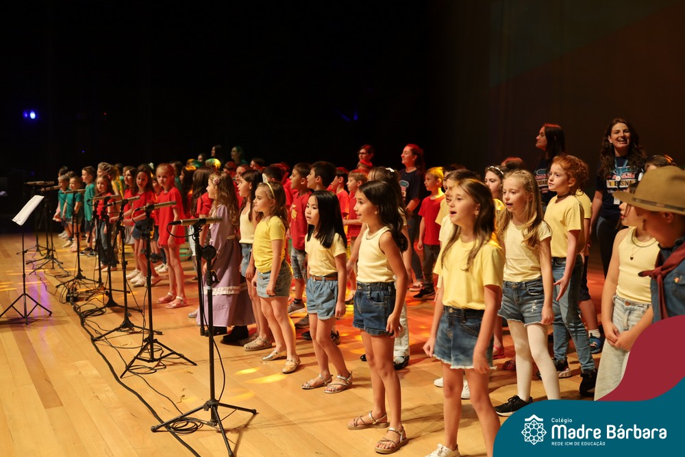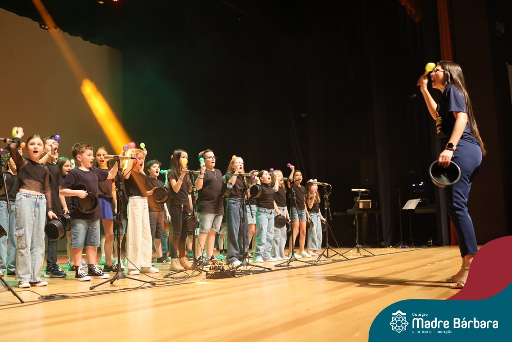 Na noite de quarta-feira, 3 de dezembro, o Teatro da Univates foi palco de um espetáculo encantador: a apresentação dos Anos Iniciais do Colégio Madre Bárbara, com a temática “Cantata de Natal – O Presente Perdido”. Dividido em dois momentos, o evento reuniu as turmas do 1º ao 5º ano dos turnos da manhã e da tarde, que brilharam com talento, sensibilidade e uma qualidade artística que emocionou todos os presentes. Interpretando, cantando, tocando e dançando músicas populares brasileiras, representando diversas localidades do Brasil, as crianças deram um show de conhecimento e celebraram com alegria a riqueza da nossa cultura.