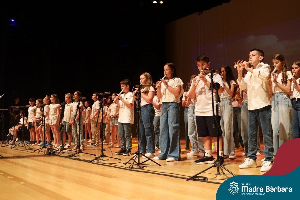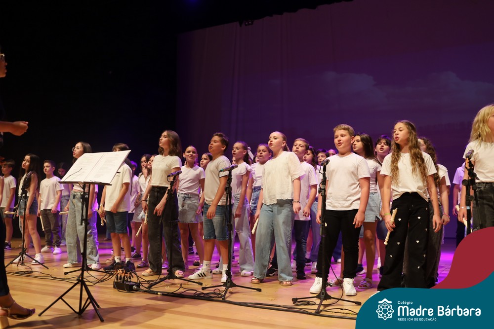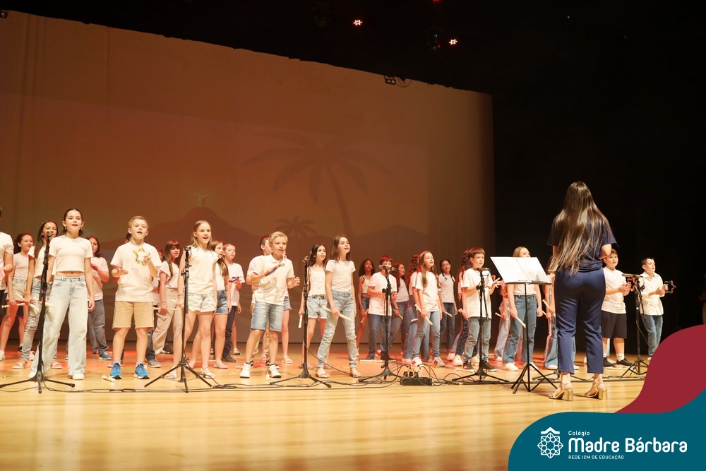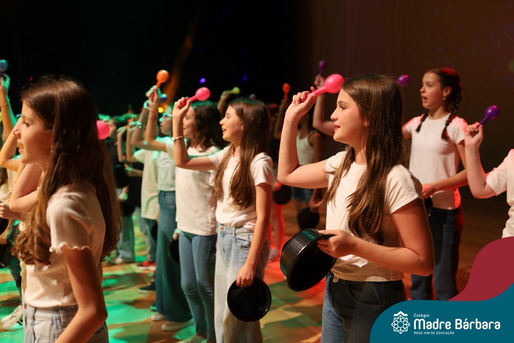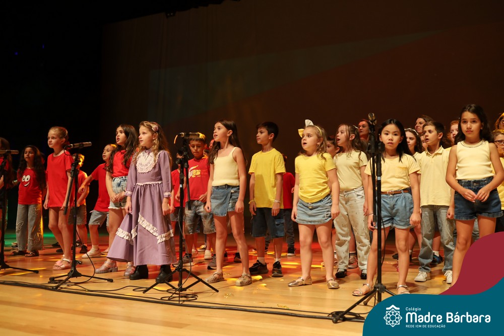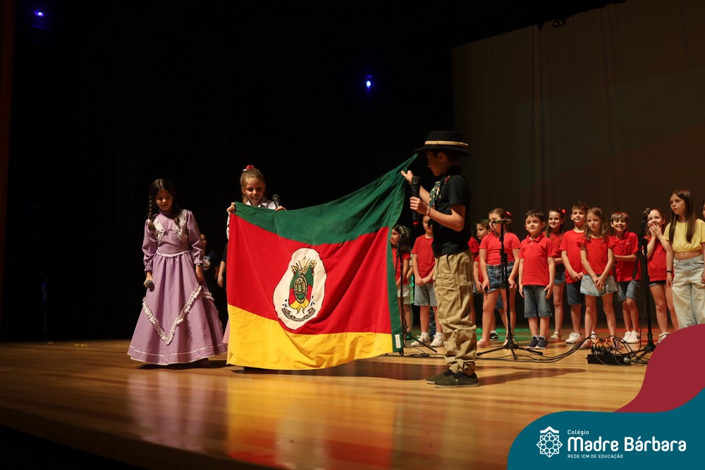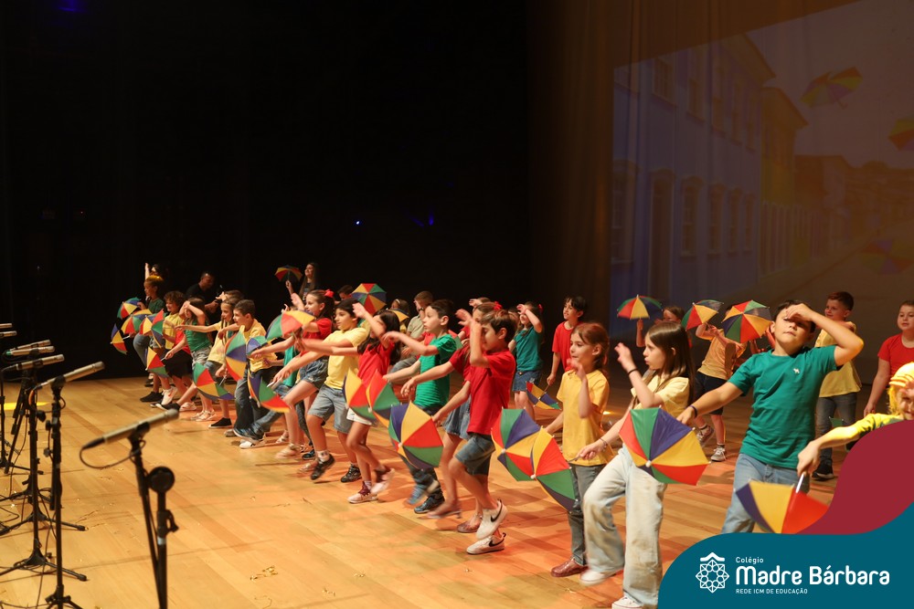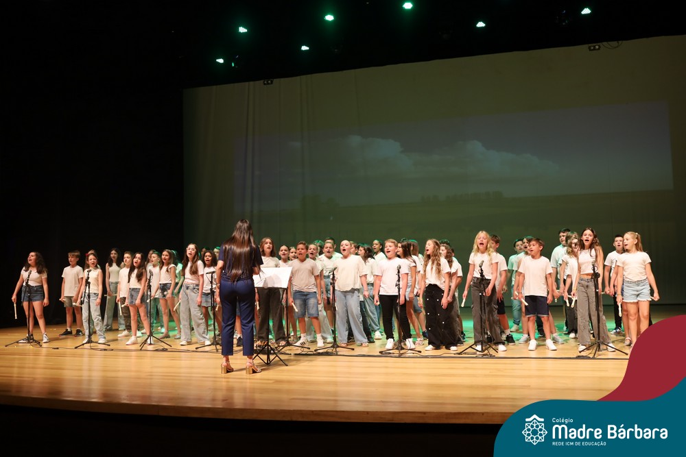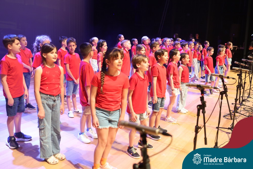 Na noite de quarta-feira, 3 de dezembro, o Teatro da Univates foi palco de um espetáculo encantador: a apresentação dos Anos Iniciais do Colégio Madre Bárbara, com a temática “Cantata de Natal – O Presente Perdido”. Dividido em dois momentos, o evento reuniu as turmas do 1º ao 5º ano dos turnos da manhã e da tarde, que brilharam com talento, sensibilidade e uma qualidade artística que emocionou todos os presentes. Interpretando, cantando, tocando e dançando músicas populares brasileiras, representando diversas localidades do Brasil, as crianças deram um show de conhecimento e celebraram com alegria a riqueza da nossa cultura.