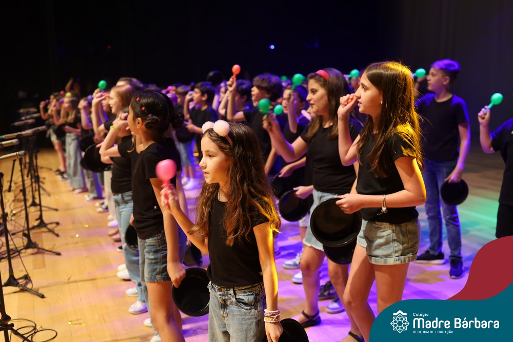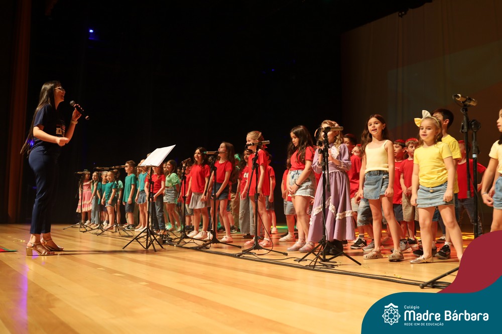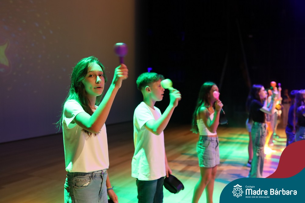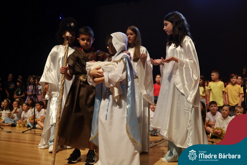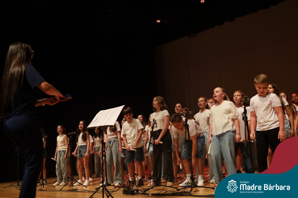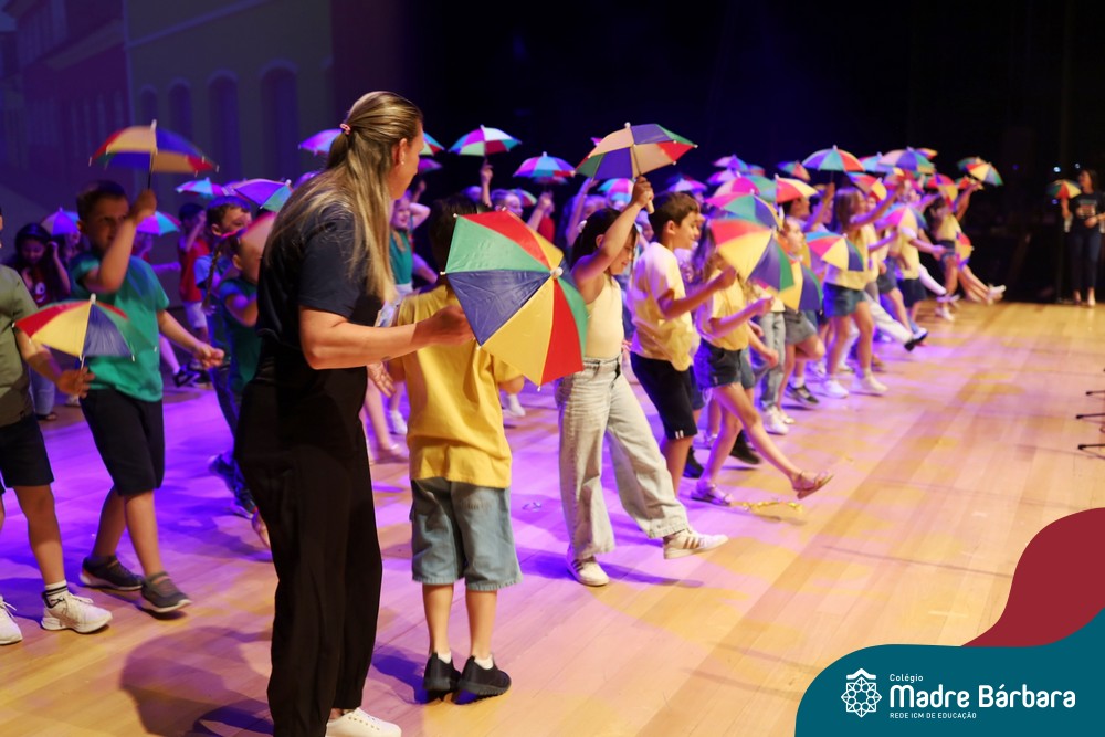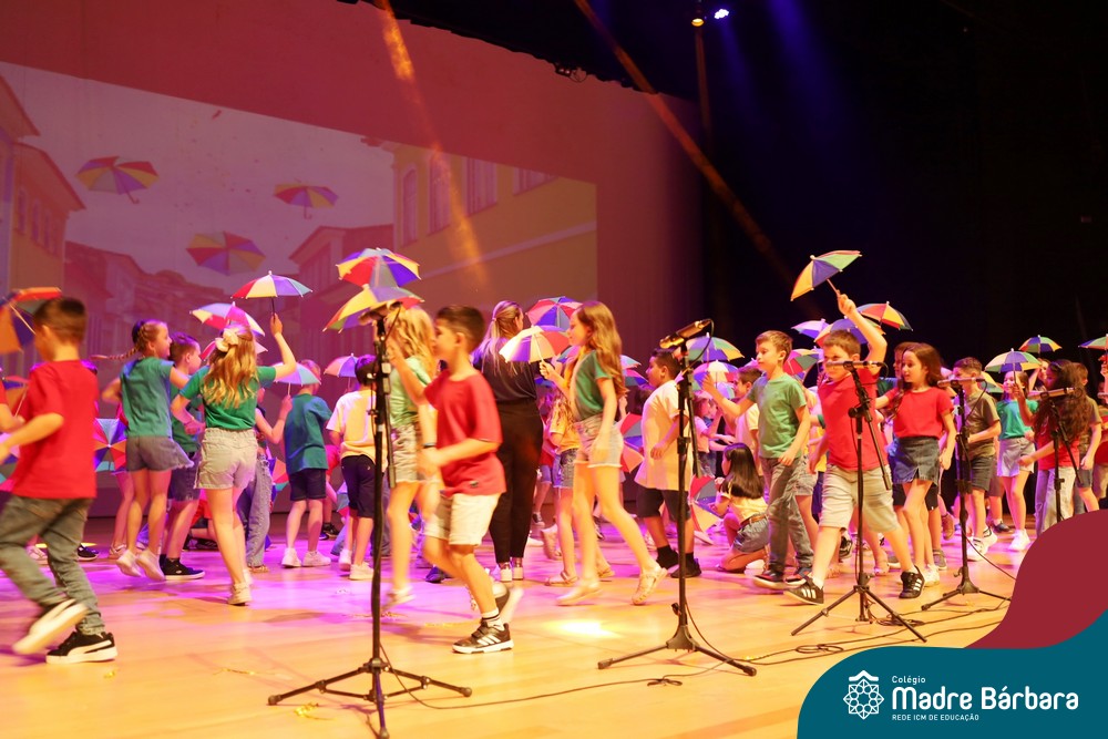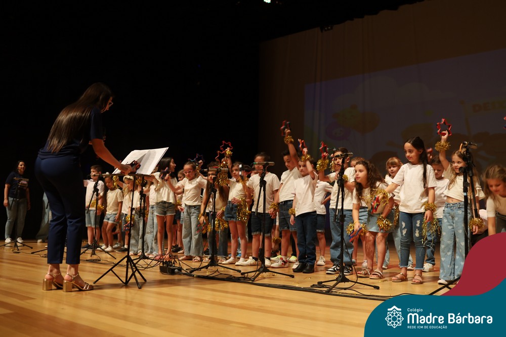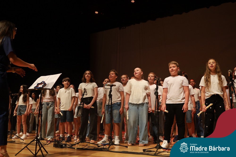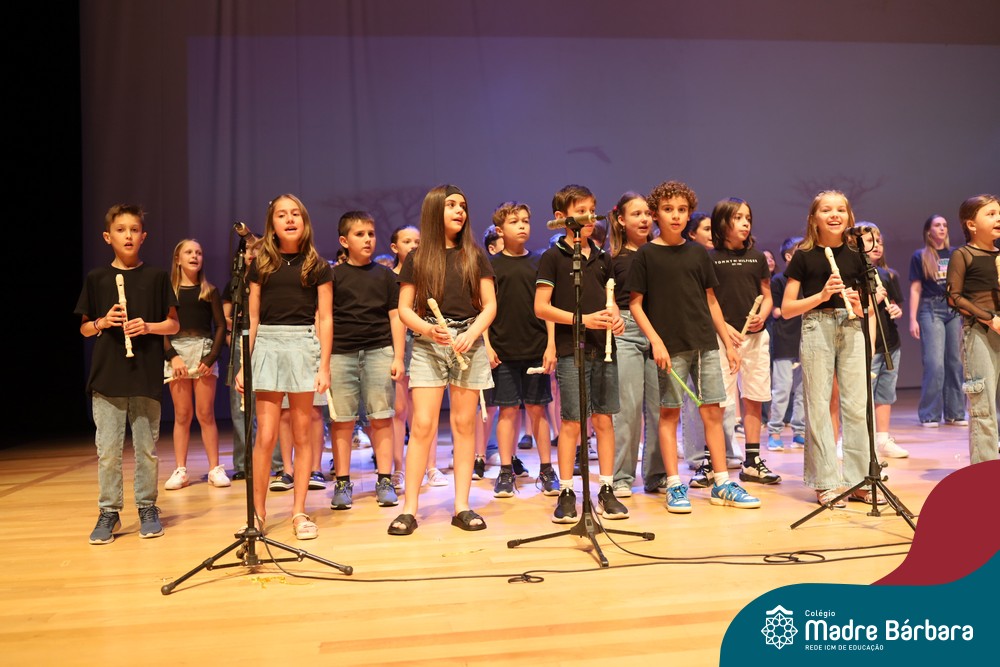 Na noite de quarta-feira, 3 de dezembro, o Teatro da Univates foi palco de um espetáculo encantador: a apresentação dos Anos Iniciais do Colégio Madre Bárbara, com a temática “Cantata de Natal – O Presente Perdido”. Dividido em dois momentos, o evento reuniu as turmas do 1º ao 5º ano dos turnos da manhã e da tarde, que brilharam com talento, sensibilidade e uma qualidade artística que emocionou todos os presentes. Interpretando, cantando, tocando e dançando músicas populares brasileiras, representando diversas localidades do Brasil, as crianças deram um show de conhecimento e celebraram com alegria a riqueza da nossa cultura.