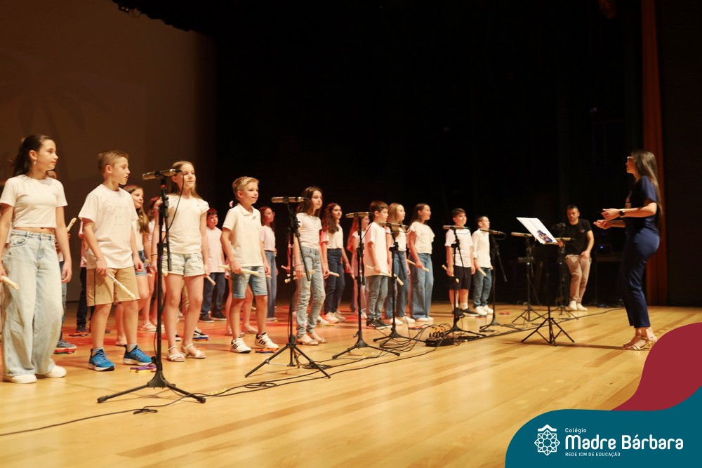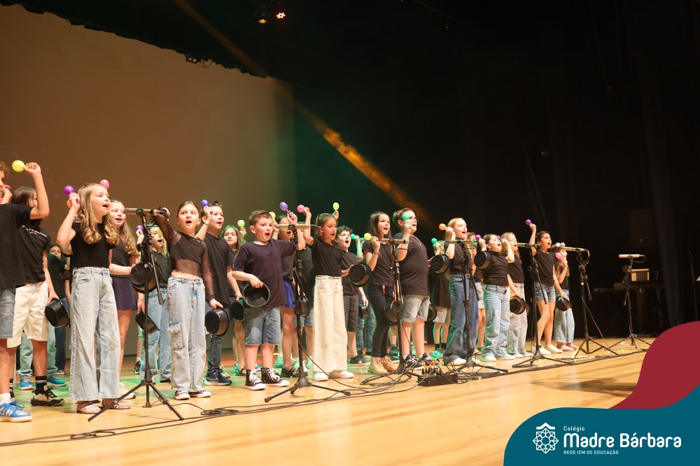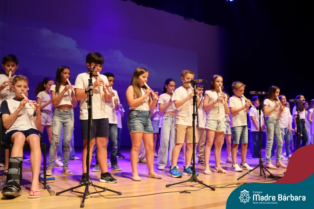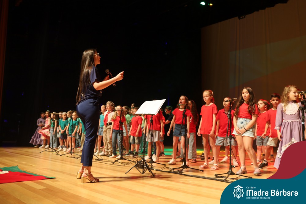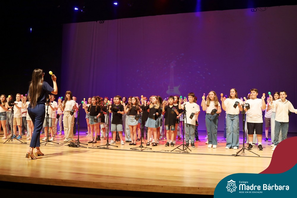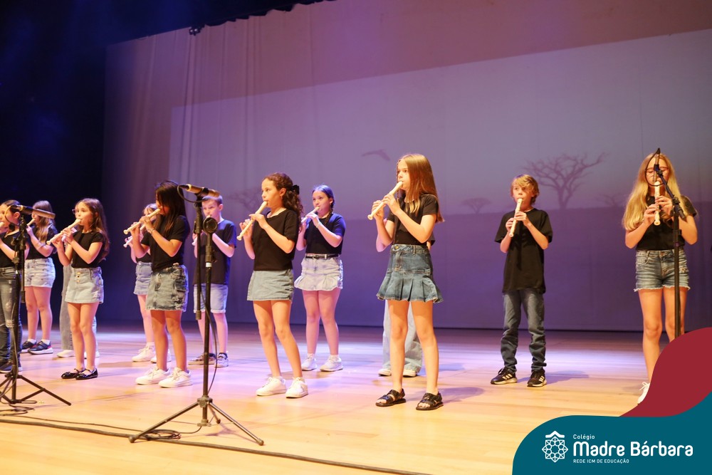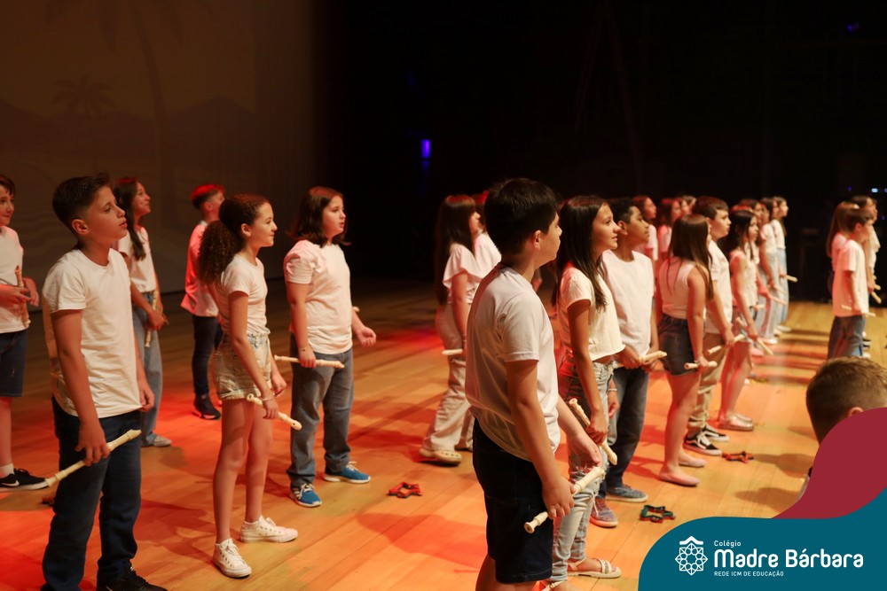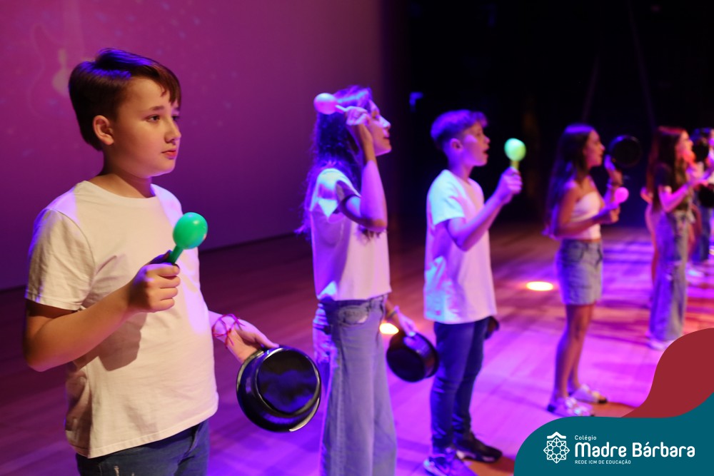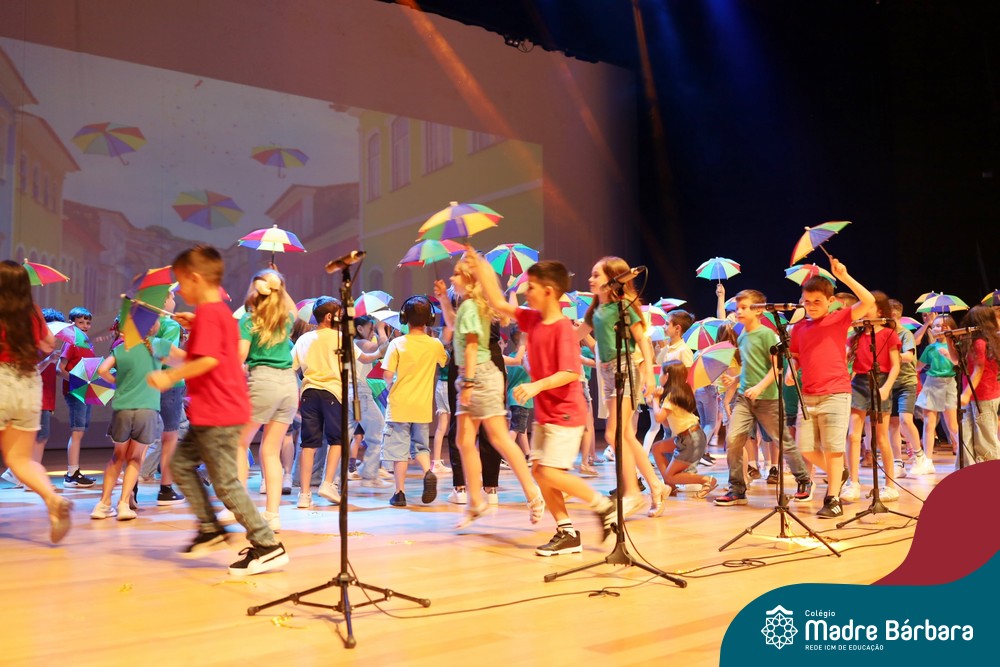 Na noite de quarta-feira, 3 de dezembro, o Teatro da Univates foi palco de um espetáculo encantador: a apresentação dos Anos Iniciais do Colégio Madre Bárbara, com a temática “Cantata de Natal – O Presente Perdido”. Dividido em dois momentos, o evento reuniu as turmas do 1º ao 5º ano dos turnos da manhã e da tarde, que brilharam com talento, sensibilidade e uma qualidade artística que emocionou todos os presentes. Interpretando, cantando, tocando e dançando músicas populares brasileiras, representando diversas localidades do Brasil, as crianças deram um show de conhecimento e celebraram com alegria a riqueza da nossa cultura.