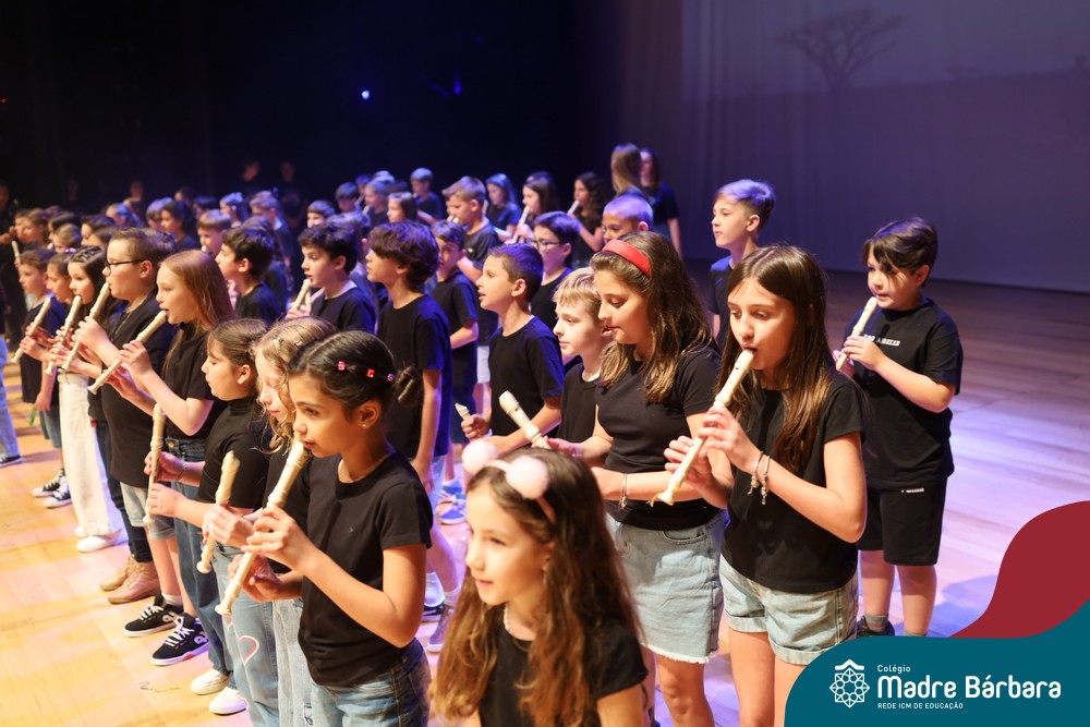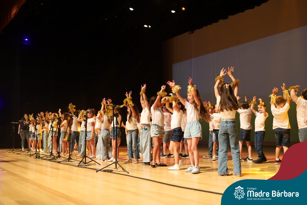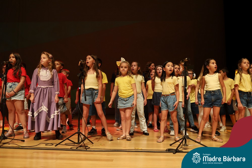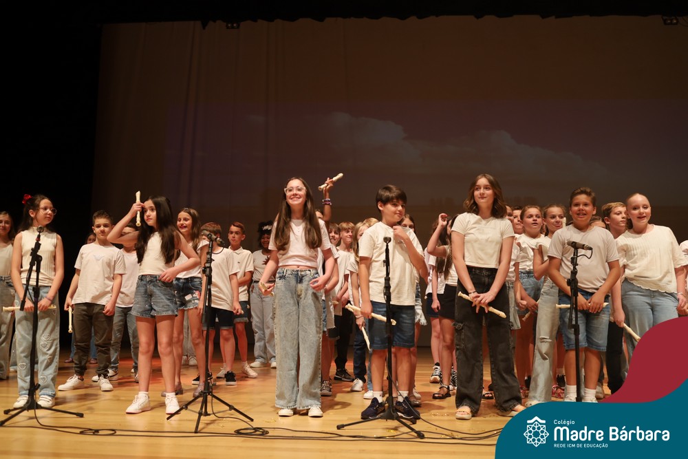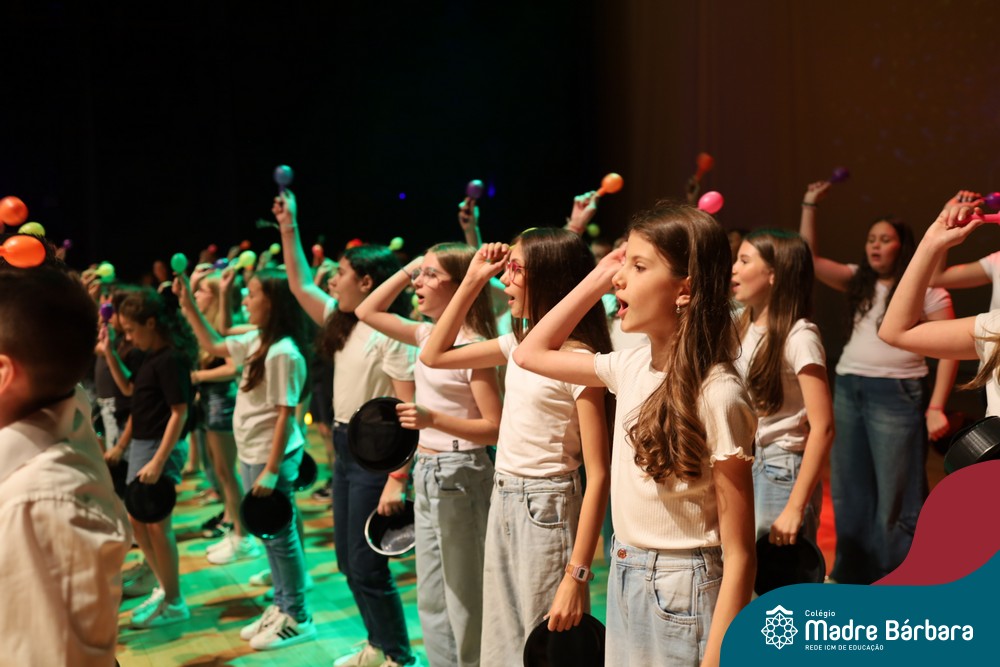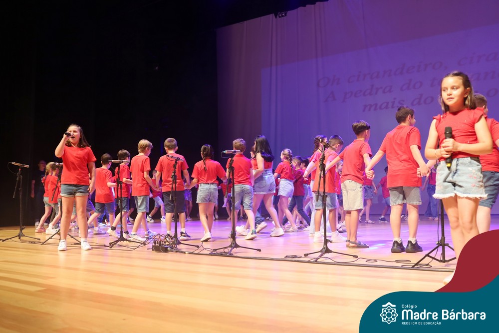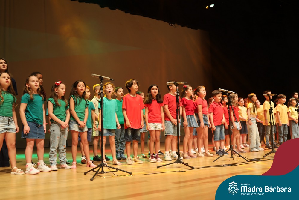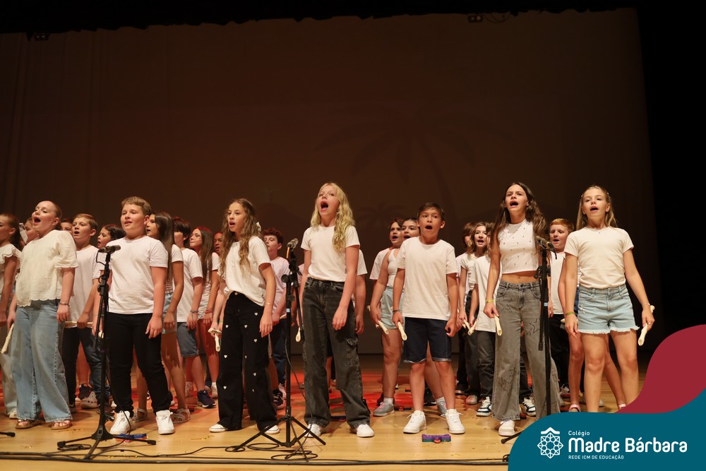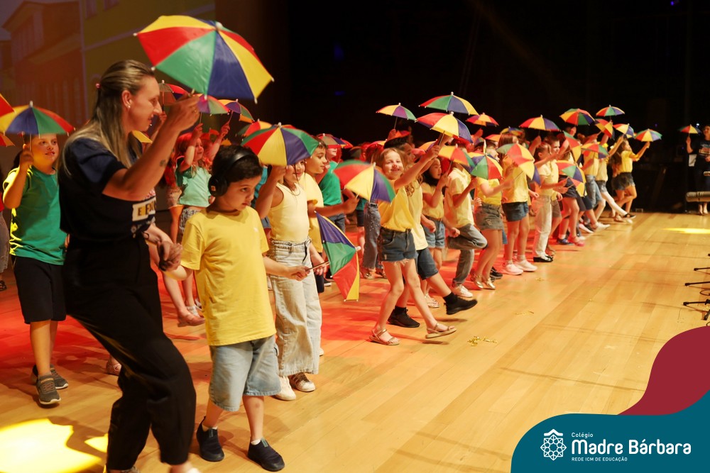 Na noite de quarta-feira, 3 de dezembro, o Teatro da Univates foi palco de um espetáculo encantador: a apresentação dos Anos Iniciais do Colégio Madre Bárbara, com a temática “Cantata de Natal – O Presente Perdido”. Dividido em dois momentos, o evento reuniu as turmas do 1º ao 5º ano dos turnos da manhã e da tarde, que brilharam com talento, sensibilidade e uma qualidade artística que emocionou todos os presentes. Interpretando, cantando, tocando e dançando músicas populares brasileiras, representando diversas localidades do Brasil, as crianças deram um show de conhecimento e celebraram com alegria a riqueza da nossa cultura.