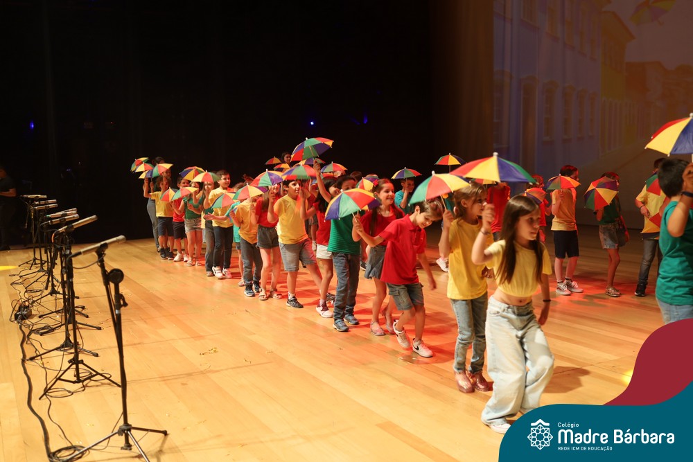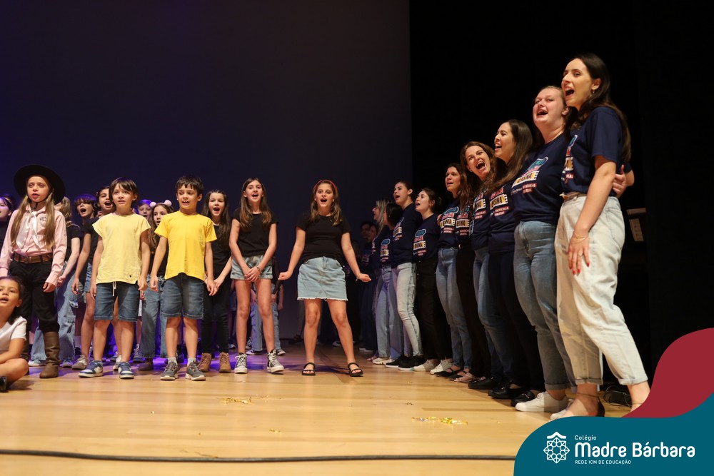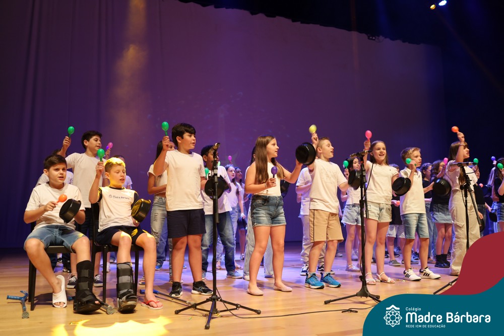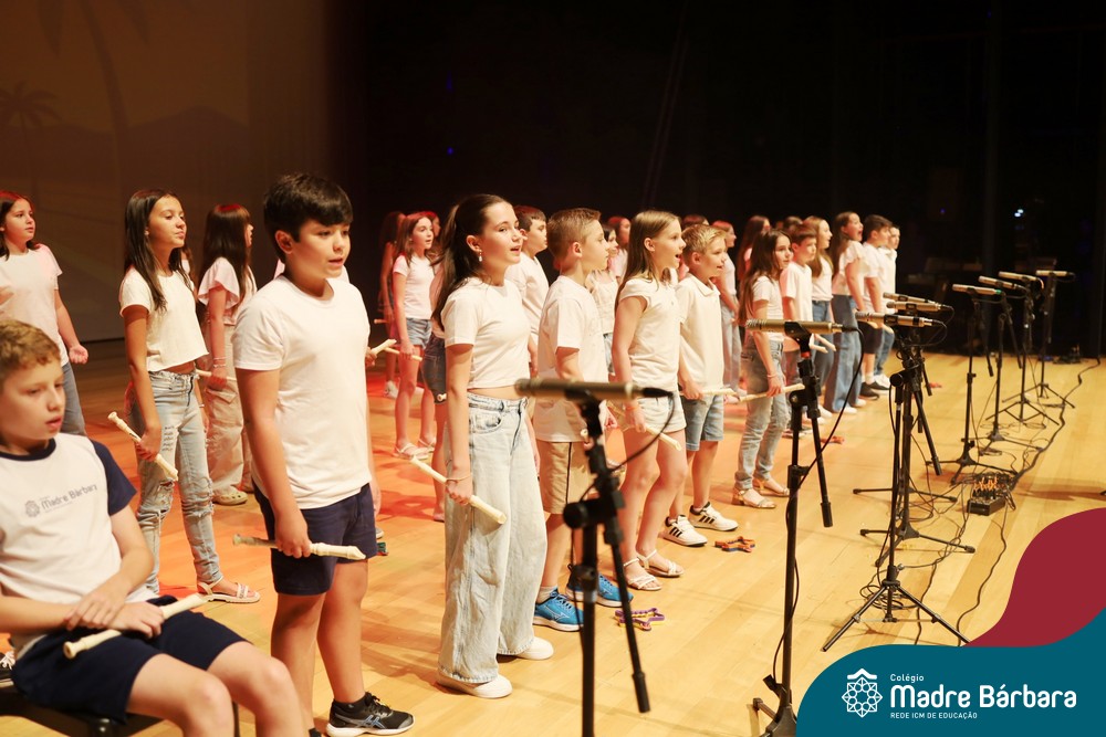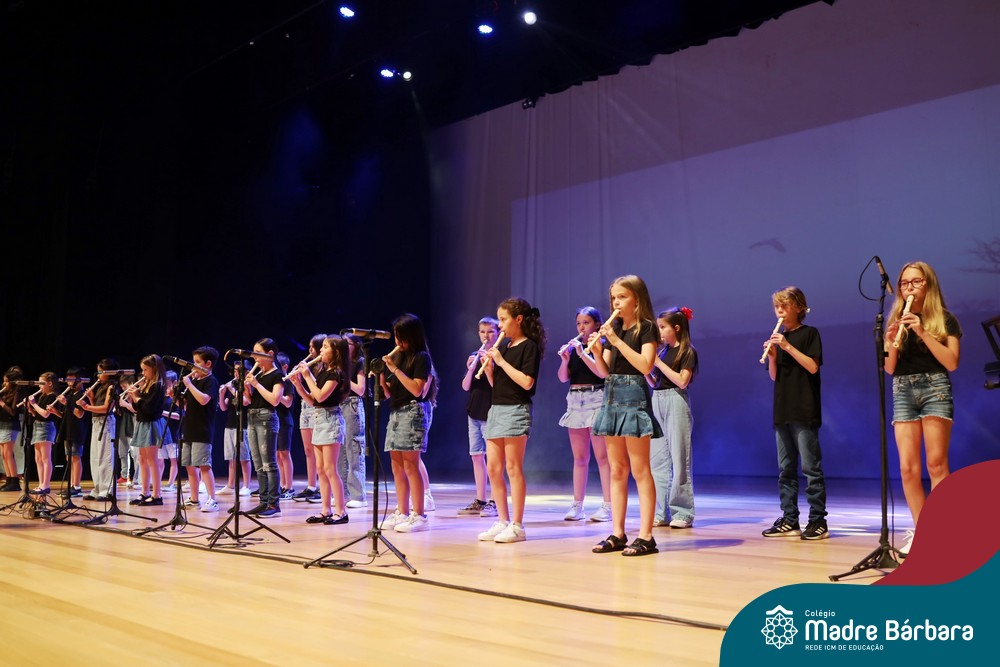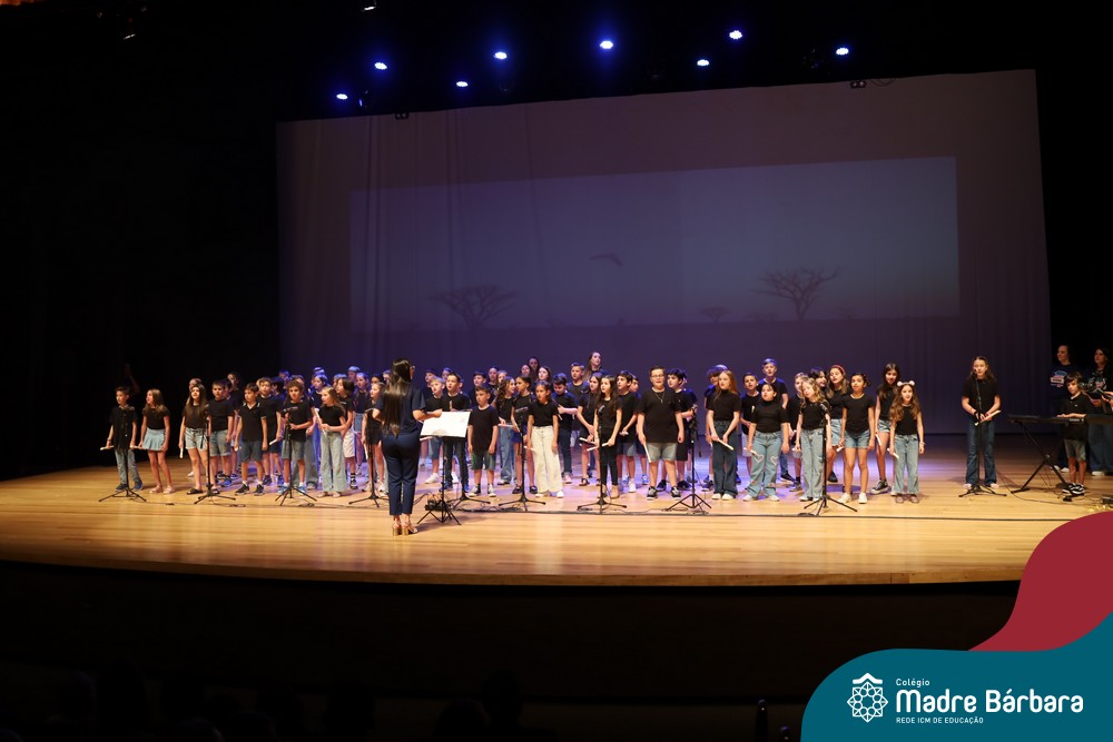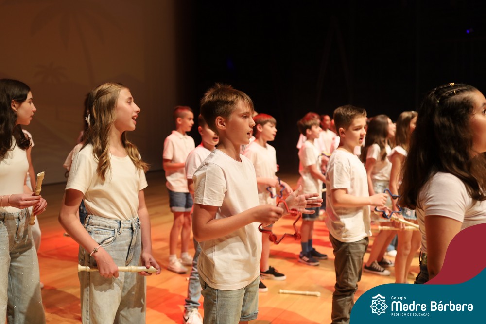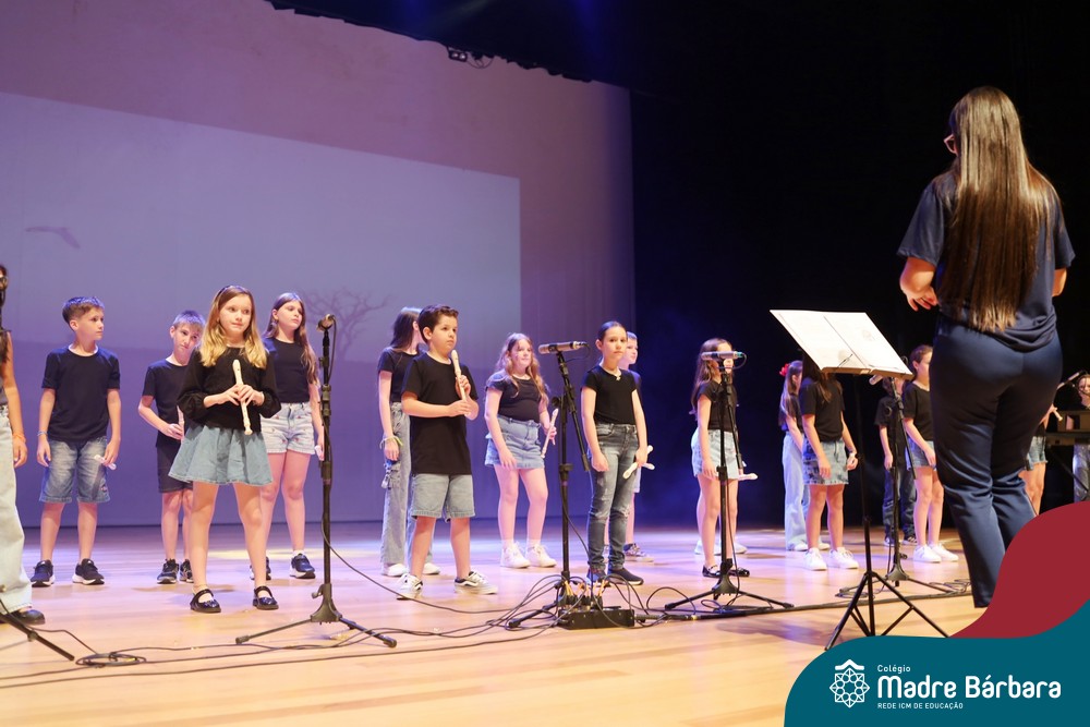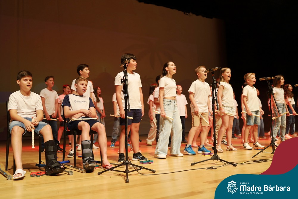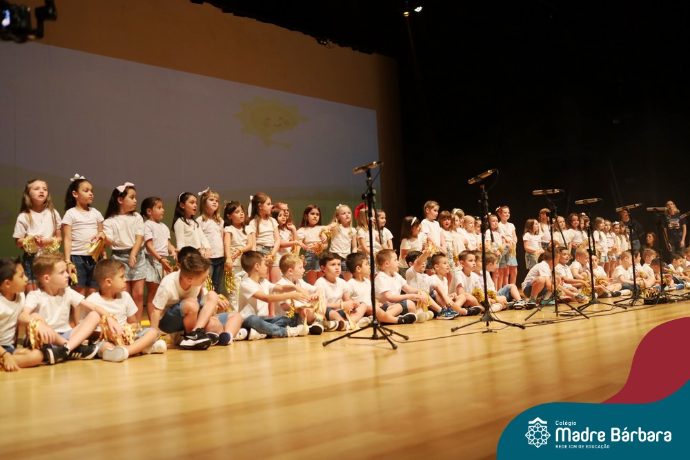 Na noite de quarta-feira, 3 de dezembro, o Teatro da Univates foi palco de um espetáculo encantador: a apresentação dos Anos Iniciais do Colégio Madre Bárbara, com a temática “Cantata de Natal – O Presente Perdido”. Dividido em dois momentos, o evento reuniu as turmas do 1º ao 5º ano dos turnos da manhã e da tarde, que brilharam com talento, sensibilidade e uma qualidade artística que emocionou todos os presentes. Interpretando, cantando, tocando e dançando músicas populares brasileiras, representando diversas localidades do Brasil, as crianças deram um show de conhecimento e celebraram com alegria a riqueza da nossa cultura.