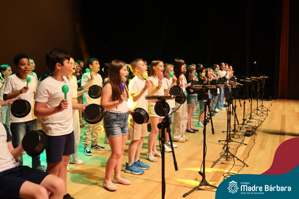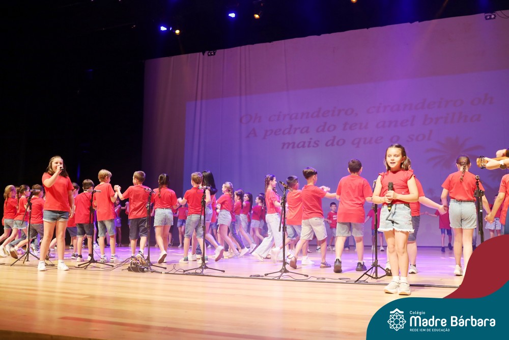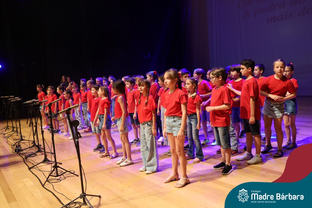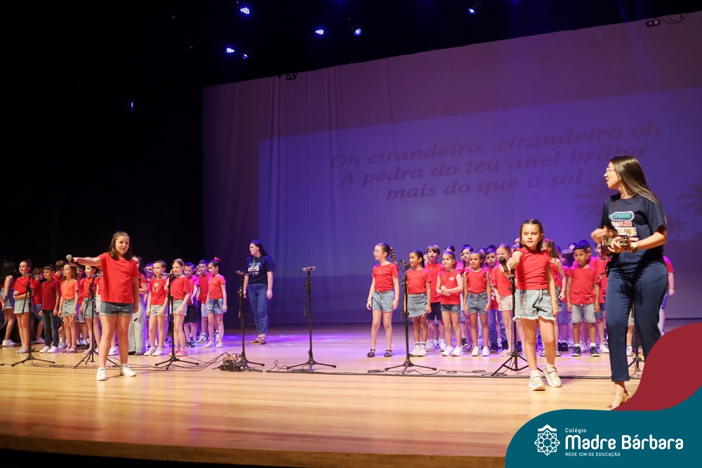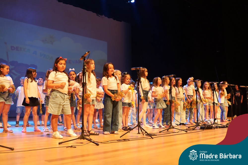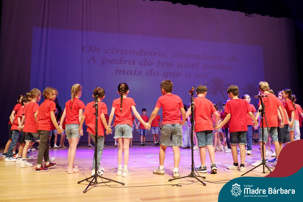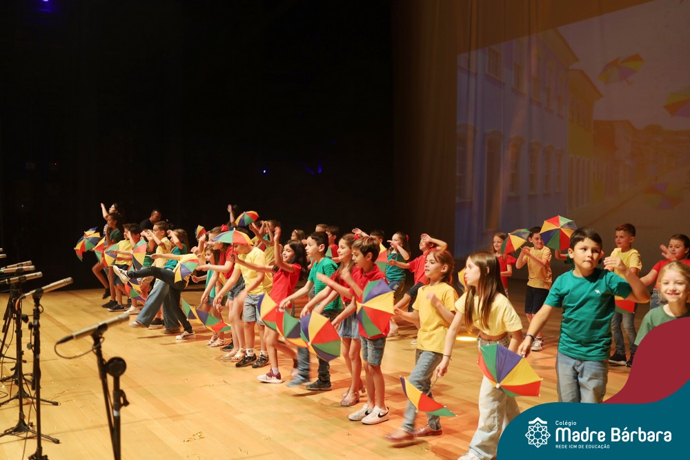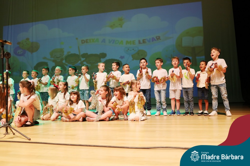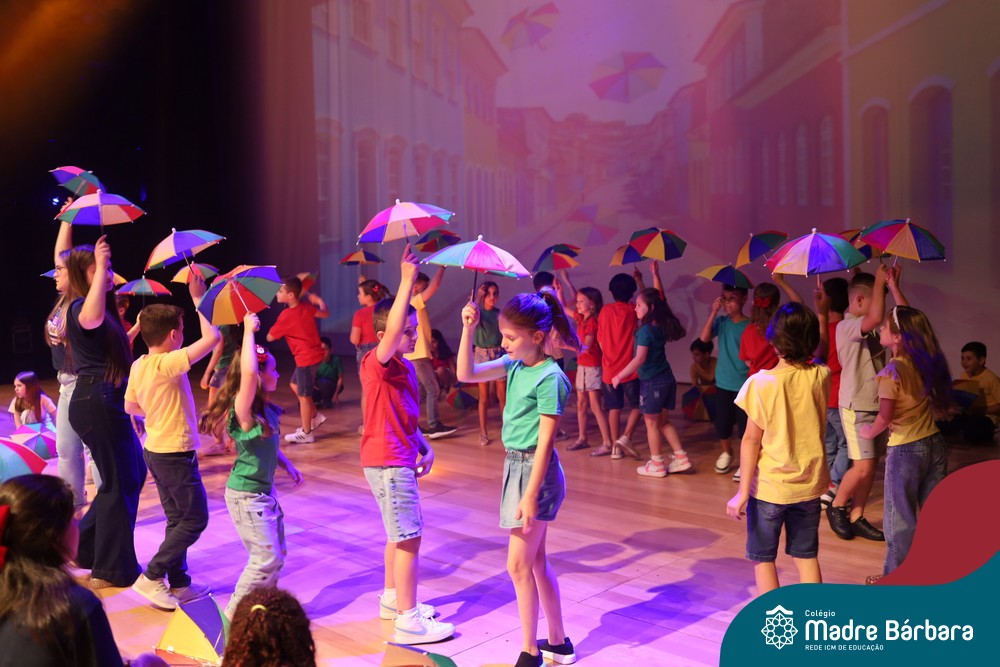 Na noite de quarta-feira, 3 de dezembro, o Teatro da Univates foi palco de um espetáculo encantador: a apresentação dos Anos Iniciais do Colégio Madre Bárbara, com a temática “Cantata de Natal – O Presente Perdido”. Dividido em dois momentos, o evento reuniu as turmas do 1º ao 5º ano dos turnos da manhã e da tarde, que brilharam com talento, sensibilidade e uma qualidade artística que emocionou todos os presentes. Interpretando, cantando, tocando e dançando músicas populares brasileiras, representando diversas localidades do Brasil, as crianças deram um show de conhecimento e celebraram com alegria a riqueza da nossa cultura.