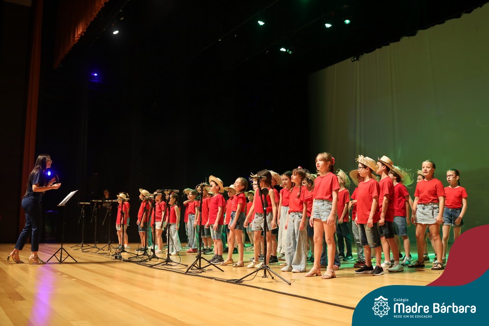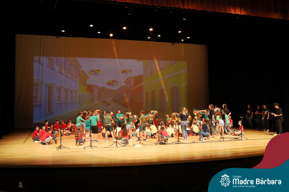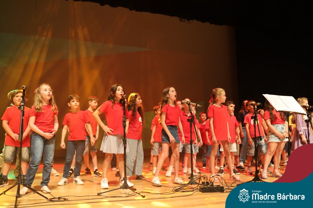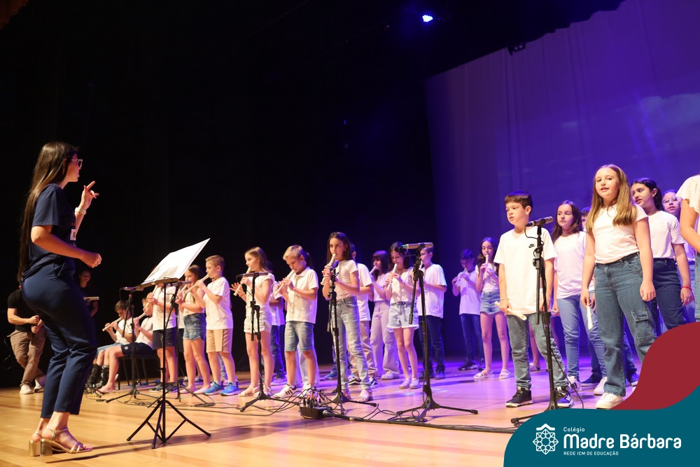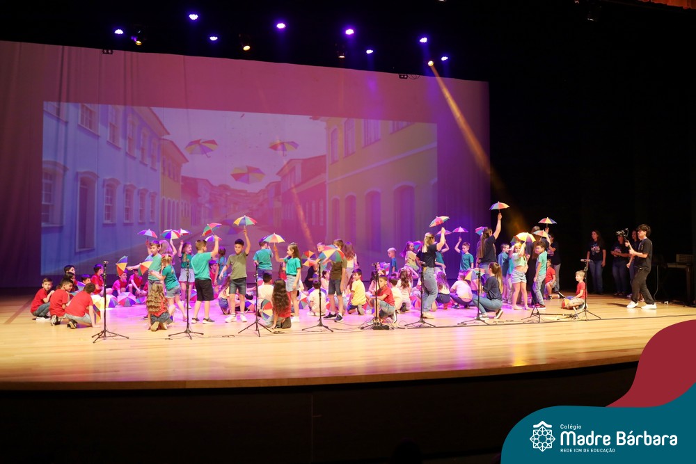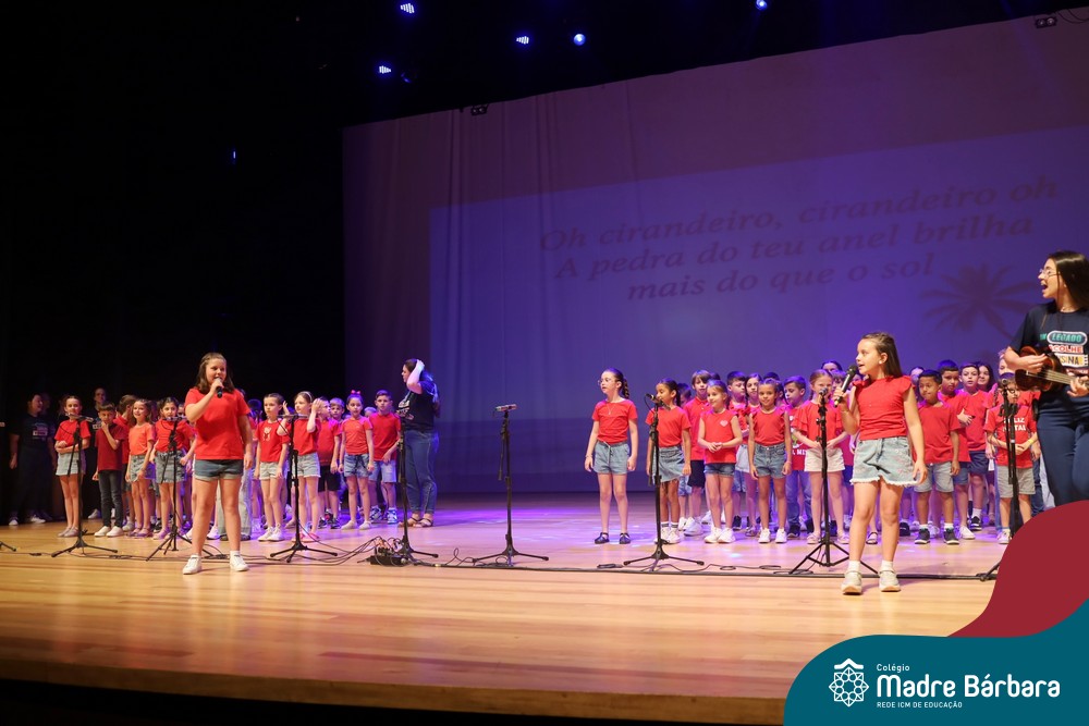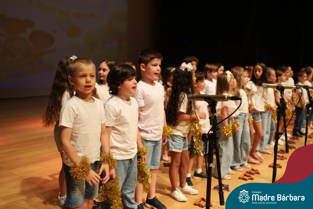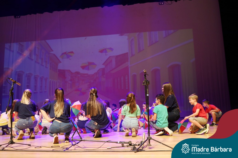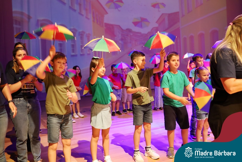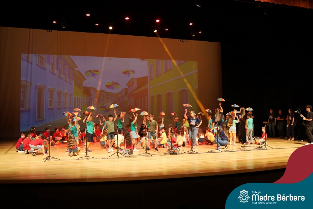 Na noite de quarta-feira, 3 de dezembro, o Teatro da Univates foi palco de um espetáculo encantador: a apresentação dos Anos Iniciais do Colégio Madre Bárbara, com a temática “Cantata de Natal – O Presente Perdido”. Dividido em dois momentos, o evento reuniu as turmas do 1º ao 5º ano dos turnos da manhã e da tarde, que brilharam com talento, sensibilidade e uma qualidade artística que emocionou todos os presentes. Interpretando, cantando, tocando e dançando músicas populares brasileiras, representando diversas localidades do Brasil, as crianças deram um show de conhecimento e celebraram com alegria a riqueza da nossa cultura.