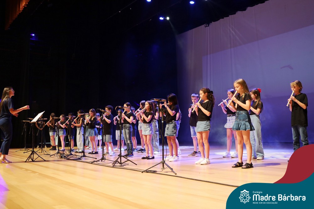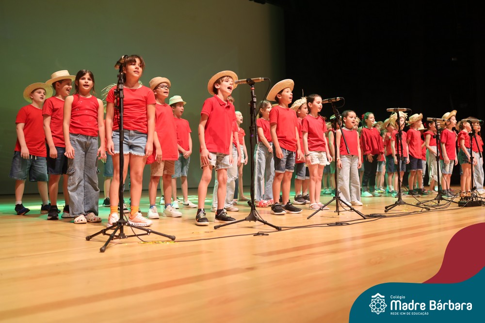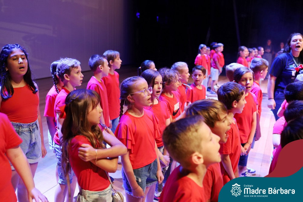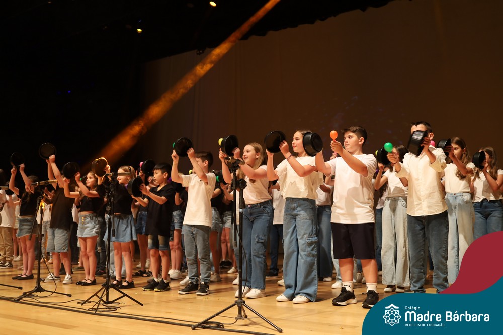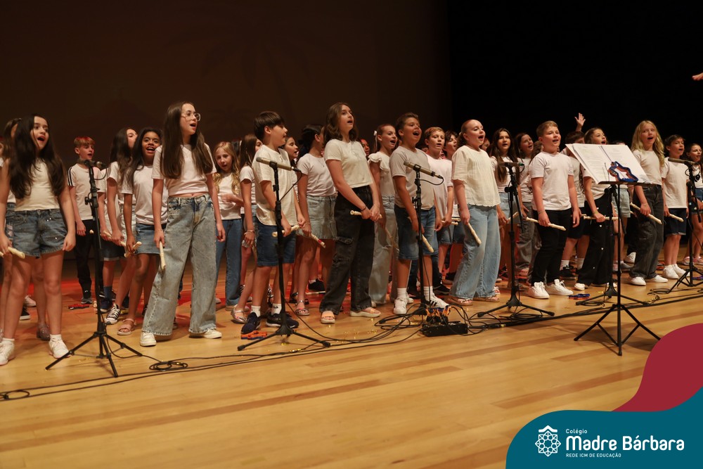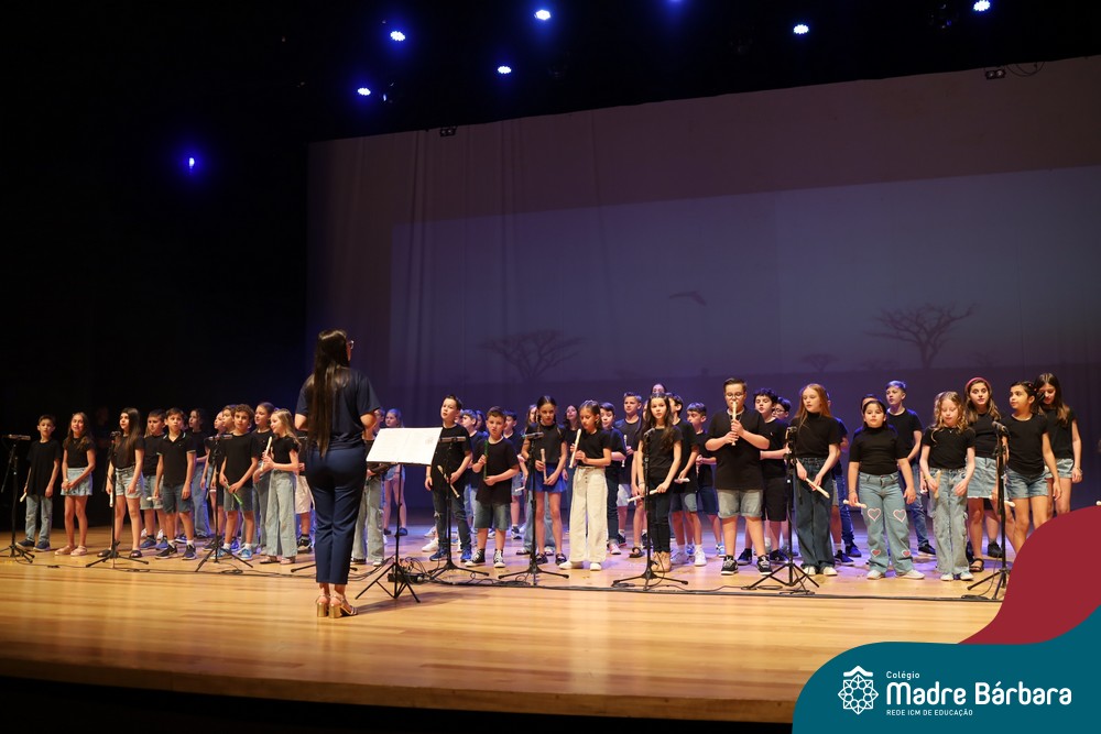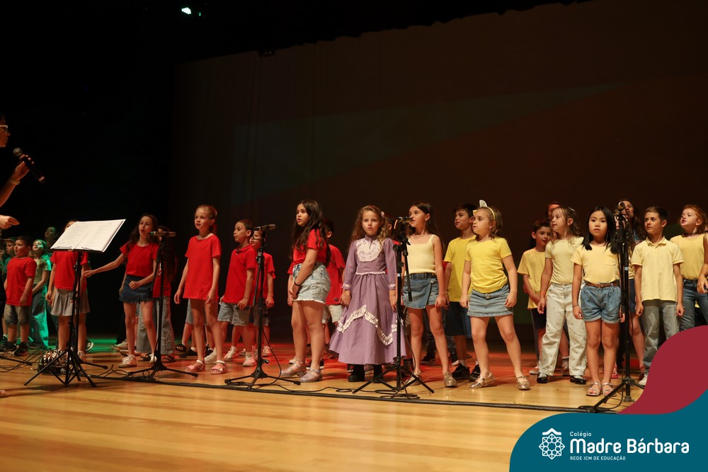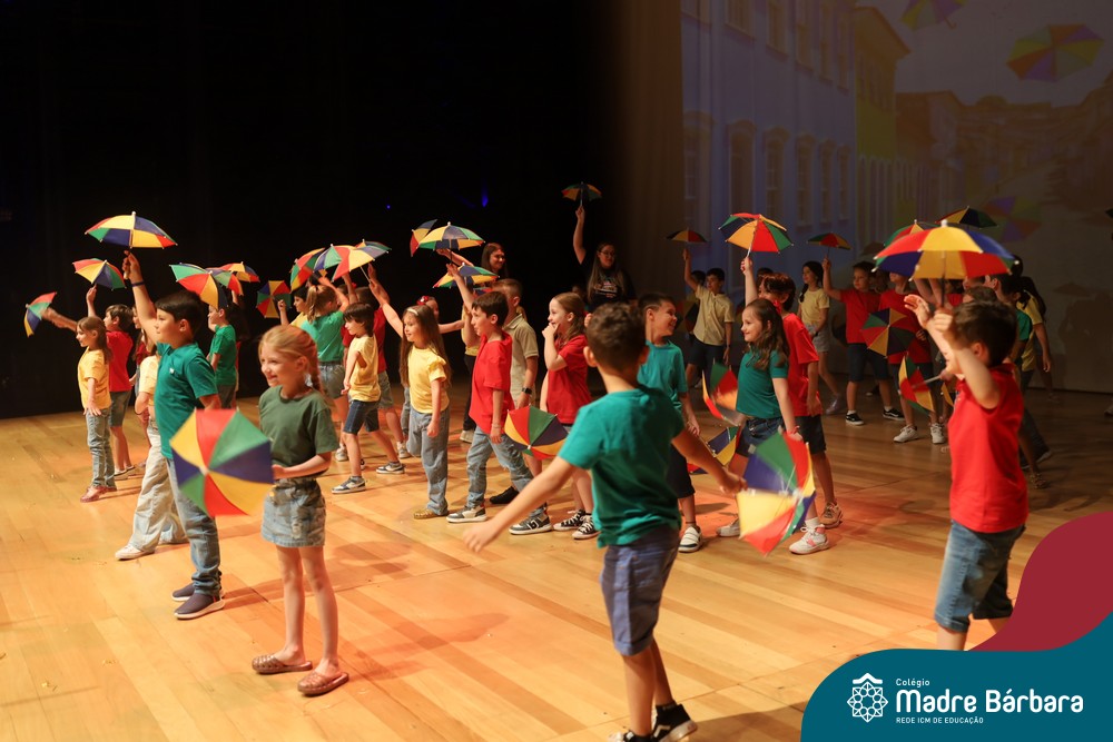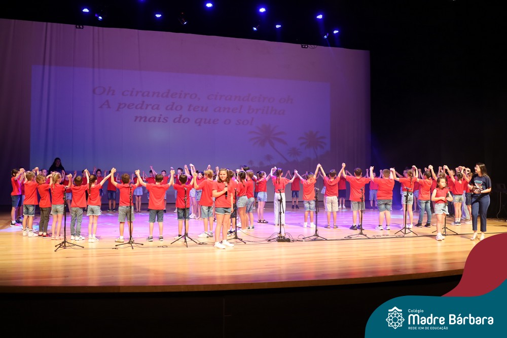 Na noite de quarta-feira, 3 de dezembro, o Teatro da Univates foi palco de um espetáculo encantador: a apresentação dos Anos Iniciais do Colégio Madre Bárbara, com a temática “Cantata de Natal – O Presente Perdido”. Dividido em dois momentos, o evento reuniu as turmas do 1º ao 5º ano dos turnos da manhã e da tarde, que brilharam com talento, sensibilidade e uma qualidade artística que emocionou todos os presentes. Interpretando, cantando, tocando e dançando músicas populares brasileiras, representando diversas localidades do Brasil, as crianças deram um show de conhecimento e celebraram com alegria a riqueza da nossa cultura.