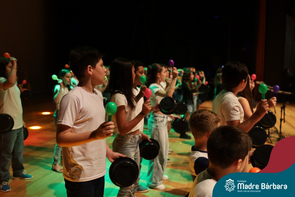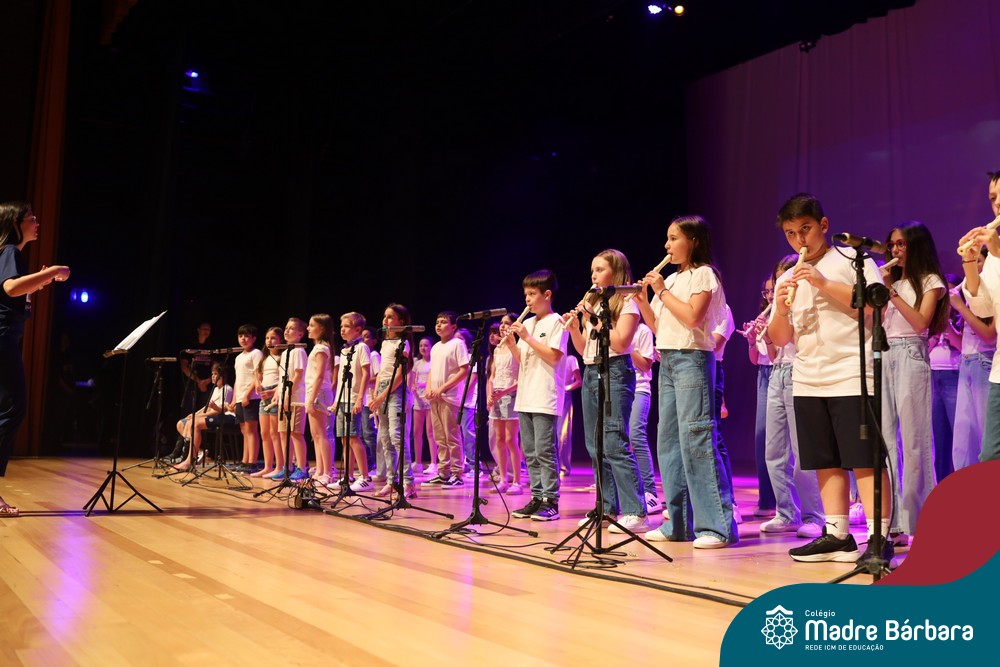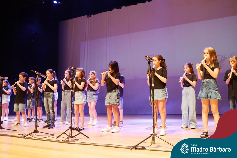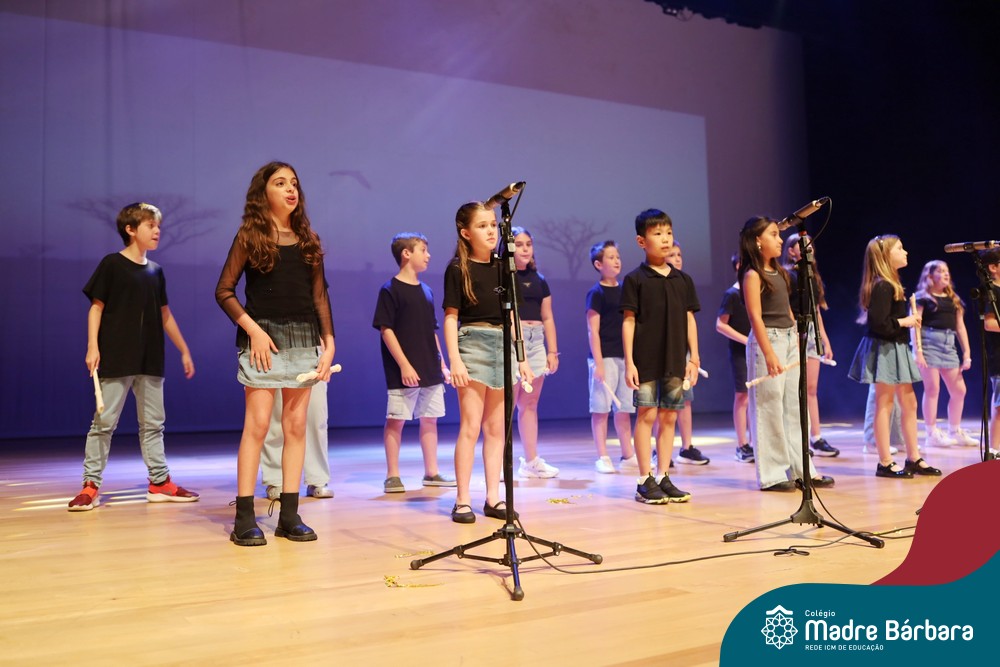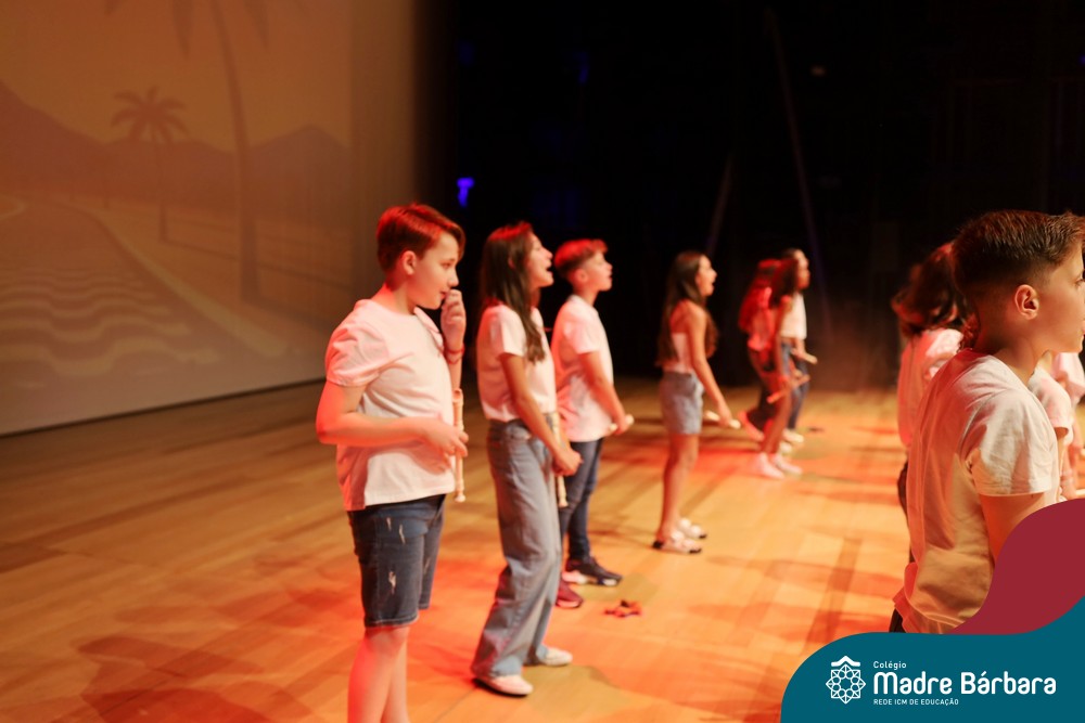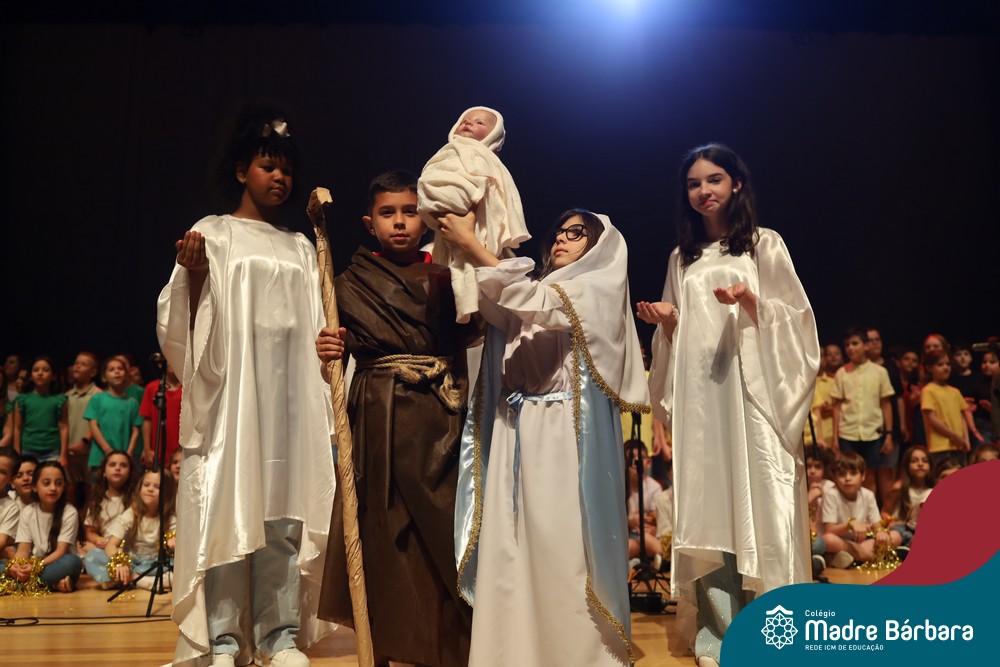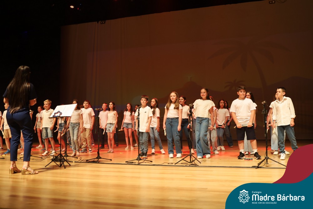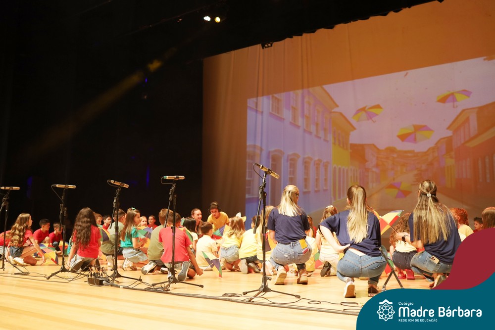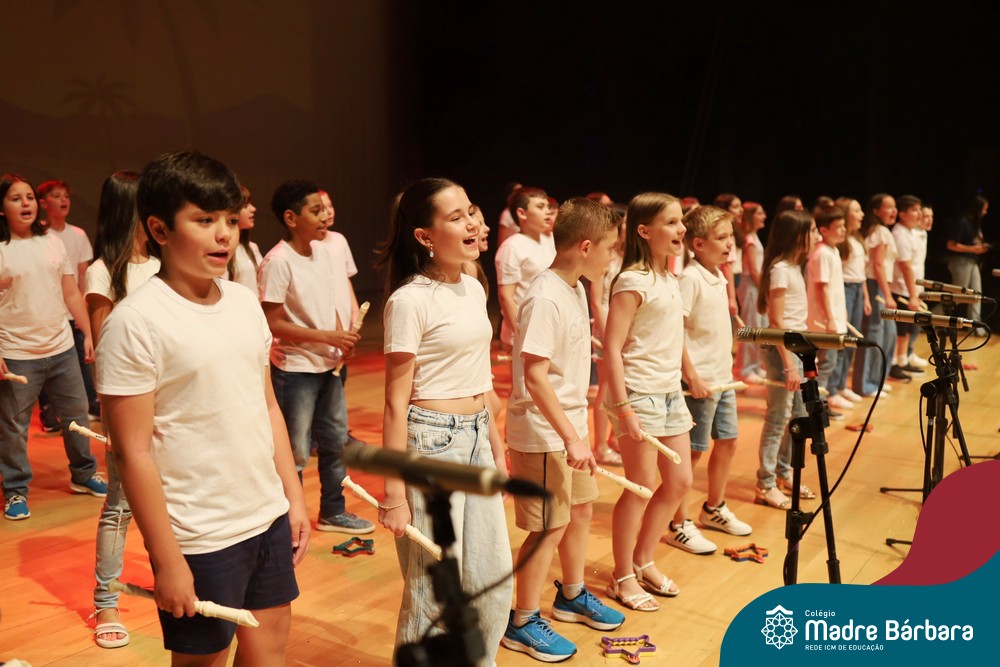 Na noite de quarta-feira, 3 de dezembro, o Teatro da Univates foi palco de um espetáculo encantador: a apresentação dos Anos Iniciais do Colégio Madre Bárbara, com a temática “Cantata de Natal – O Presente Perdido”. Dividido em dois momentos, o evento reuniu as turmas do 1º ao 5º ano dos turnos da manhã e da tarde, que brilharam com talento, sensibilidade e uma qualidade artística que emocionou todos os presentes. Interpretando, cantando, tocando e dançando músicas populares brasileiras, representando diversas localidades do Brasil, as crianças deram um show de conhecimento e celebraram com alegria a riqueza da nossa cultura.