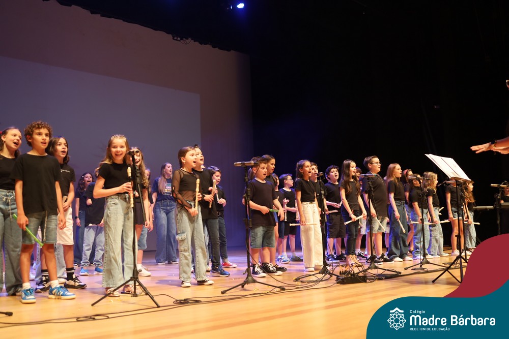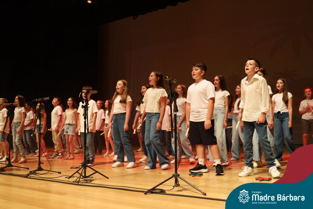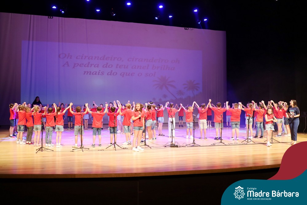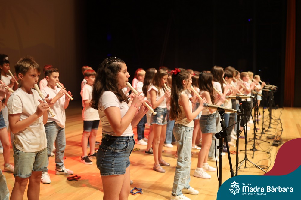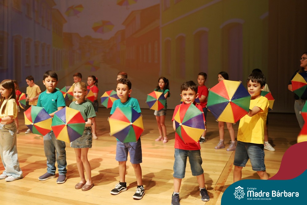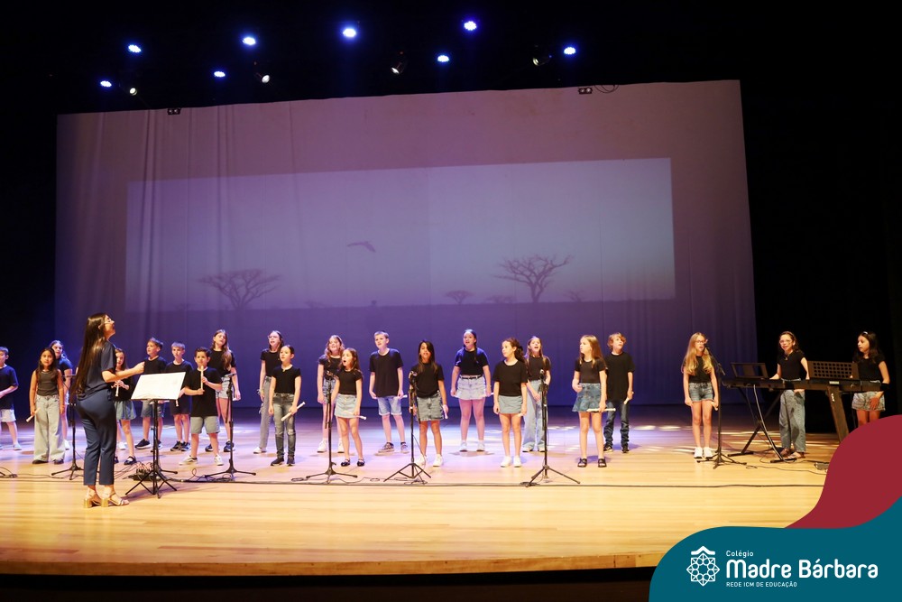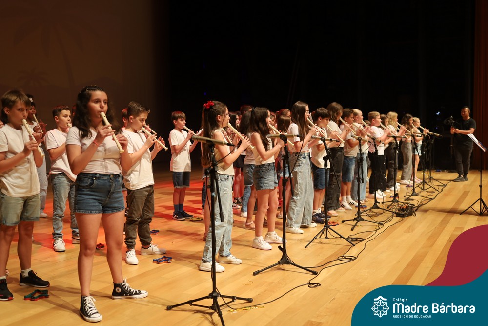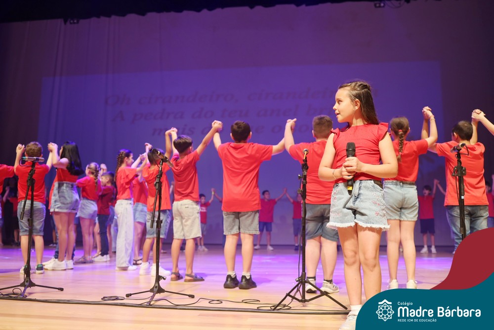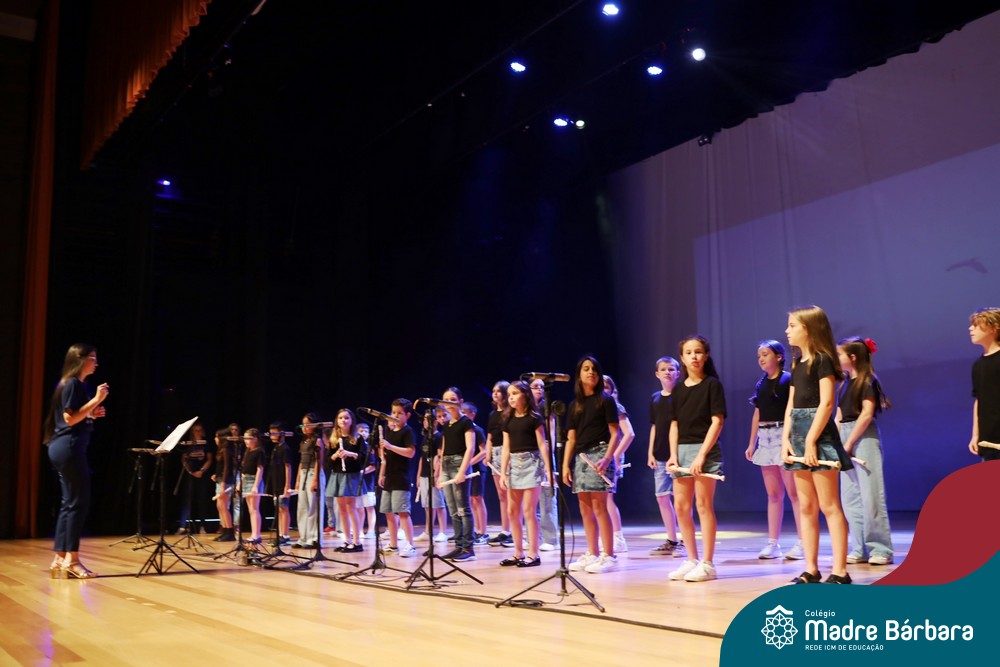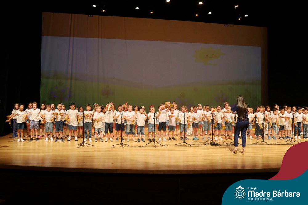Na noite de quarta-feira, 3 de dezembro, o Teatro da Univates foi palco de um espetáculo encantador: a apresentação dos Anos Iniciais do Colégio Madre Bárbara, com a temática “Cantata de Natal – O Presente Perdido”. Dividido em dois momentos, o evento reuniu as turmas do 1º ao 5º ano dos turnos da manhã e da tarde, que brilharam com talento, sensibilidade e uma qualidade artística que emocionou todos os presentes. Interpretando, cantando, tocando e dançando músicas populares brasileiras, representando diversas localidades do Brasil, as crianças deram um show de conhecimento e celebraram com alegria a riqueza da nossa cultura.