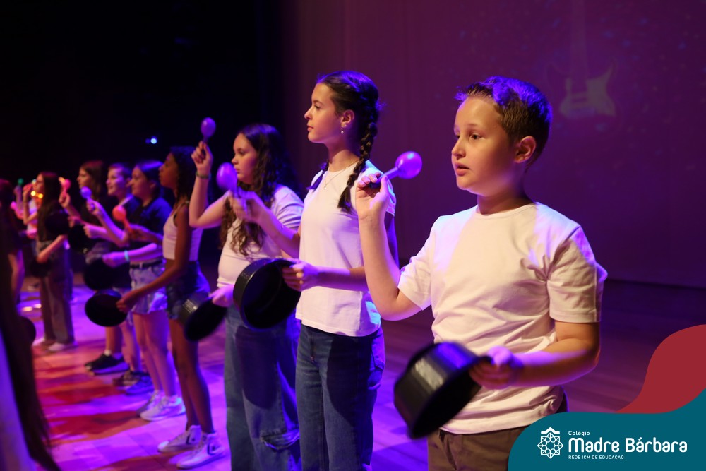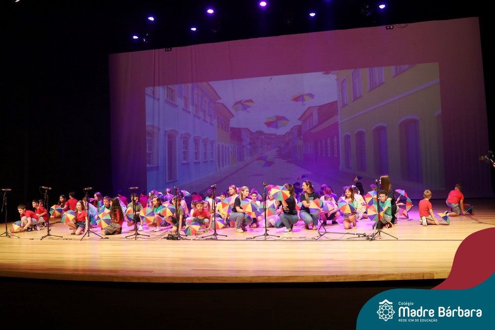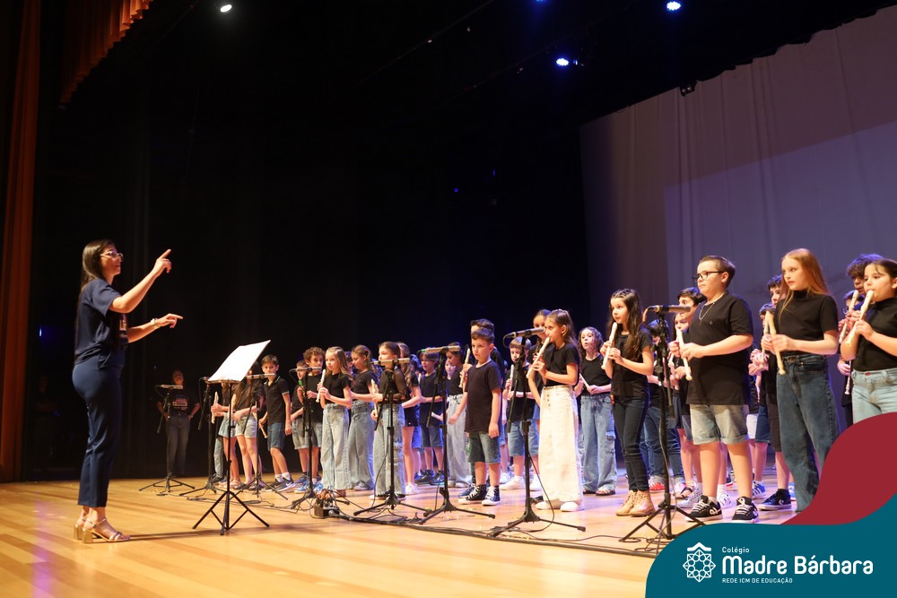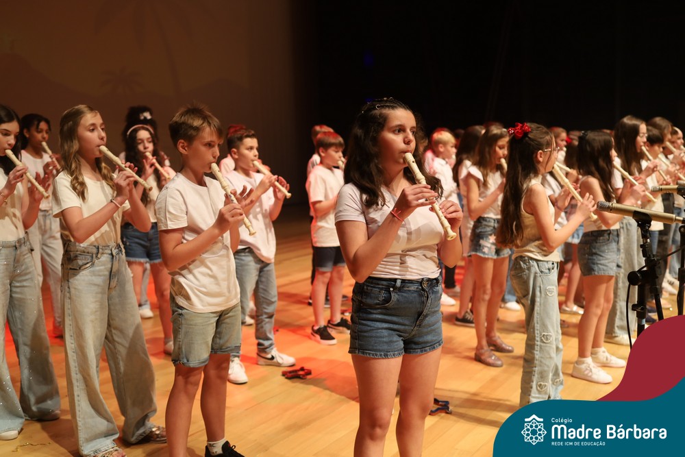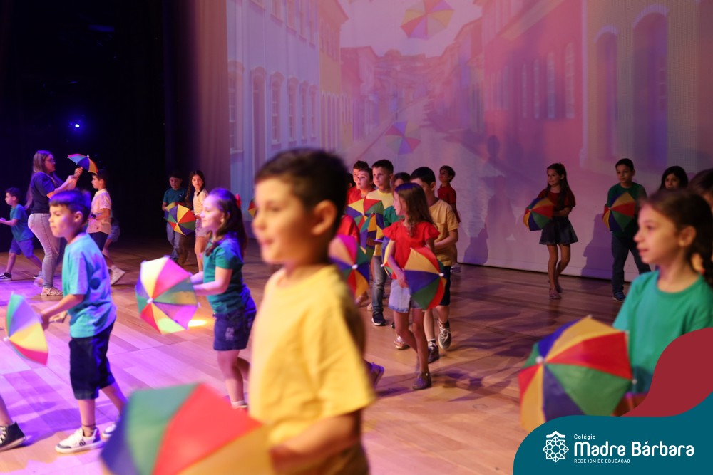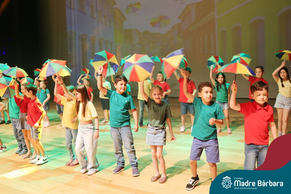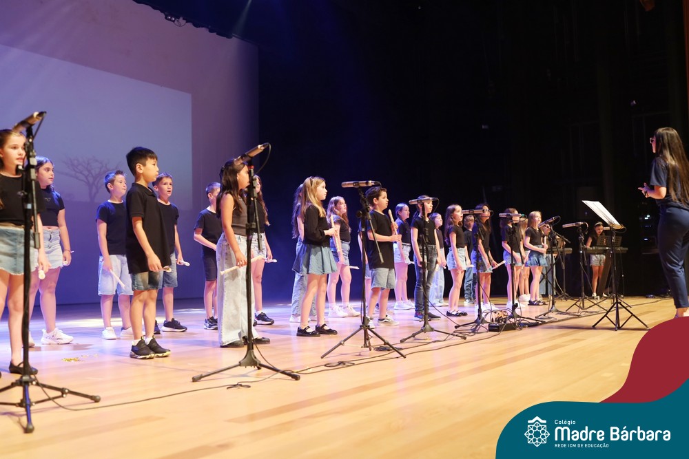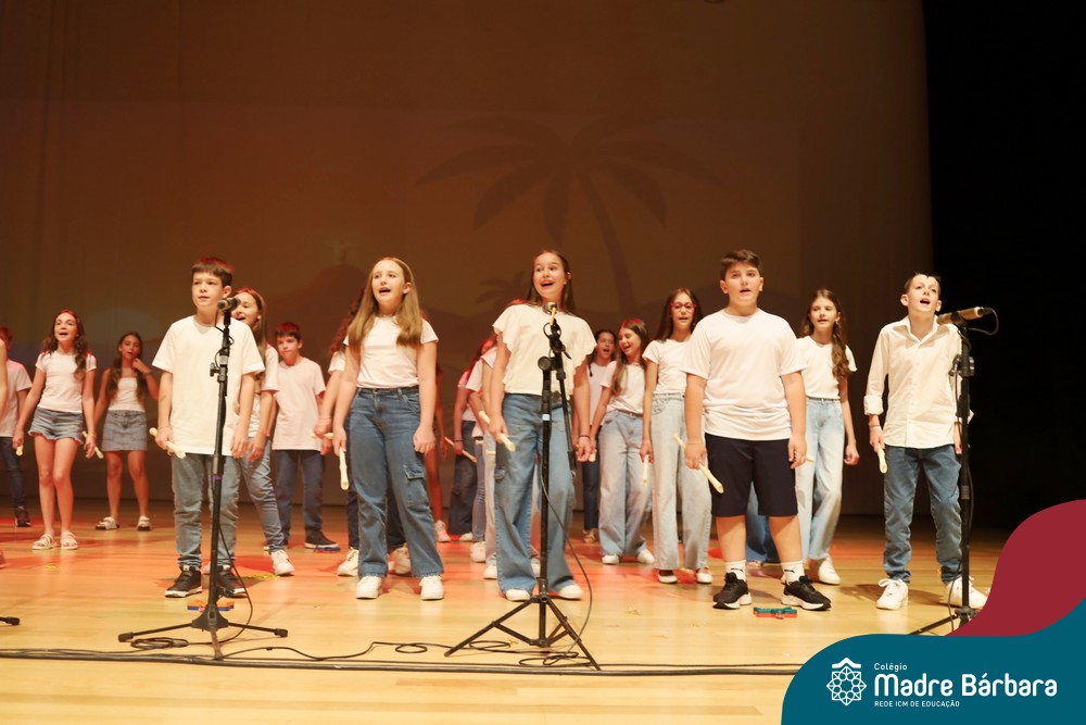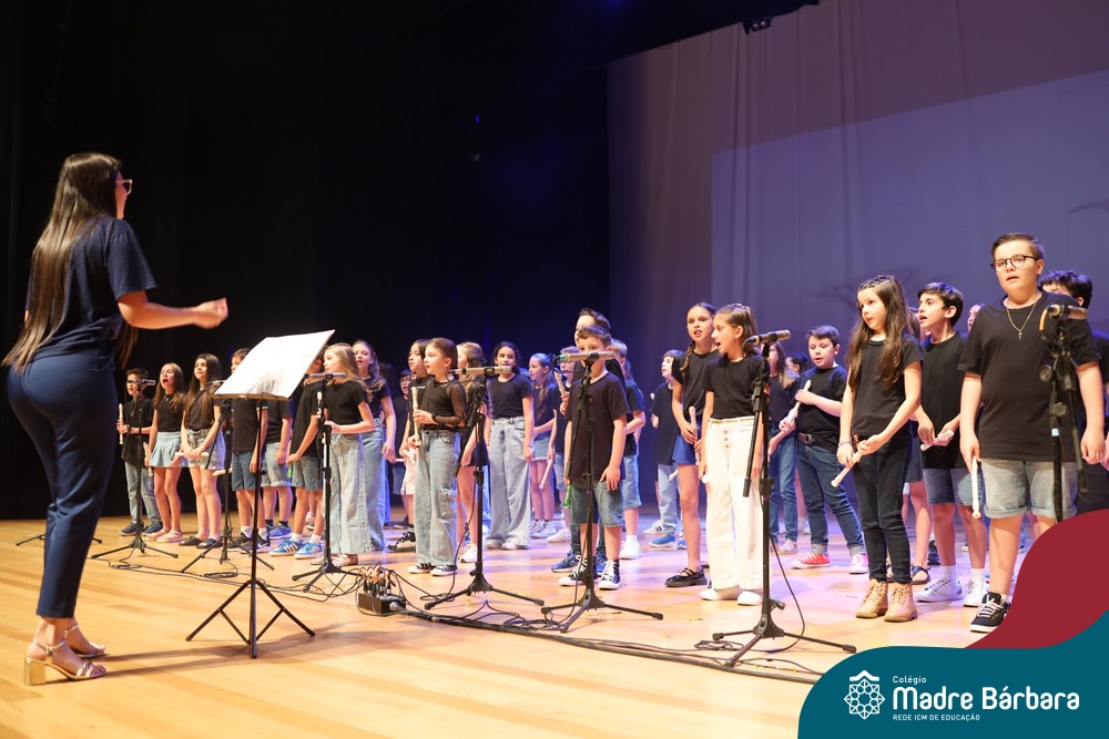 Na noite de quarta-feira, 3 de dezembro, o Teatro da Univates foi palco de um espetáculo encantador: a apresentação dos Anos Iniciais do Colégio Madre Bárbara, com a temática “Cantata de Natal – O Presente Perdido”. Dividido em dois momentos, o evento reuniu as turmas do 1º ao 5º ano dos turnos da manhã e da tarde, que brilharam com talento, sensibilidade e uma qualidade artística que emocionou todos os presentes. Interpretando, cantando, tocando e dançando músicas populares brasileiras, representando diversas localidades do Brasil, as crianças deram um show de conhecimento e celebraram com alegria a riqueza da nossa cultura.