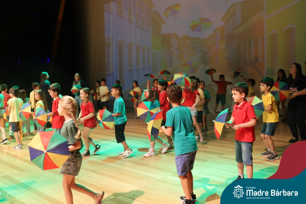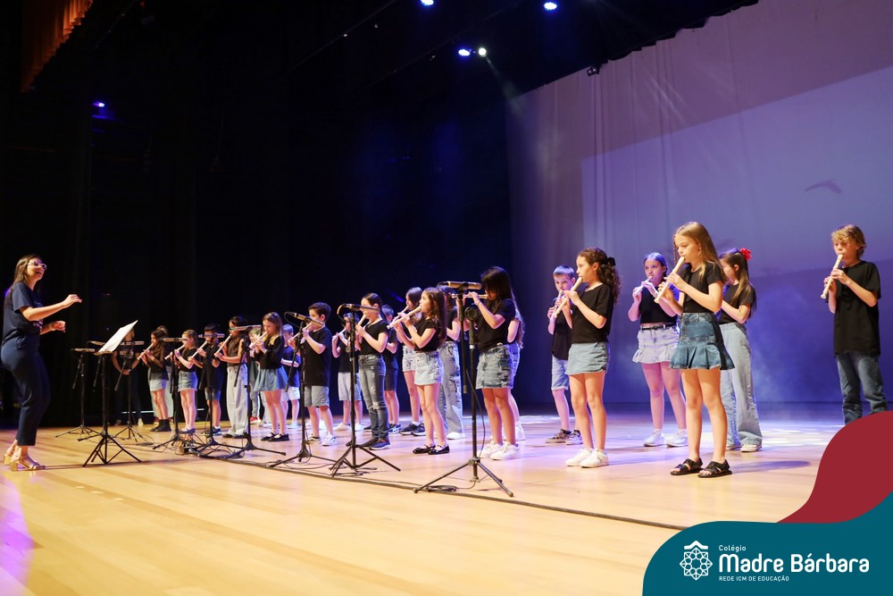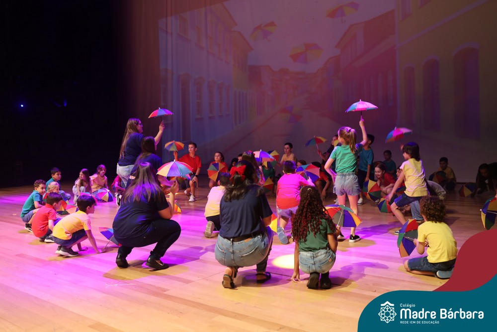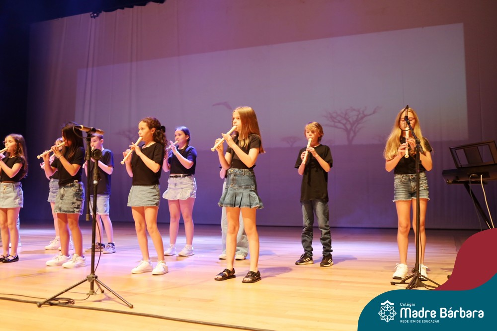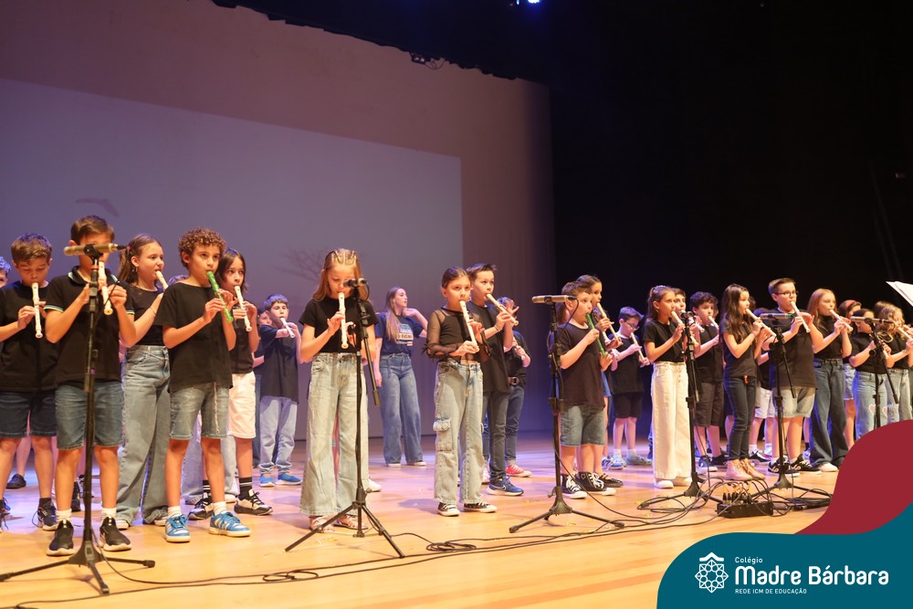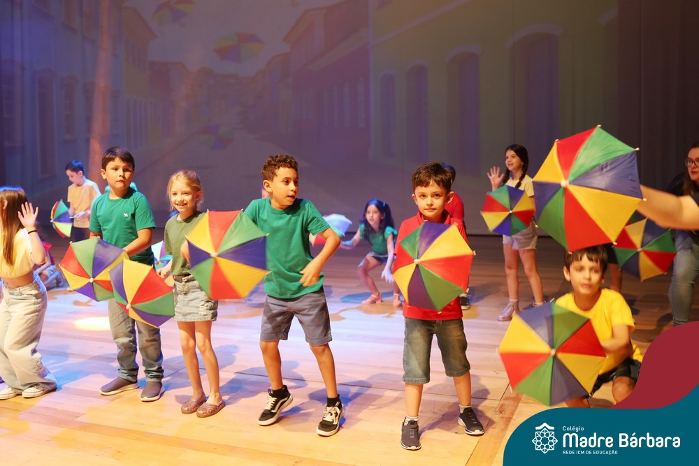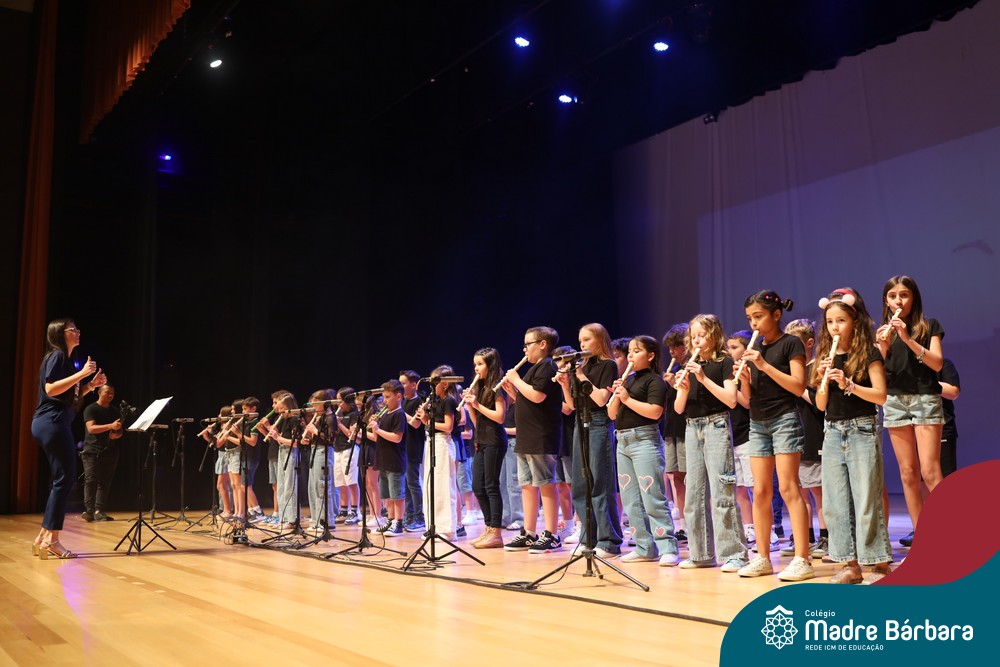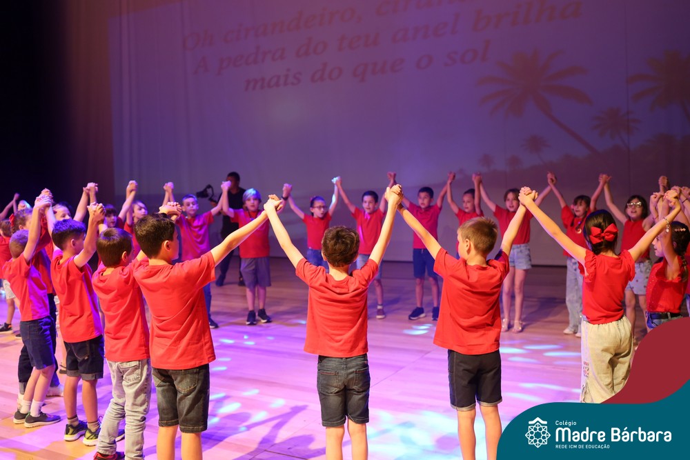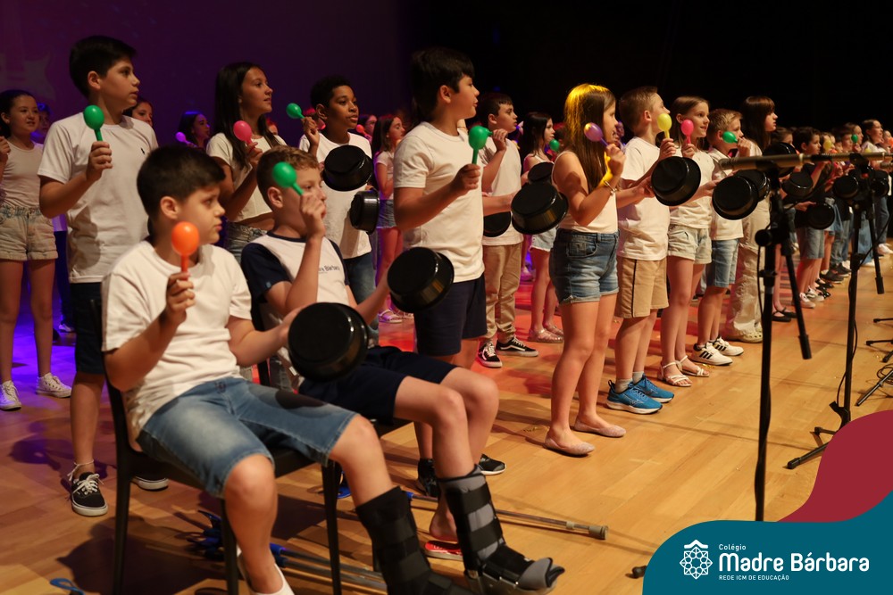 Na noite de quarta-feira, 3 de dezembro, o Teatro da Univates foi palco de um espetáculo encantador: a apresentação dos Anos Iniciais do Colégio Madre Bárbara, com a temática “Cantata de Natal – O Presente Perdido”. Dividido em dois momentos, o evento reuniu as turmas do 1º ao 5º ano dos turnos da manhã e da tarde, que brilharam com talento, sensibilidade e uma qualidade artística que emocionou todos os presentes. Interpretando, cantando, tocando e dançando músicas populares brasileiras, representando diversas localidades do Brasil, as crianças deram um show de conhecimento e celebraram com alegria a riqueza da nossa cultura.