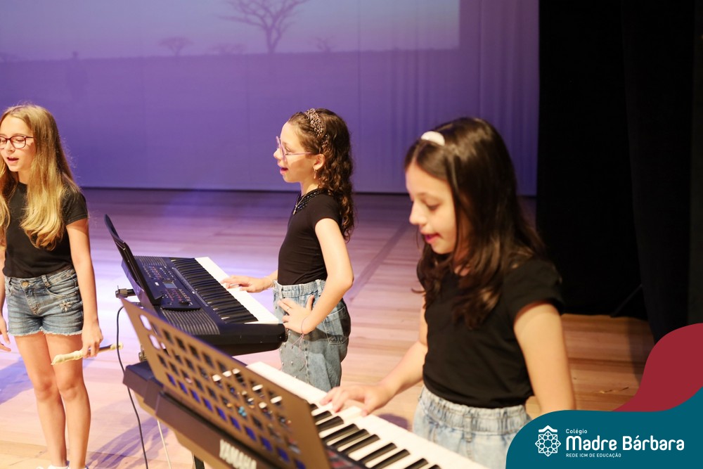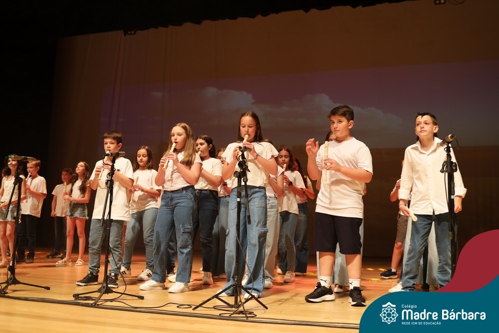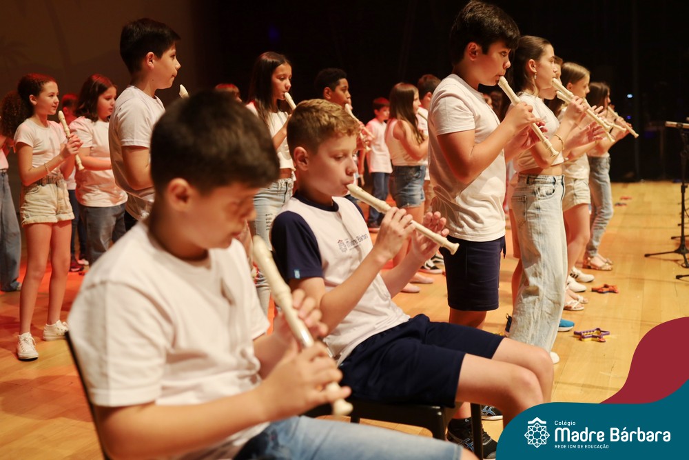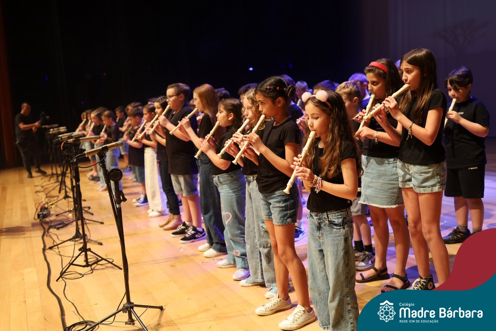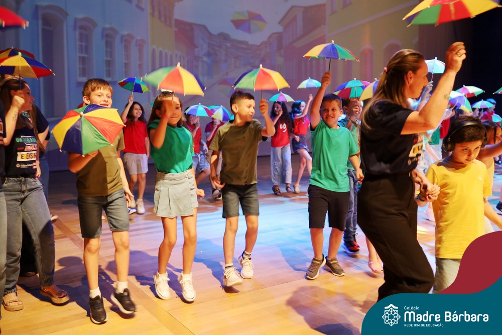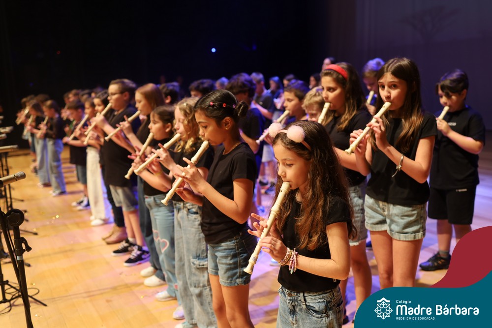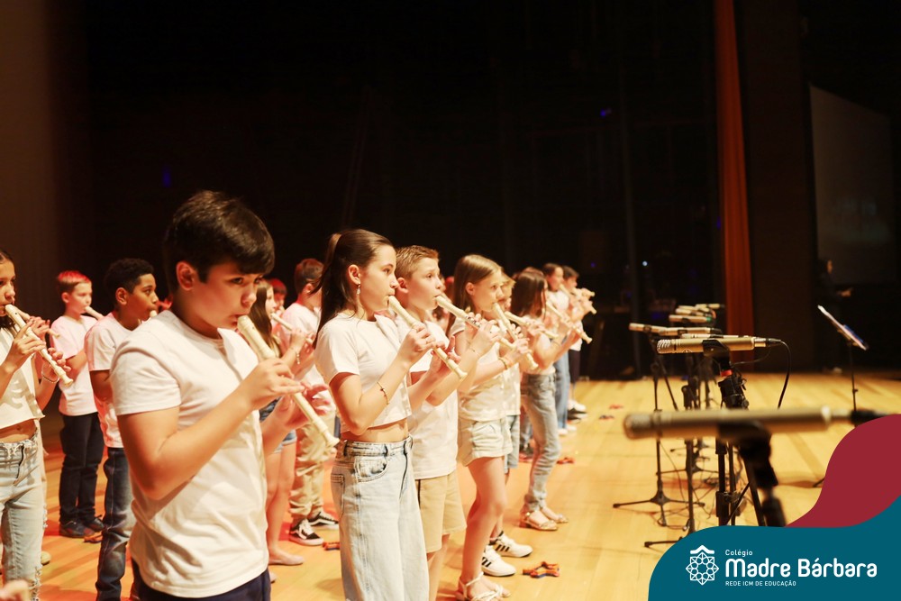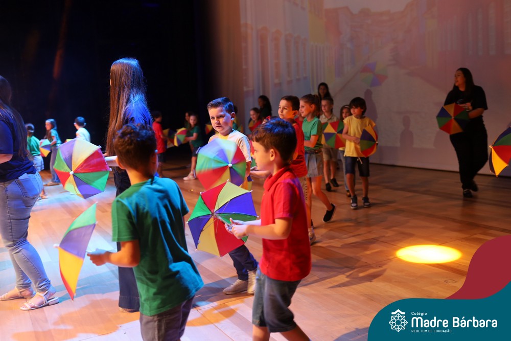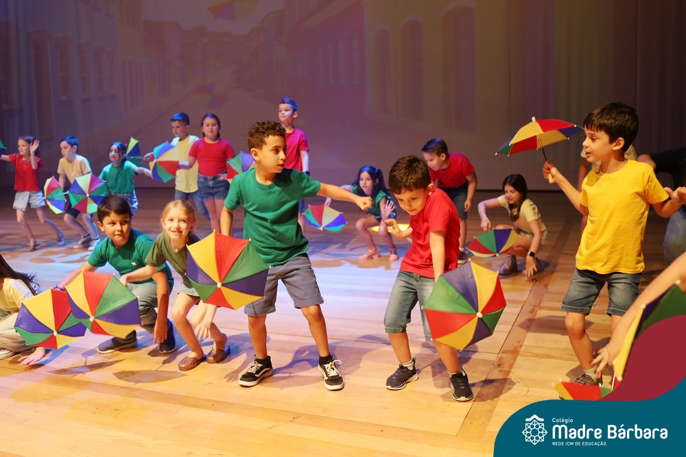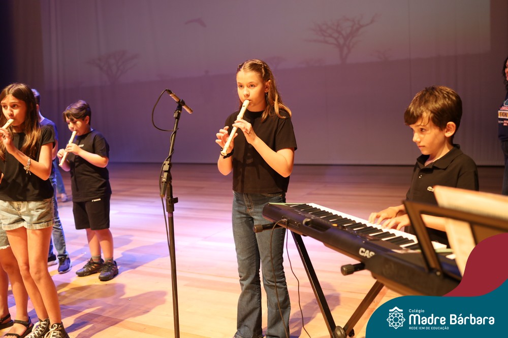 Na noite de quarta-feira, 3 de dezembro, o Teatro da Univates foi palco de um espetáculo encantador: a apresentação dos Anos Iniciais do Colégio Madre Bárbara, com a temática “Cantata de Natal – O Presente Perdido”. Dividido em dois momentos, o evento reuniu as turmas do 1º ao 5º ano dos turnos da manhã e da tarde, que brilharam com talento, sensibilidade e uma qualidade artística que emocionou todos os presentes. Interpretando, cantando, tocando e dançando músicas populares brasileiras, representando diversas localidades do Brasil, as crianças deram um show de conhecimento e celebraram com alegria a riqueza da nossa cultura.