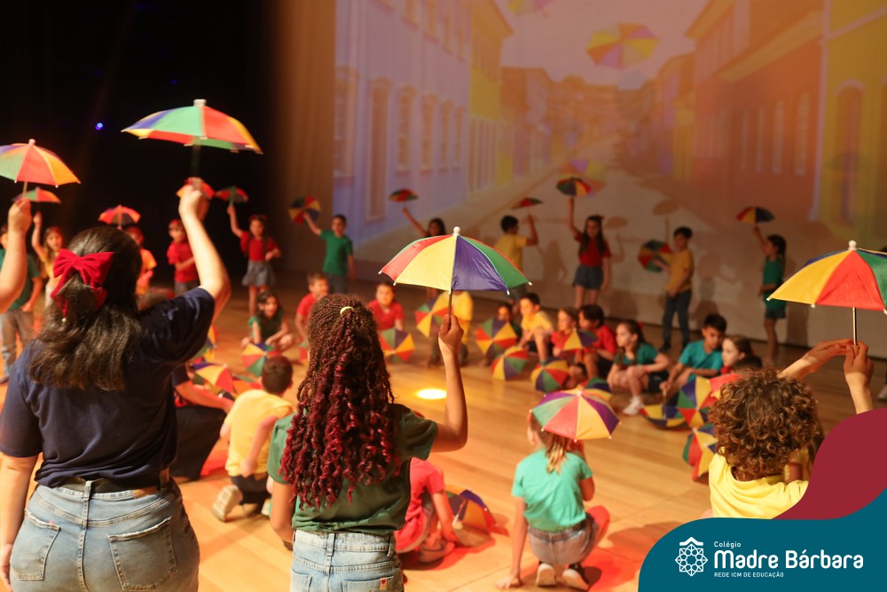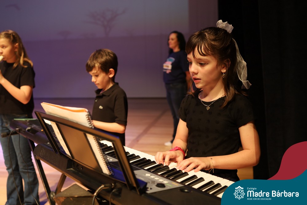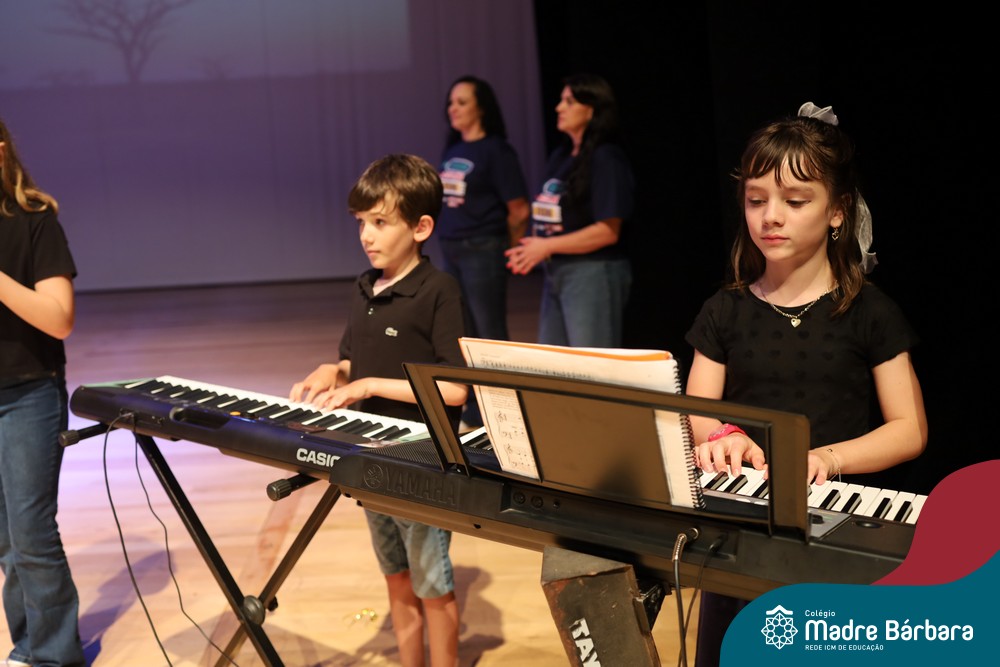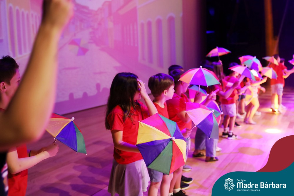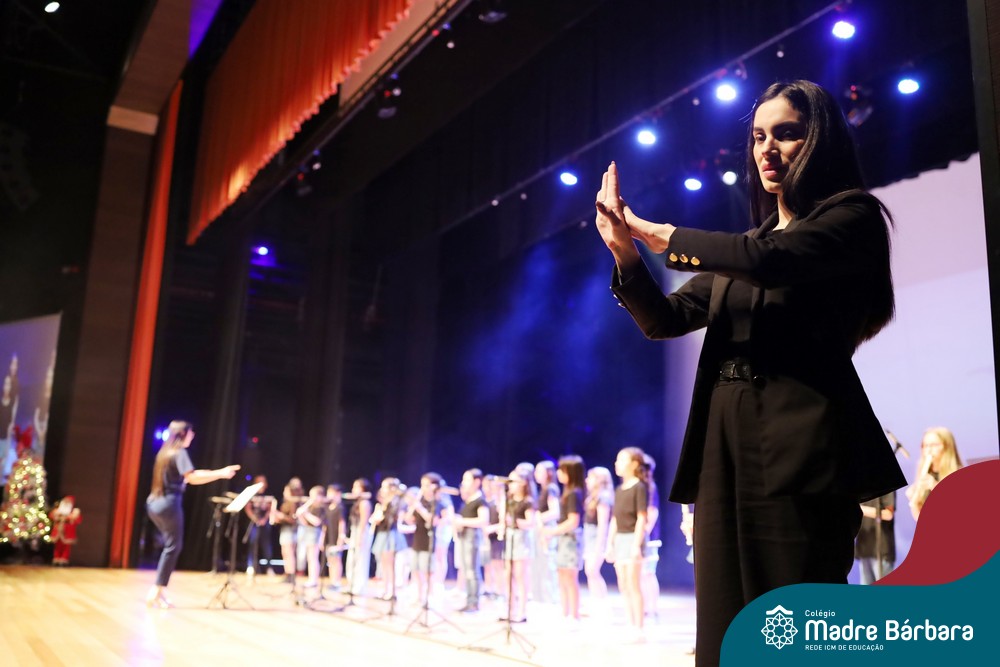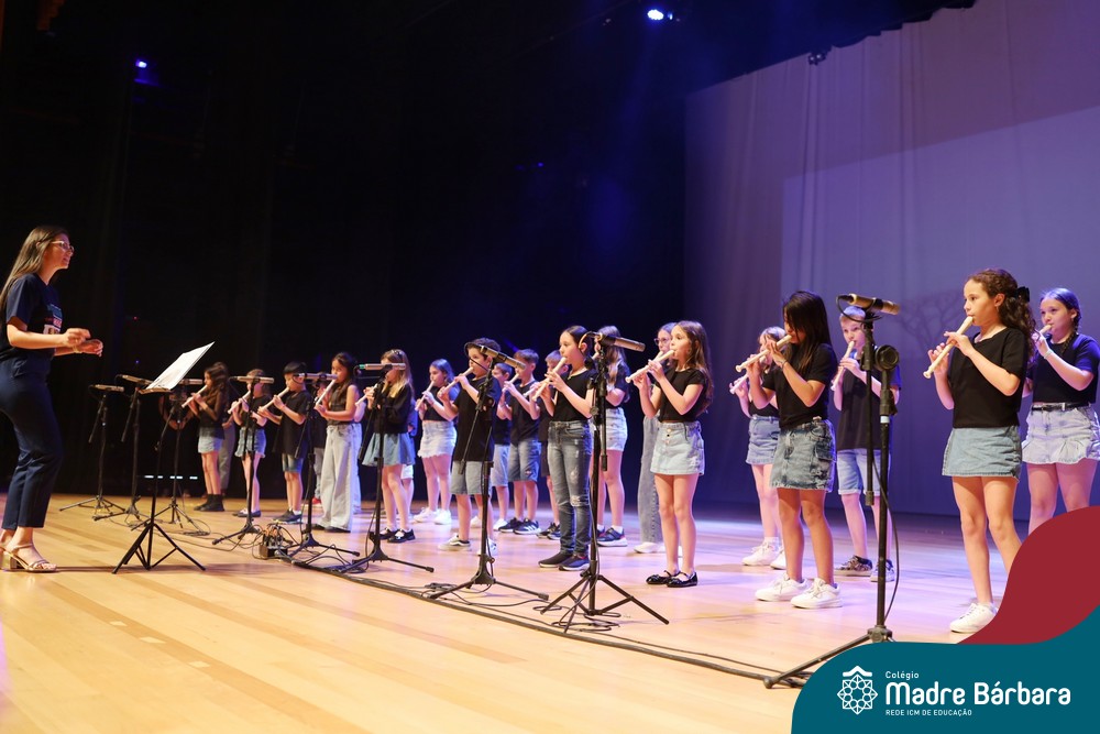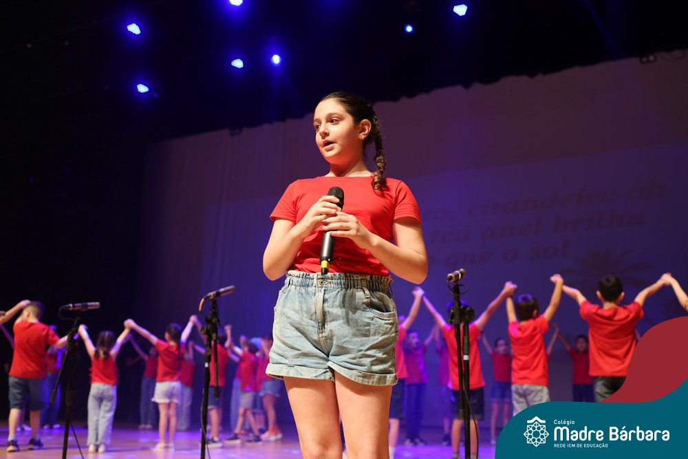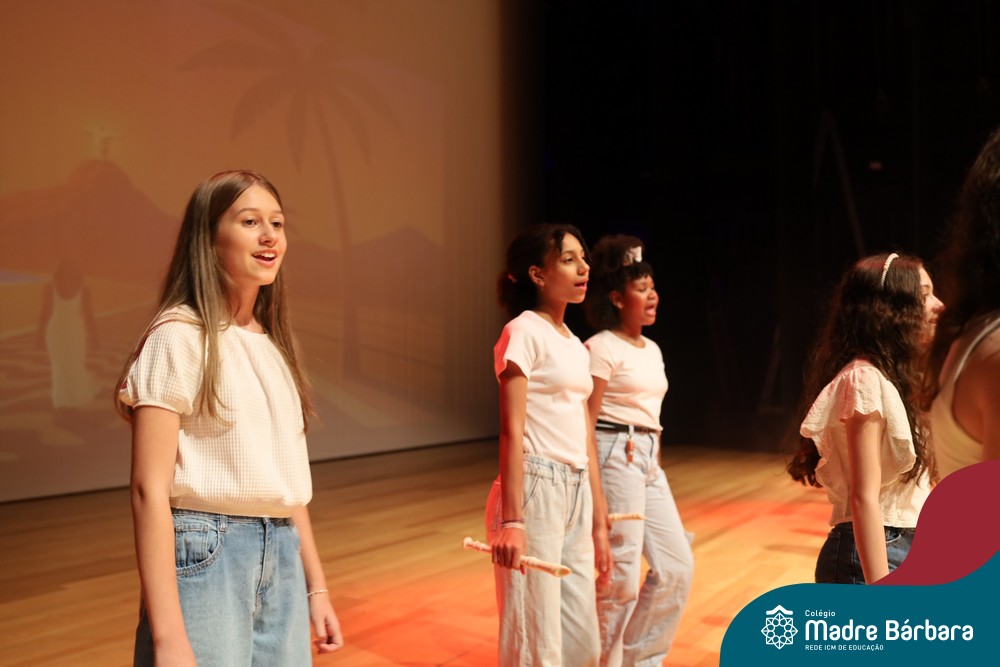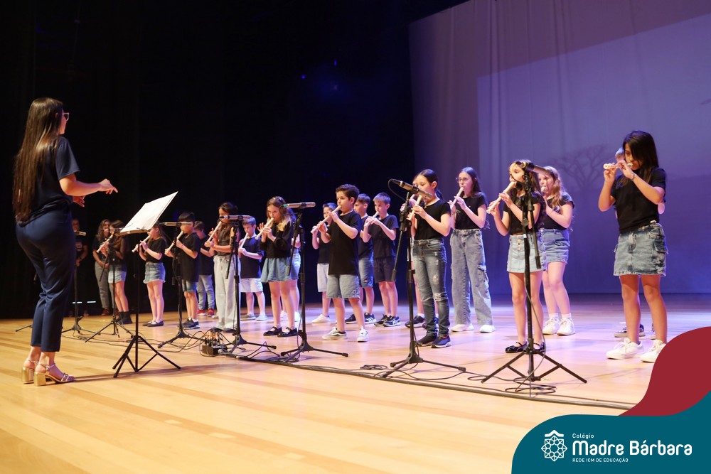 Na noite de quarta-feira, 3 de dezembro, o Teatro da Univates foi palco de um espetáculo encantador: a apresentação dos Anos Iniciais do Colégio Madre Bárbara, com a temática “Cantata de Natal – O Presente Perdido”. Dividido em dois momentos, o evento reuniu as turmas do 1º ao 5º ano dos turnos da manhã e da tarde, que brilharam com talento, sensibilidade e uma qualidade artística que emocionou todos os presentes. Interpretando, cantando, tocando e dançando músicas populares brasileiras, representando diversas localidades do Brasil, as crianças deram um show de conhecimento e celebraram com alegria a riqueza da nossa cultura.