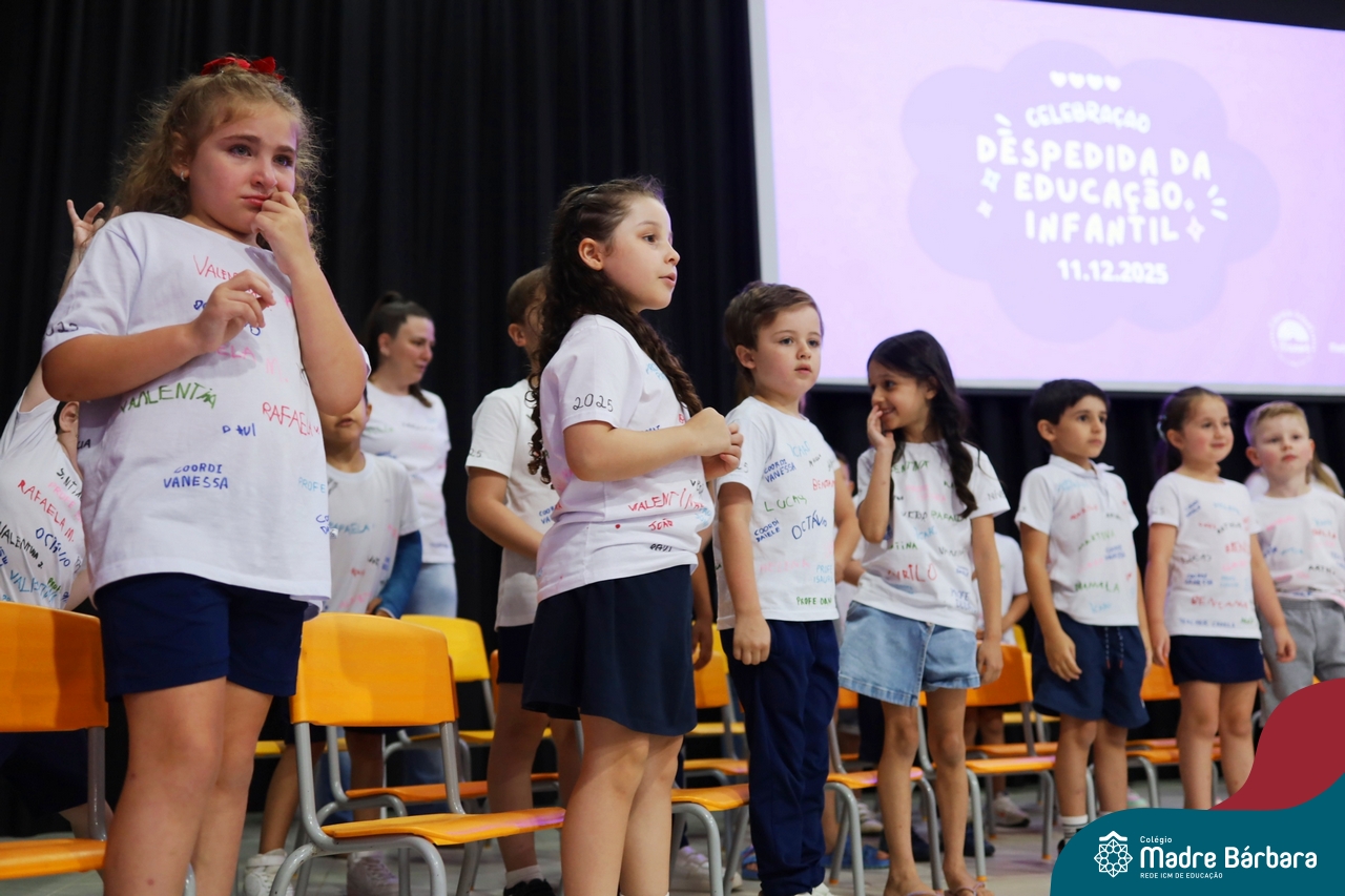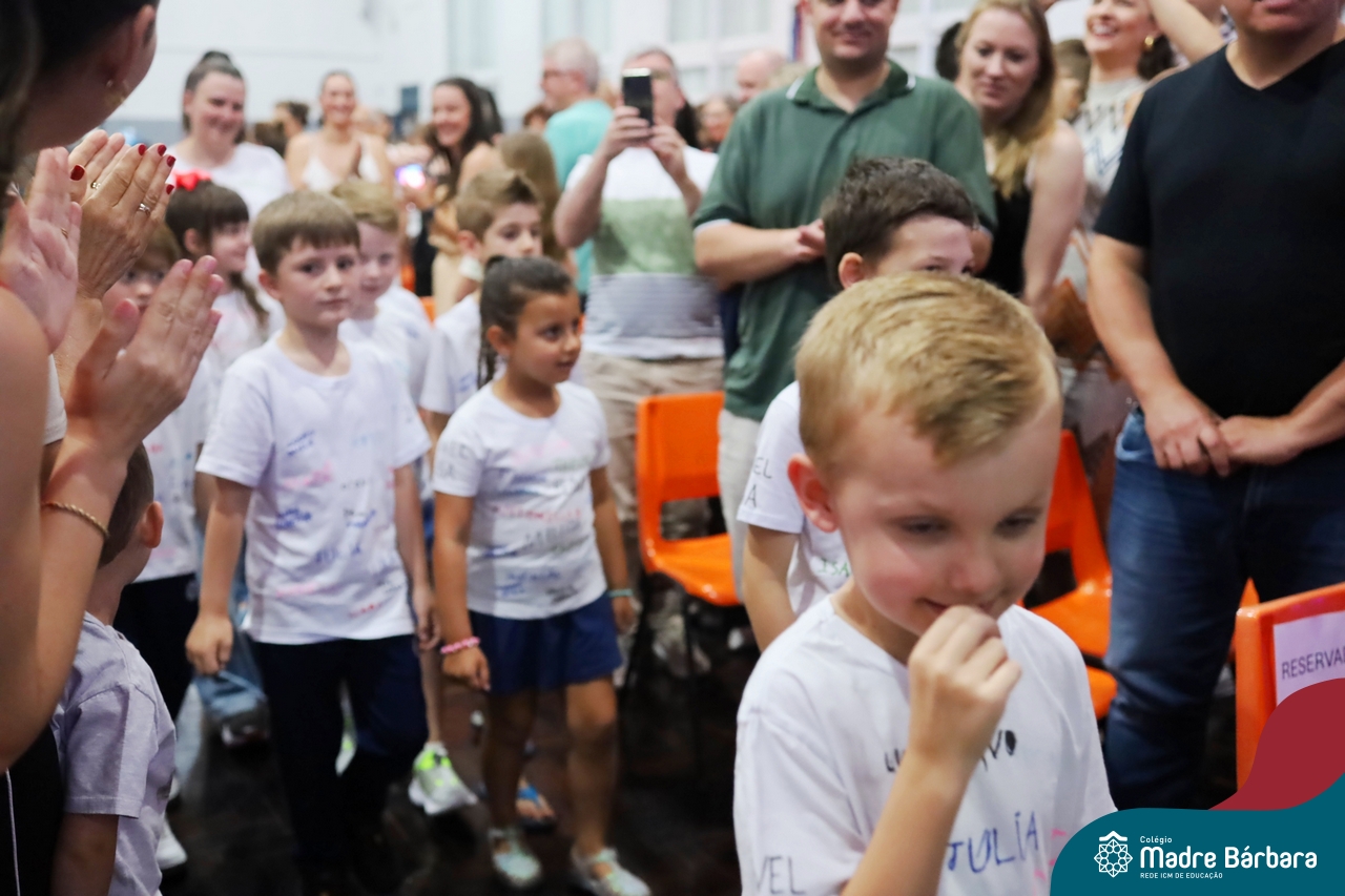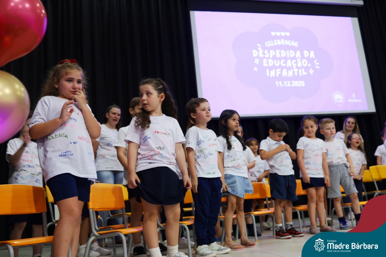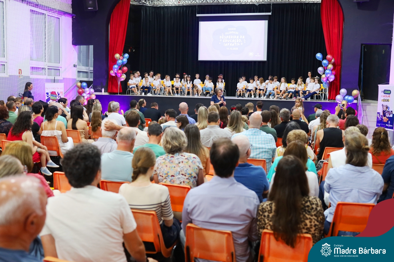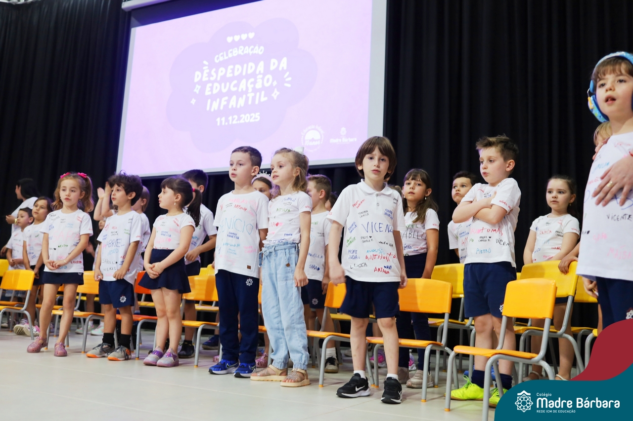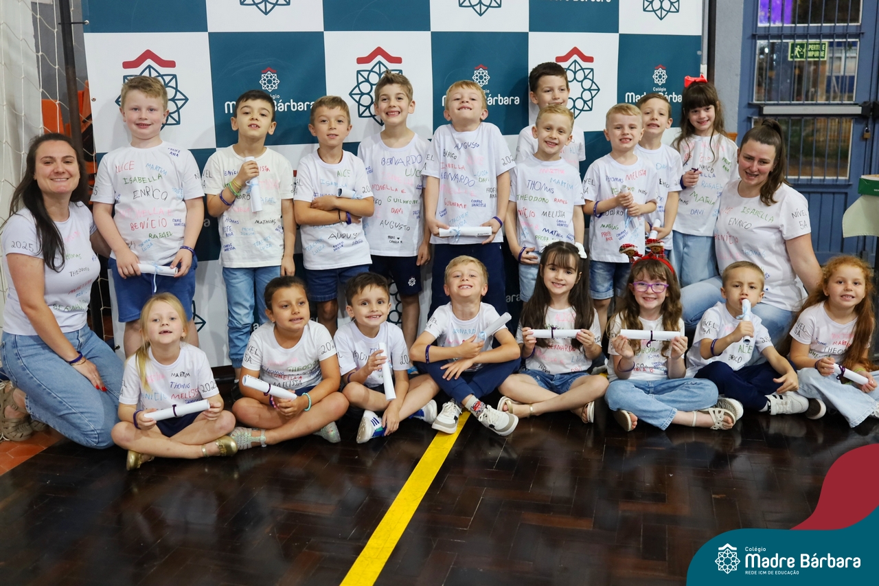 O Colégio Madre Bárbara viveu, na noite de quinta-feira (11/12), um momento de grande emoção e significado: o encerramento dos Níveis 5 da Educação Infantil. O evento, realizado no Salão de Eventos, reuniu famílias, professores e a equipe de coordenação para celebrar a trajetória das crianças e marcar a transição para uma nova etapa escolar. Durante a noite, as crianças encantaram a todos com lindas apresentações preparadas com carinho ao longo das últimas semanas. Foi um instante especial, em que cada gesto e sorriso revelava a alegria e o orgulho pelo caminho percorrido. Após as apresentações, os alunos receberam uma homenagem das professoras e da coordenação, que expressaram votos de felicidade e sucesso nessa nova jornada rumo aos 1ºs anos do Ensino Fundamental.