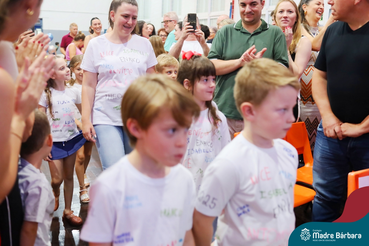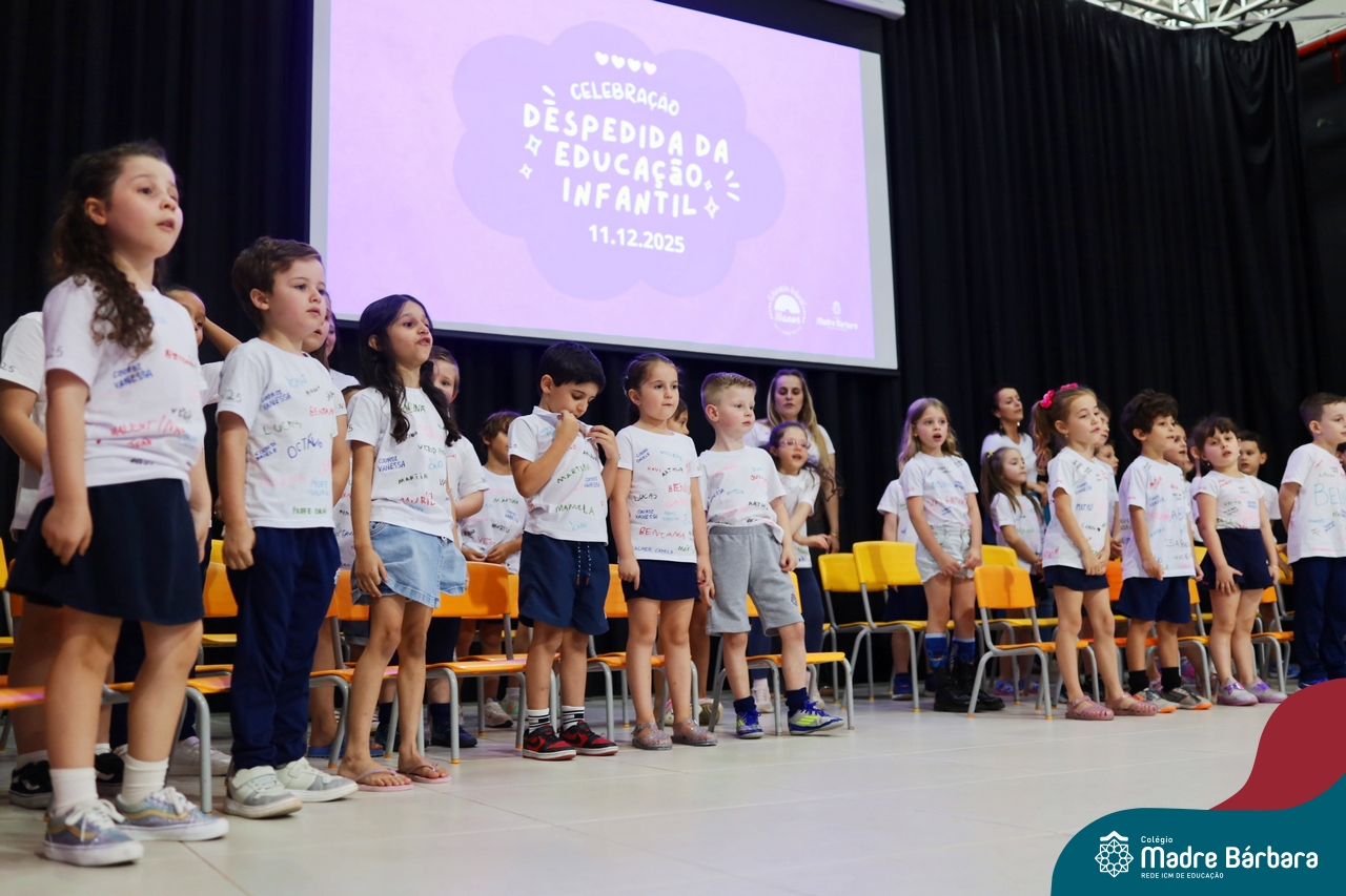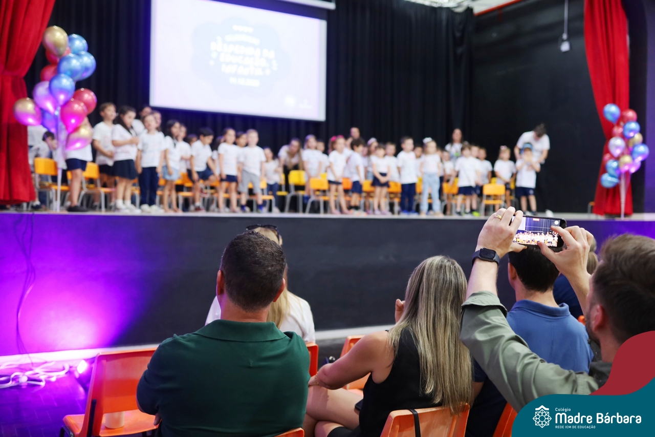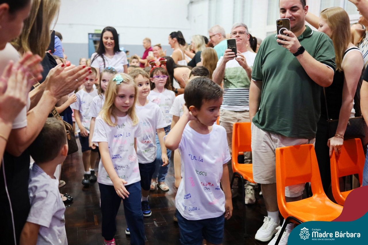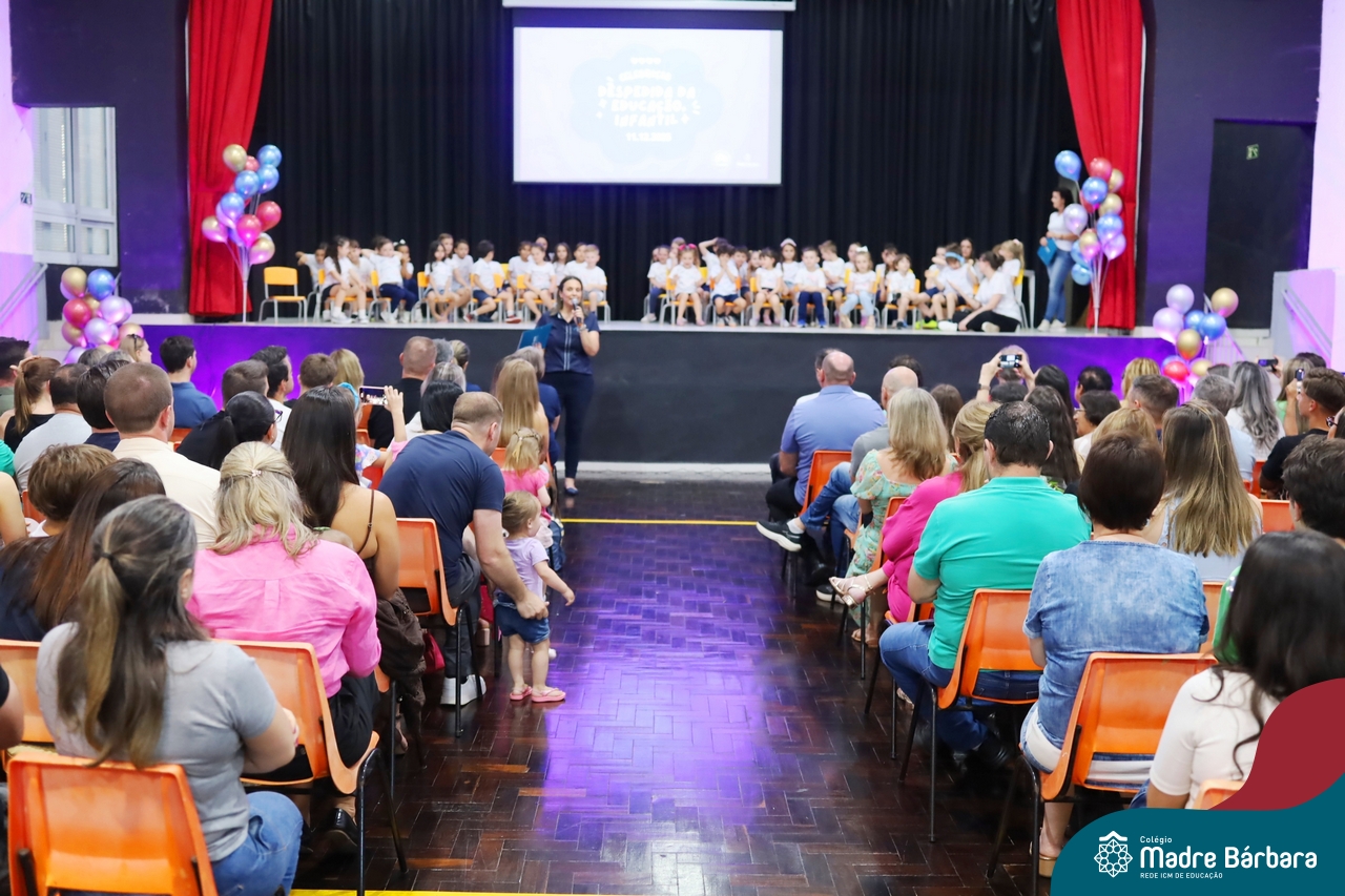 O Colégio Madre Bárbara viveu, na noite de quinta-feira (11/12), um momento de grande emoção e significado: o encerramento dos Níveis 5 da Educação Infantil. O evento, realizado no Salão de Eventos, reuniu famílias, professores e a equipe de coordenação para celebrar a trajetória das crianças e marcar a transição para uma nova etapa escolar. Durante a noite, as crianças encantaram a todos com lindas apresentações preparadas com carinho ao longo das últimas semanas. Foi um instante especial, em que cada gesto e sorriso revelava a alegria e o orgulho pelo caminho percorrido. Após as apresentações, os alunos receberam uma homenagem das professoras e da coordenação, que expressaram votos de felicidade e sucesso nessa nova jornada rumo aos 1ºs anos do Ensino Fundamental.
