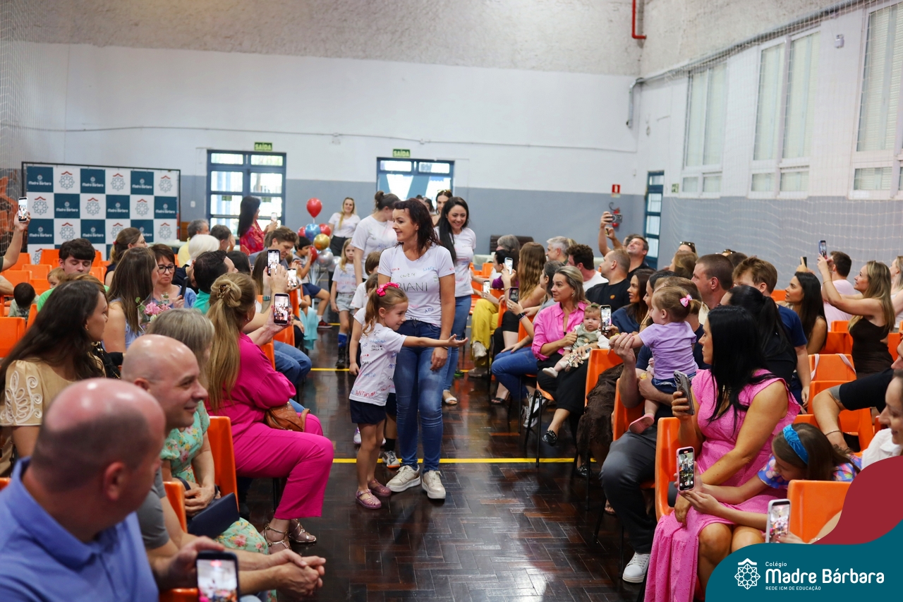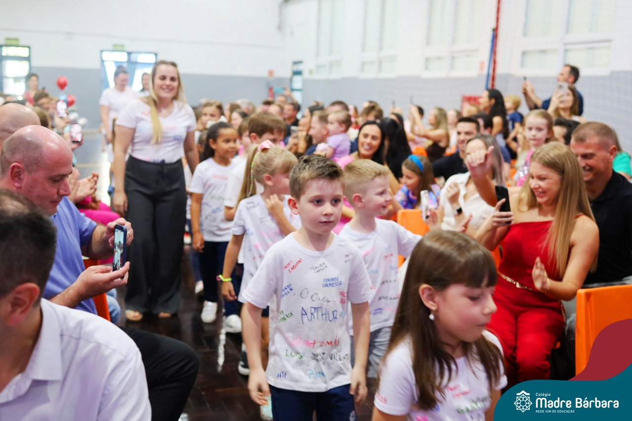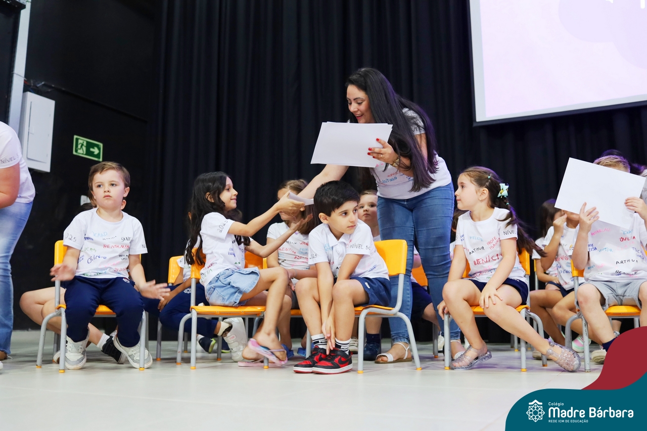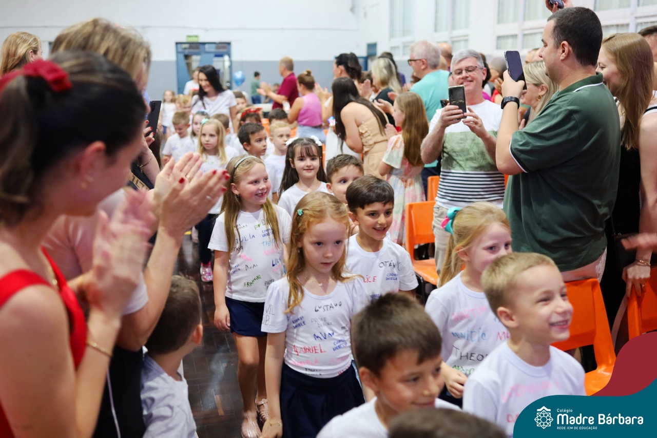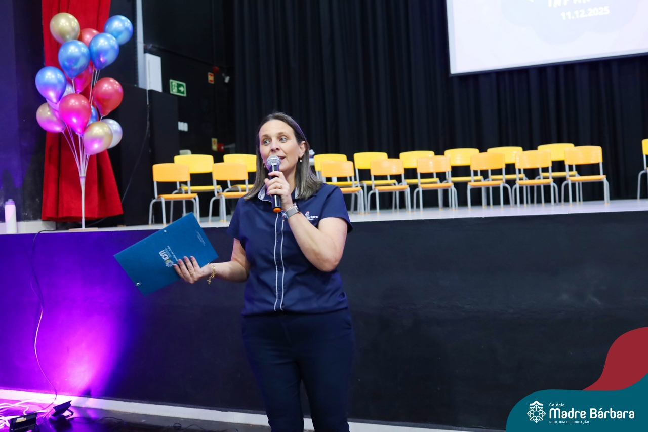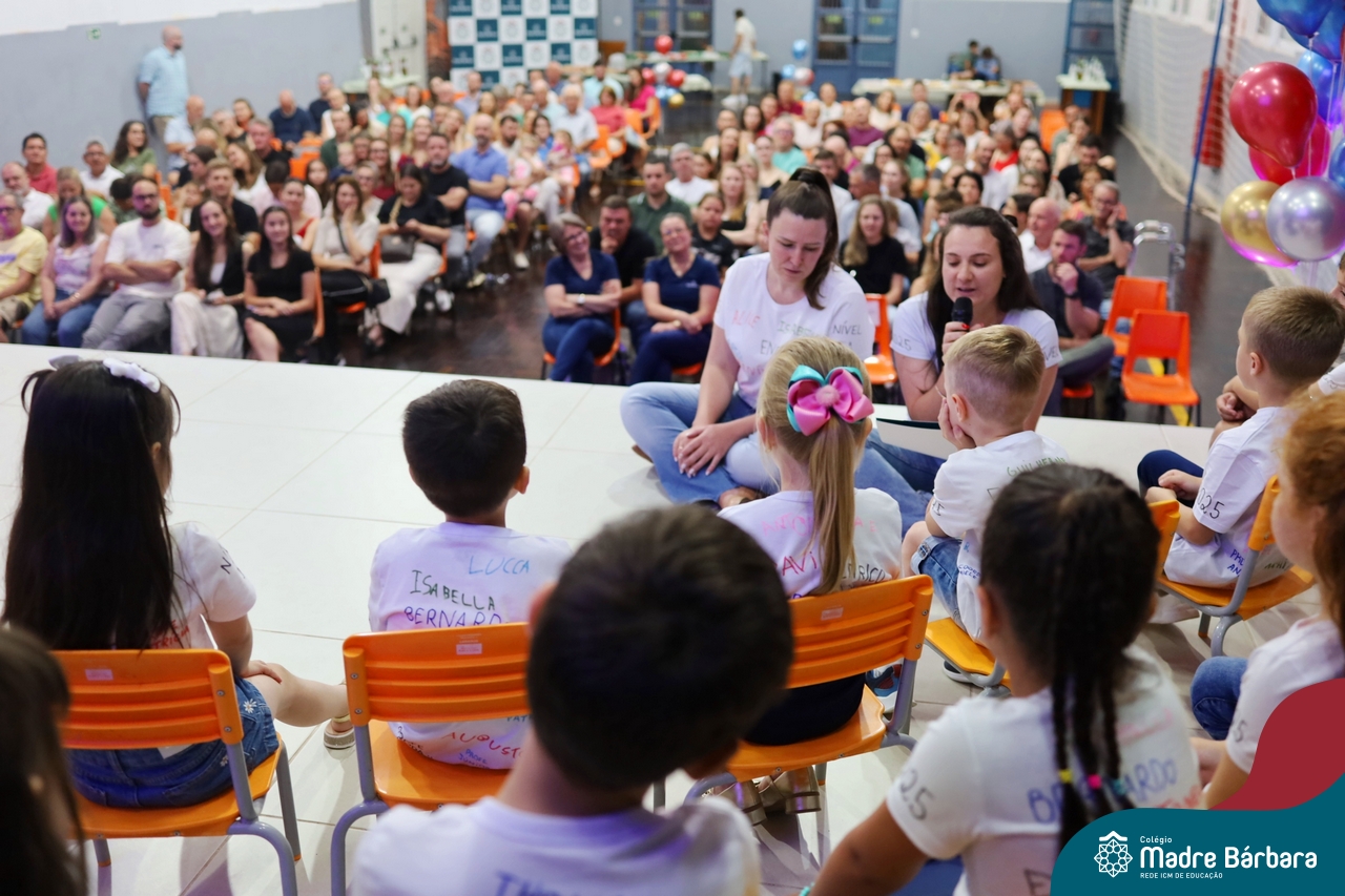 O Colégio Madre Bárbara viveu, na noite de quinta-feira (11/12), um momento de grande emoção e significado: o encerramento dos Níveis 5 da Educação Infantil. O evento, realizado no Salão de Eventos, reuniu famílias, professores e a equipe de coordenação para celebrar a trajetória das crianças e marcar a transição para uma nova etapa escolar. Durante a noite, as crianças encantaram a todos com lindas apresentações preparadas com carinho ao longo das últimas semanas. Foi um instante especial, em que cada gesto e sorriso revelava a alegria e o orgulho pelo caminho percorrido. Após as apresentações, os alunos receberam uma homenagem das professoras e da coordenação, que expressaram votos de felicidade e sucesso nessa nova jornada rumo aos 1ºs anos do Ensino Fundamental.