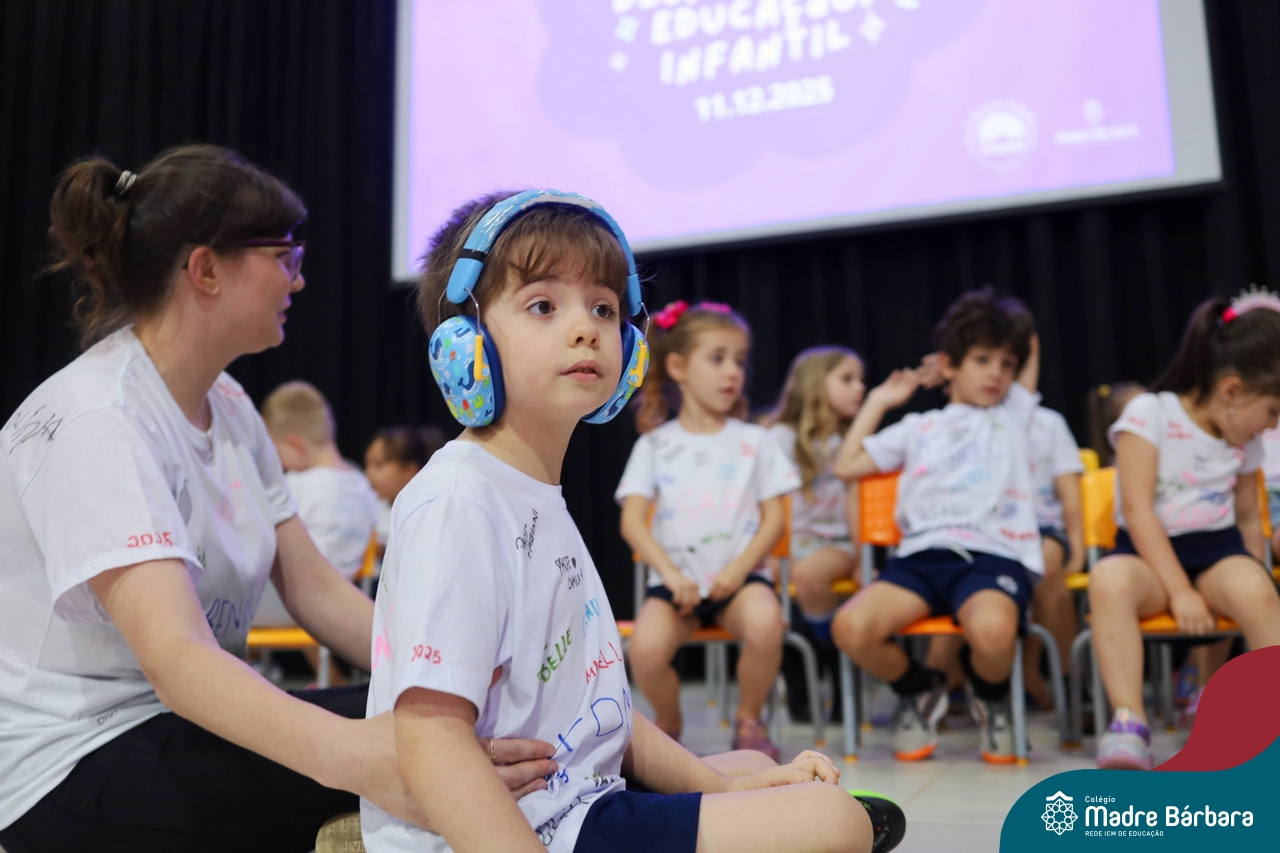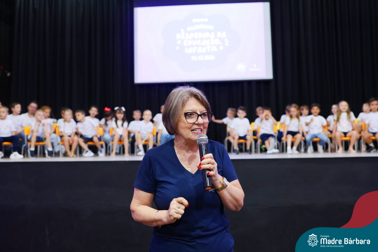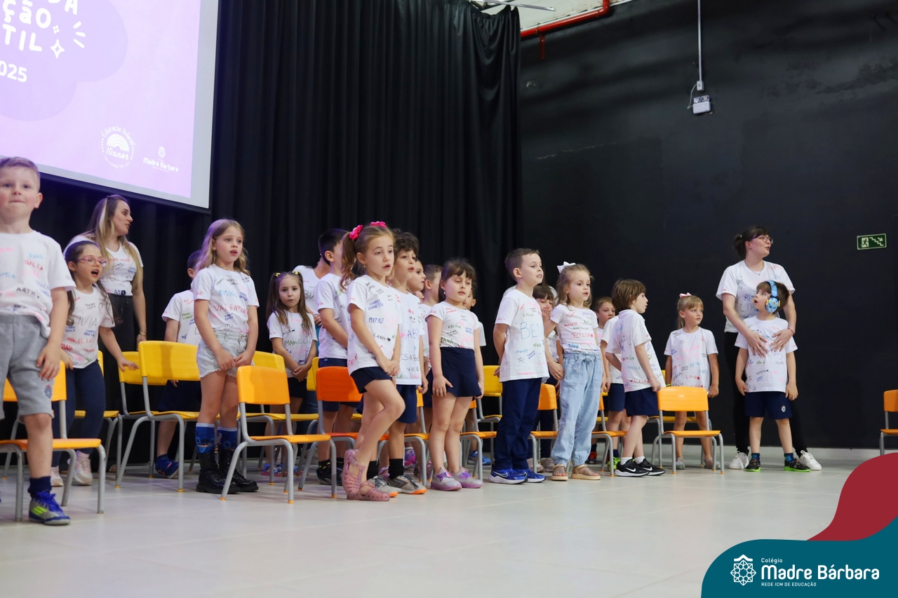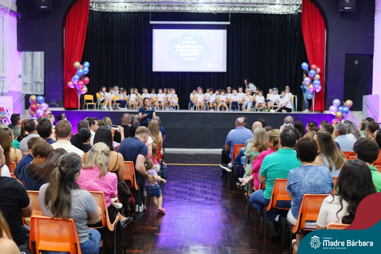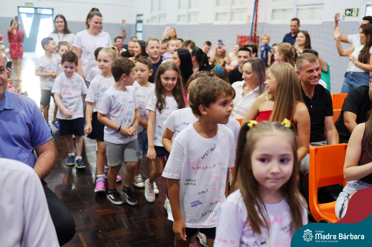 O Colégio Madre Bárbara viveu, na noite de quinta-feira (11/12), um momento de grande emoção e significado: o encerramento dos Níveis 5 da Educação Infantil. O evento, realizado no Salão de Eventos, reuniu famílias, professores e a equipe de coordenação para celebrar a trajetória das crianças e marcar a transição para uma nova etapa escolar. Durante a noite, as crianças encantaram a todos com lindas apresentações preparadas com carinho ao longo das últimas semanas. Foi um instante especial, em que cada gesto e sorriso revelava a alegria e o orgulho pelo caminho percorrido. Após as apresentações, os alunos receberam uma homenagem das professoras e da coordenação, que expressaram votos de felicidade e sucesso nessa nova jornada rumo aos 1ºs anos do Ensino Fundamental.