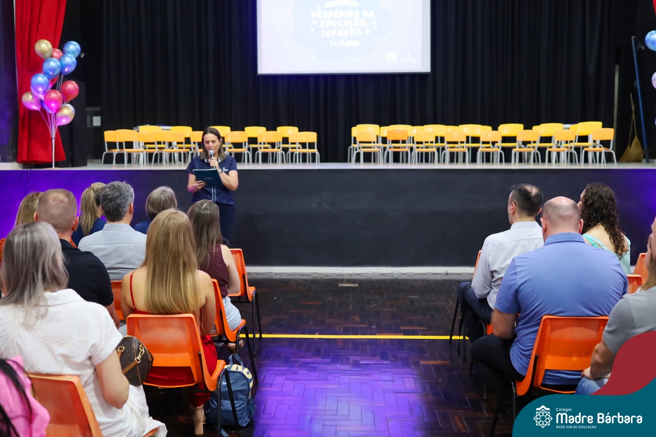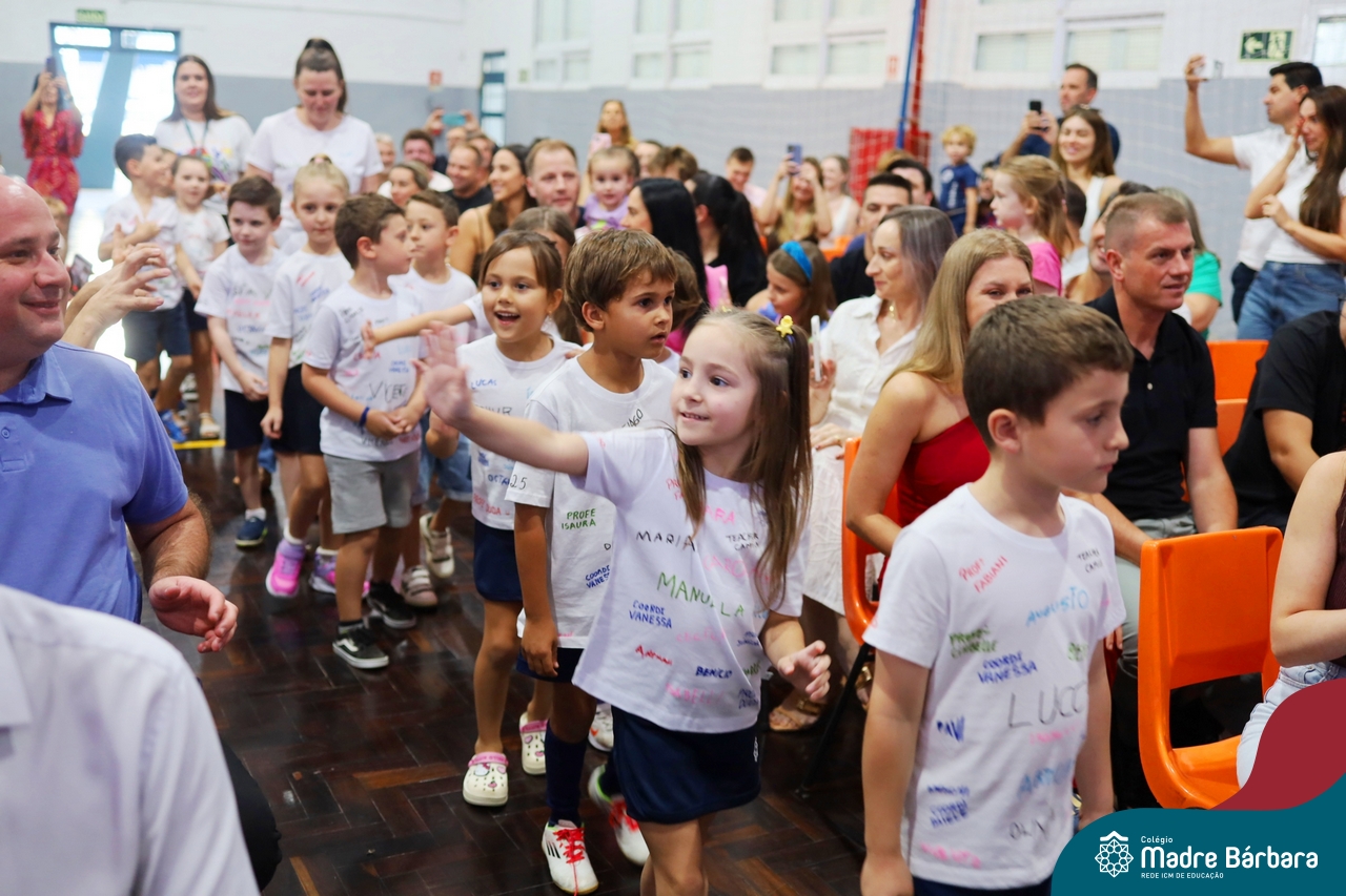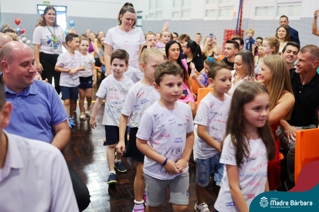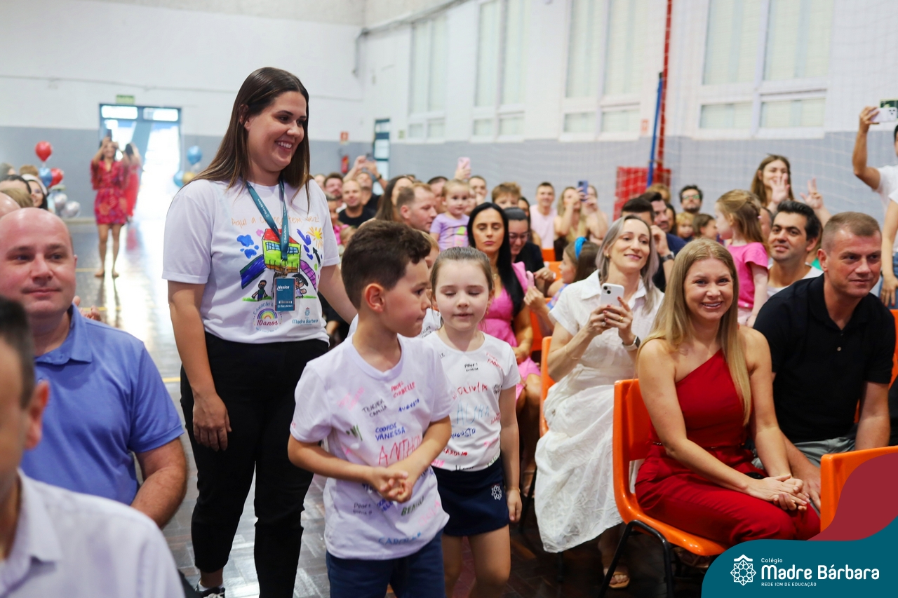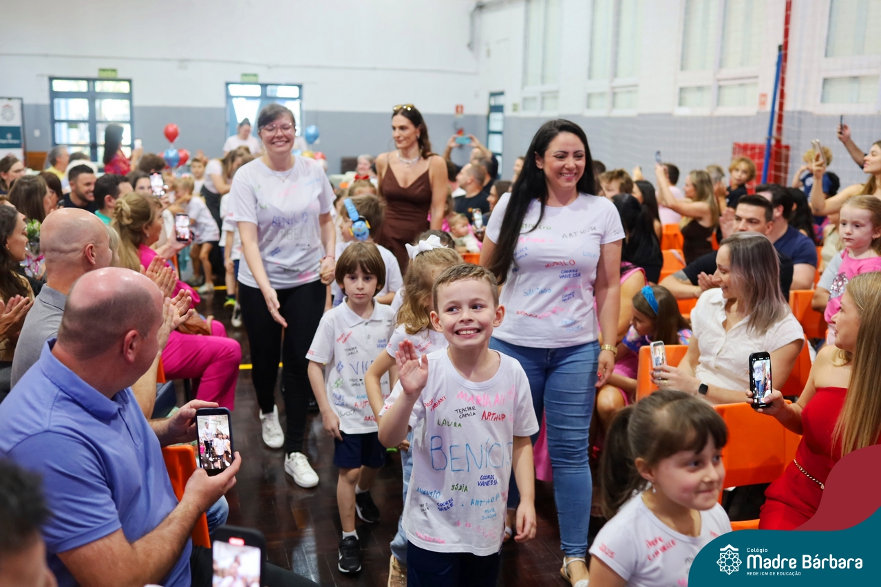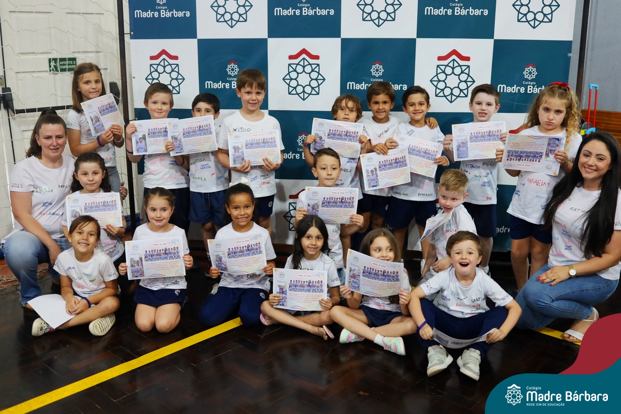 O Colégio Madre Bárbara viveu, na noite de quinta-feira (11/12), um momento de grande emoção e significado: o encerramento dos Níveis 5 da Educação Infantil. O evento, realizado no Salão de Eventos, reuniu famílias, professores e a equipe de coordenação para celebrar a trajetória das crianças e marcar a transição para uma nova etapa escolar. Durante a noite, as crianças encantaram a todos com lindas apresentações preparadas com carinho ao longo das últimas semanas. Foi um instante especial, em que cada gesto e sorriso revelava a alegria e o orgulho pelo caminho percorrido. Após as apresentações, os alunos receberam uma homenagem das professoras e da coordenação, que expressaram votos de felicidade e sucesso nessa nova jornada rumo aos 1ºs anos do Ensino Fundamental.