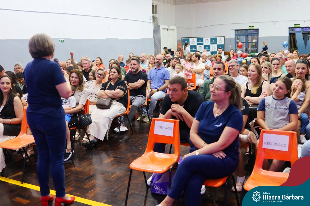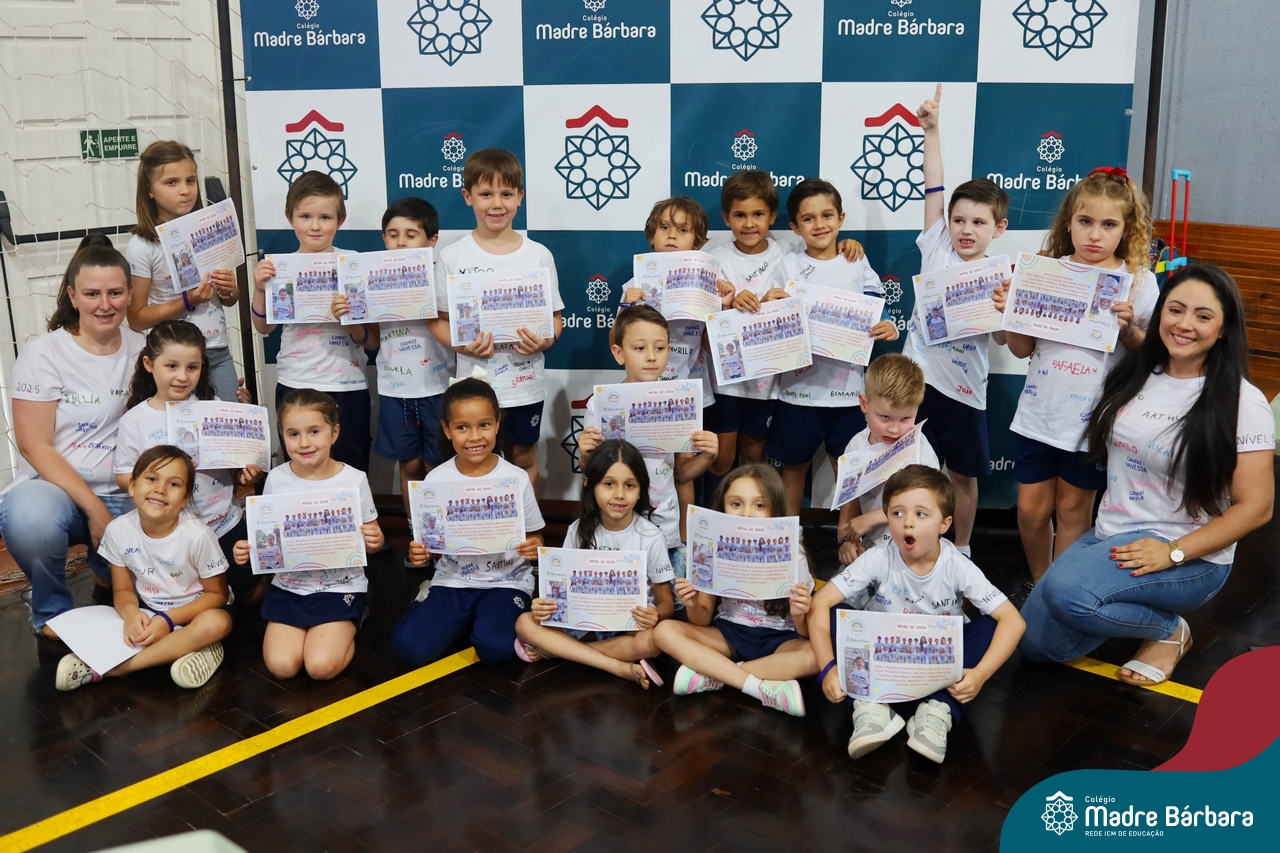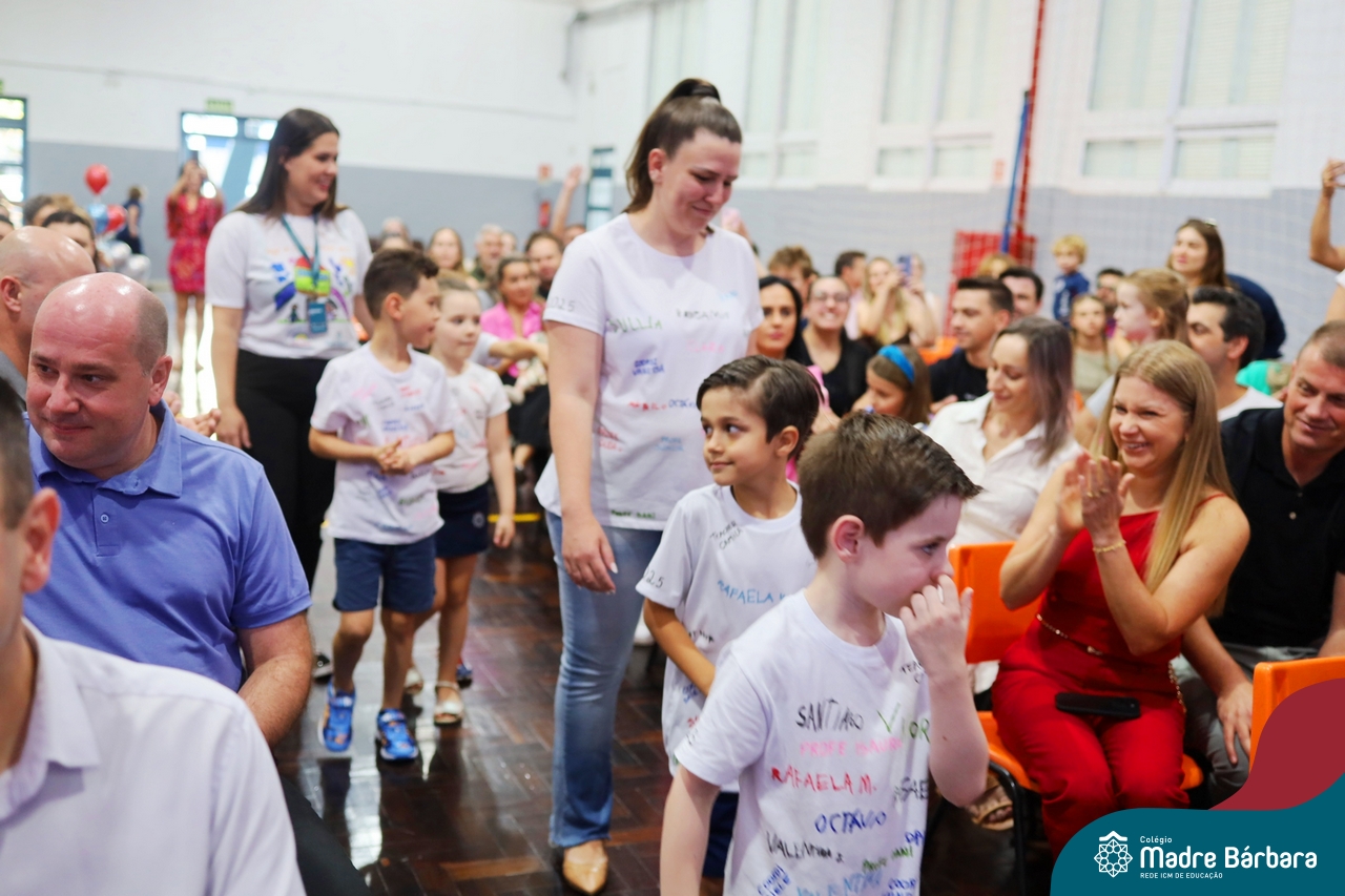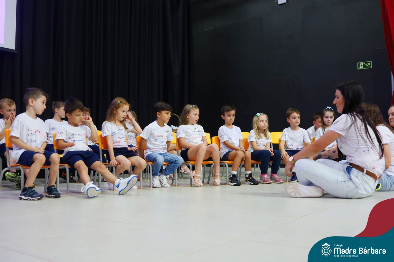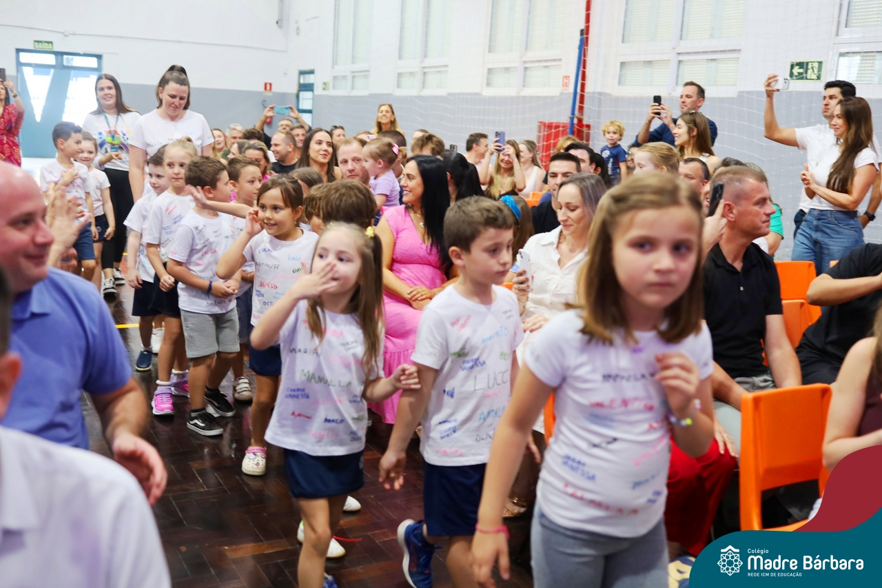 O Colégio Madre Bárbara viveu, na noite de quinta-feira (11/12), um momento de grande emoção e significado: o encerramento dos Níveis 5 da Educação Infantil. O evento, realizado no Salão de Eventos, reuniu famílias, professores e a equipe de coordenação para celebrar a trajetória das crianças e marcar a transição para uma nova etapa escolar. Durante a noite, as crianças encantaram a todos com lindas apresentações preparadas com carinho ao longo das últimas semanas. Foi um instante especial, em que cada gesto e sorriso revelava a alegria e o orgulho pelo caminho percorrido. Após as apresentações, os alunos receberam uma homenagem das professoras e da coordenação, que expressaram votos de felicidade e sucesso nessa nova jornada rumo aos 1ºs anos do Ensino Fundamental.