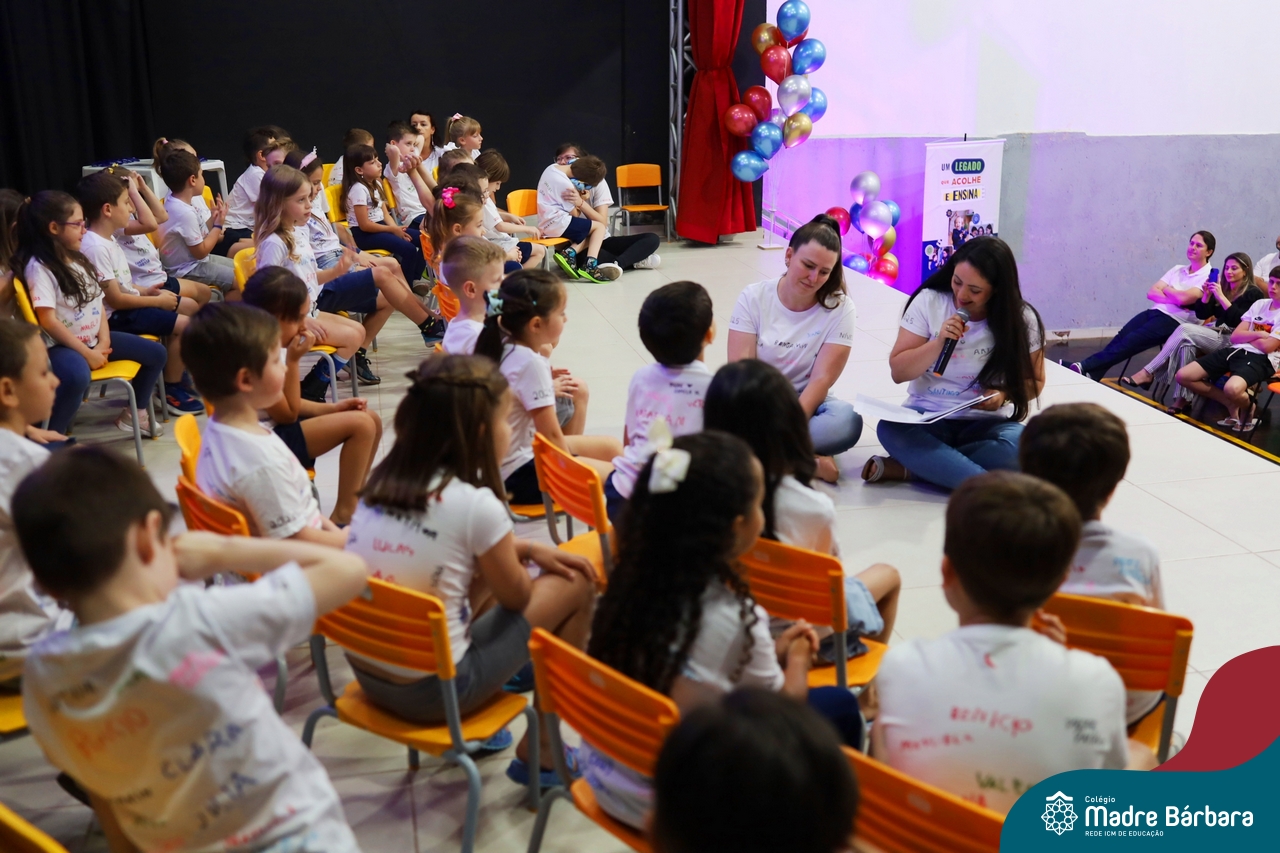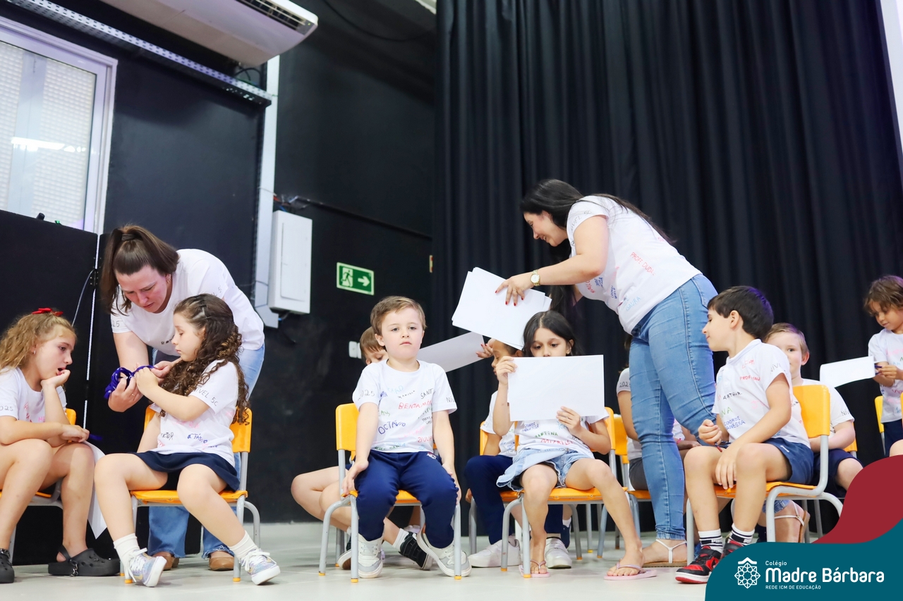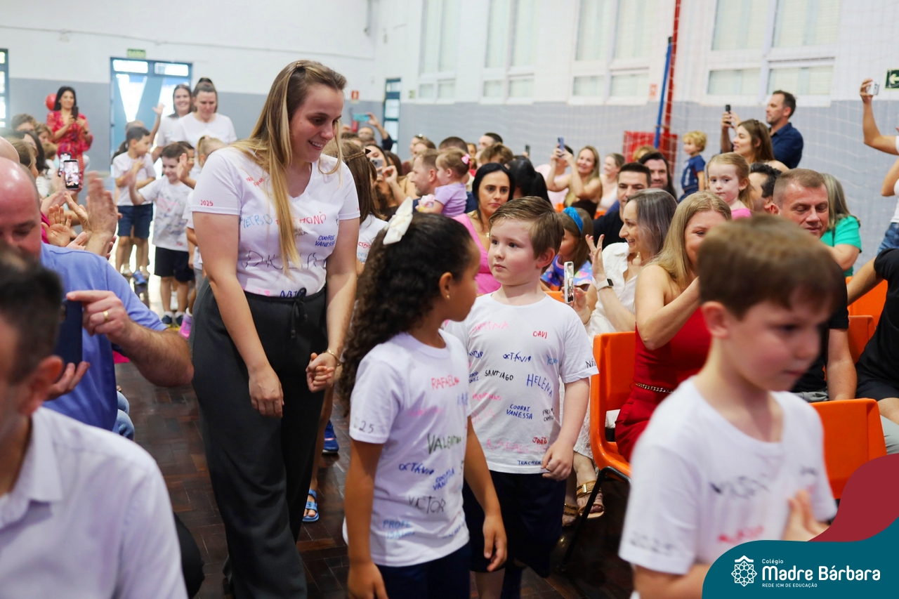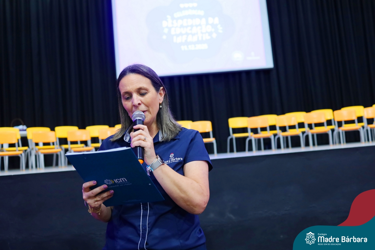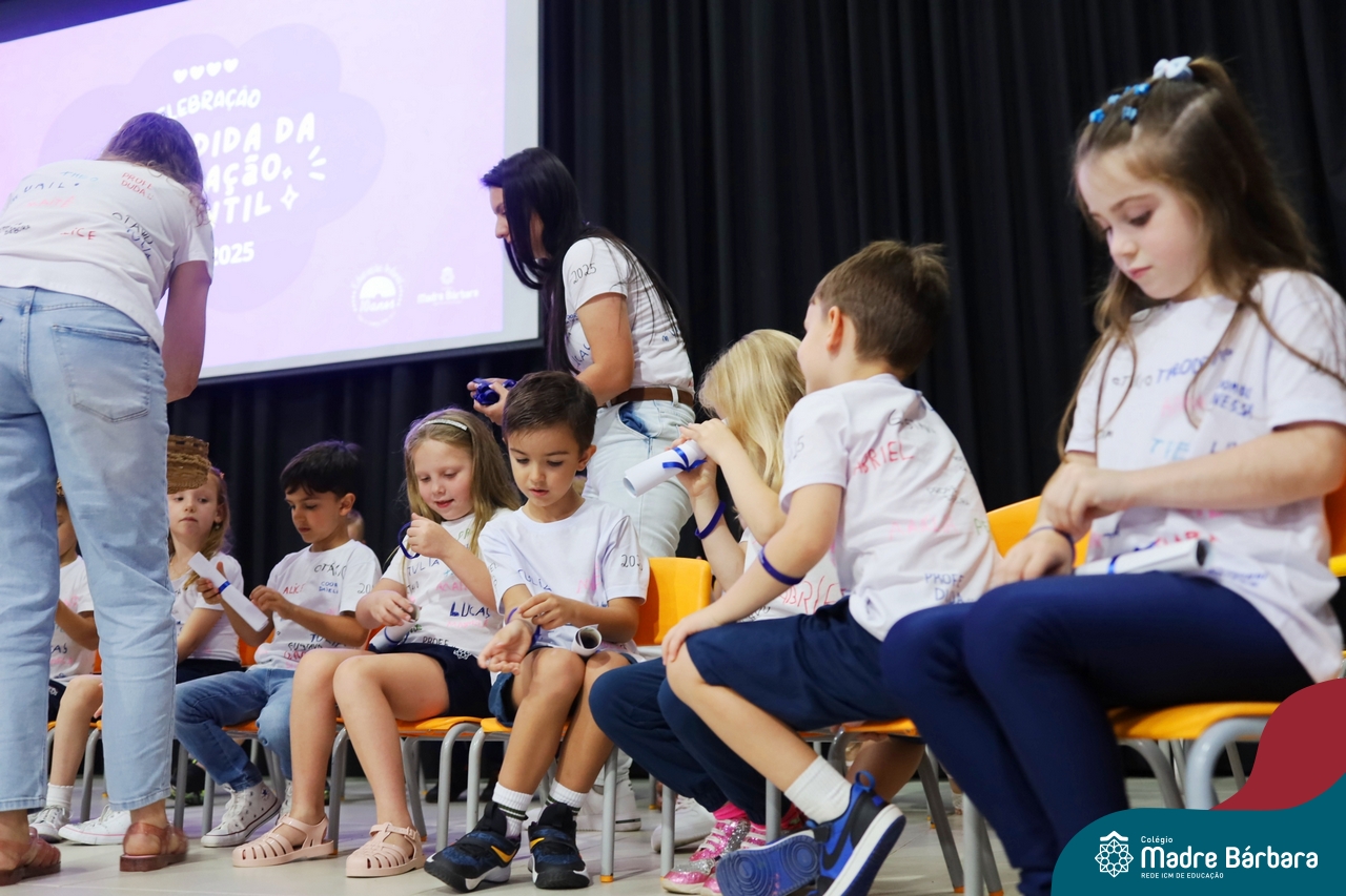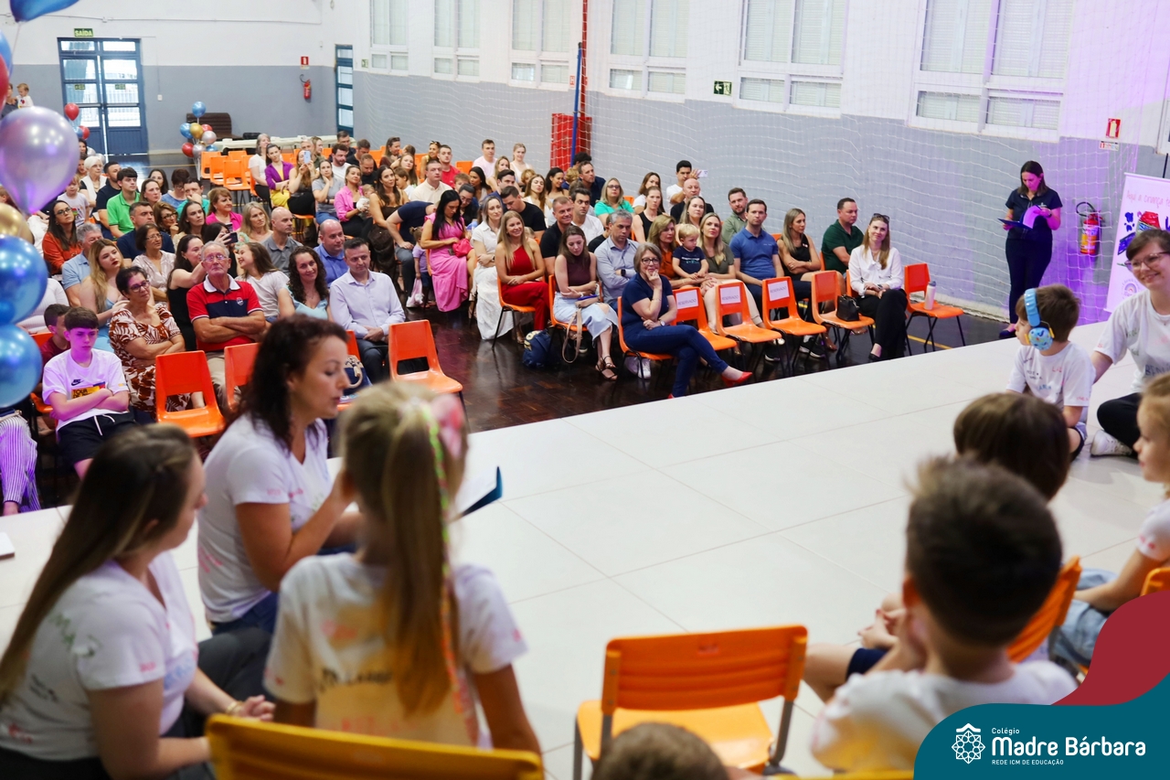O Colégio Madre Bárbara viveu, na noite de quinta-feira (11/12), um momento de grande emoção e significado: o encerramento dos Níveis 5 da Educação Infantil. O evento, realizado no Salão de Eventos, reuniu famílias, professores e a equipe de coordenação para celebrar a trajetória das crianças e marcar a transição para uma nova etapa escolar. Durante a noite, as crianças encantaram a todos com lindas apresentações preparadas com carinho ao longo das últimas semanas. Foi um instante especial, em que cada gesto e sorriso revelava a alegria e o orgulho pelo caminho percorrido. Após as apresentações, os alunos receberam uma homenagem das professoras e da coordenação, que expressaram votos de felicidade e sucesso nessa nova jornada rumo aos 1ºs anos do Ensino Fundamental.