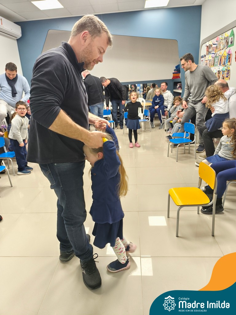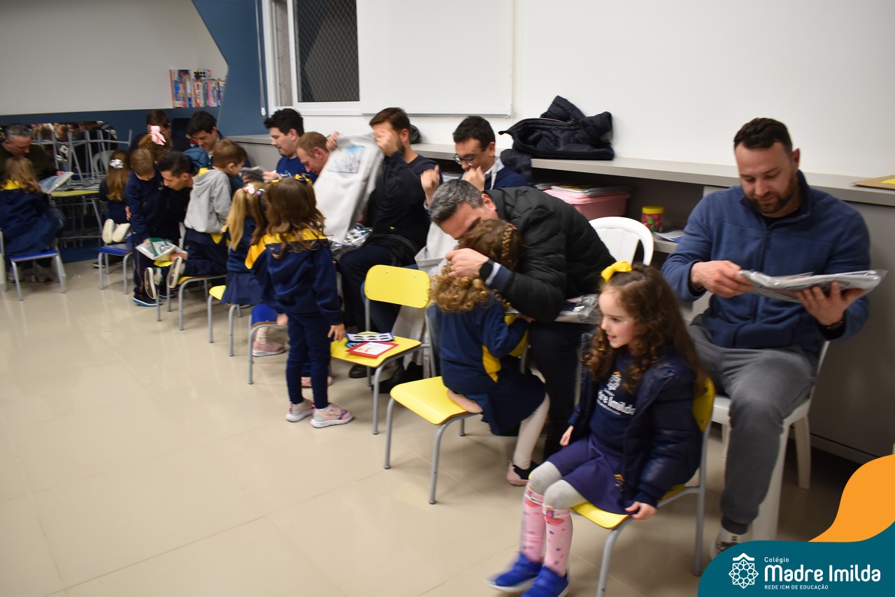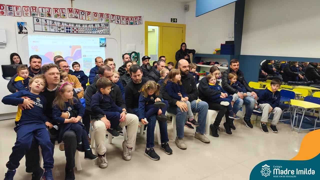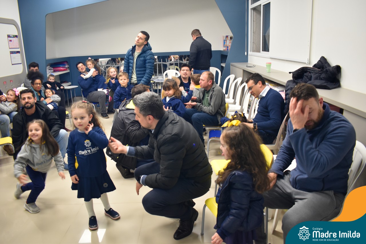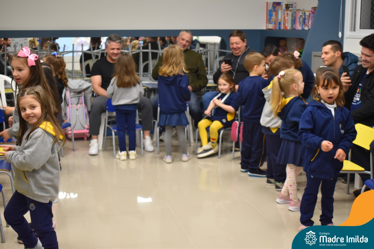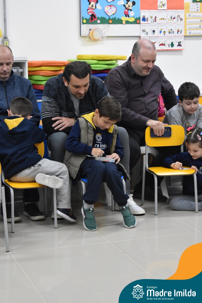 A celebração teve início com apresentações musicais em português e inglês, nas quais os alunos emocionaram os pais com canções repletas de ternura. Em seguida, os pequenos participaram de uma contação de história conduzida pela professora, despertando a imaginação e criando um clima de escuta e encantamento.