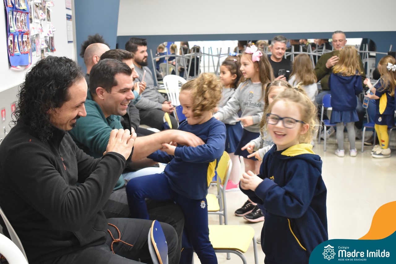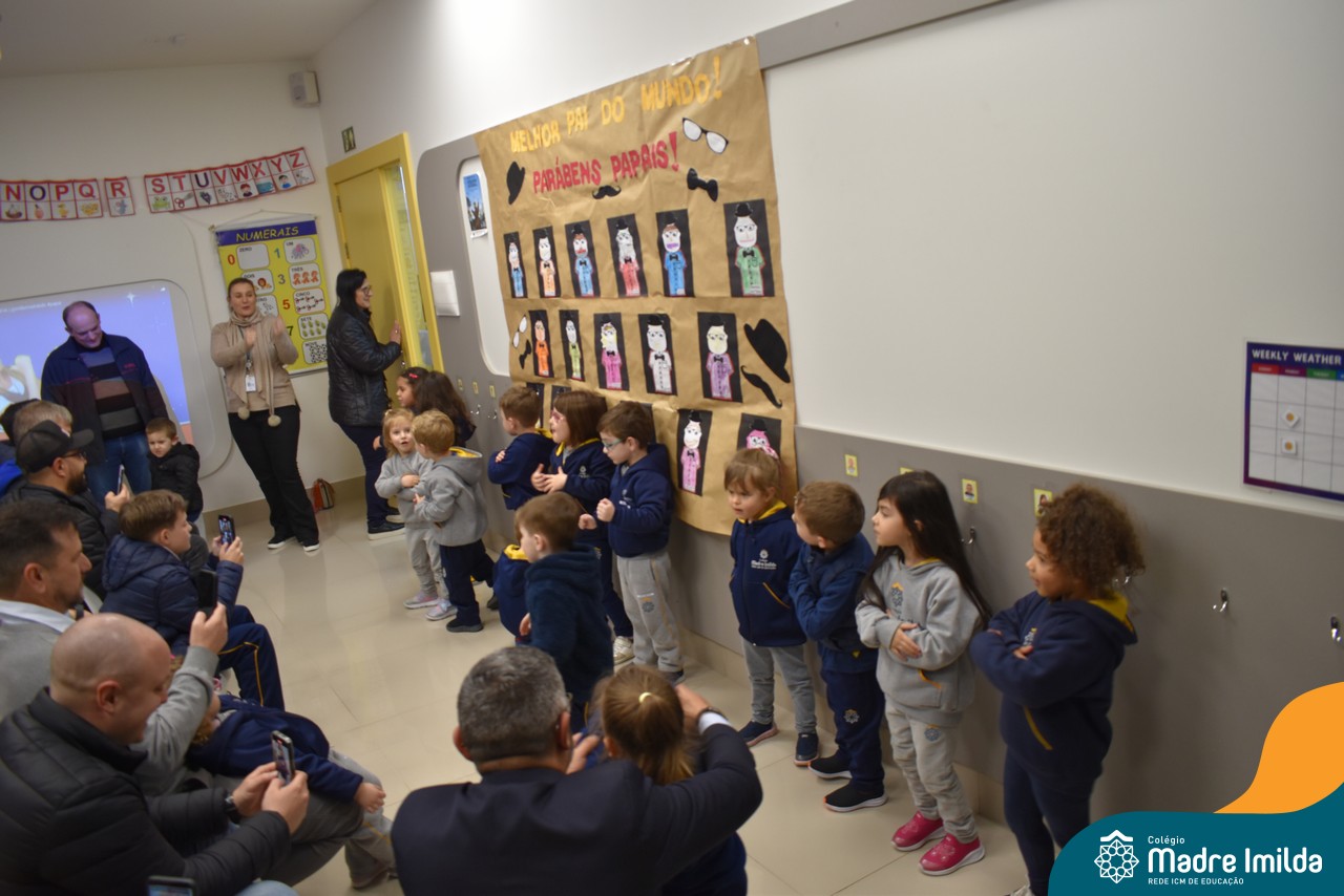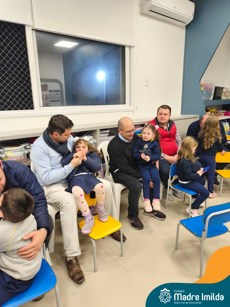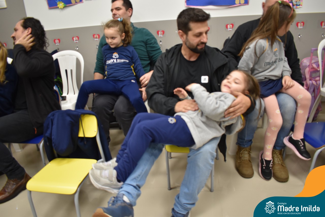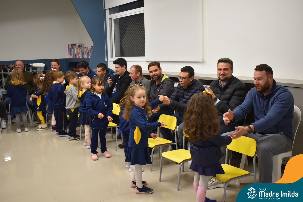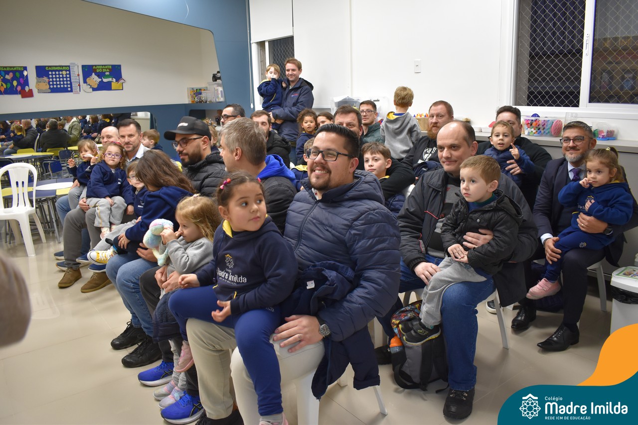 A celebração teve início com apresentações musicais em português e inglês, nas quais os alunos emocionaram os pais com canções repletas de ternura. Em seguida, os pequenos participaram de uma contação de história conduzida pela professora, despertando a imaginação e criando um clima de escuta e encantamento.