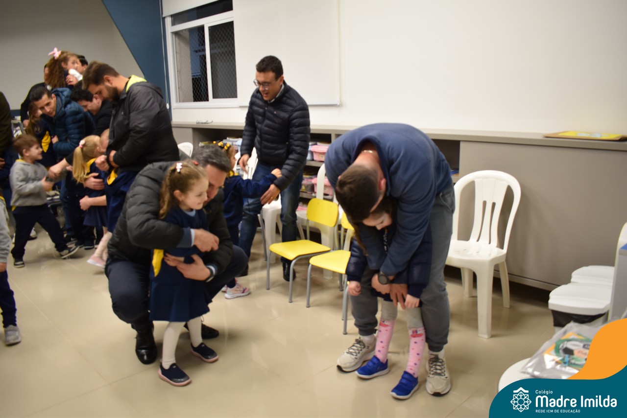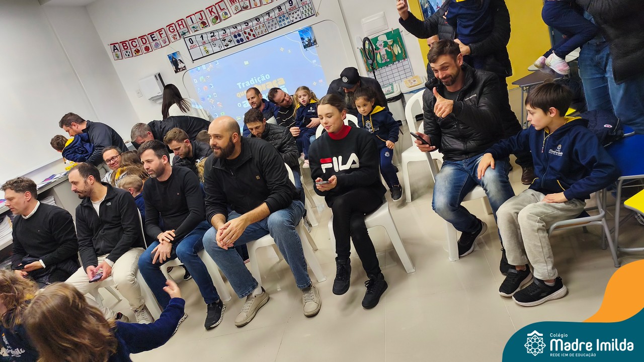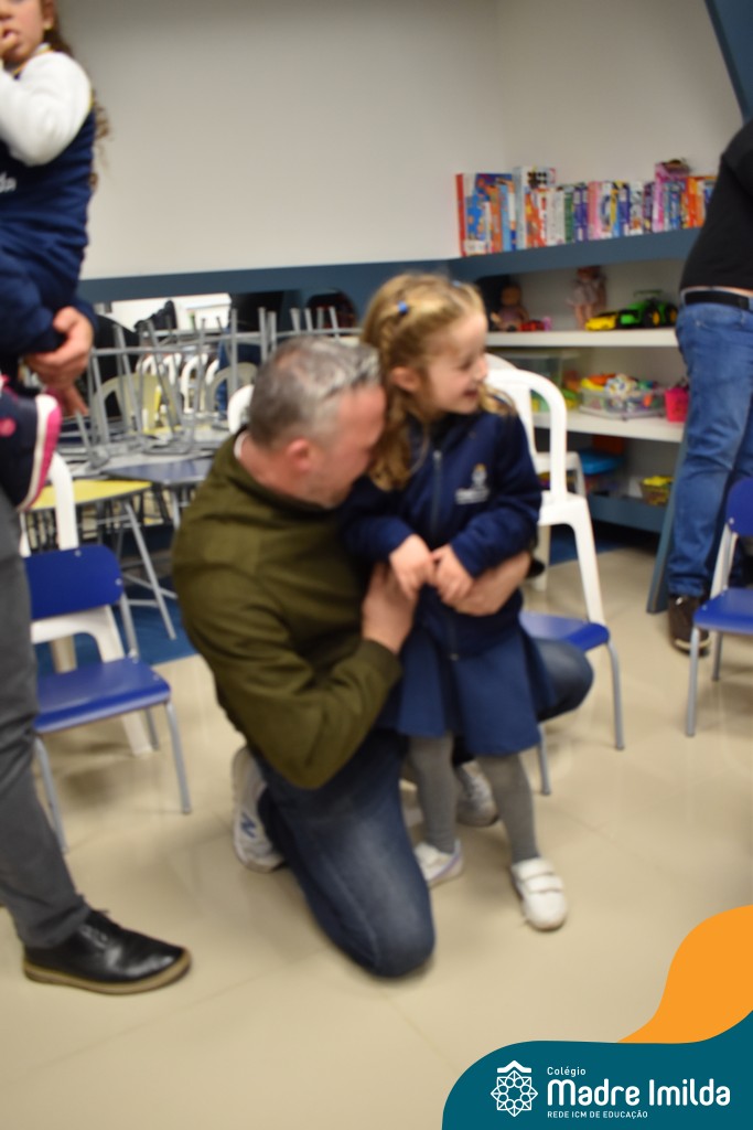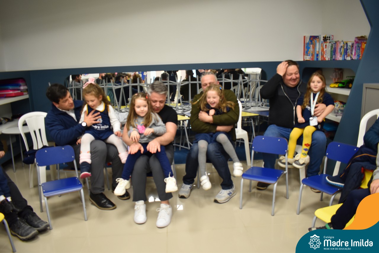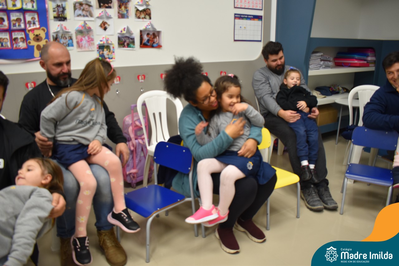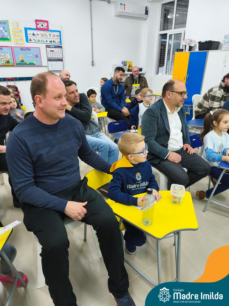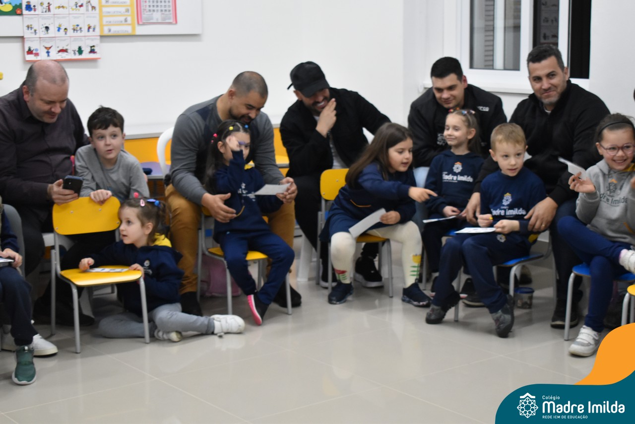 A celebração teve início com apresentações musicais em português e inglês, nas quais os alunos emocionaram os pais com canções repletas de ternura. Em seguida, os pequenos participaram de uma contação de história conduzida pela professora, despertando a imaginação e criando um clima de escuta e encantamento.