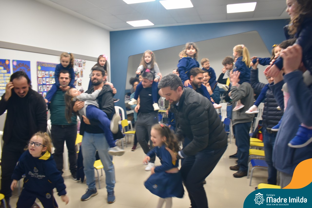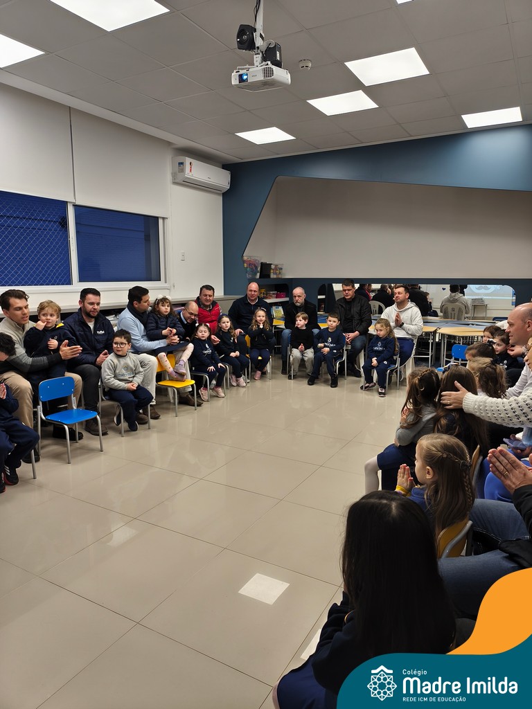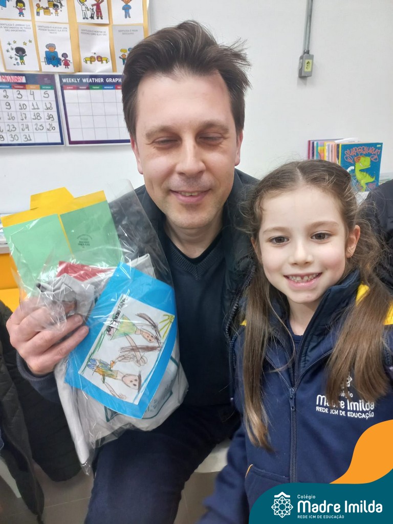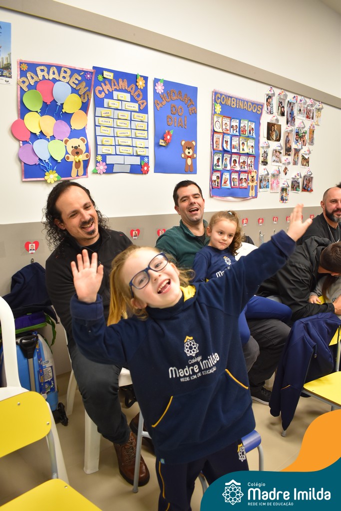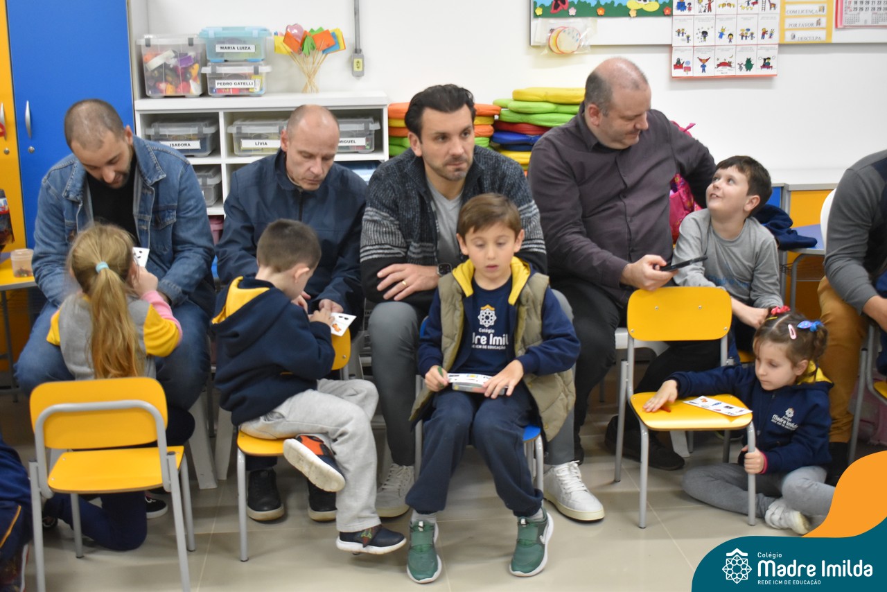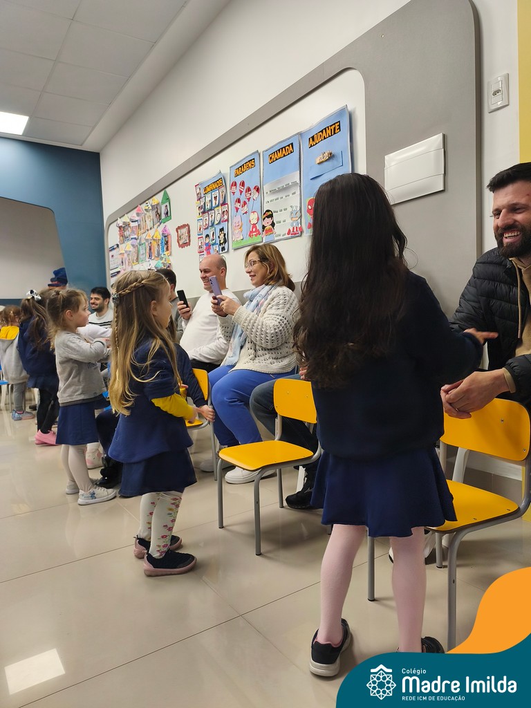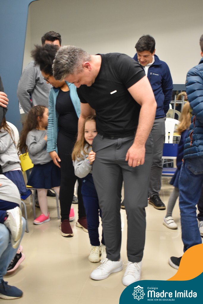 A celebração teve início com apresentações musicais em português e inglês, nas quais os alunos emocionaram os pais com canções repletas de ternura. Em seguida, os pequenos participaram de uma contação de história conduzida pela professora, despertando a imaginação e criando um clima de escuta e encantamento.