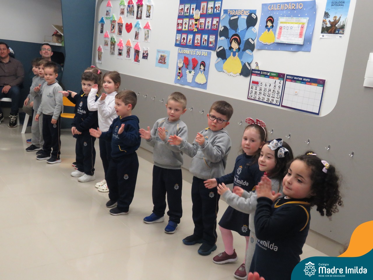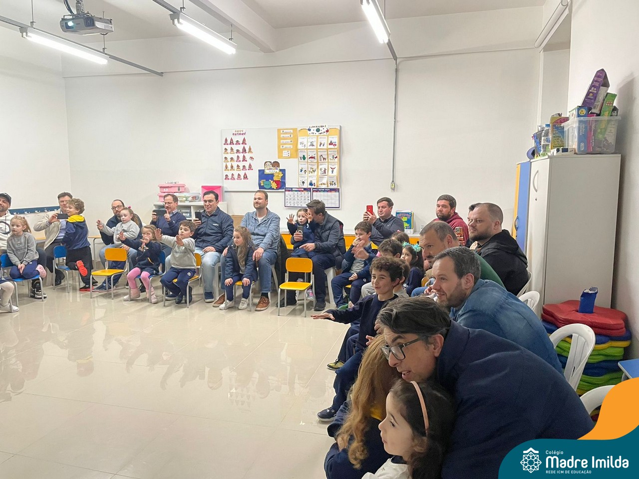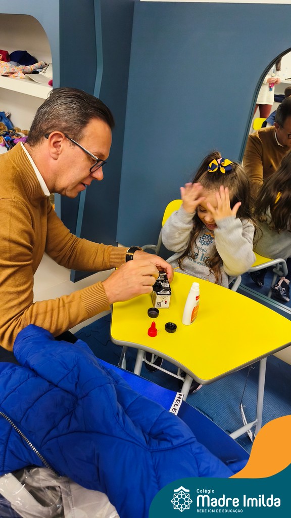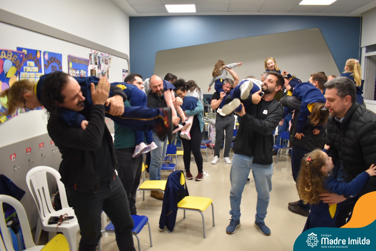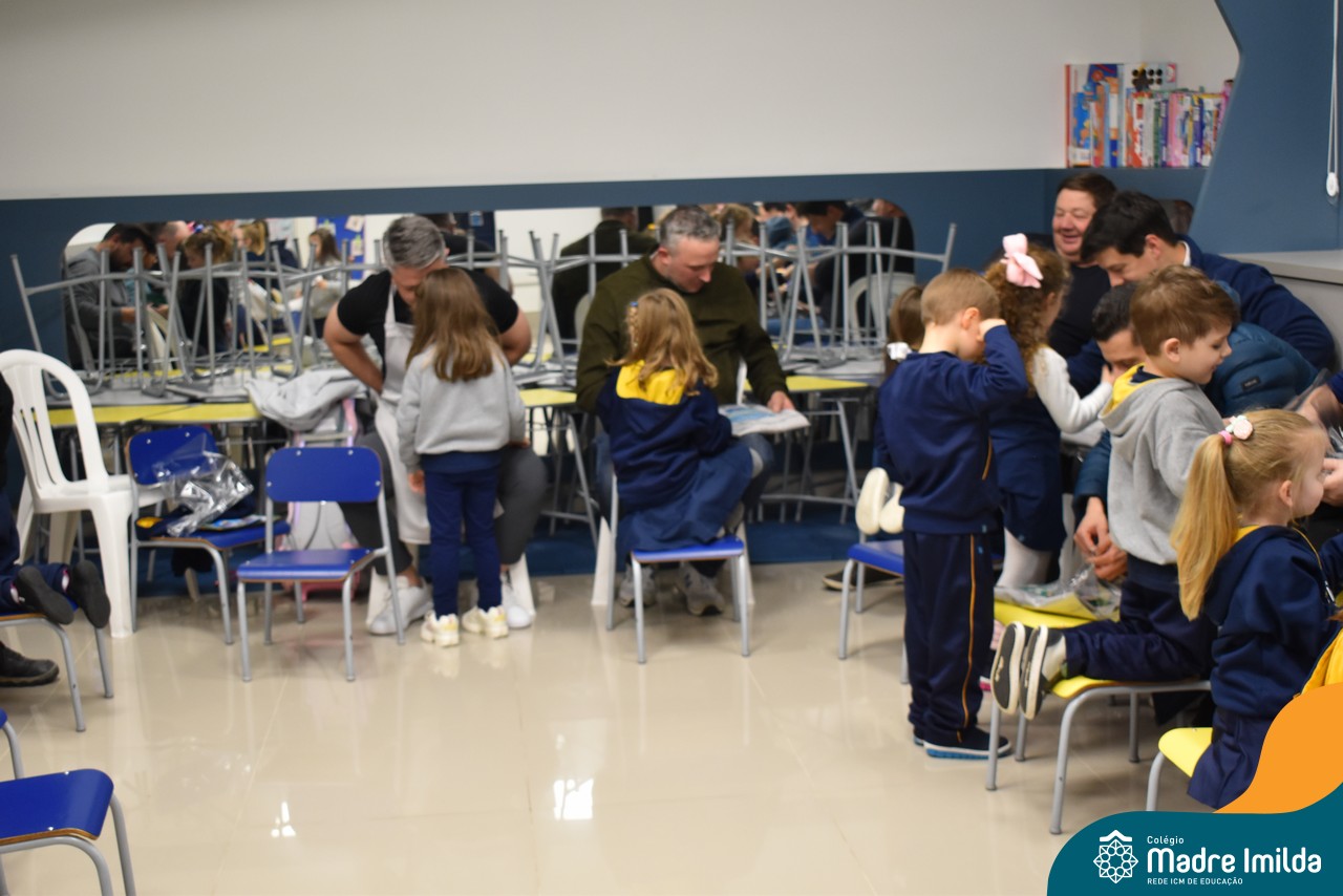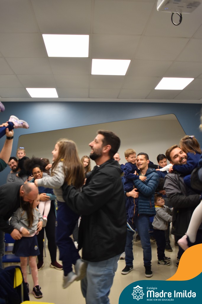A celebração teve início com apresentações musicais em português e inglês, nas quais os alunos emocionaram os pais com canções repletas de ternura. Em seguida, os pequenos participaram de uma contação de história conduzida pela professora, despertando a imaginação e criando um clima de escuta e encantamento.