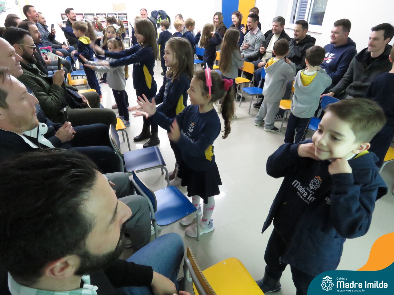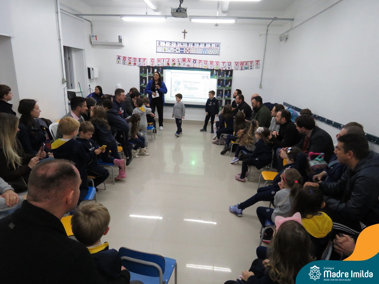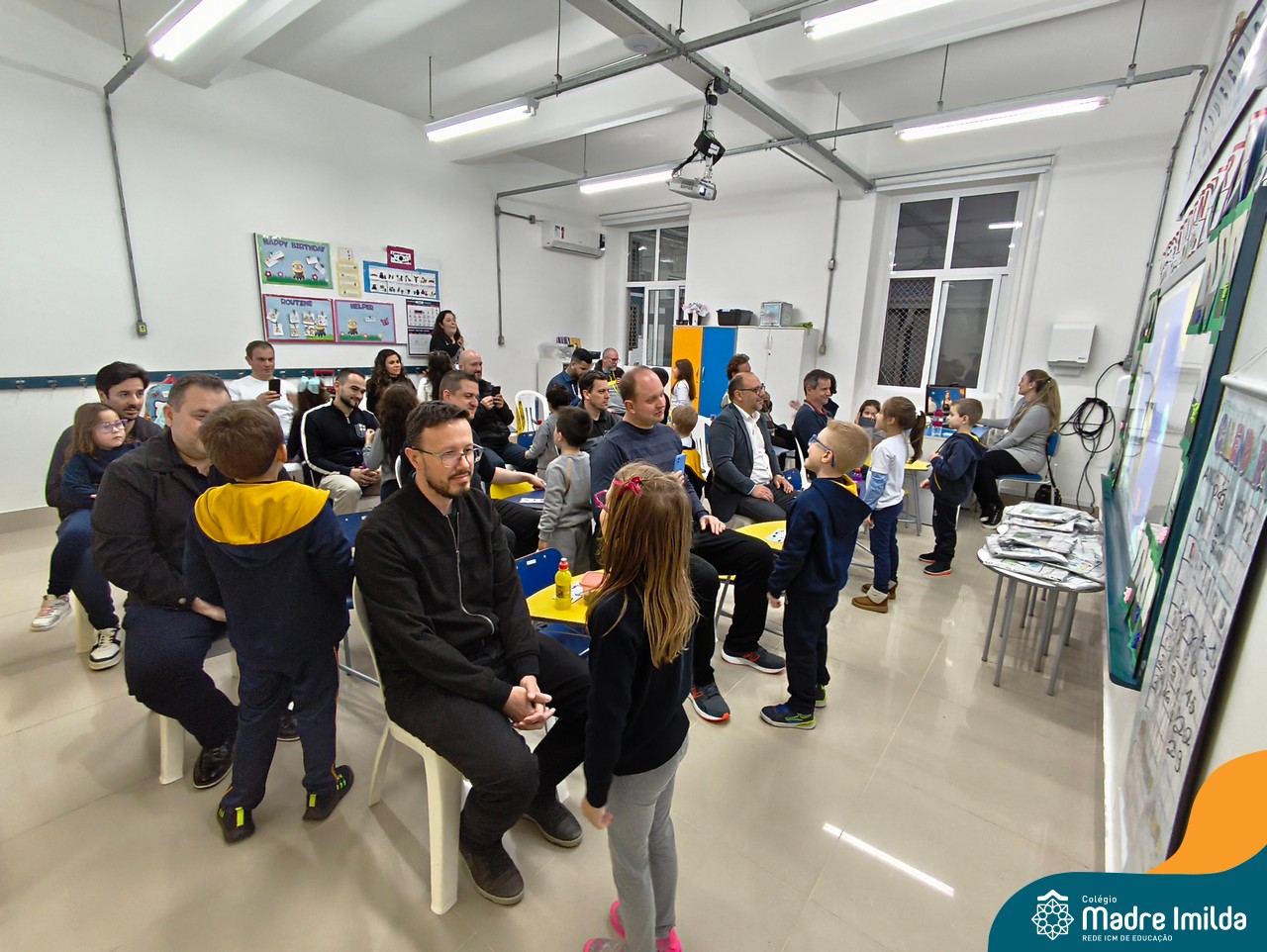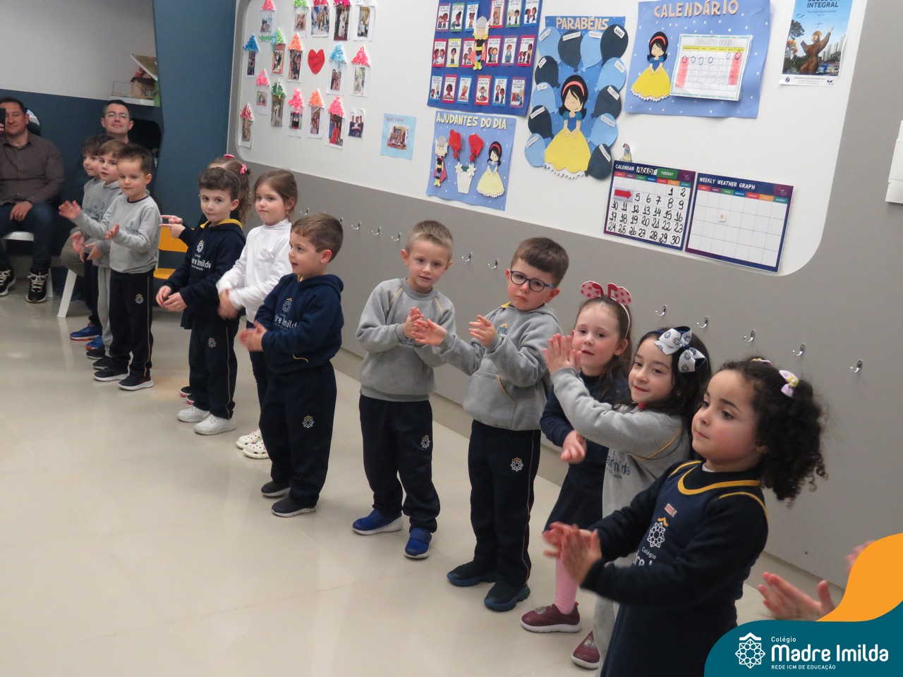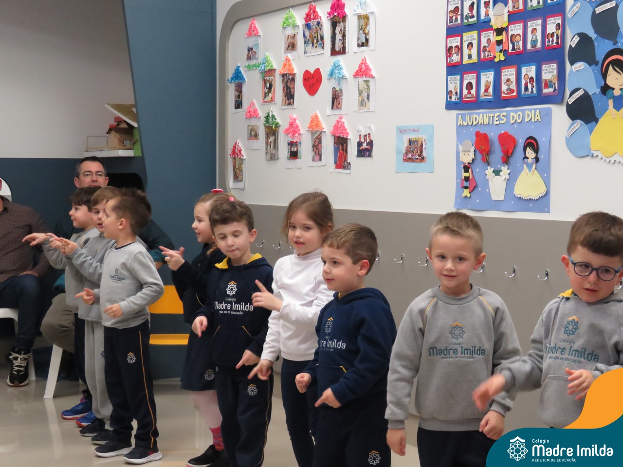 A celebração teve início com apresentações musicais em português e inglês, nas quais os alunos emocionaram os pais com canções repletas de ternura. Em seguida, os pequenos participaram de uma contação de história conduzida pela professora, despertando a imaginação e criando um clima de escuta e encantamento.
