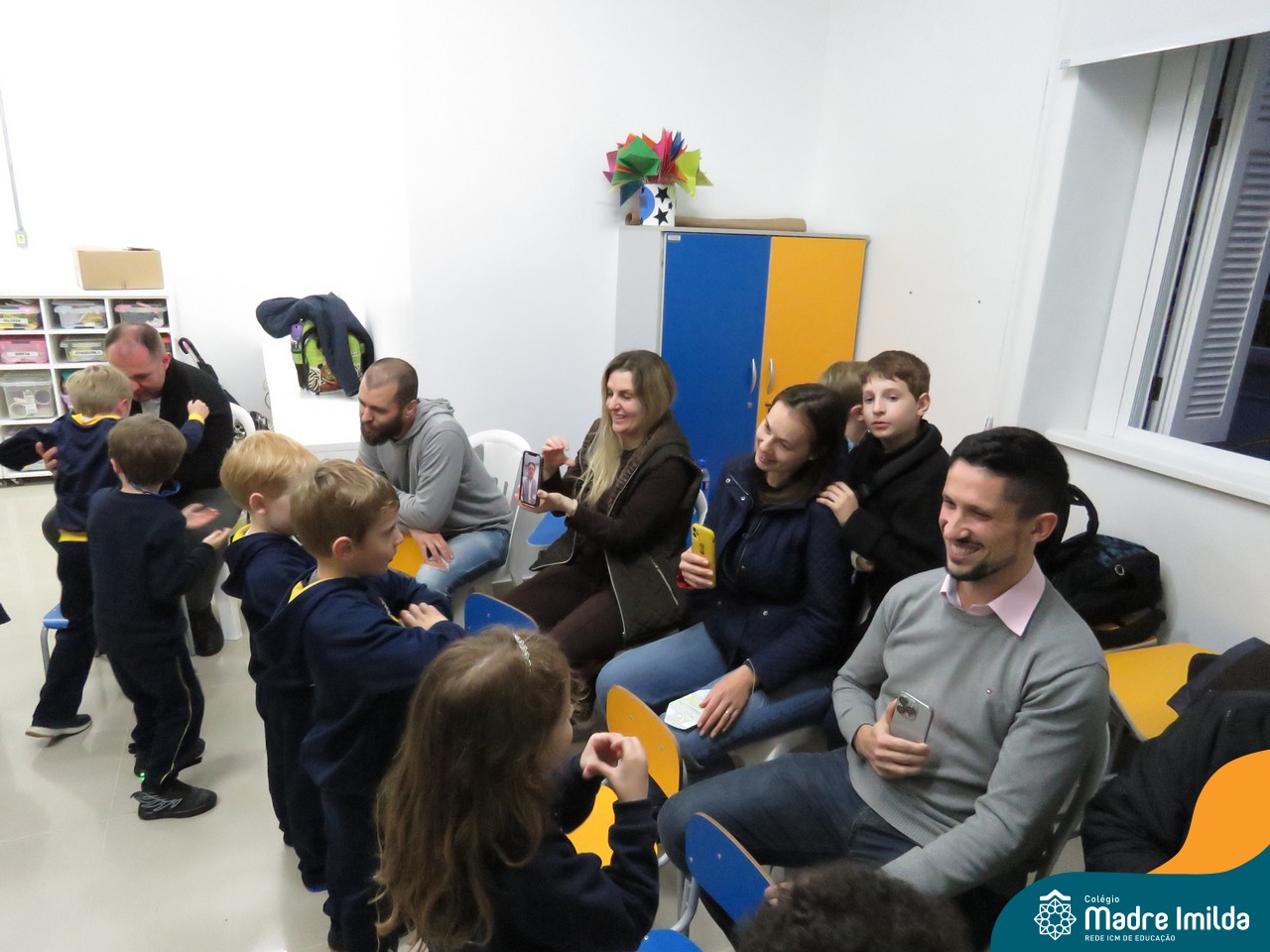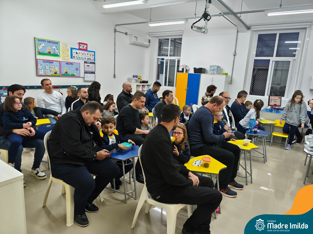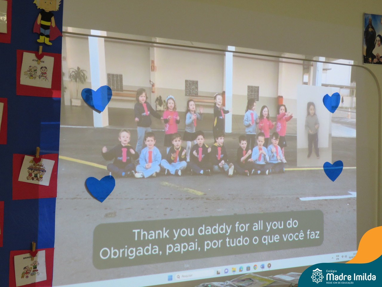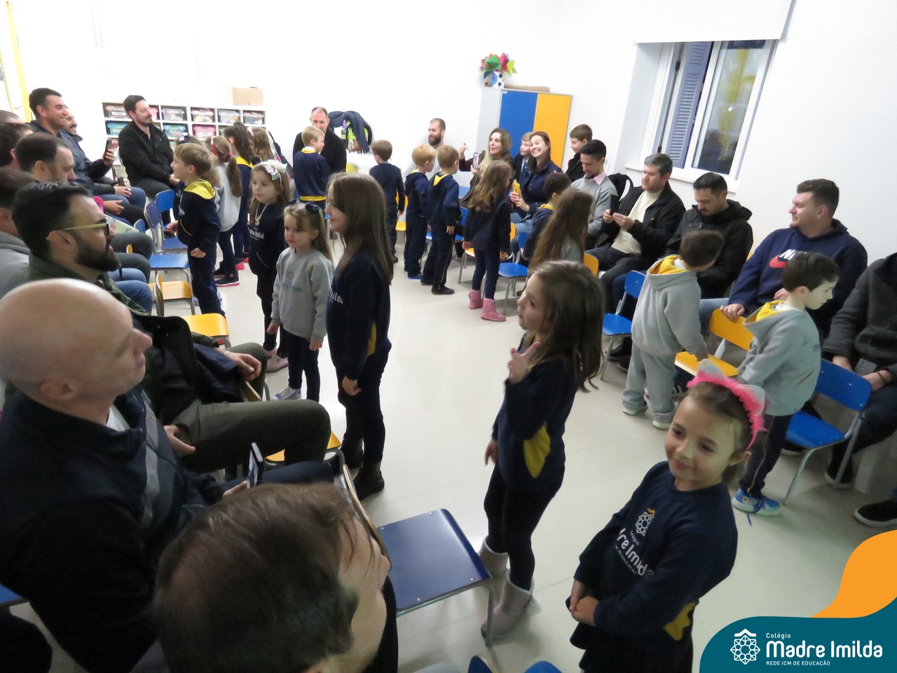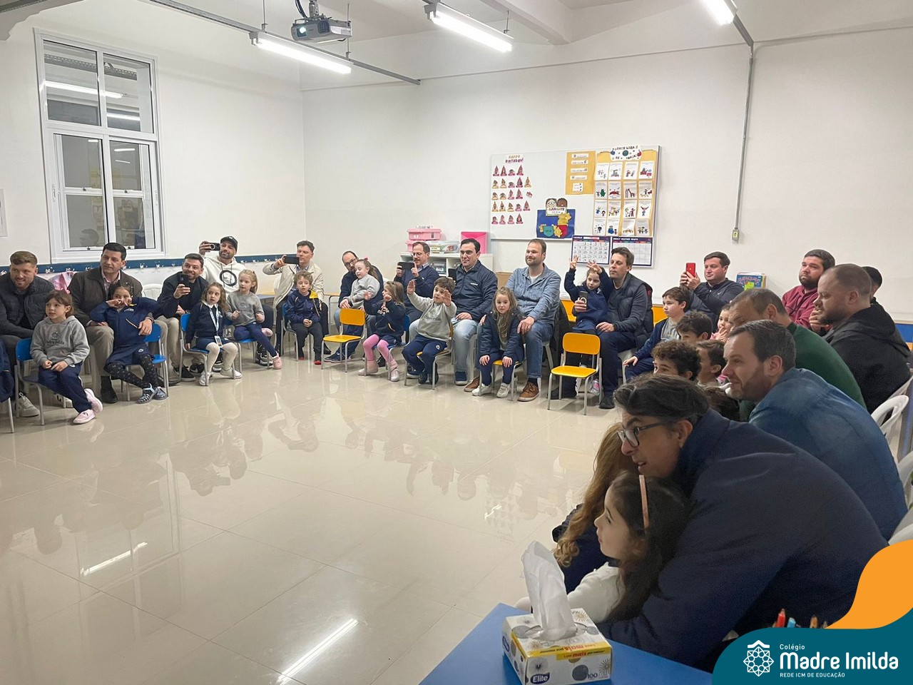 A celebração teve início com apresentações musicais em português e inglês, nas quais os alunos emocionaram os pais com canções repletas de ternura. Em seguida, os pequenos participaram de uma contação de história conduzida pela professora, despertando a imaginação e criando um clima de escuta e encantamento.