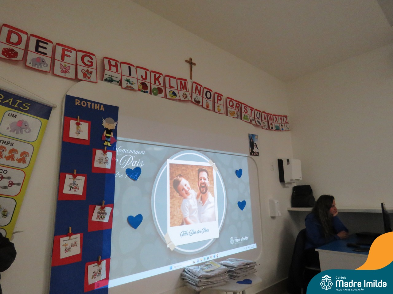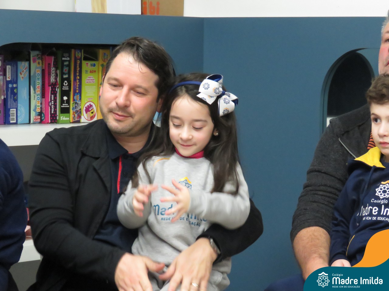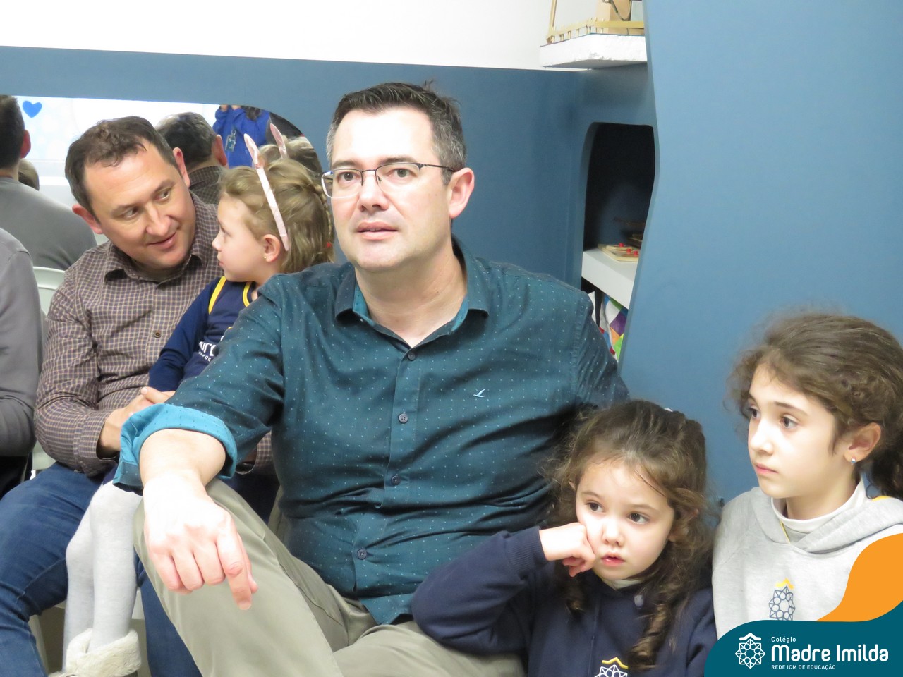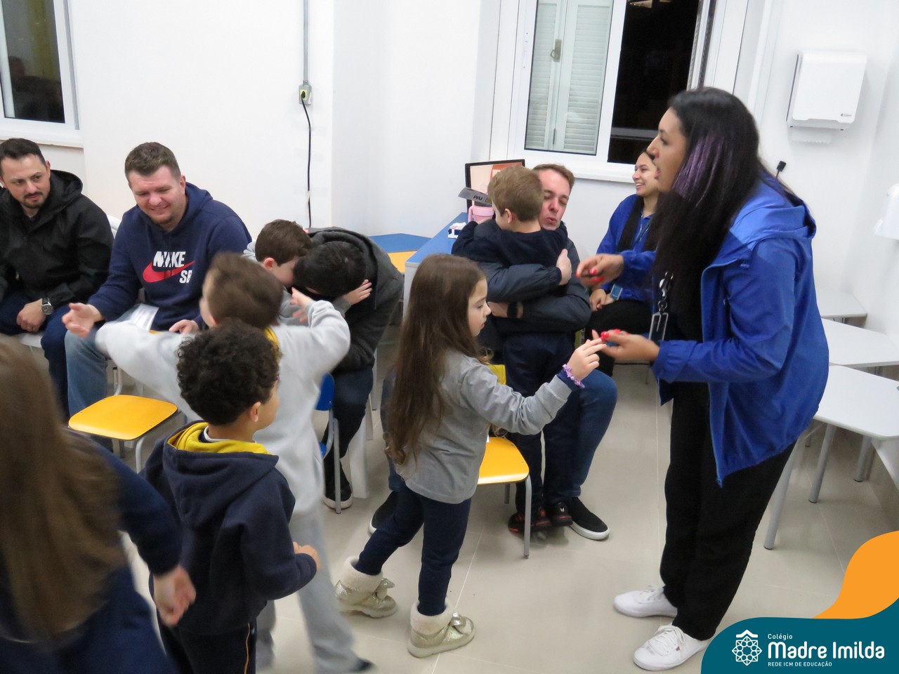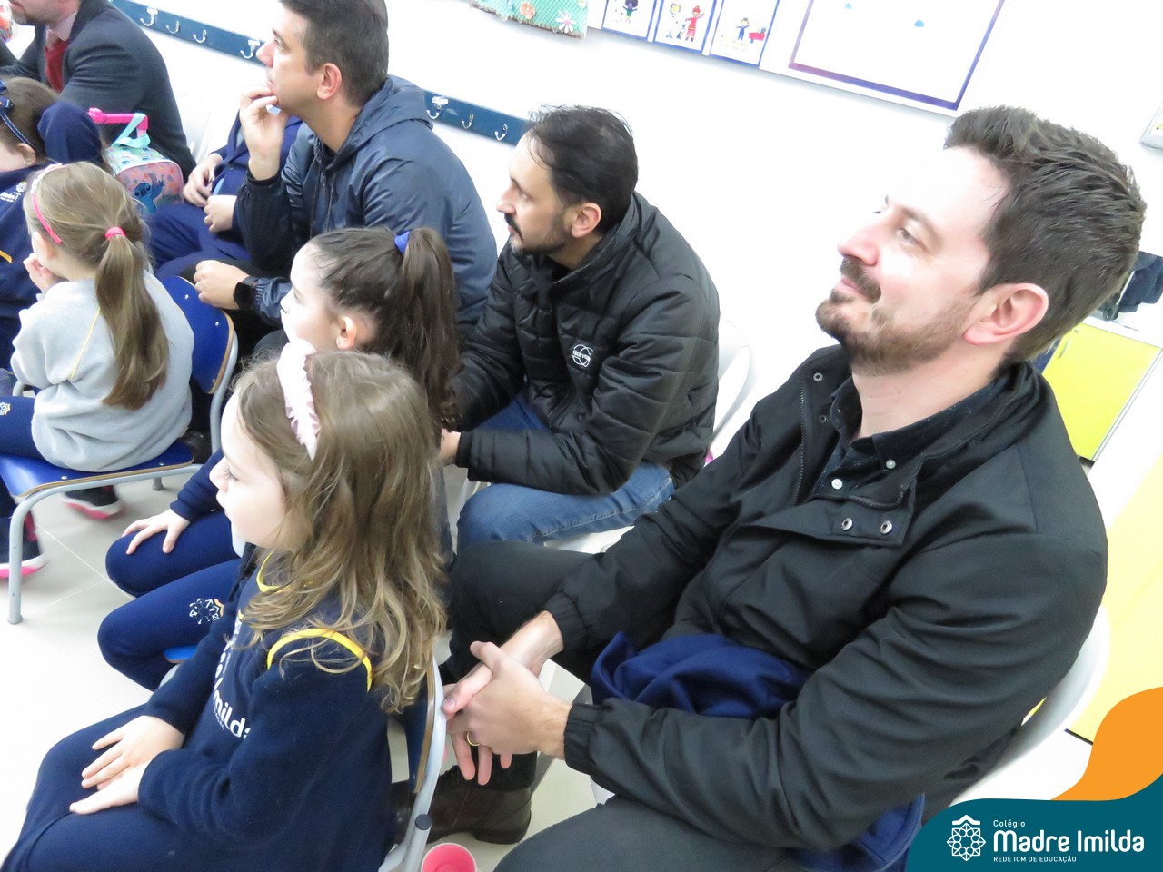 A celebração teve início com apresentações musicais em português e inglês, nas quais os alunos emocionaram os pais com canções repletas de ternura. Em seguida, os pequenos participaram de uma contação de história conduzida pela professora, despertando a imaginação e criando um clima de escuta e encantamento.
