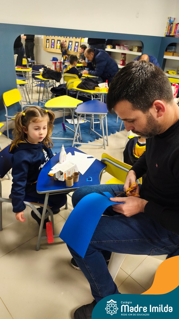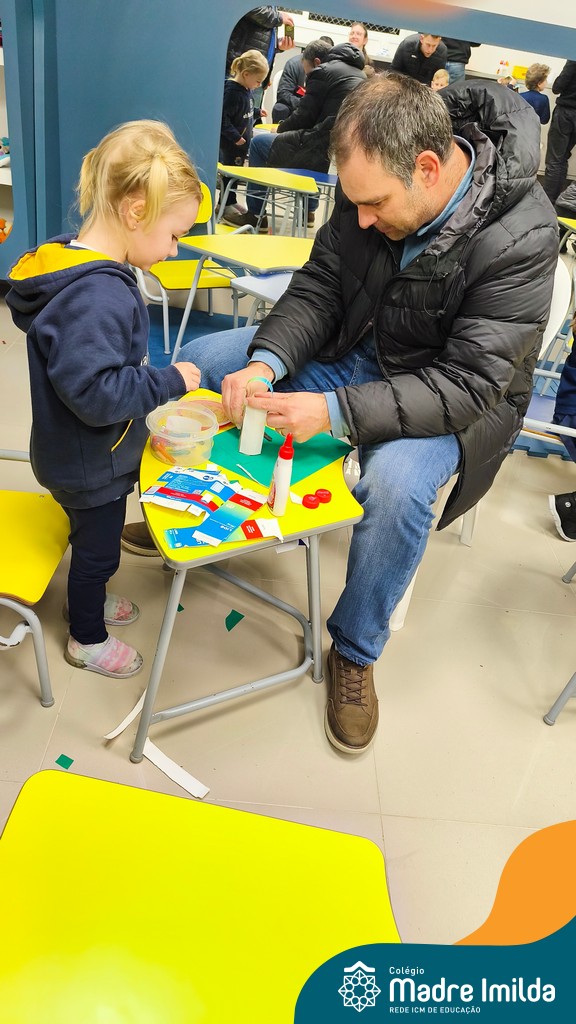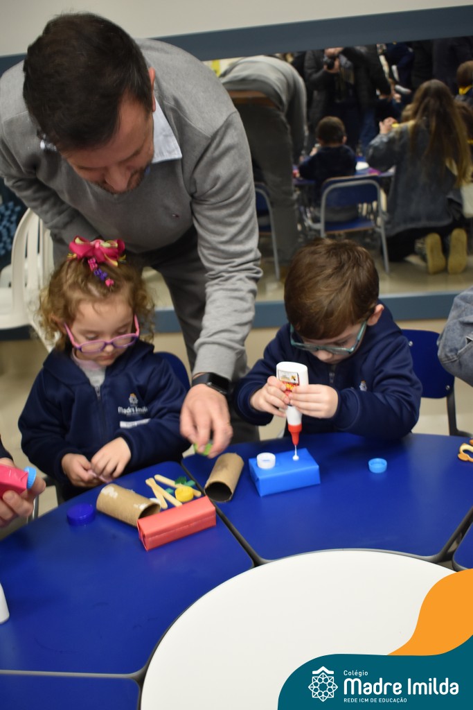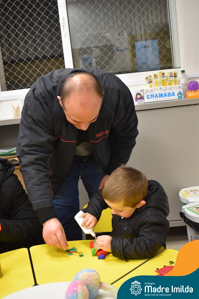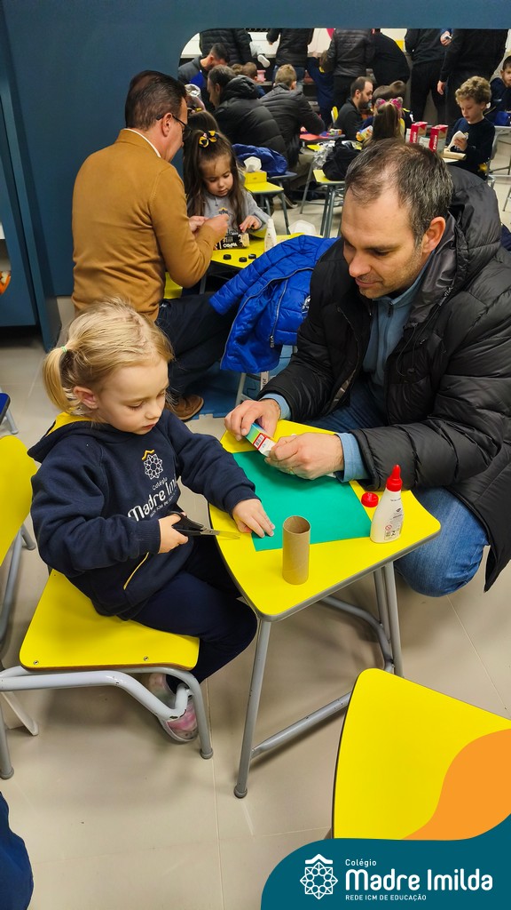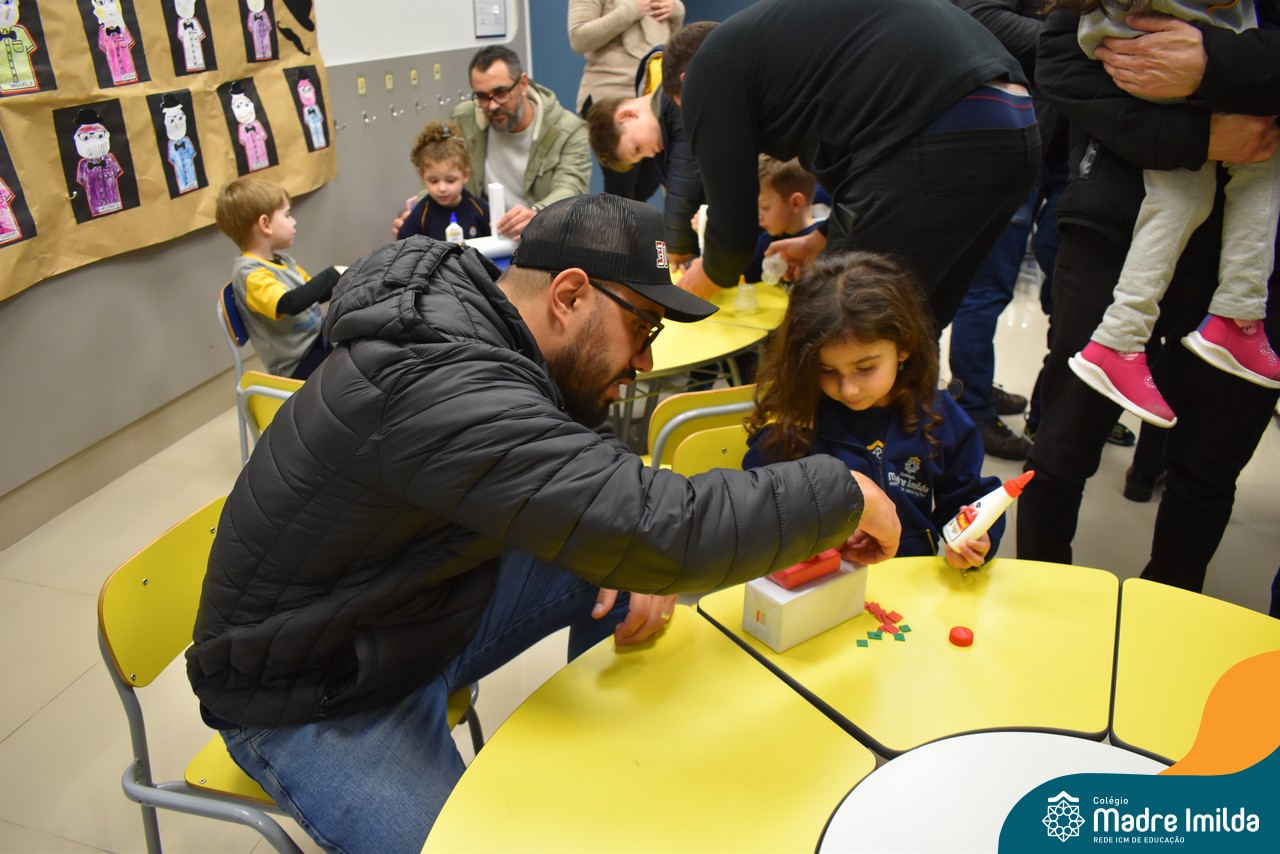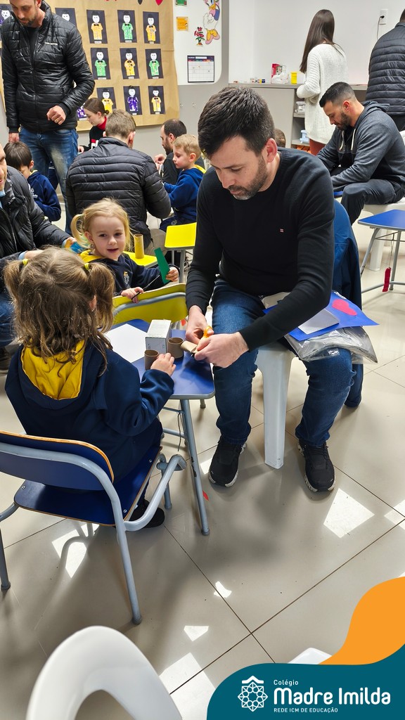 Logo após, pais e filhos compartilharam momentos de brincadeiras e construção de um brinquedo coletivo, promovendo a ludicidade, a criatividade e o fortalecimento dos vínculos familiares. Foram instantes de diversão e conexão, que valorizaram a presença e o envolvimento dos pais no cotidiano escolar.